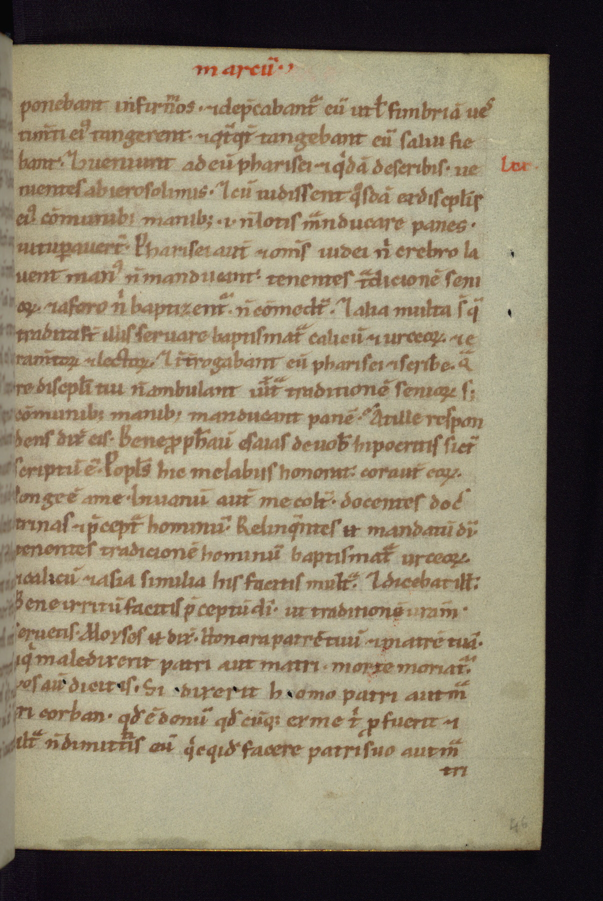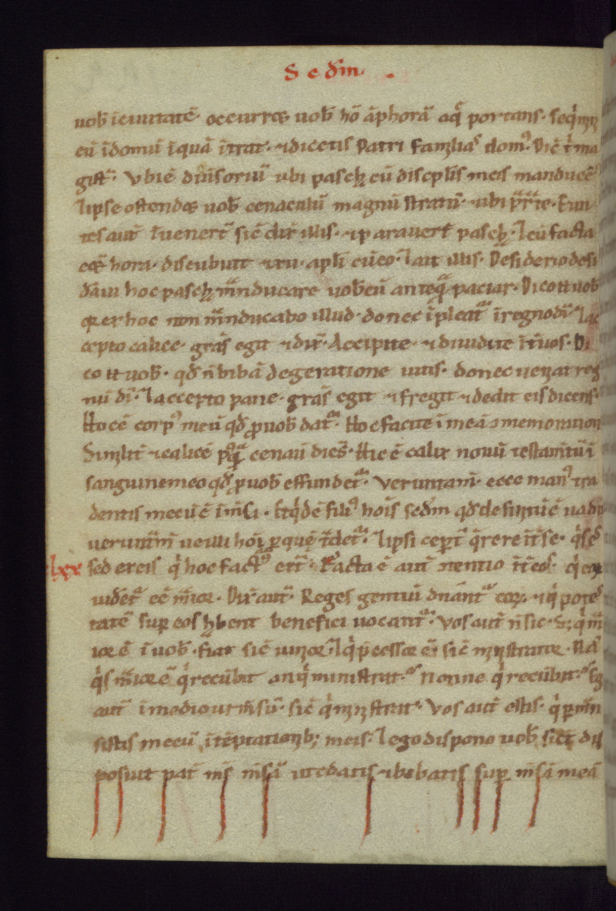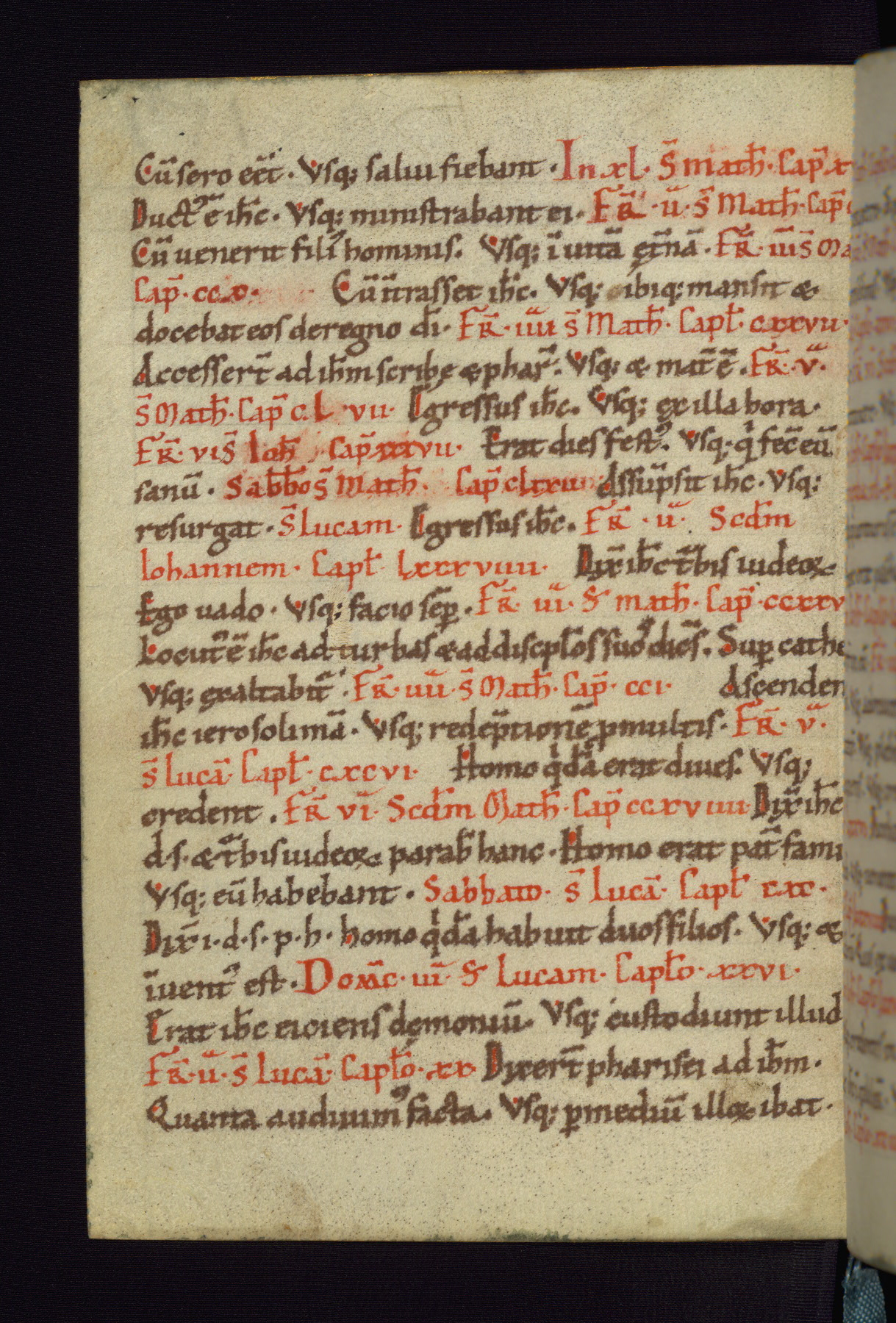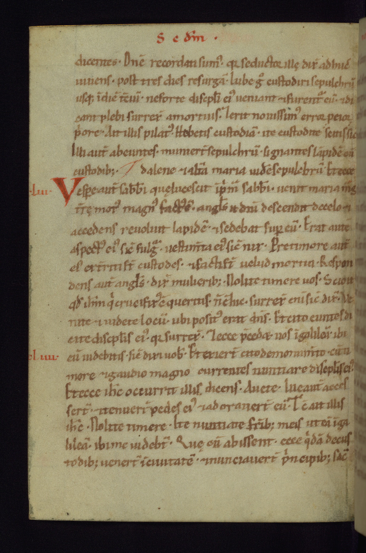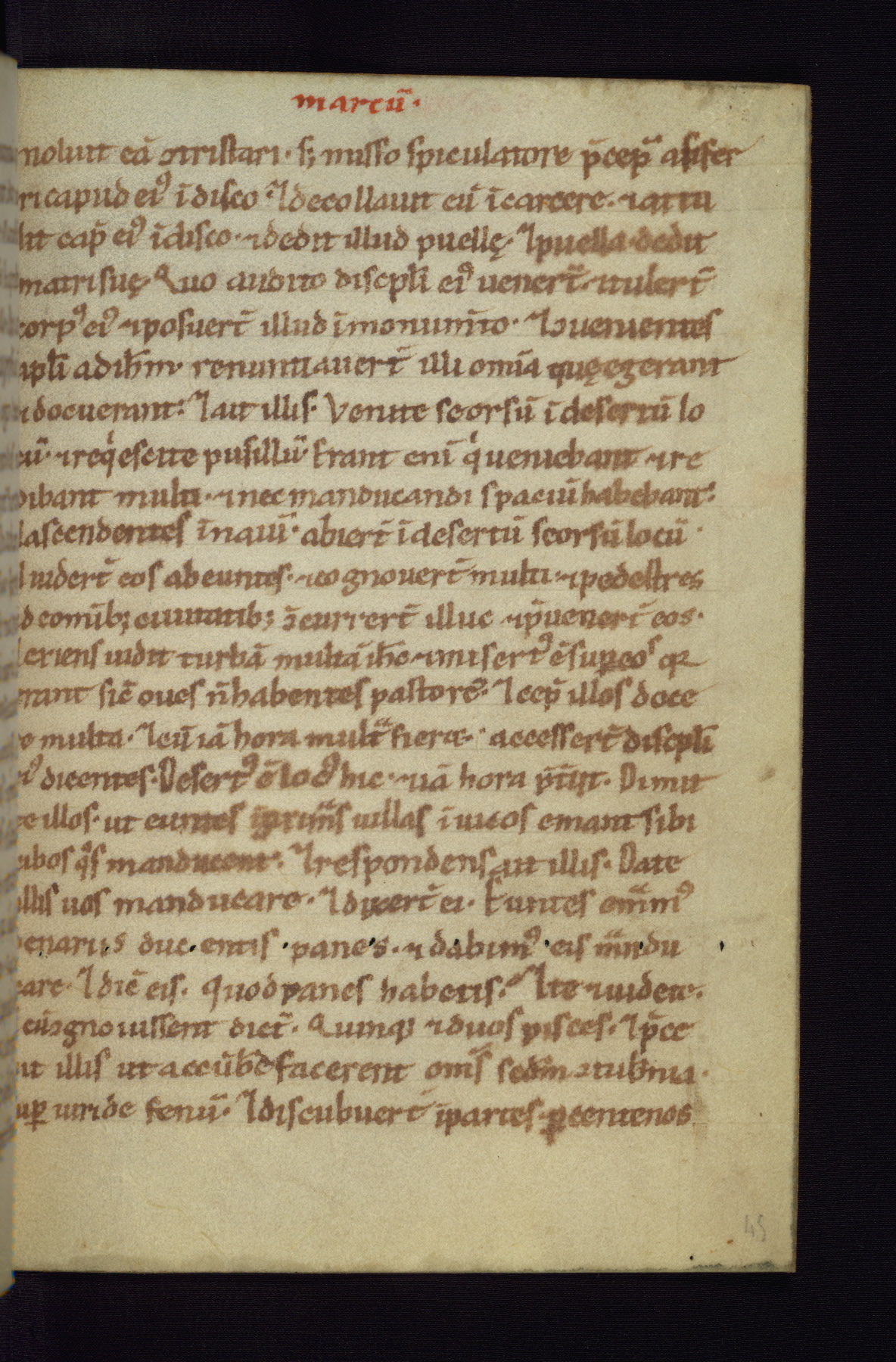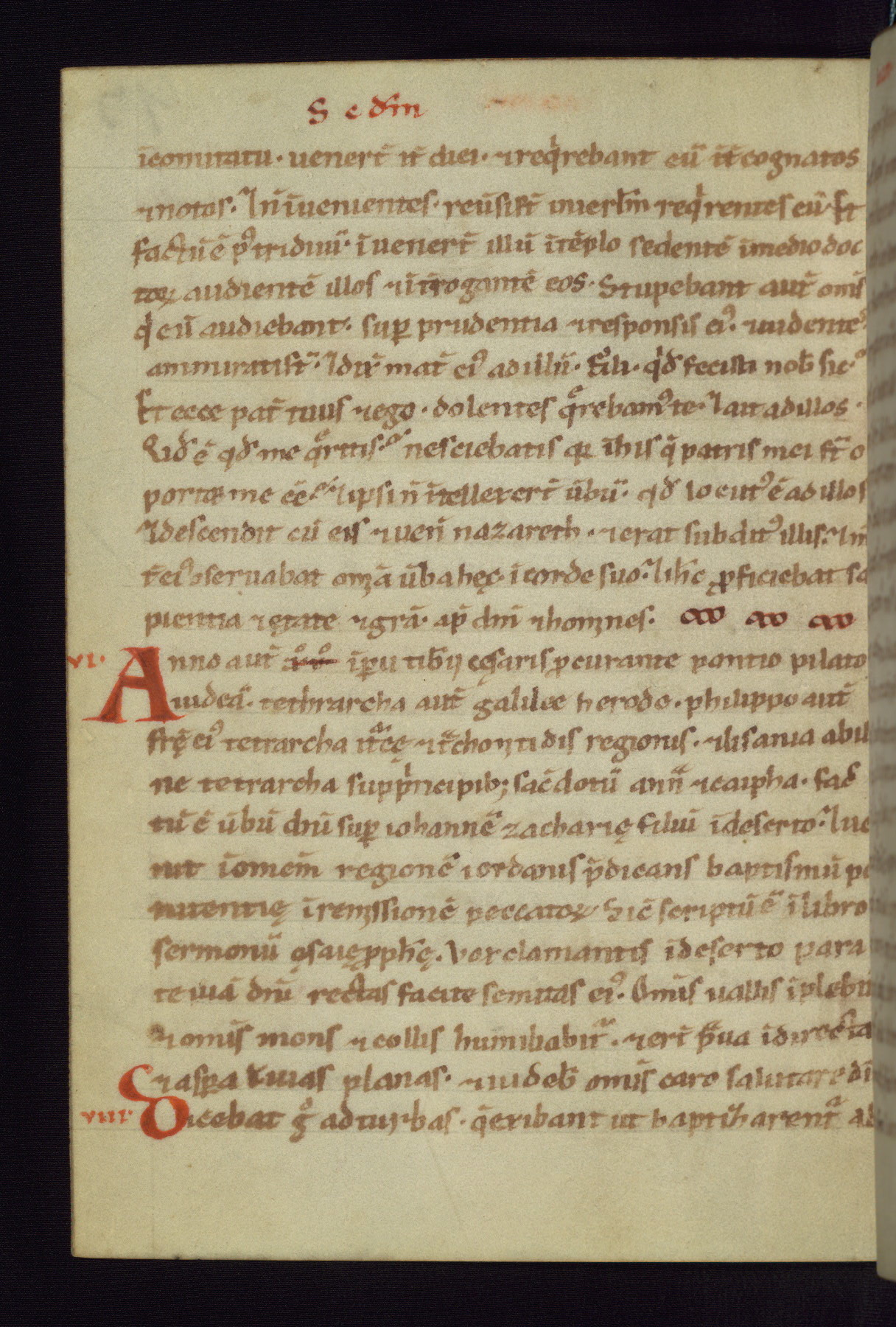 This small Gospel Book was made in Werden, Germany, in the eleventh century. Its size indicates that it was intended for daily, personal use, and a series of ownership inscriptions on the first folio, which trace the ownership of the manuscript among several members of the clergy, provides insight into its use. Although the book contains little decoration, with no canon tables or ornamental initials, the Gospels are introduced by three brown- and red-ink pen drawings of the Evangelists, two of which were embedded into the end of the previous Gospel by the artist. The manuscript is, however, incomplete and lacks the end of Matthew as well as the portrait of Mark, which was likely incorporated into Matthew's explicit page, as was done with the other portraits.