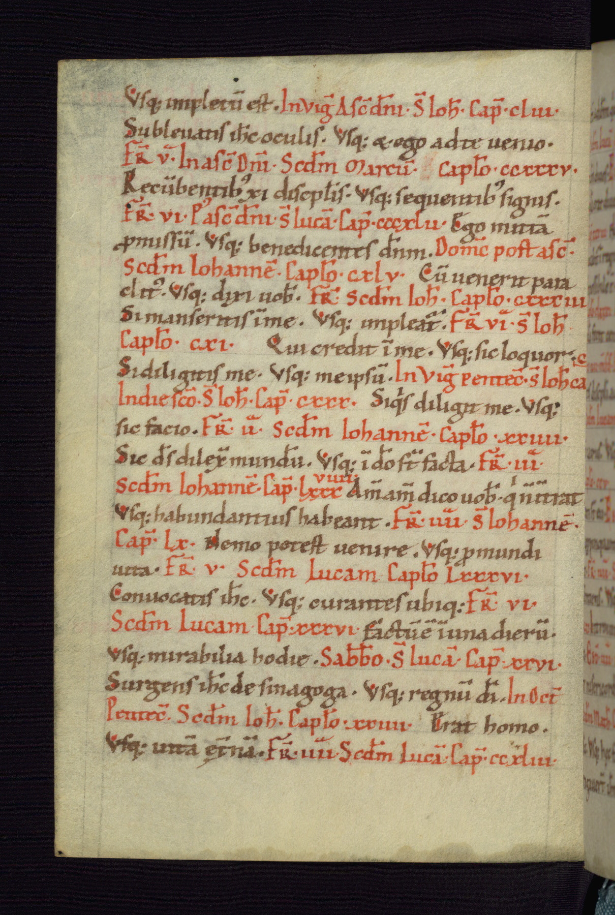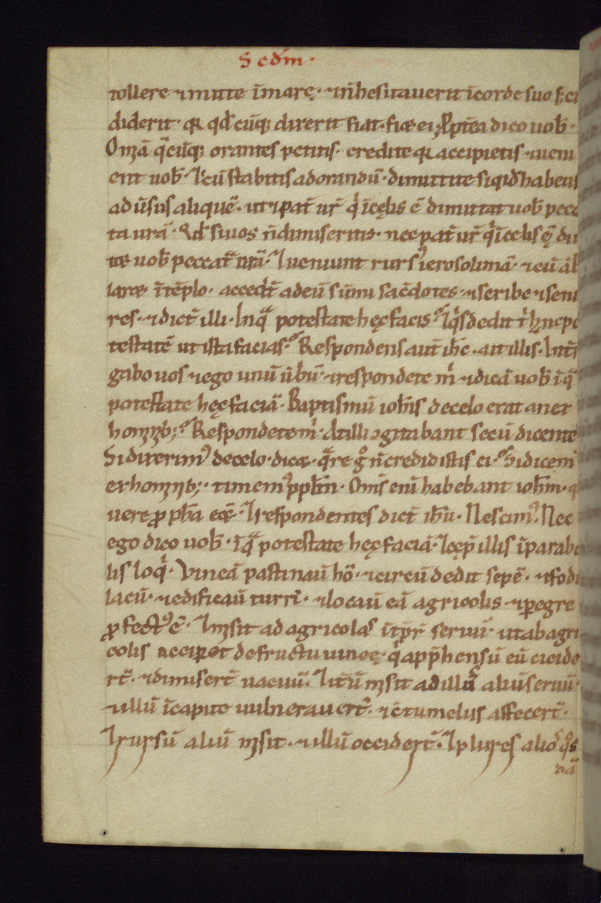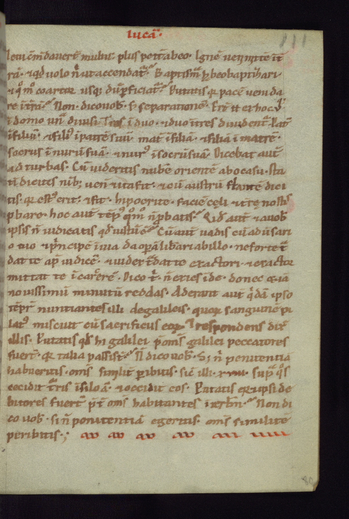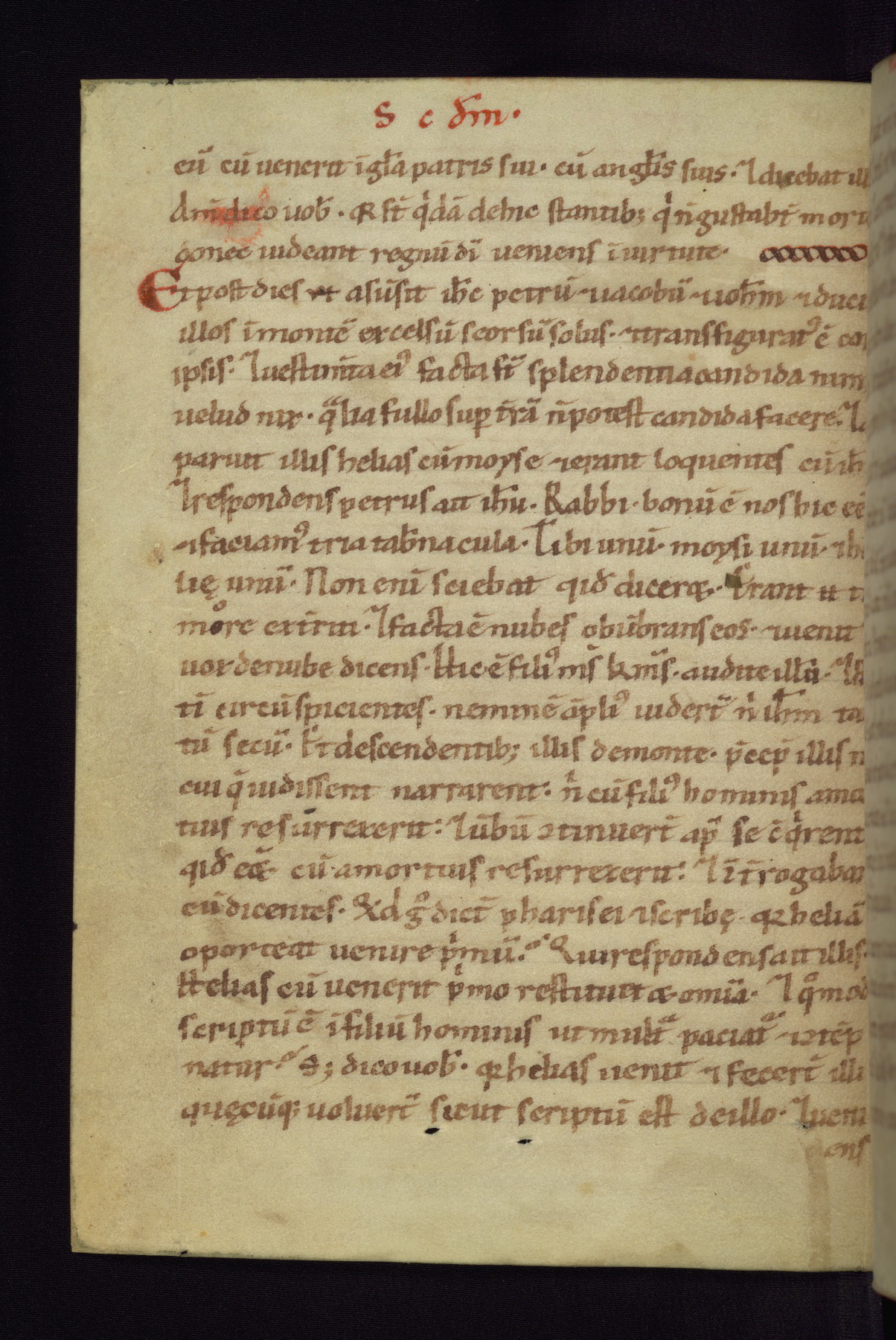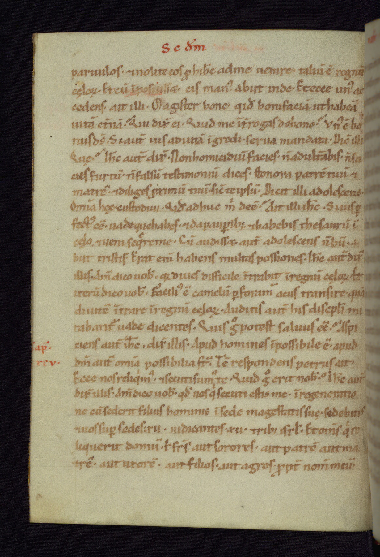 This small Gospel Book was made in Werden, Germany, in the eleventh century. Its size indicates that it was intended for daily, personal use, and a series of ownership inscriptions on the first folio, which trace the ownership of the manuscript among several members of the clergy, provides insight into its use. Although the book contains little decoration, with no canon tables or ornamental initials, the Gospels are introduced by three brown- and red-ink pen drawings of the Evangelists, two of which were embedded into the end of the previous Gospel by the artist. The manuscript is, however, incomplete and lacks the end of Matthew as well as the portrait of Mark, which was likely incorporated into Matthew's explicit page, as was done with the other portraits.