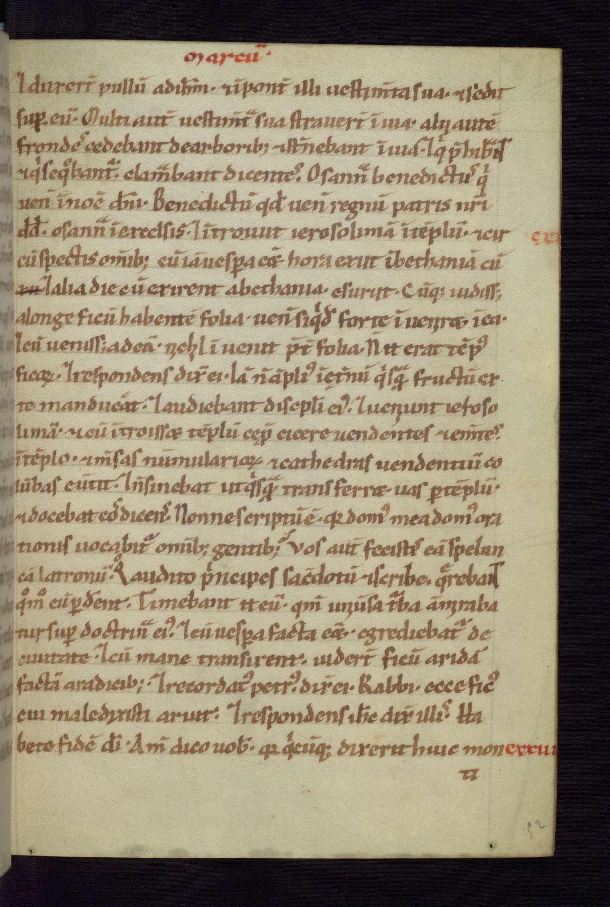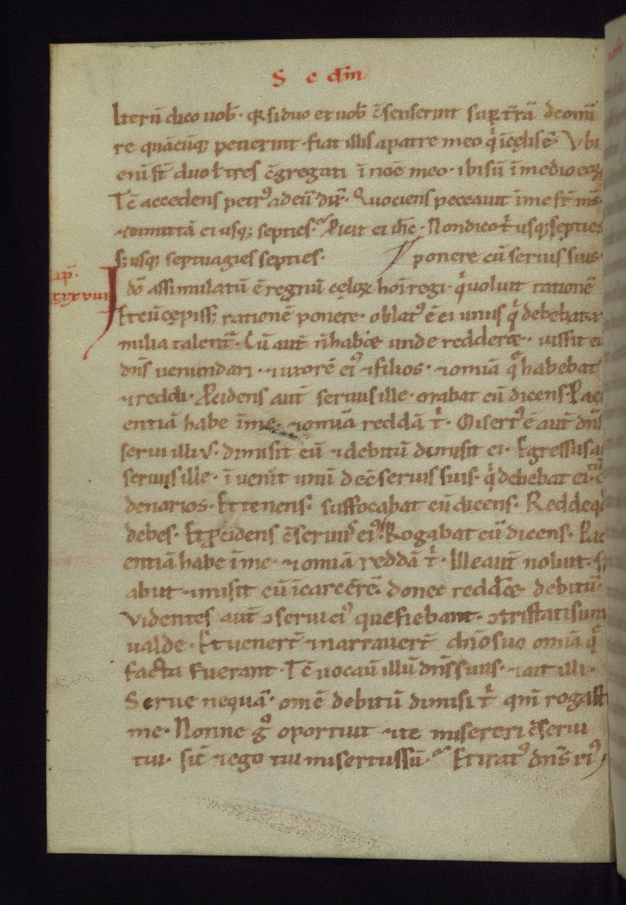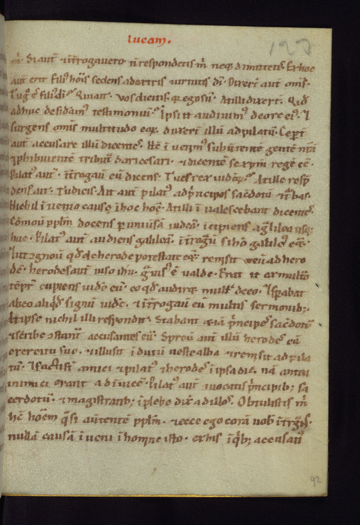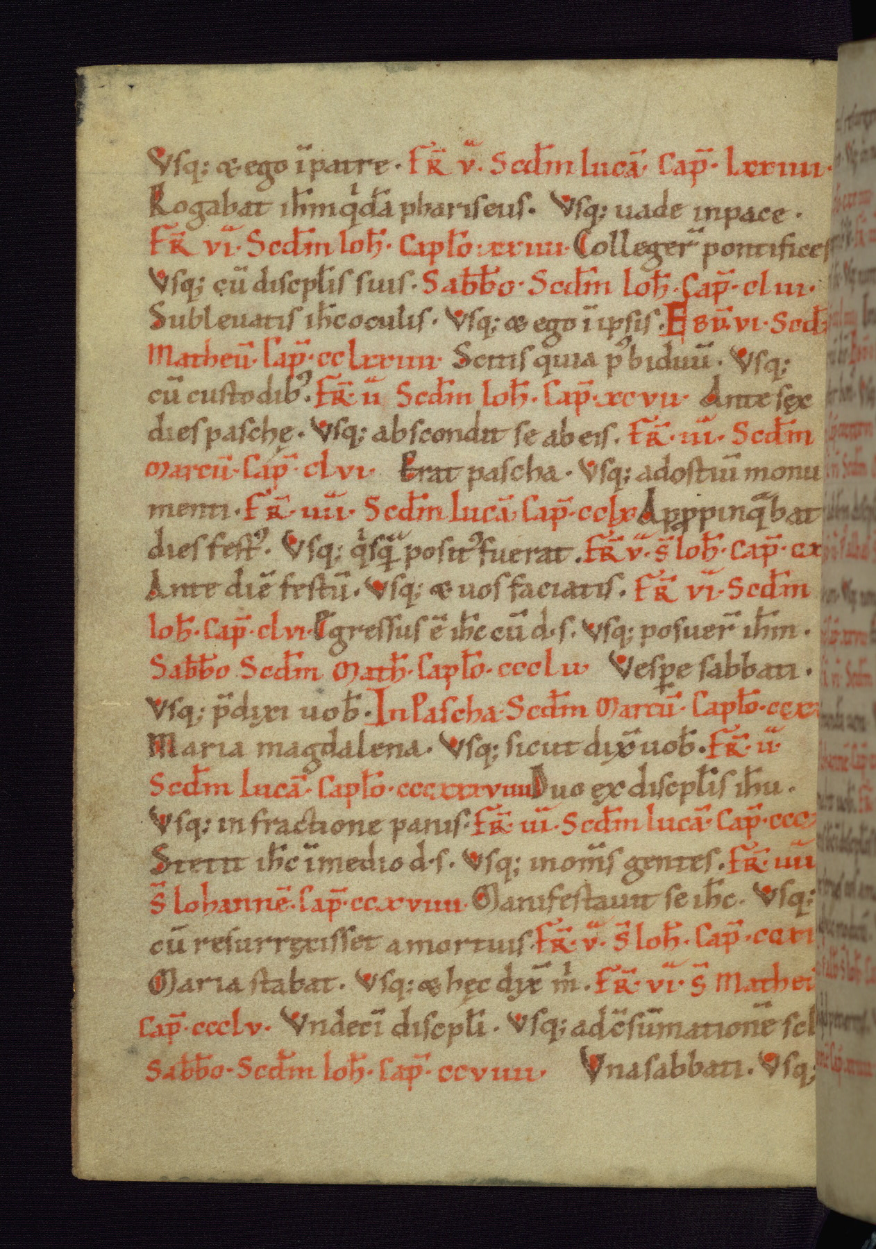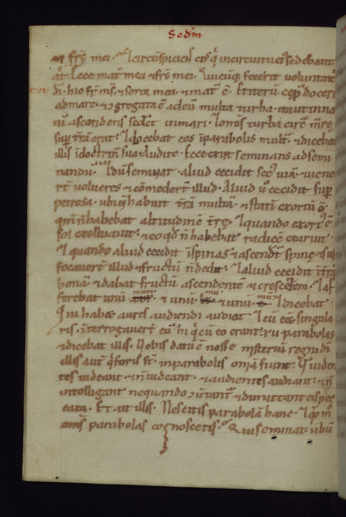 This small Gospel Book was made in Werden, Germany, in the eleventh century. Its size indicates that it was intended for daily, personal use, and a series of ownership inscriptions on the first folio, which trace the ownership of the manuscript among several members of the clergy, provides insight into its use. Although the book contains little decoration, with no canon tables or ornamental initials, the Gospels are introduced by three brown- and red-ink pen drawings of the Evangelists, two of which were embedded into the end of the previous Gospel by the artist. The manuscript is, however, incomplete and lacks the end of Matthew as well as the portrait of Mark, which was likely incorporated into Matthew's explicit page, as was done with the other portraits.