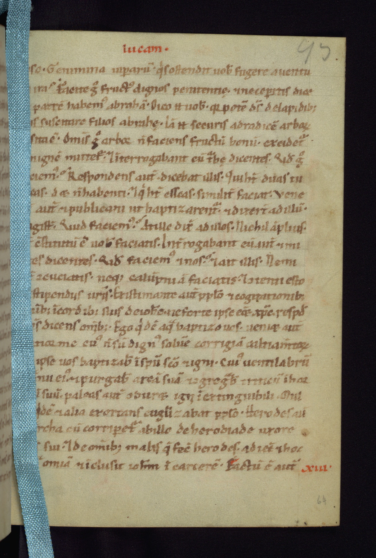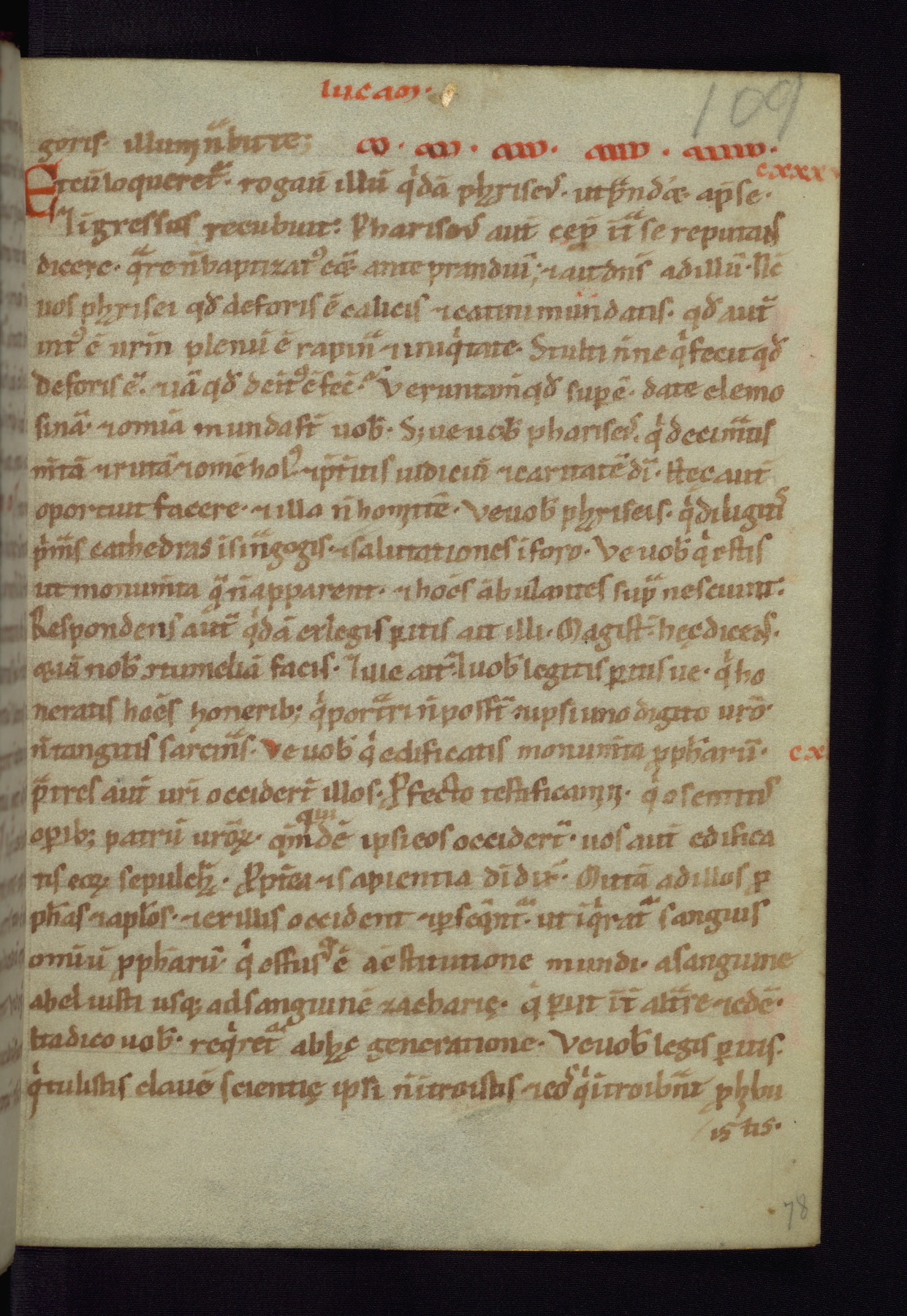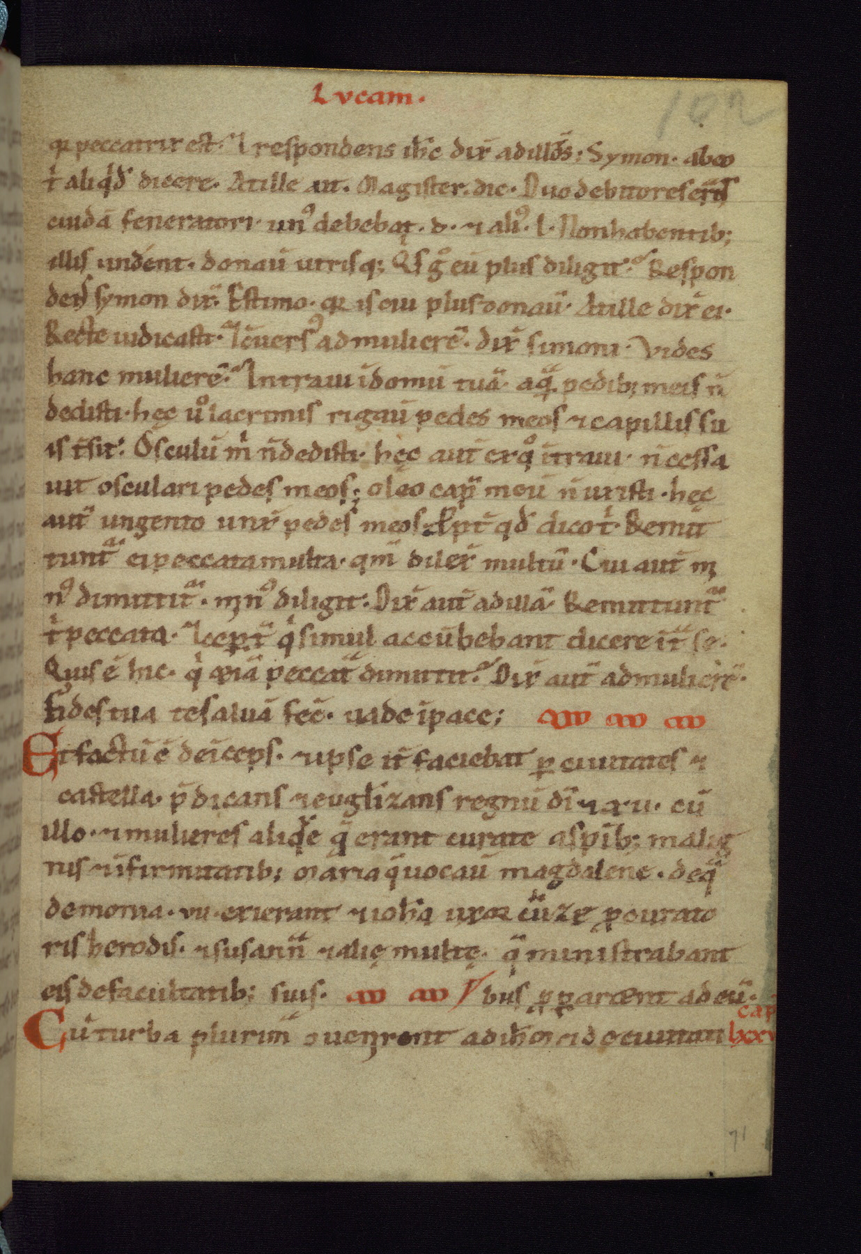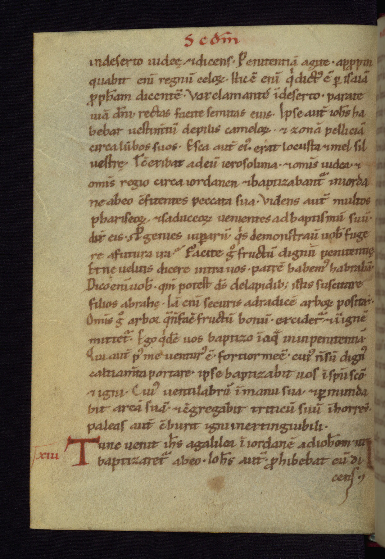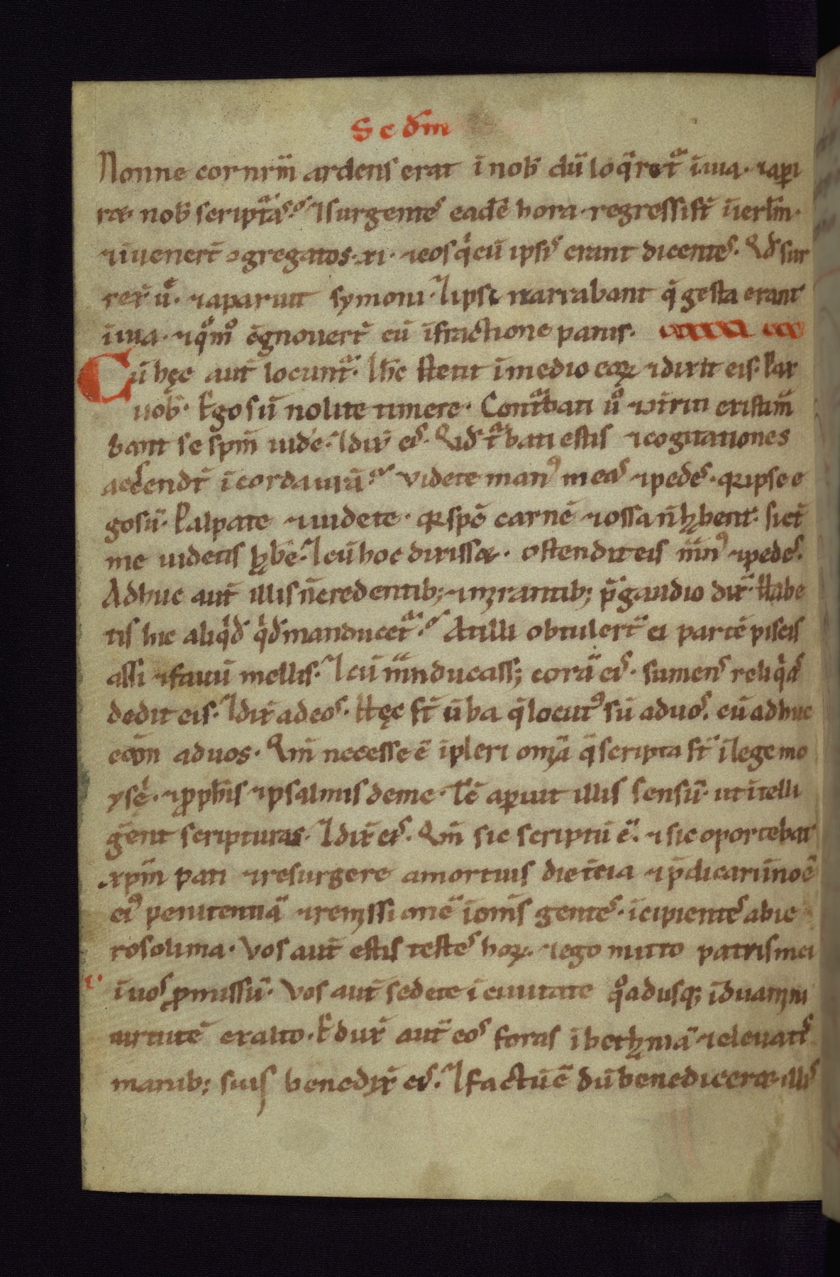 This small Gospel Book was made in Werden, Germany, in the eleventh century. Its size indicates that it was intended for daily, personal use, and a series of ownership inscriptions on the first folio, which trace the ownership of the manuscript among several members of the clergy, provides insight into its use. Although the book contains little decoration, with no canon tables or ornamental initials, the Gospels are introduced by three brown- and red-ink pen drawings of the Evangelists, two of which were embedded into the end of the previous Gospel by the artist. The manuscript is, however, incomplete and lacks the end of Matthew as well as the portrait of Mark, which was likely incorporated into Matthew's explicit page, as was done with the other portraits.