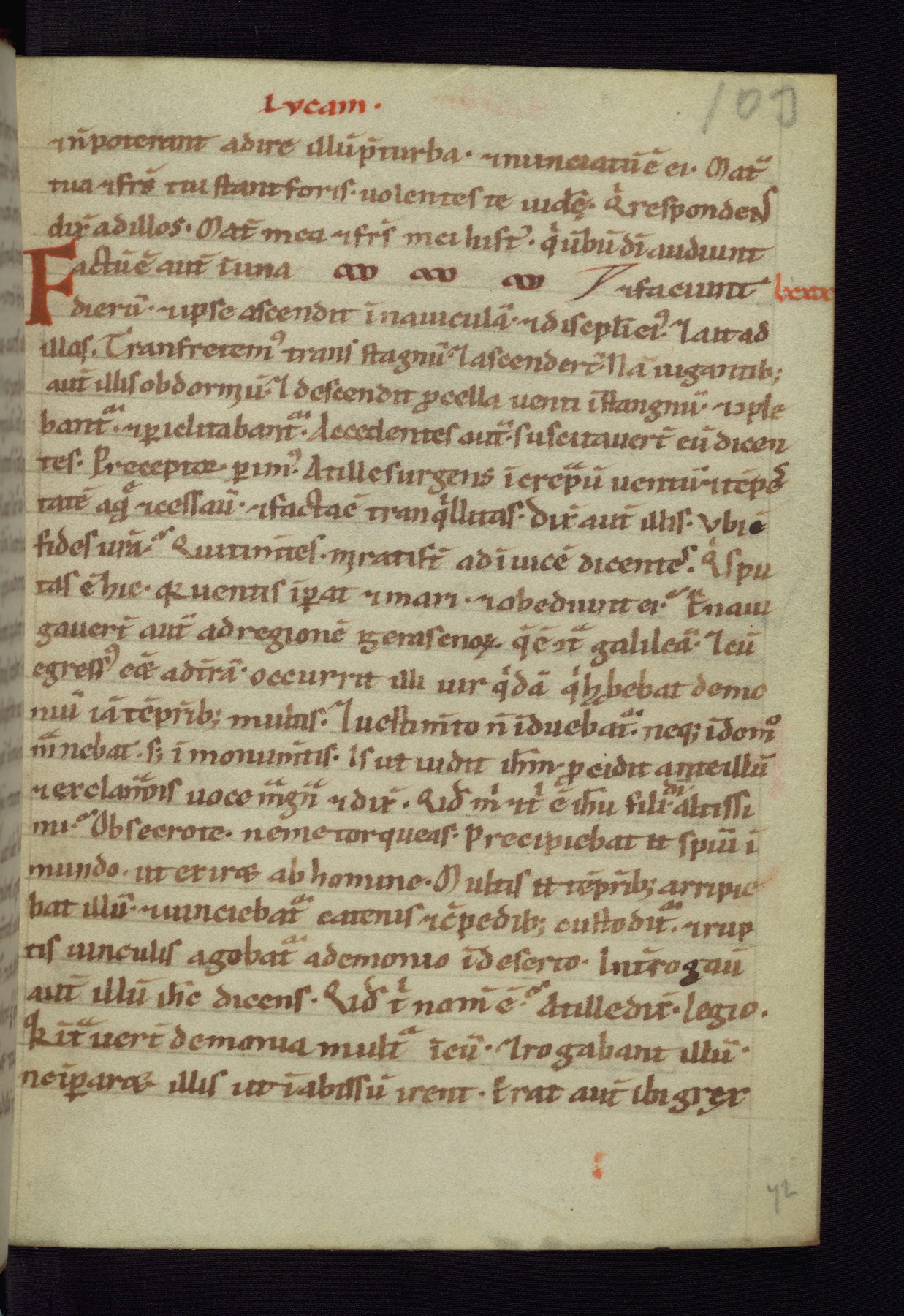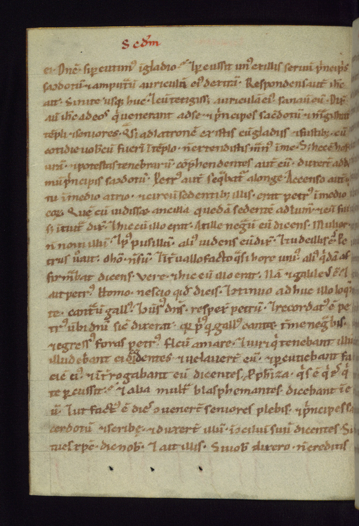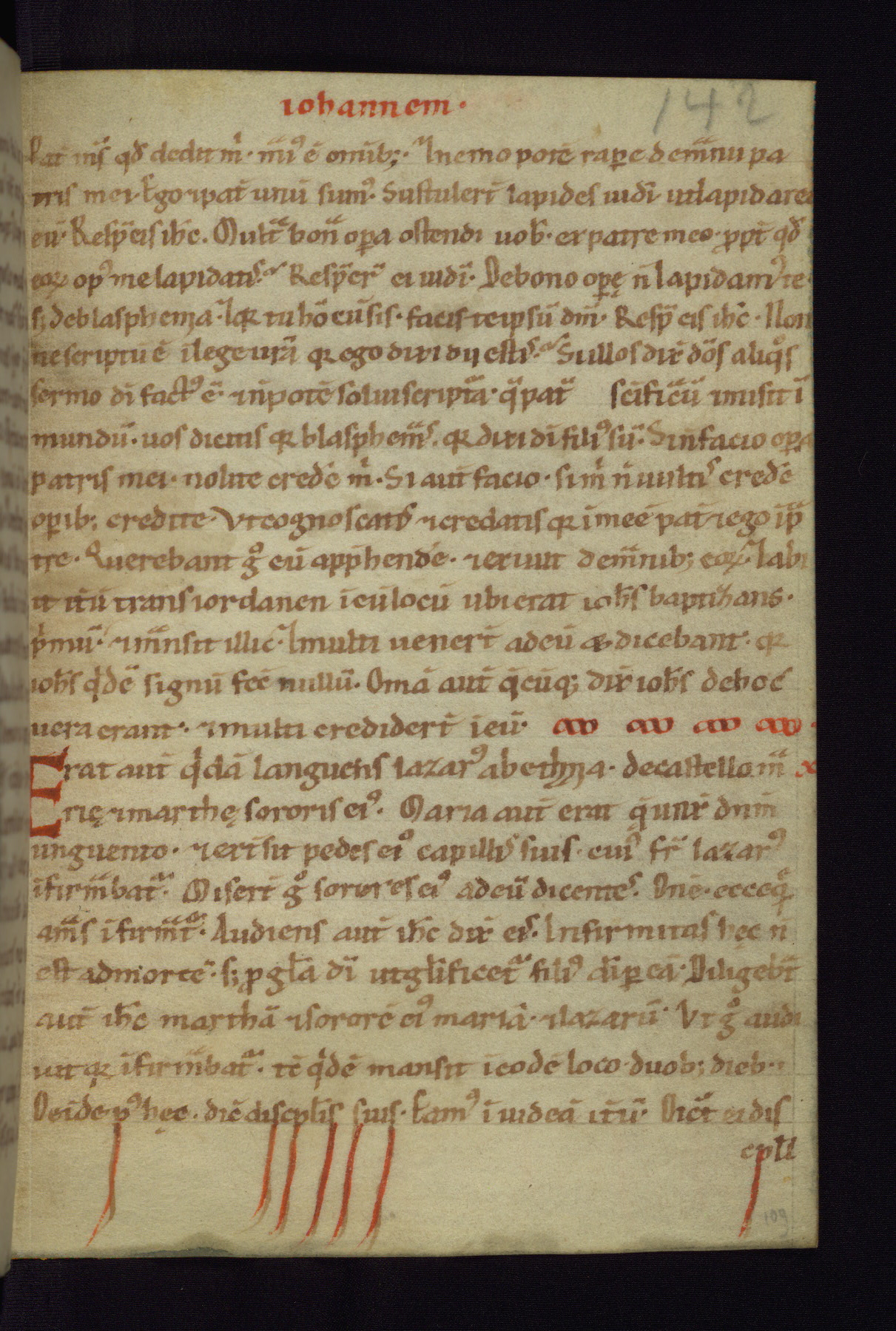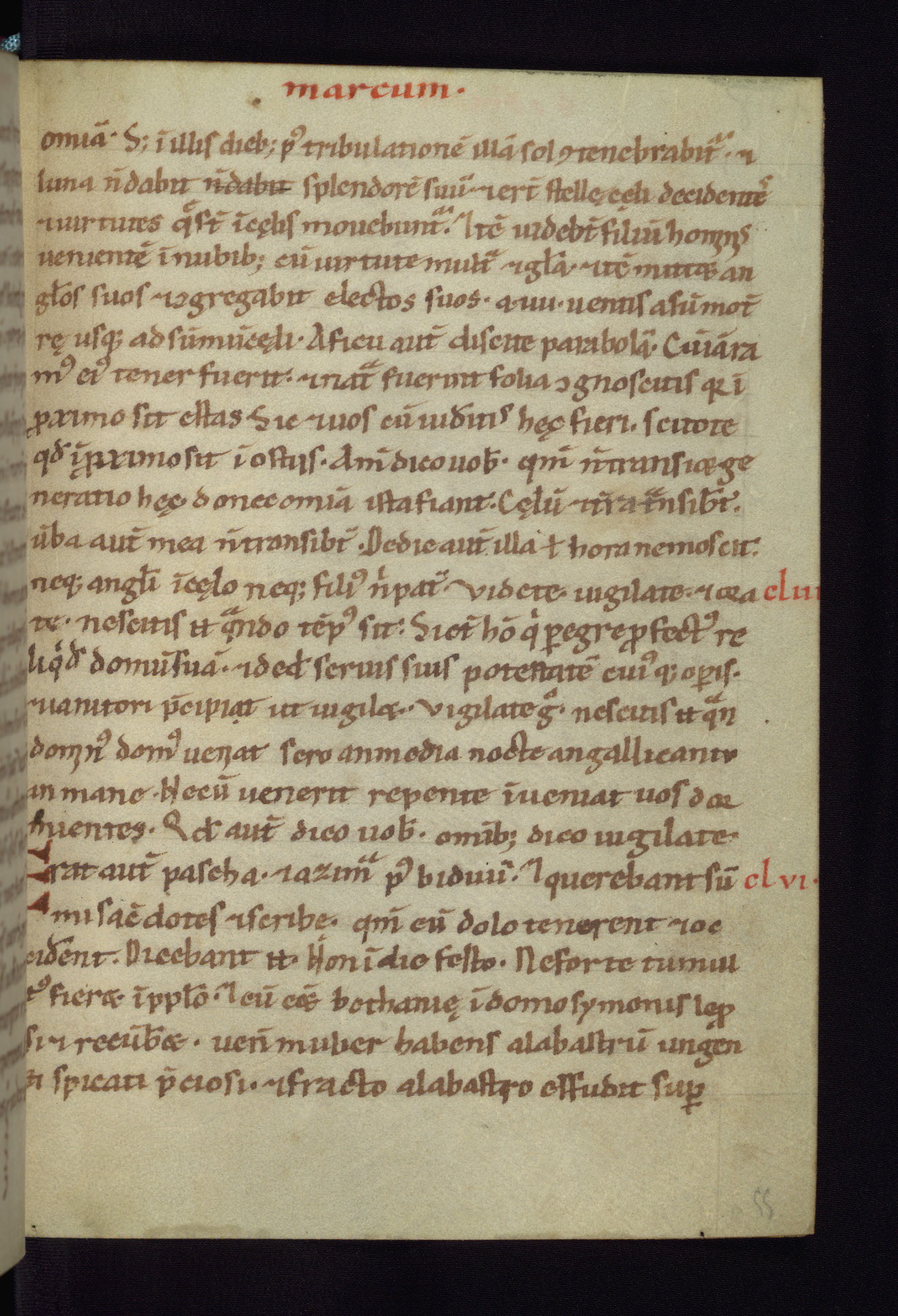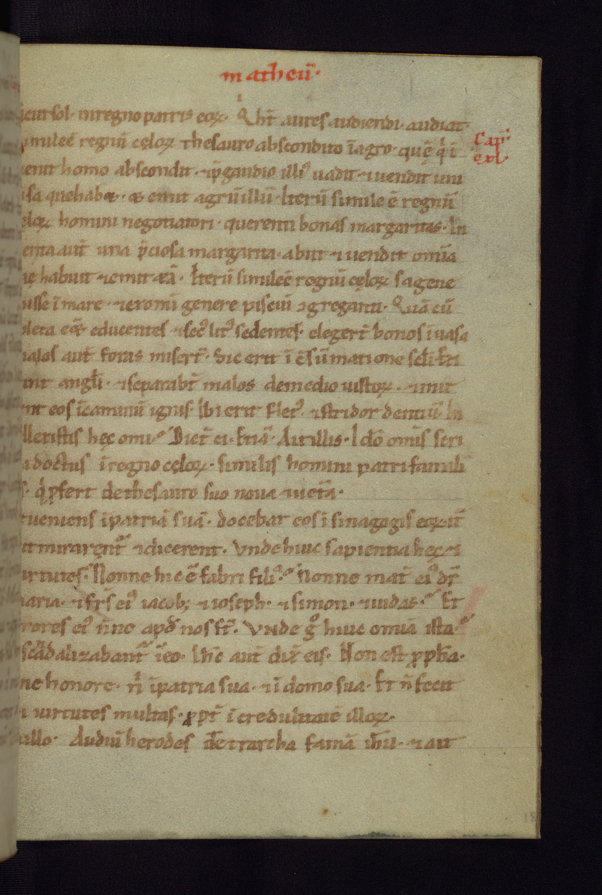 This small Gospel Book was made in Werden, Germany, in the eleventh century. Its size indicates that it was intended for daily, personal use, and a series of ownership inscriptions on the first folio, which trace the ownership of the manuscript among several members of the clergy, provides insight into its use. Although the book contains little decoration, with no canon tables or ornamental initials, the Gospels are introduced by three brown- and red-ink pen drawings of the Evangelists, two of which were embedded into the end of the previous Gospel by the artist. The manuscript is, however, incomplete and lacks the end of Matthew as well as the portrait of Mark, which was likely incorporated into Matthew's explicit page, as was done with the other portraits.