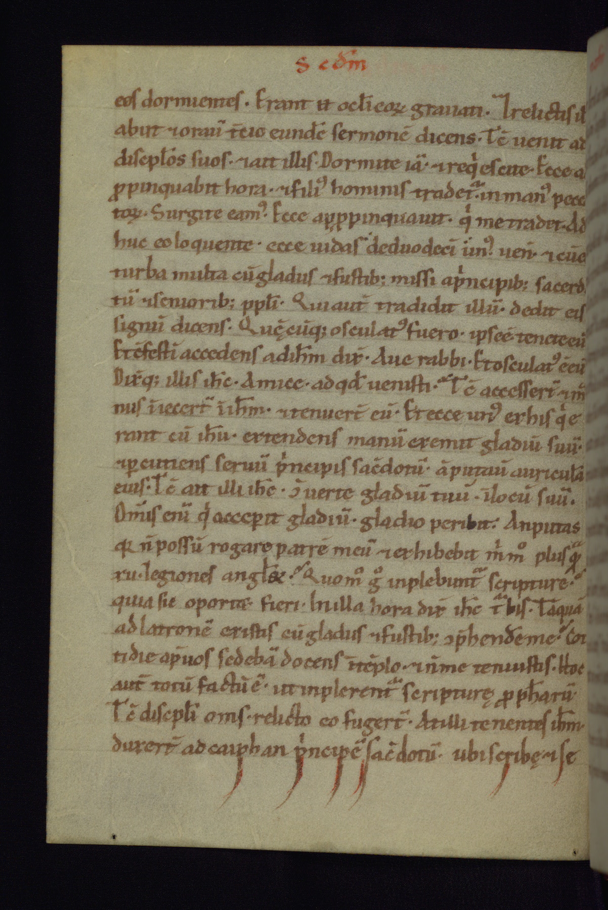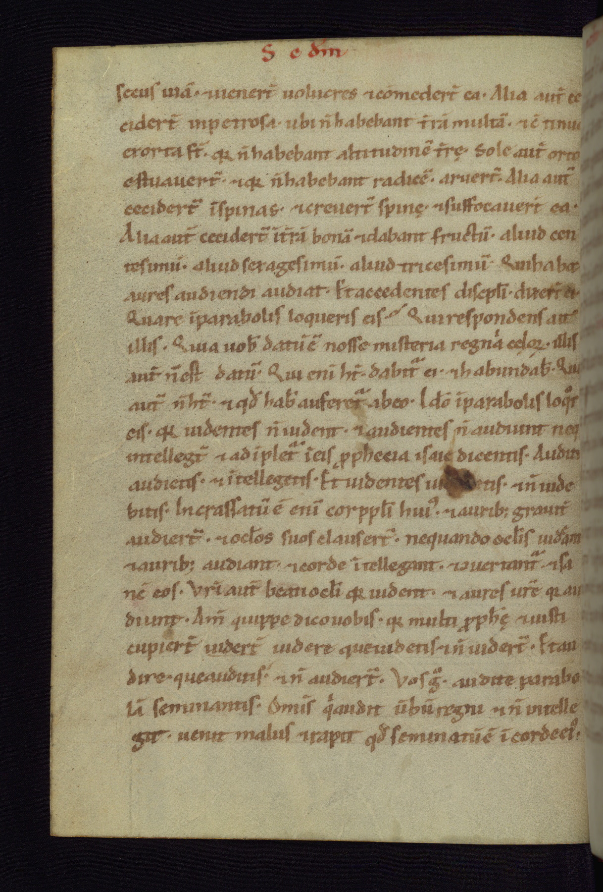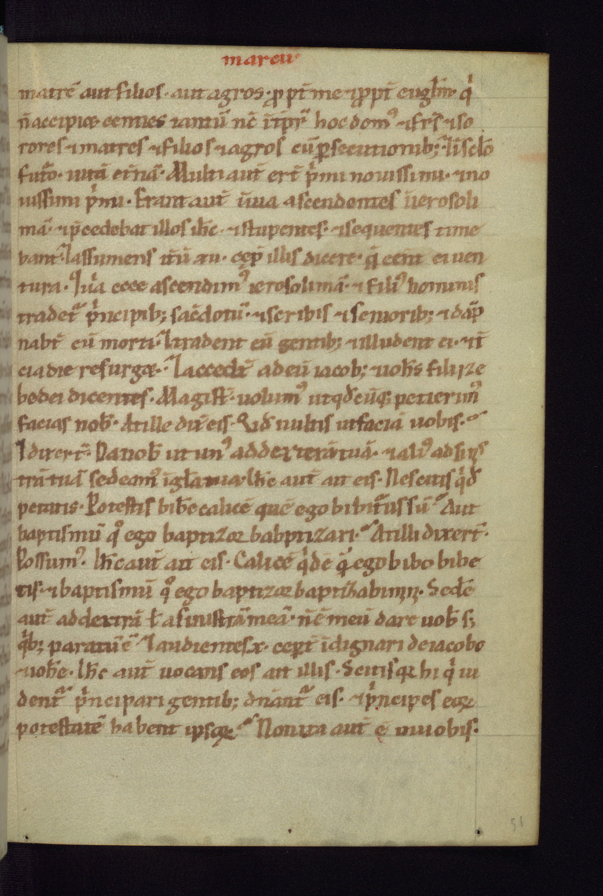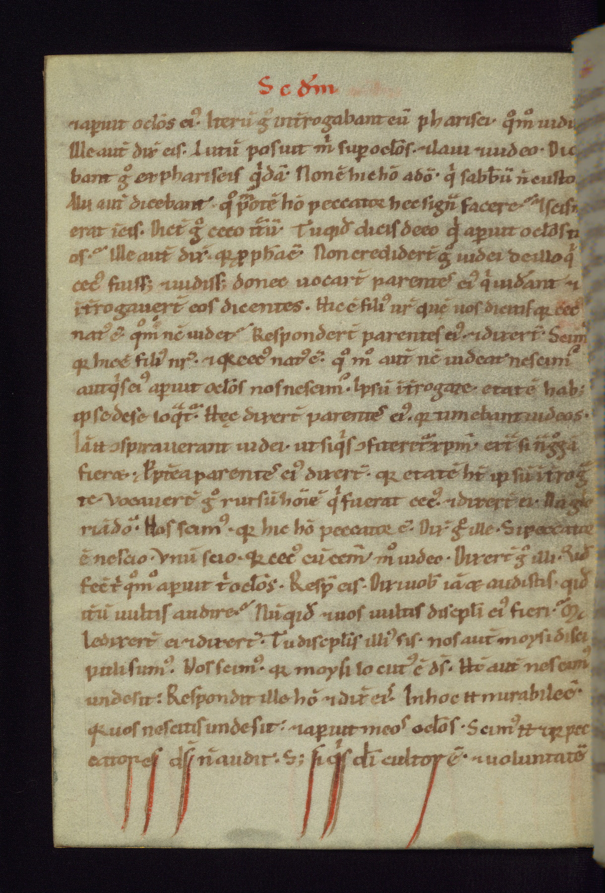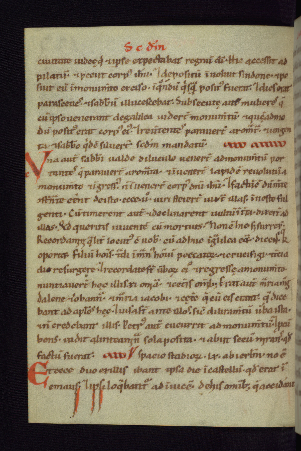 This small Gospel Book was made in Werden, Germany, in the eleventh century. Its size indicates that it was intended for daily, personal use, and a series of ownership inscriptions on the first folio, which trace the ownership of the manuscript among several members of the clergy, provides insight into its use. Although the book contains little decoration, with no canon tables or ornamental initials, the Gospels are introduced by three brown- and red-ink pen drawings of the Evangelists, two of which were embedded into the end of the previous Gospel by the artist. The manuscript is, however, incomplete and lacks the end of Matthew as well as the portrait of Mark, which was likely incorporated into Matthew's explicit page, as was done with the other portraits.