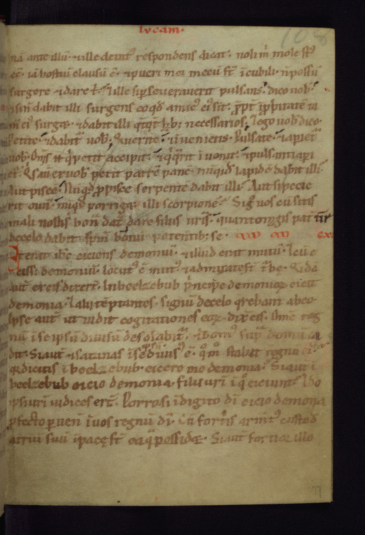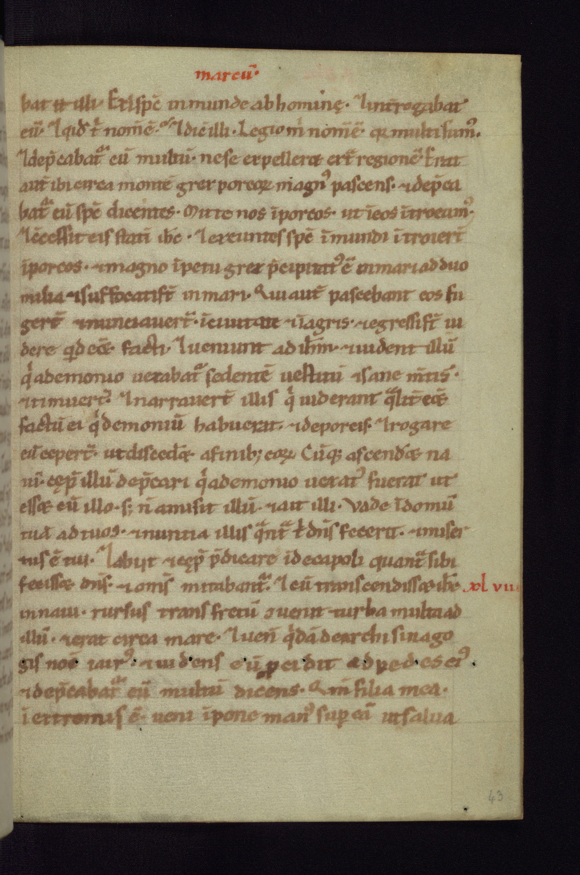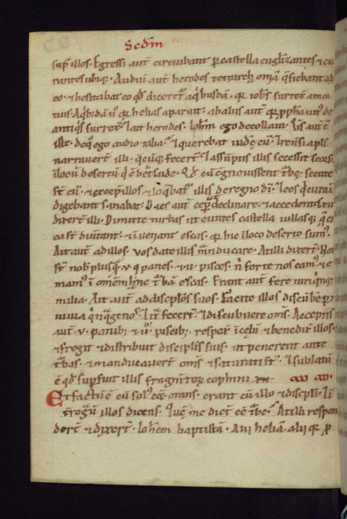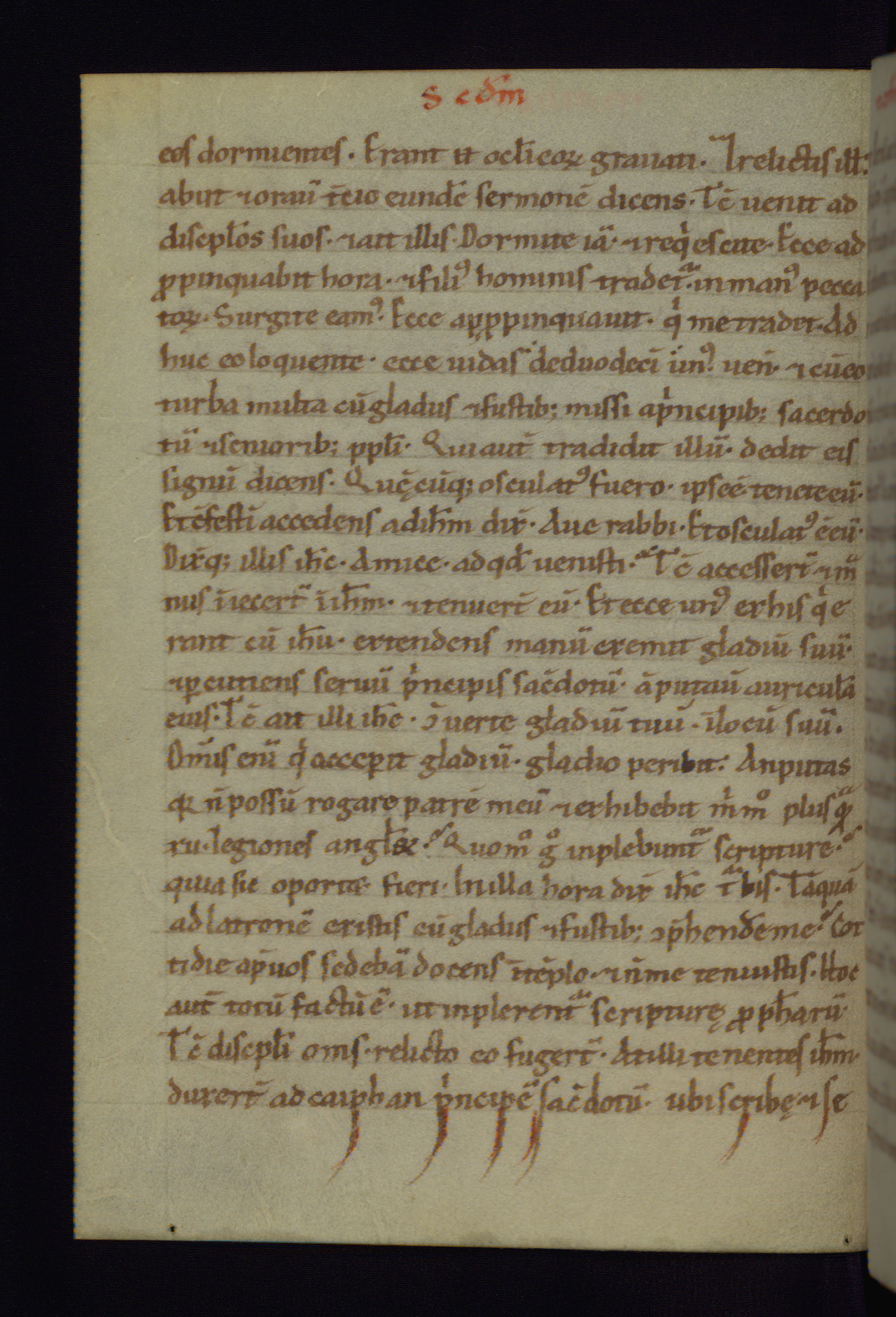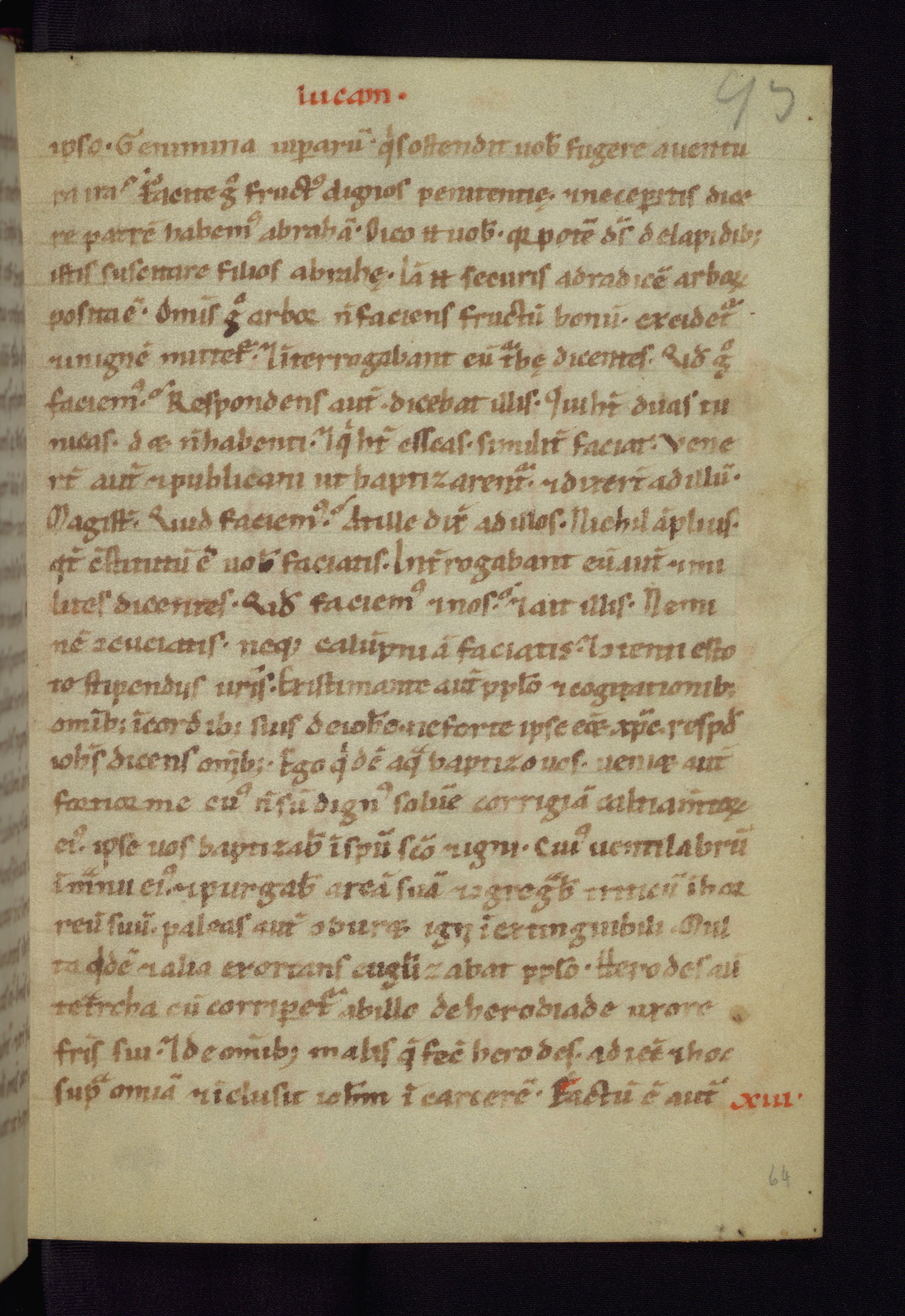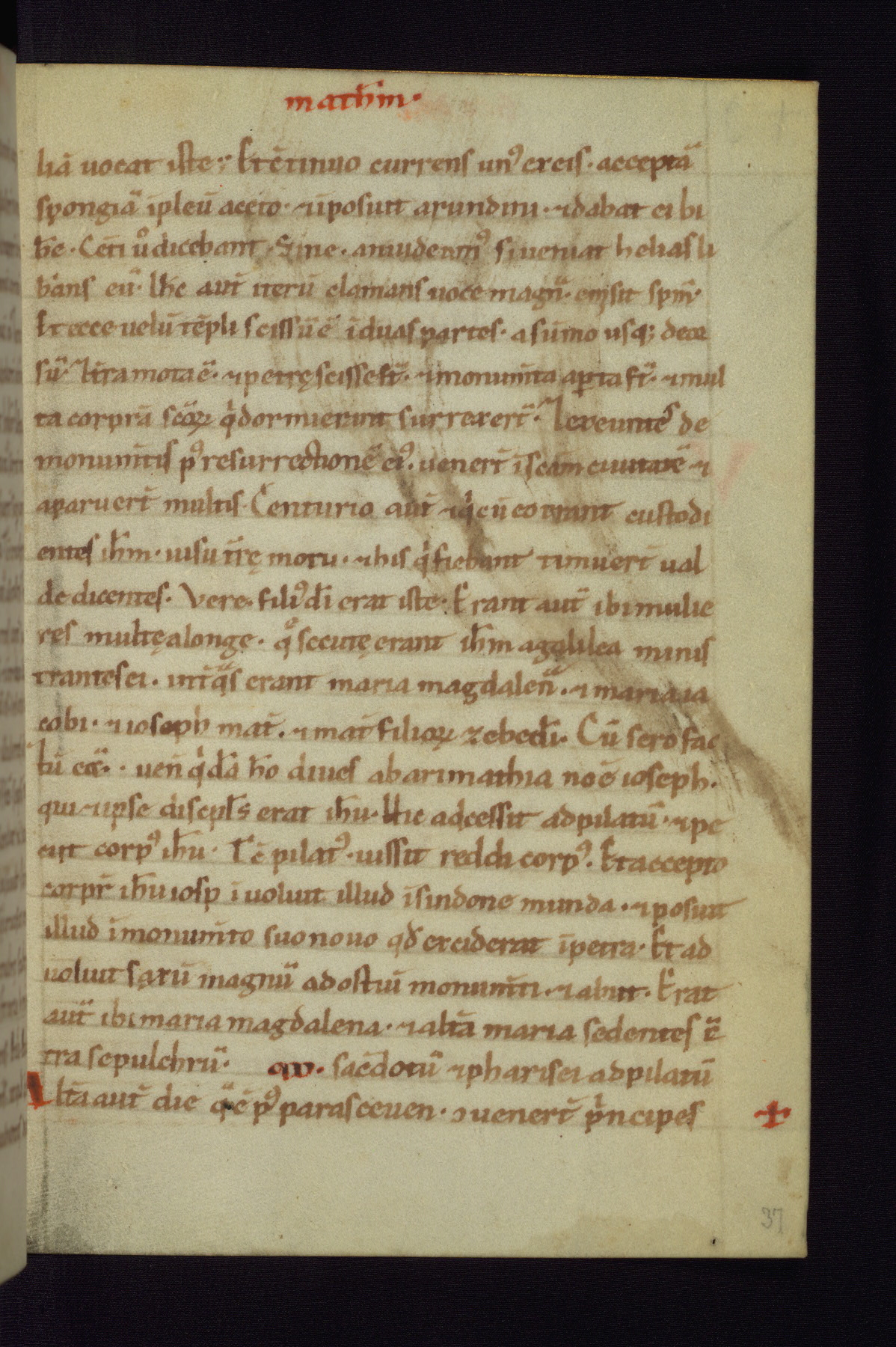This small Gospel Book was made in Werden, Germany, in the eleventh century. Its size indicates that it was intended for daily, personal use, and a series of ownership inscriptions on the first folio, which trace the ownership of the manuscript among several members of the clergy, provides insight into its use. Although the book contains little decoration, with no canon tables or ornamental initials, the Gospels are introduced by three brown- and red-ink pen drawings of the Evangelists, two of which were embedded into the end of the previous Gospel by the artist. The manuscript is, however, incomplete and lacks the end of Matthew as well as the portrait of Mark, which was likely incorporated into Matthew's explicit page, as was done with the other portraits.
