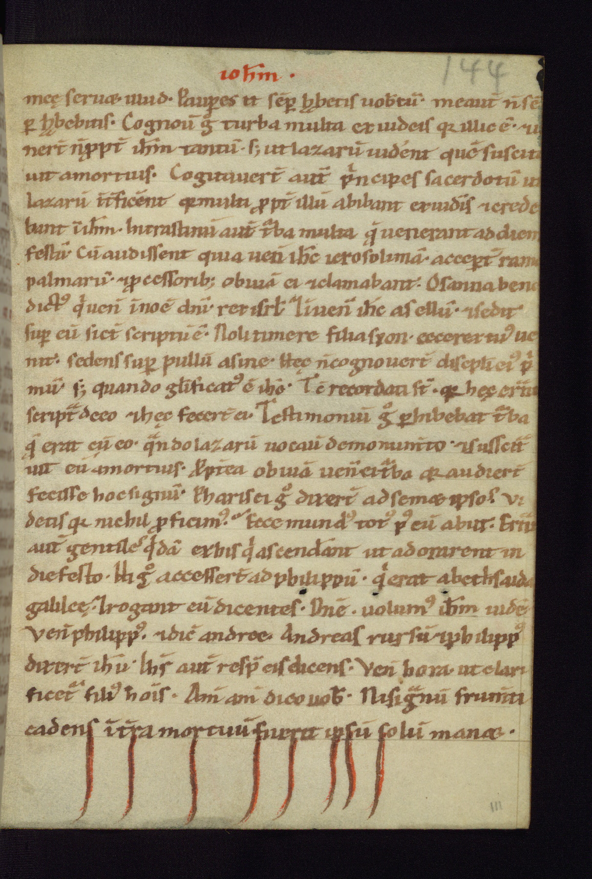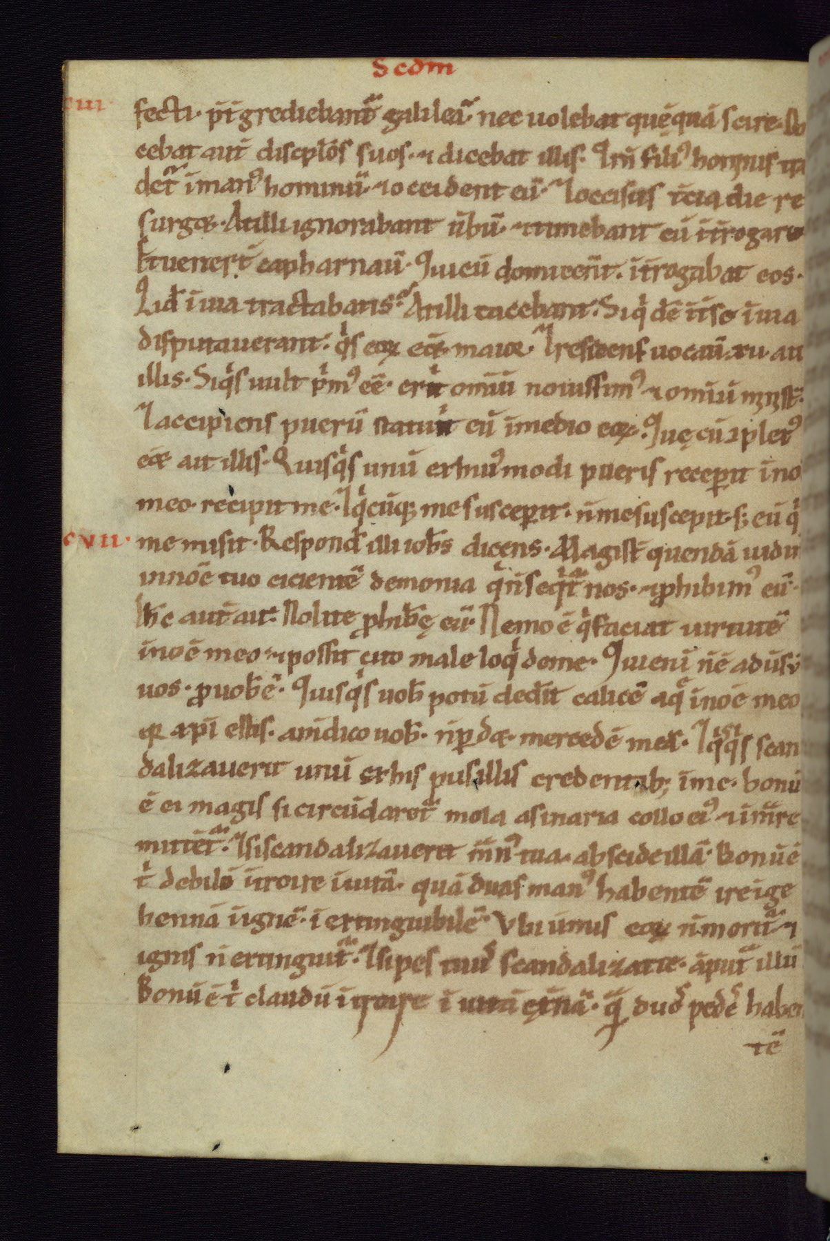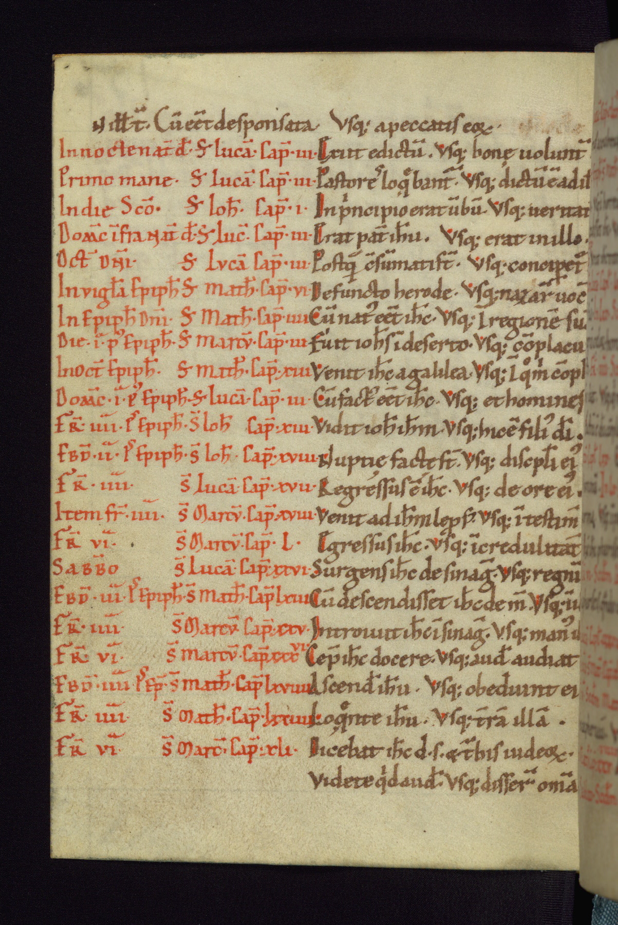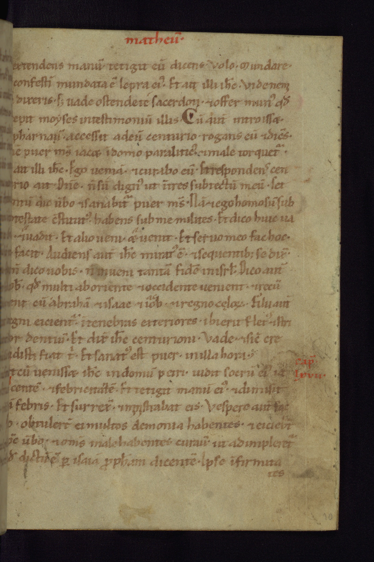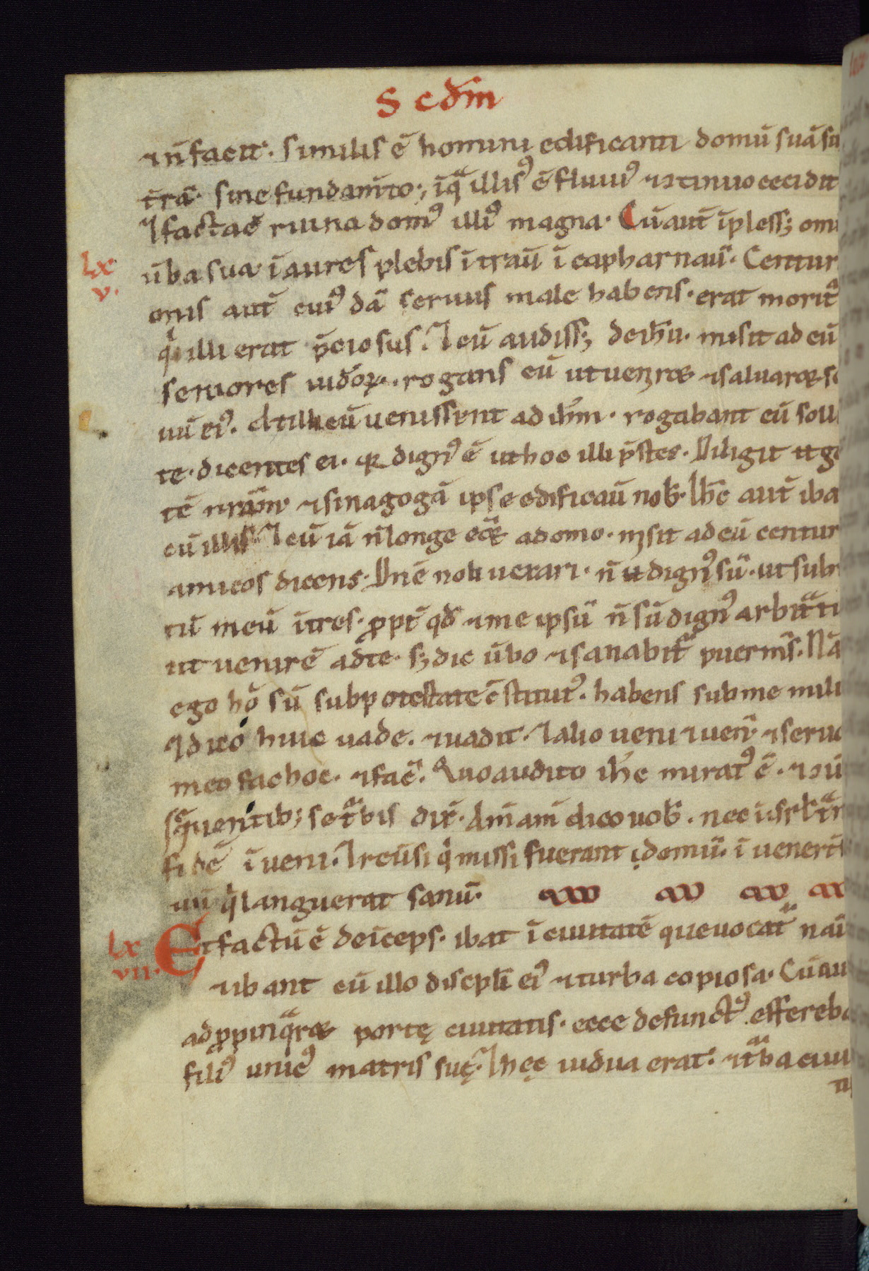 This small Gospel Book was made in Werden, Germany, in the eleventh century. Its size indicates that it was intended for daily, personal use, and a series of ownership inscriptions on the first folio, which trace the ownership of the manuscript among several members of the clergy, provides insight into its use. Although the book contains little decoration, with no canon tables or ornamental initials, the Gospels are introduced by three brown- and red-ink pen drawings of the Evangelists, two of which were embedded into the end of the previous Gospel by the artist. The manuscript is, however, incomplete and lacks the end of Matthew as well as the portrait of Mark, which was likely incorporated into Matthew's explicit page, as was done with the other portraits.
