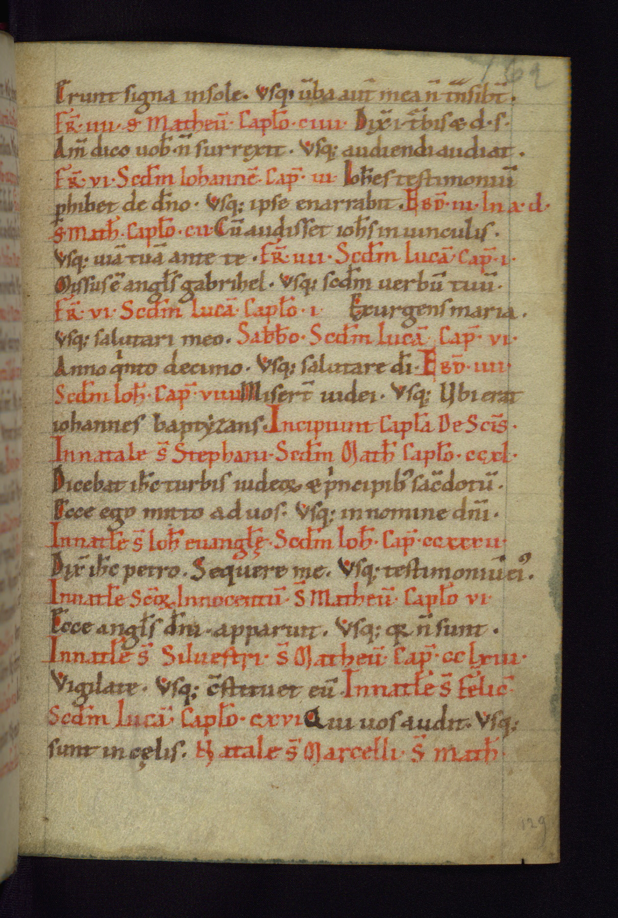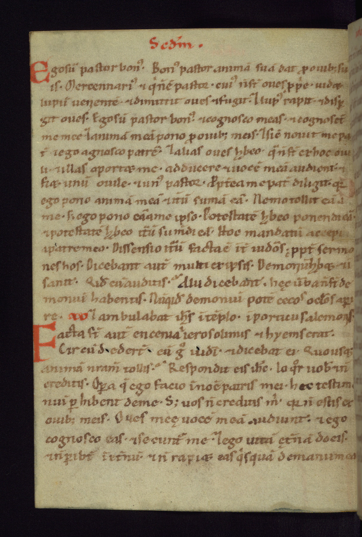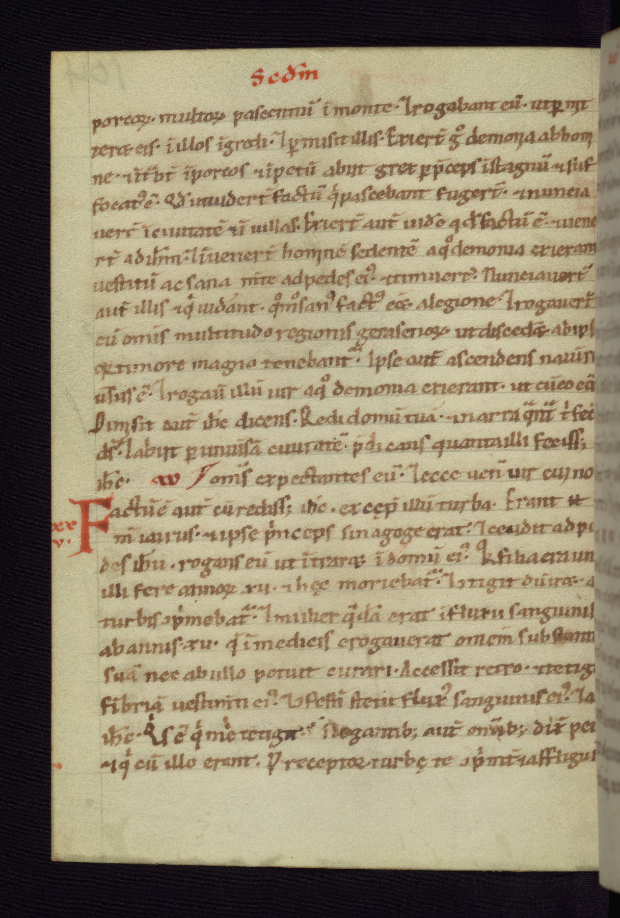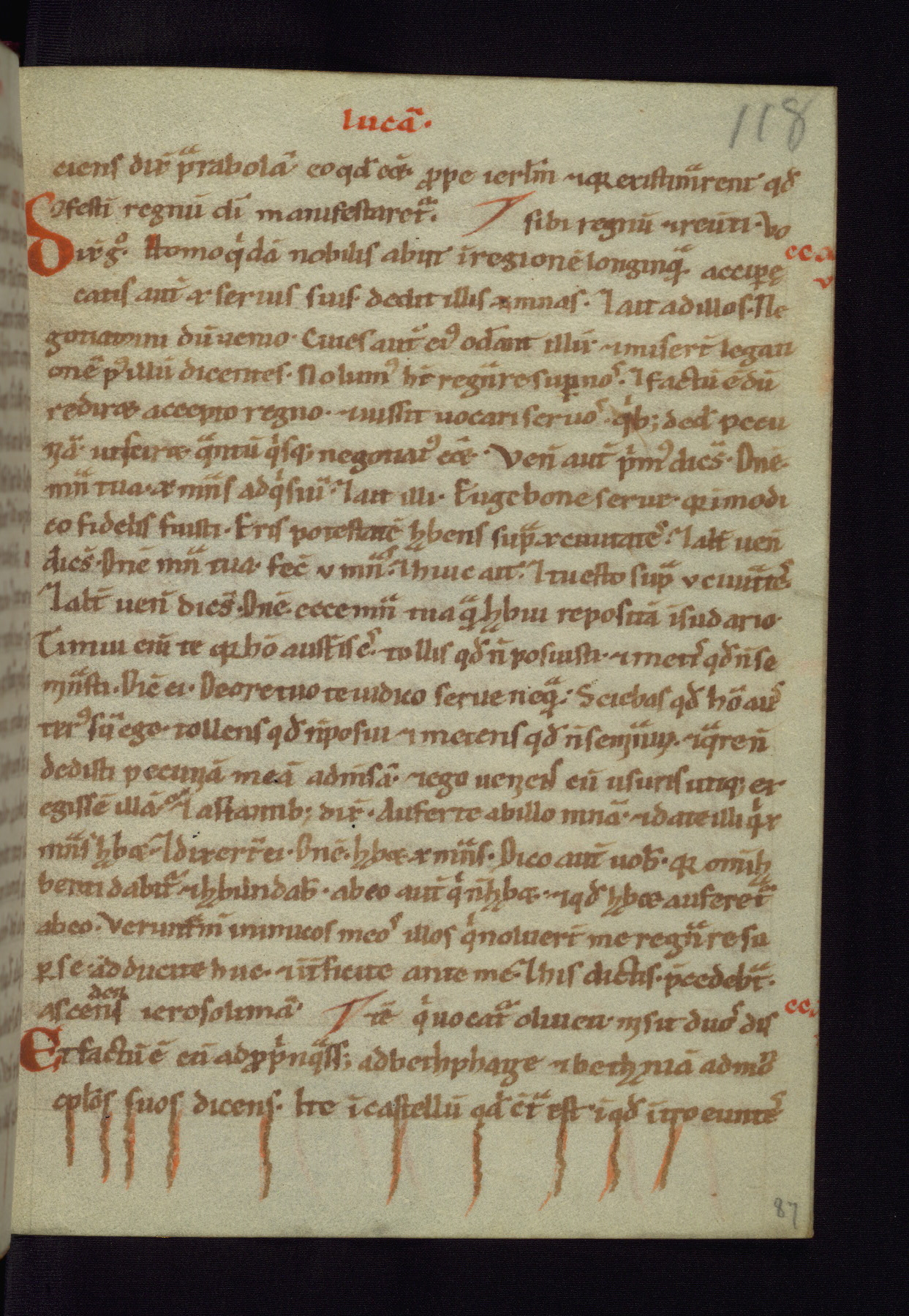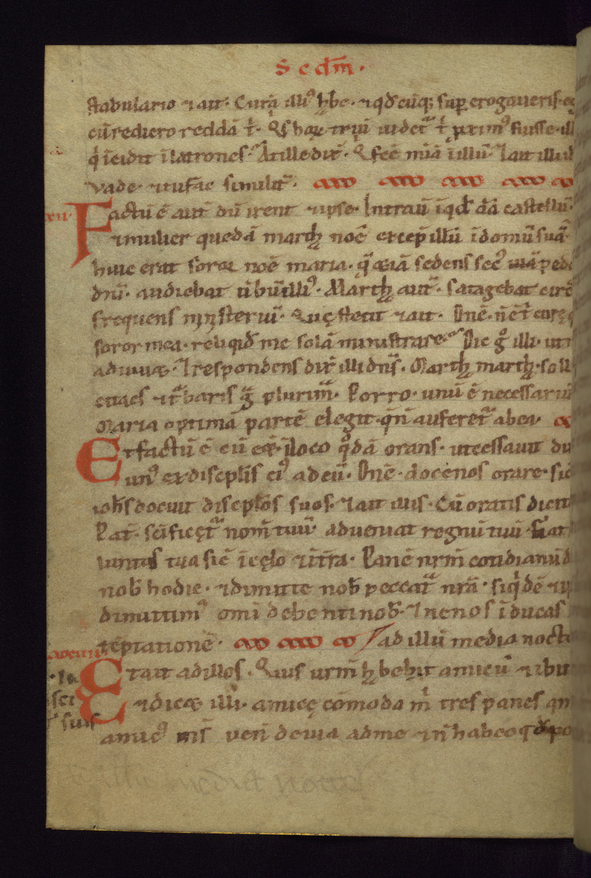This small Gospel Book was made in Werden, Germany, in the eleventh century. Its size indicates that it was intended for daily, personal use, and a series of ownership inscriptions on the first folio, which trace the ownership of the manuscript among several members of the clergy, provides insight into its use. Although the book contains little decoration, with no canon tables or ornamental initials, the Gospels are introduced by three brown- and red-ink pen drawings of the Evangelists, two of which were embedded into the end of the previous Gospel by the artist. The manuscript is, however, incomplete and lacks the end of Matthew as well as the portrait of Mark, which was likely incorporated into Matthew's explicit page, as was done with the other portraits.