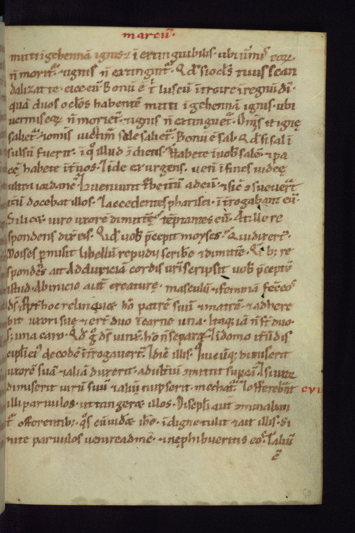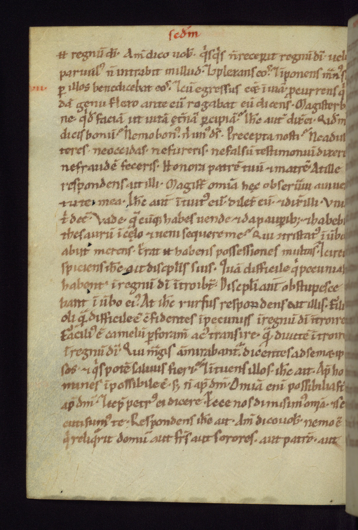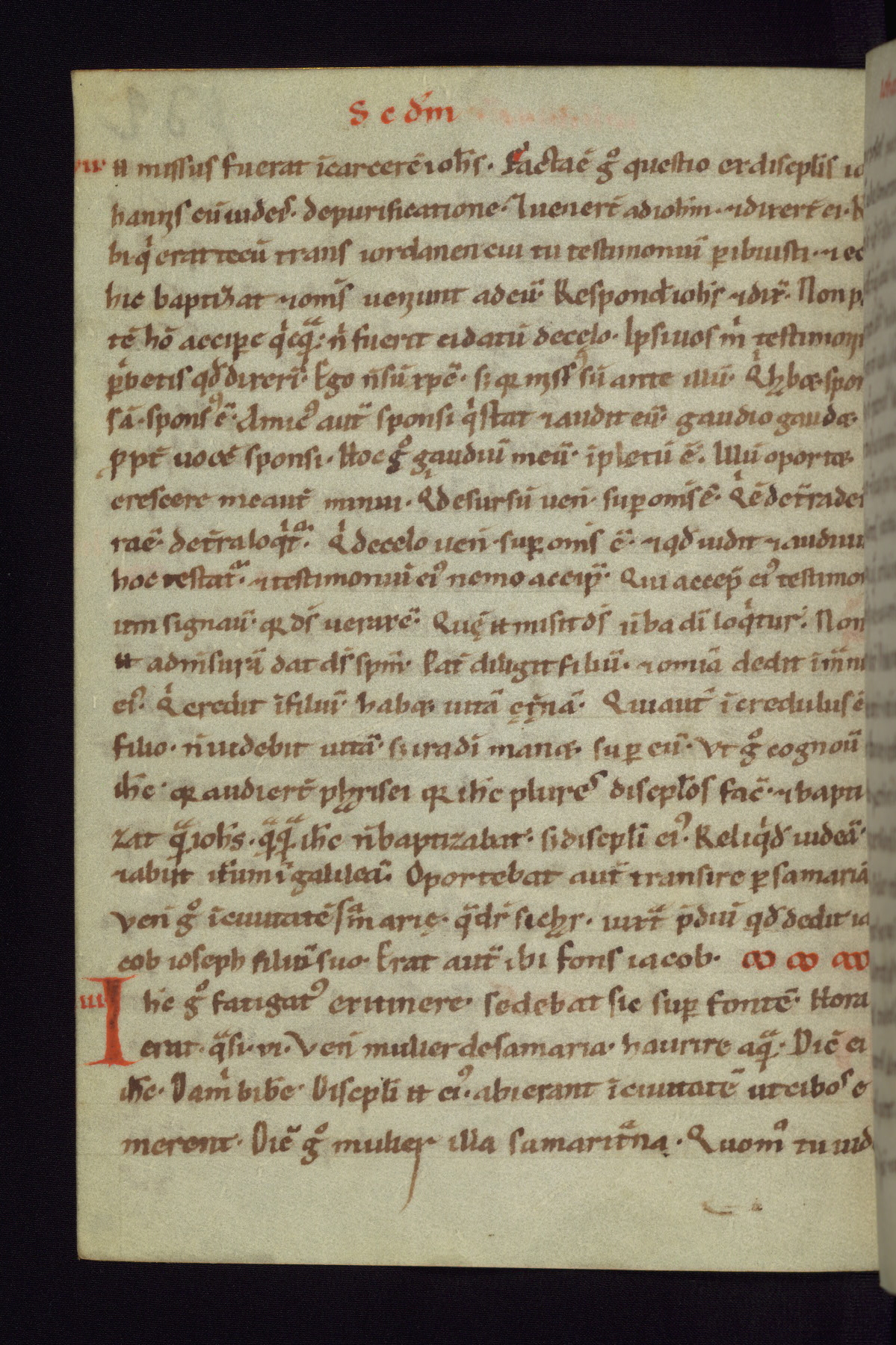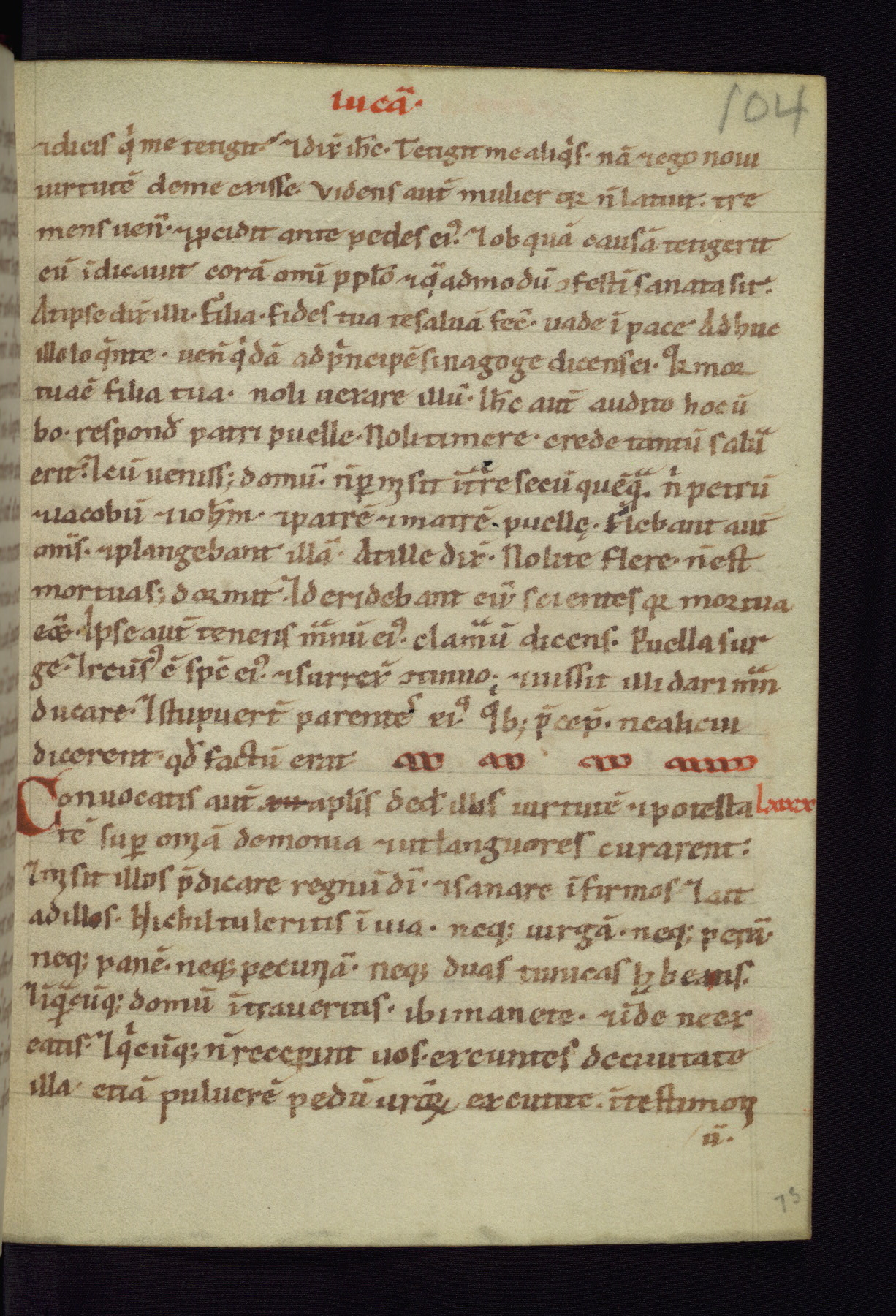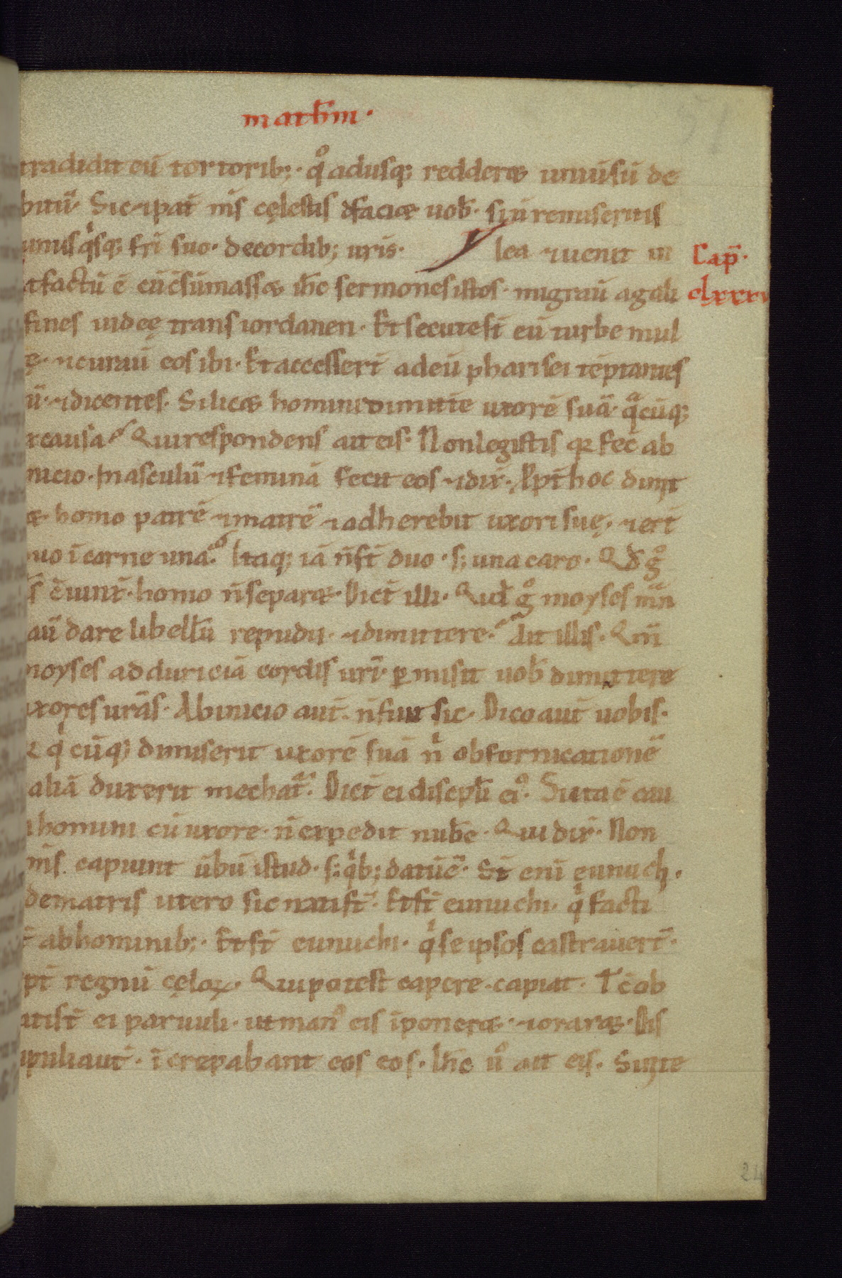 This small Gospel Book was made in Werden, Germany, in the eleventh century. Its size indicates that it was intended for daily, personal use, and a series of ownership inscriptions on the first folio, which trace the ownership of the manuscript among several members of the clergy, provides insight into its use. Although the book contains little decoration, with no canon tables or ornamental initials, the Gospels are introduced by three brown- and red-ink pen drawings of the Evangelists, two of which were embedded into the end of the previous Gospel by the artist. The manuscript is, however, incomplete and lacks the end of Matthew as well as the portrait of Mark, which was likely incorporated into Matthew's explicit page, as was done with the other portraits.