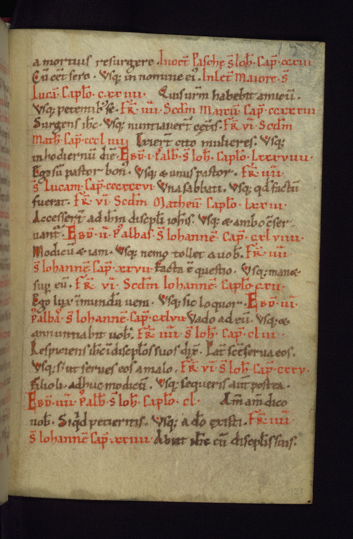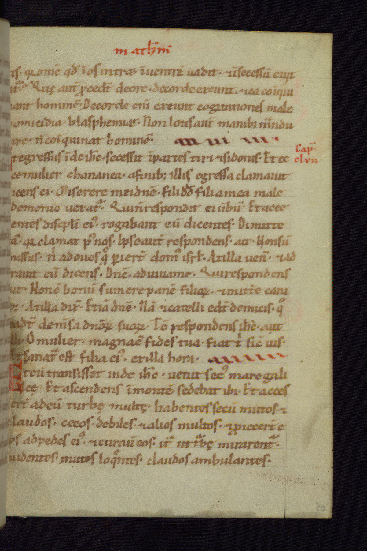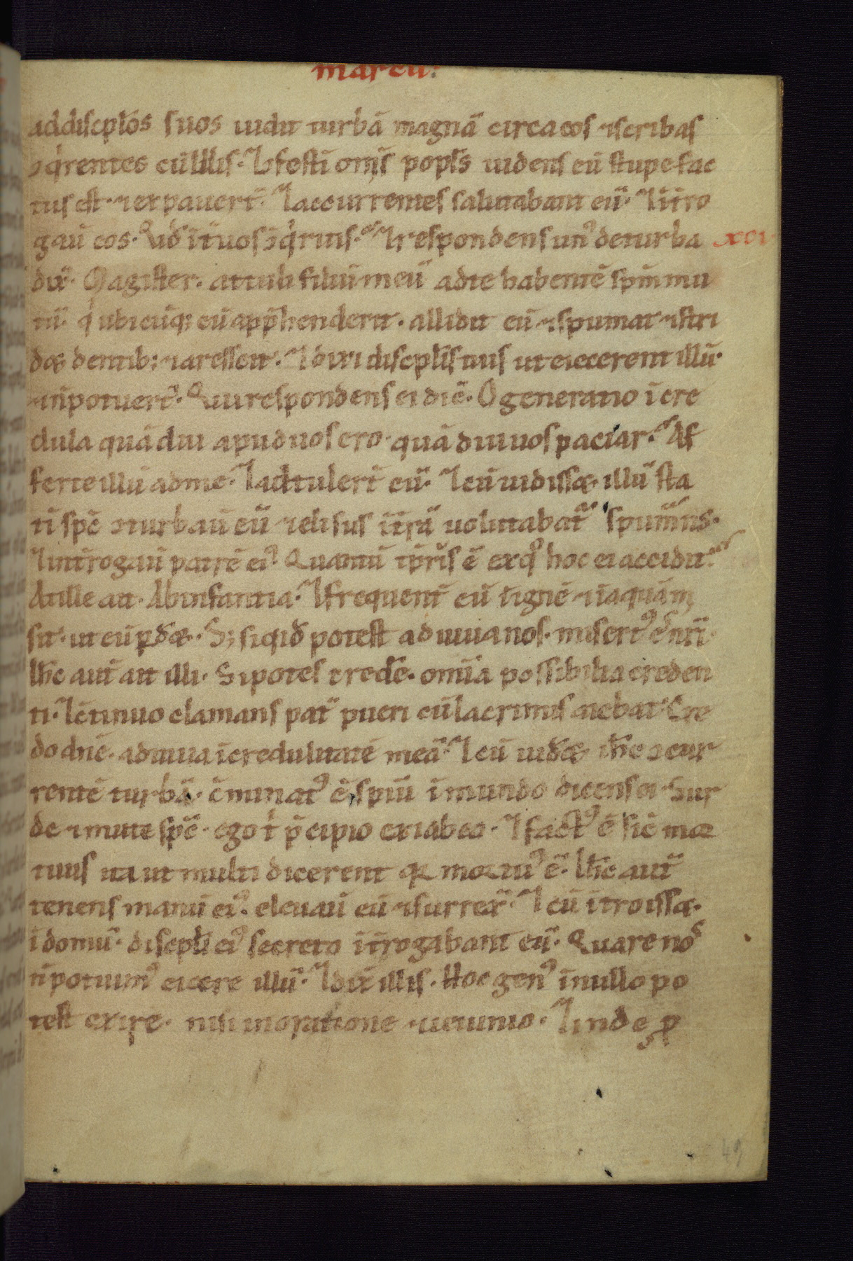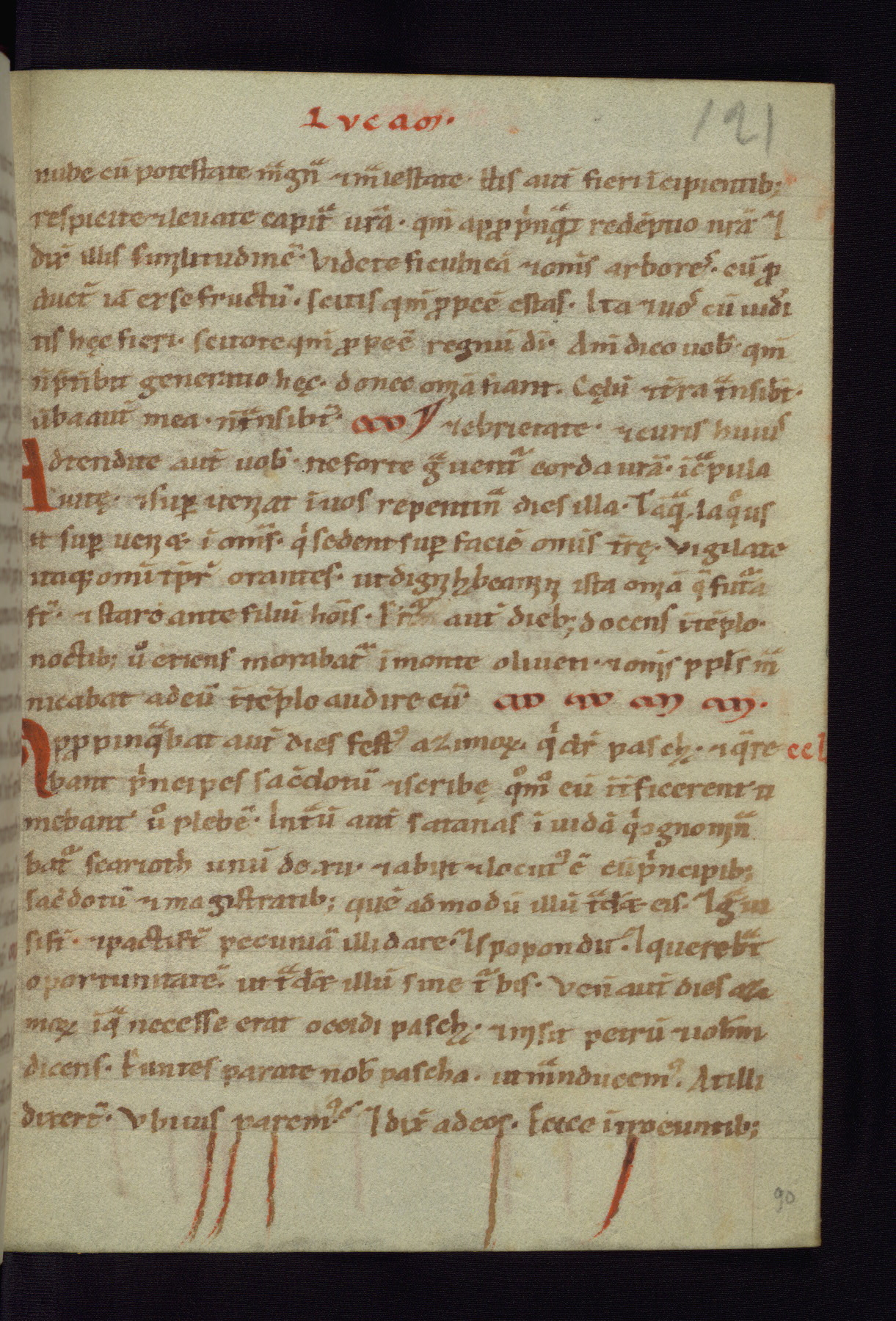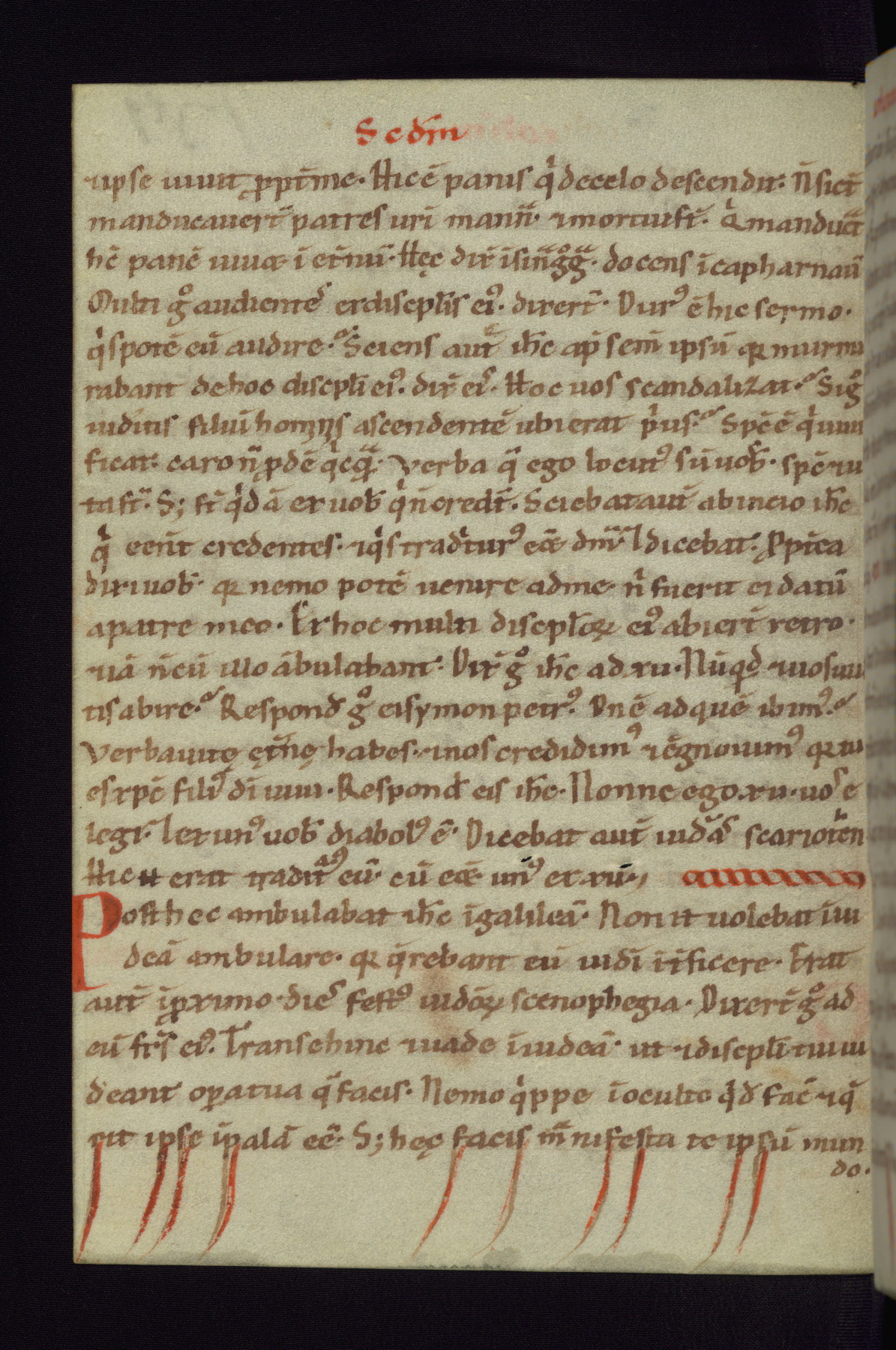 This small Gospel Book was made in Werden, Germany, in the eleventh century. Its size indicates that it was intended for daily, personal use, and a series of ownership inscriptions on the first folio, which trace the ownership of the manuscript among several members of the clergy, provides insight into its use. Although the book contains little decoration, with no canon tables or ornamental initials, the Gospels are introduced by three brown- and red-ink pen drawings of the Evangelists, two of which were embedded into the end of the previous Gospel by the artist. The manuscript is, however, incomplete and lacks the end of Matthew as well as the portrait of Mark, which was likely incorporated into Matthew's explicit page, as was done with the other portraits.