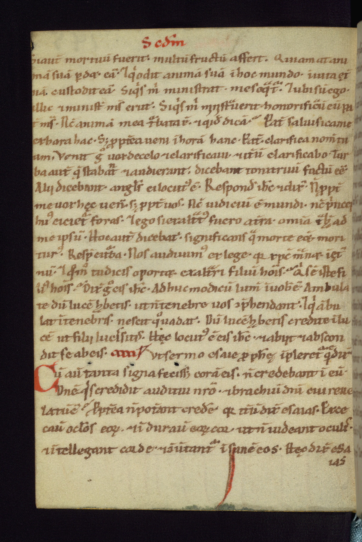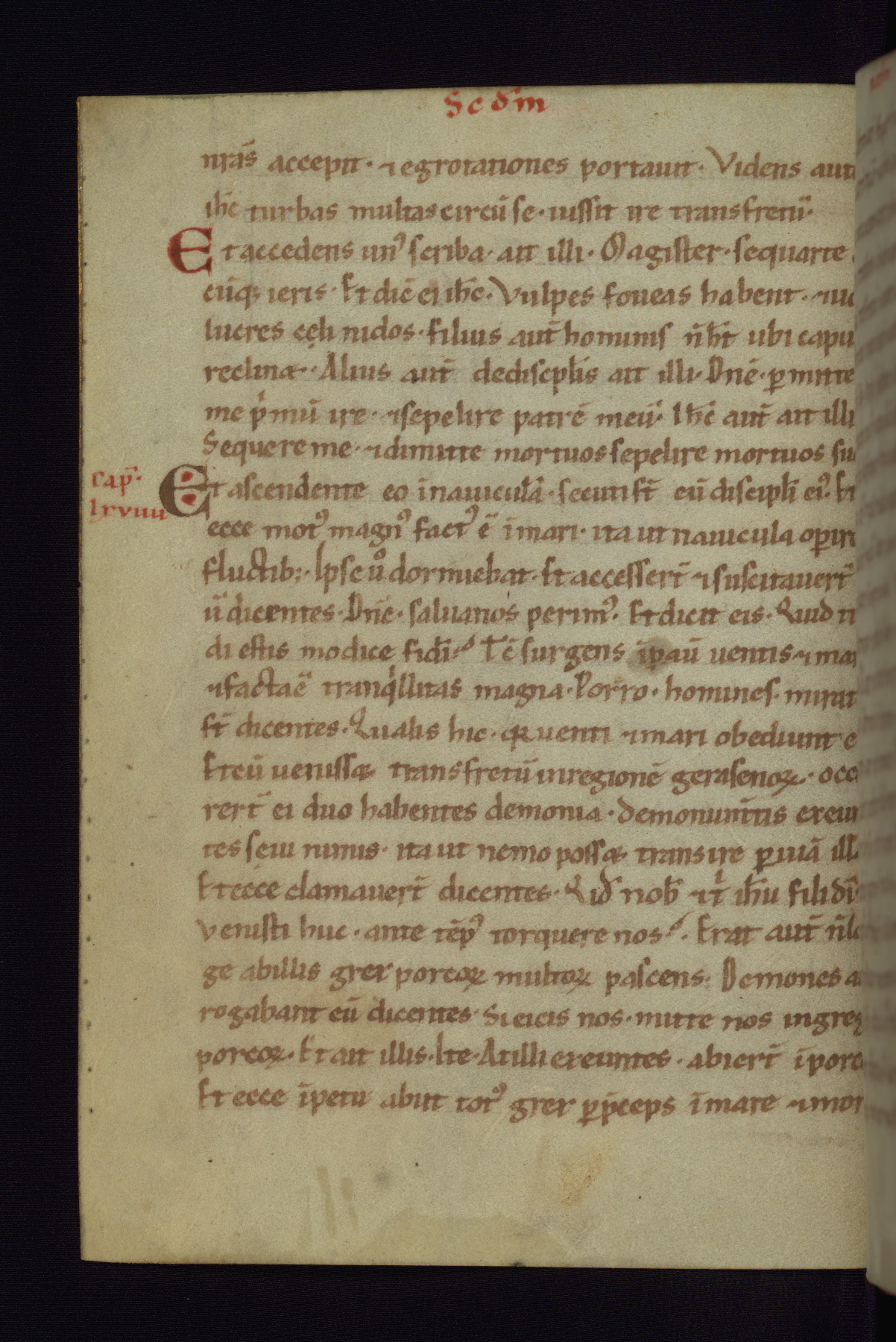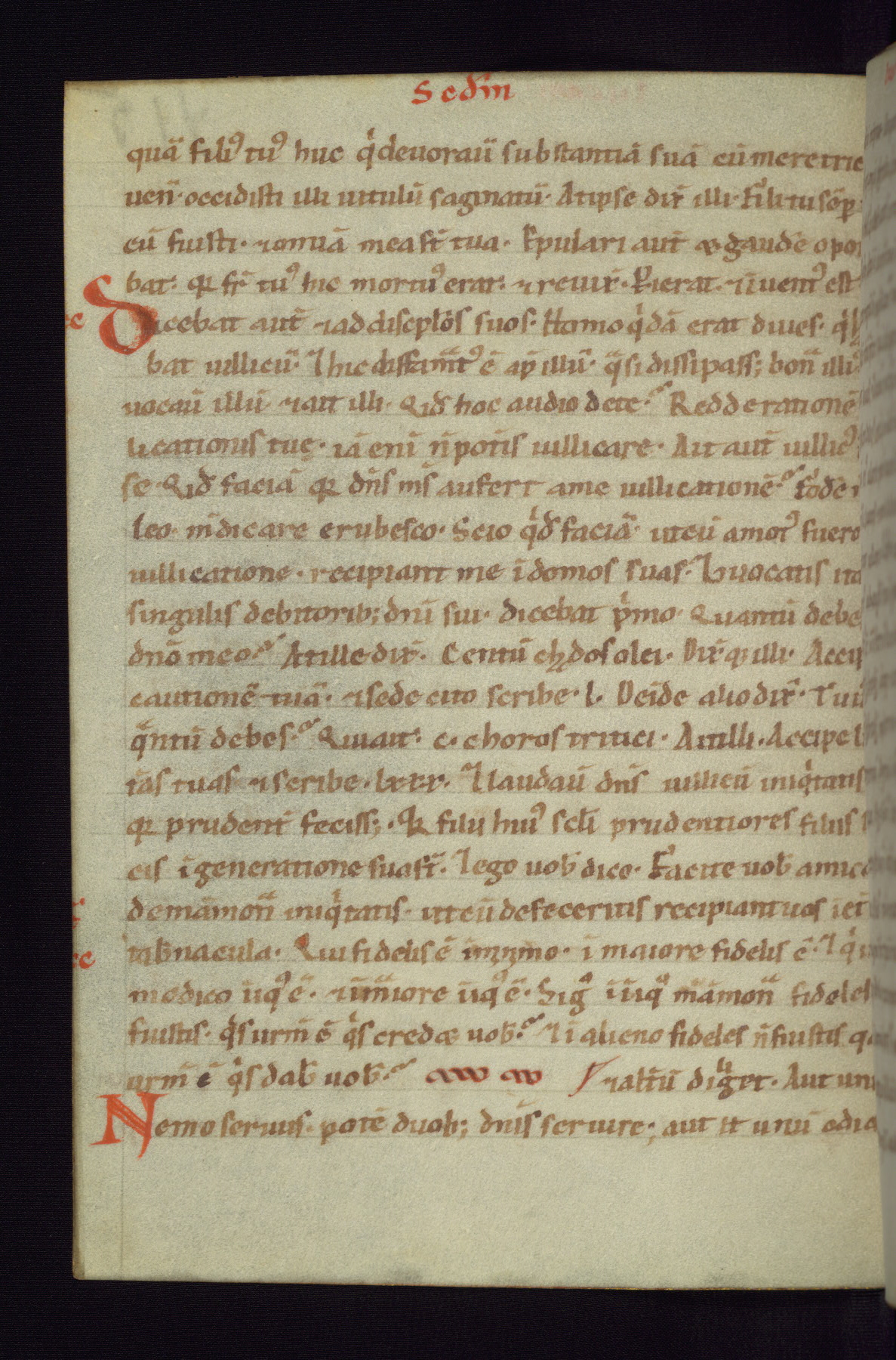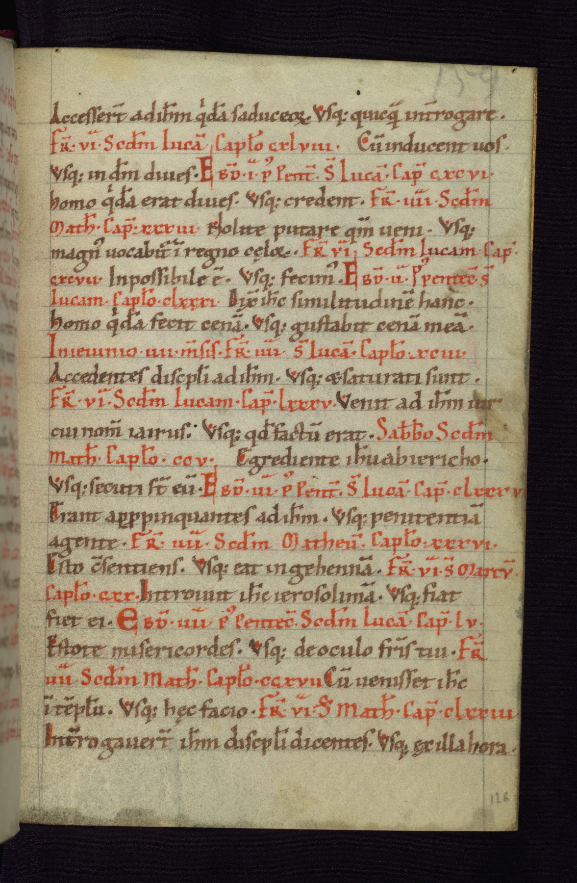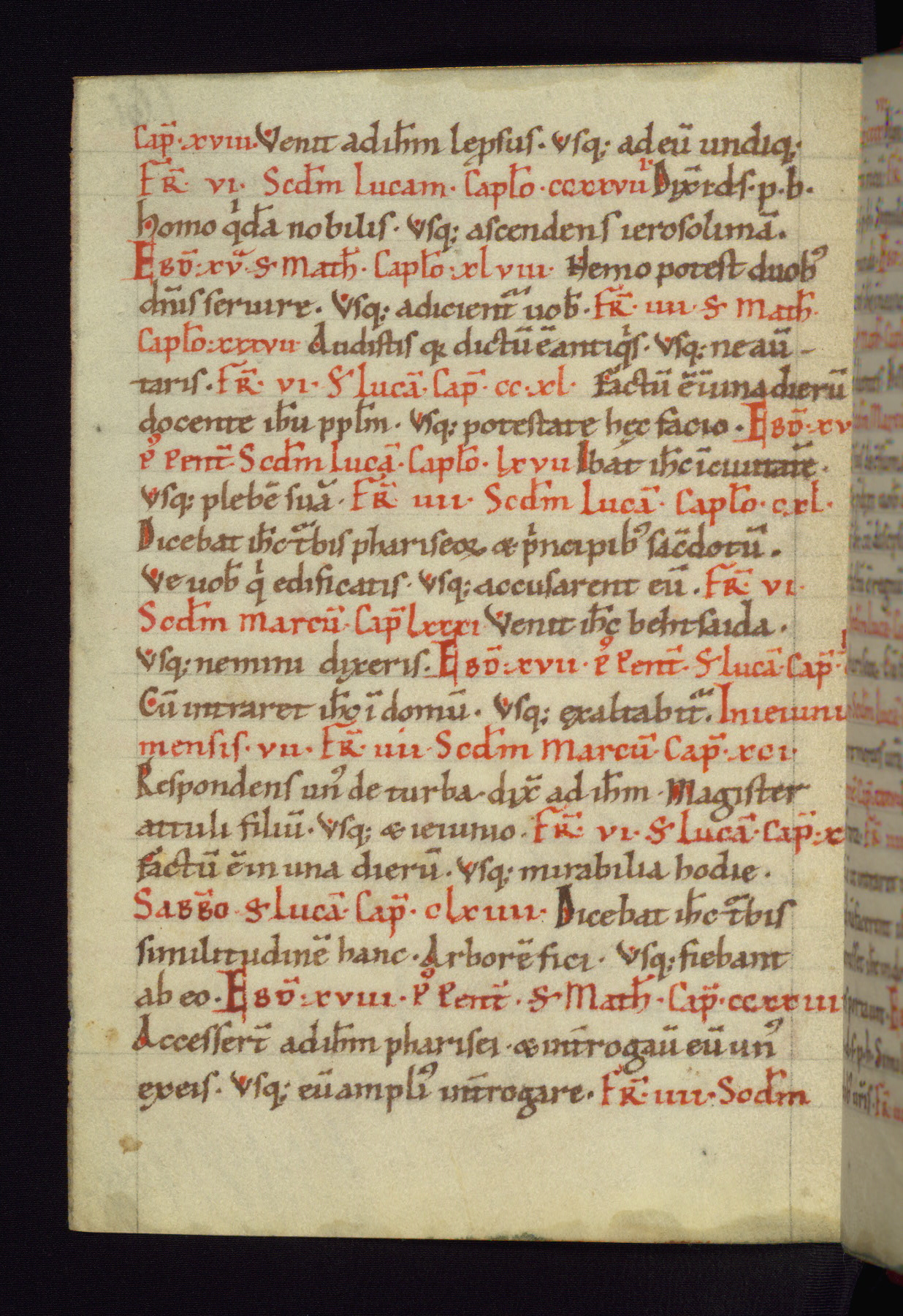 This small Gospel Book was made in Werden, Germany, in the eleventh century. Its size indicates that it was intended for daily, personal use, and a series of ownership inscriptions on the first folio, which trace the ownership of the manuscript among several members of the clergy, provides insight into its use. Although the book contains little decoration, with no canon tables or ornamental initials, the Gospels are introduced by three brown- and red-ink pen drawings of the Evangelists, two of which were embedded into the end of the previous Gospel by the artist. The manuscript is, however, incomplete and lacks the end of Matthew as well as the portrait of Mark, which was likely incorporated into Matthew's explicit page, as was done with the other portraits.