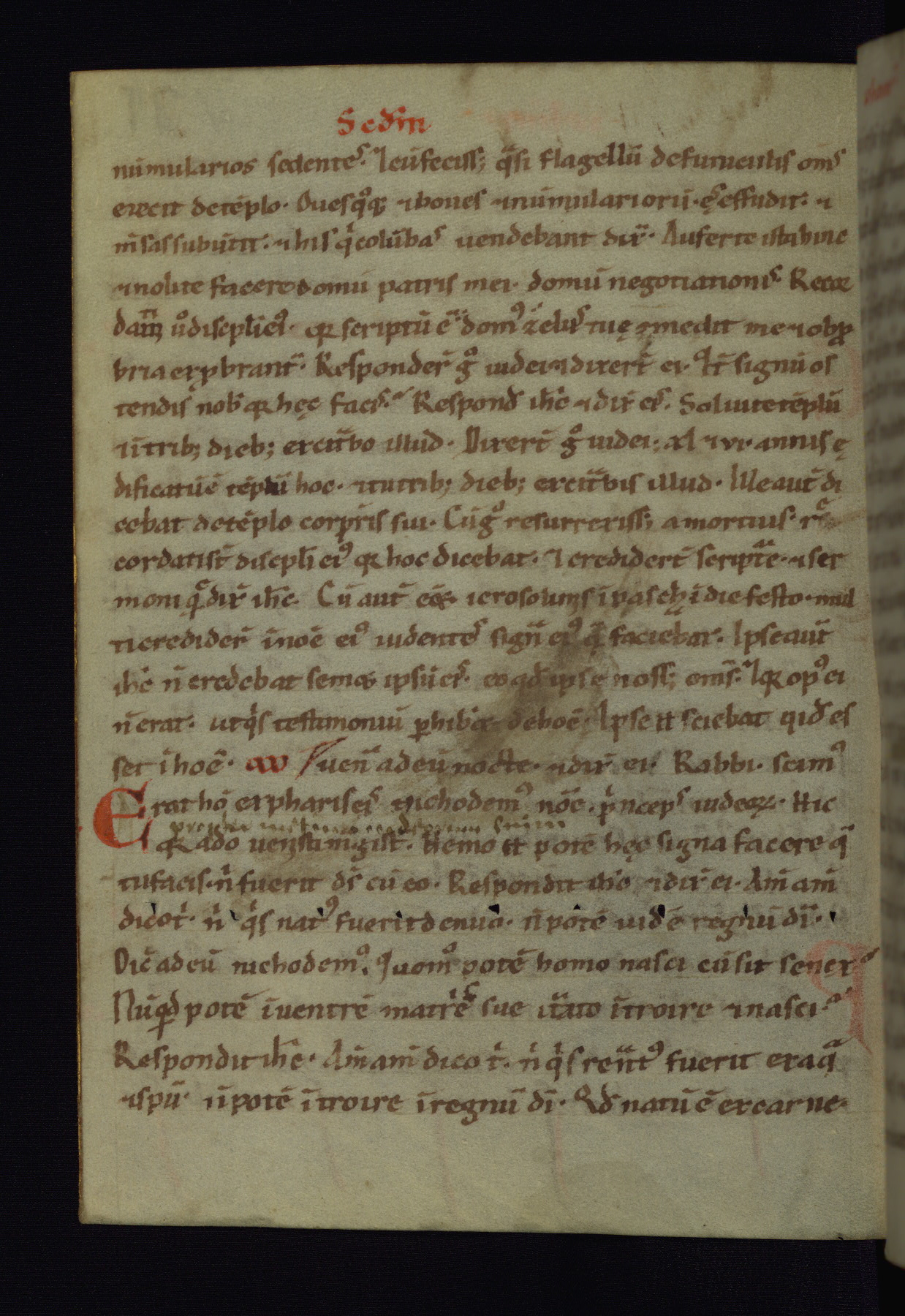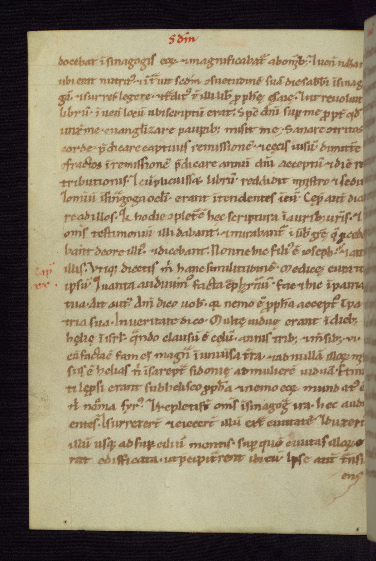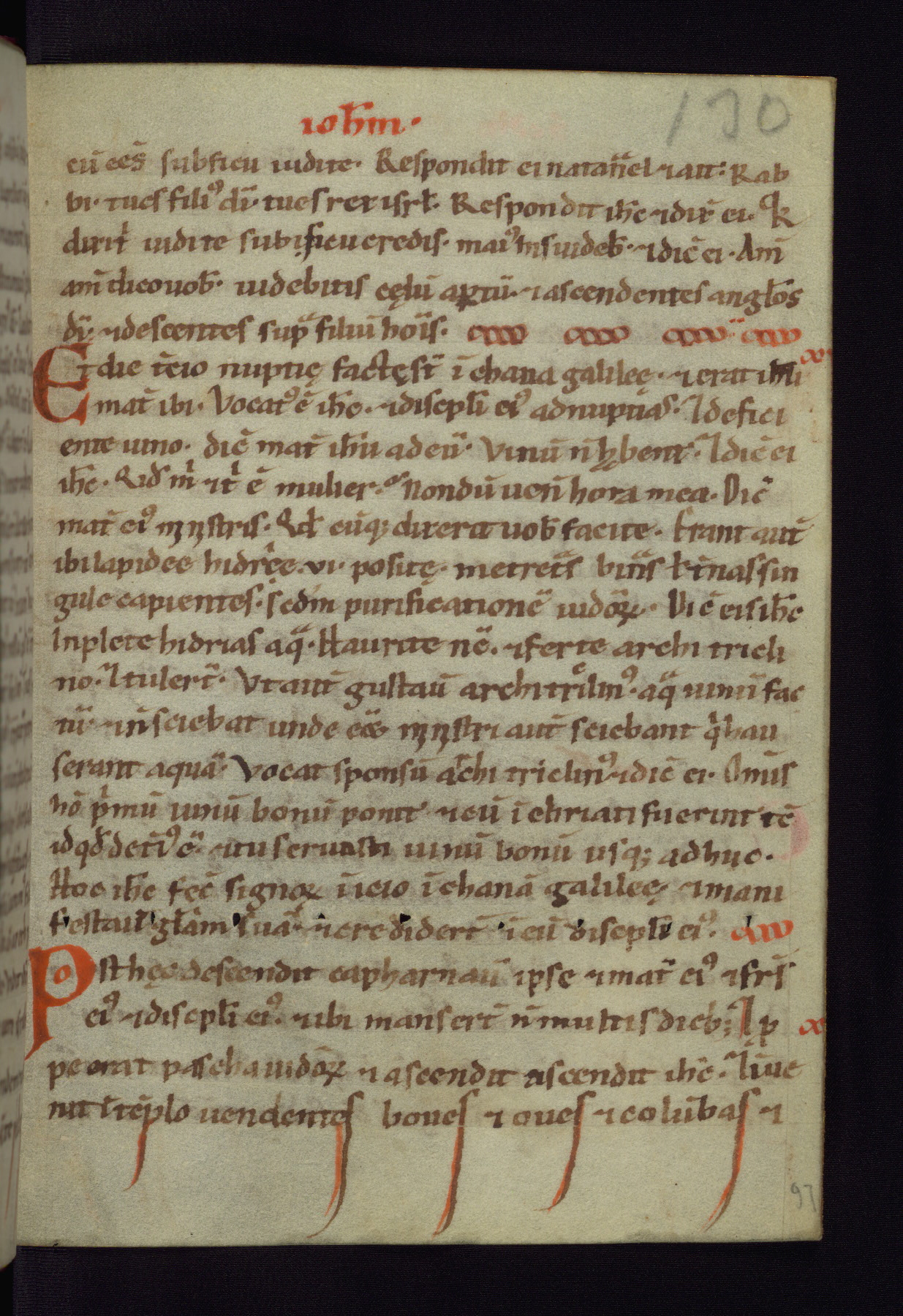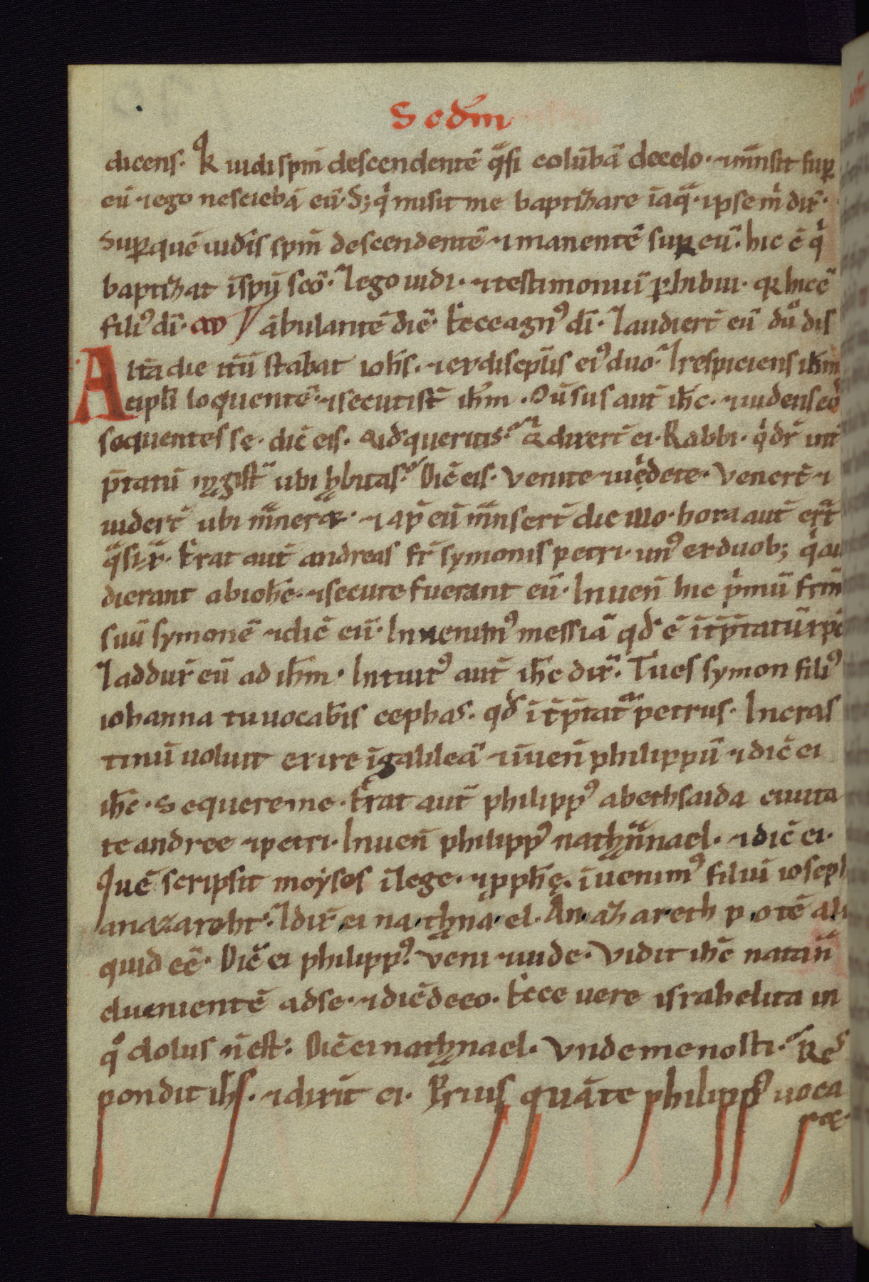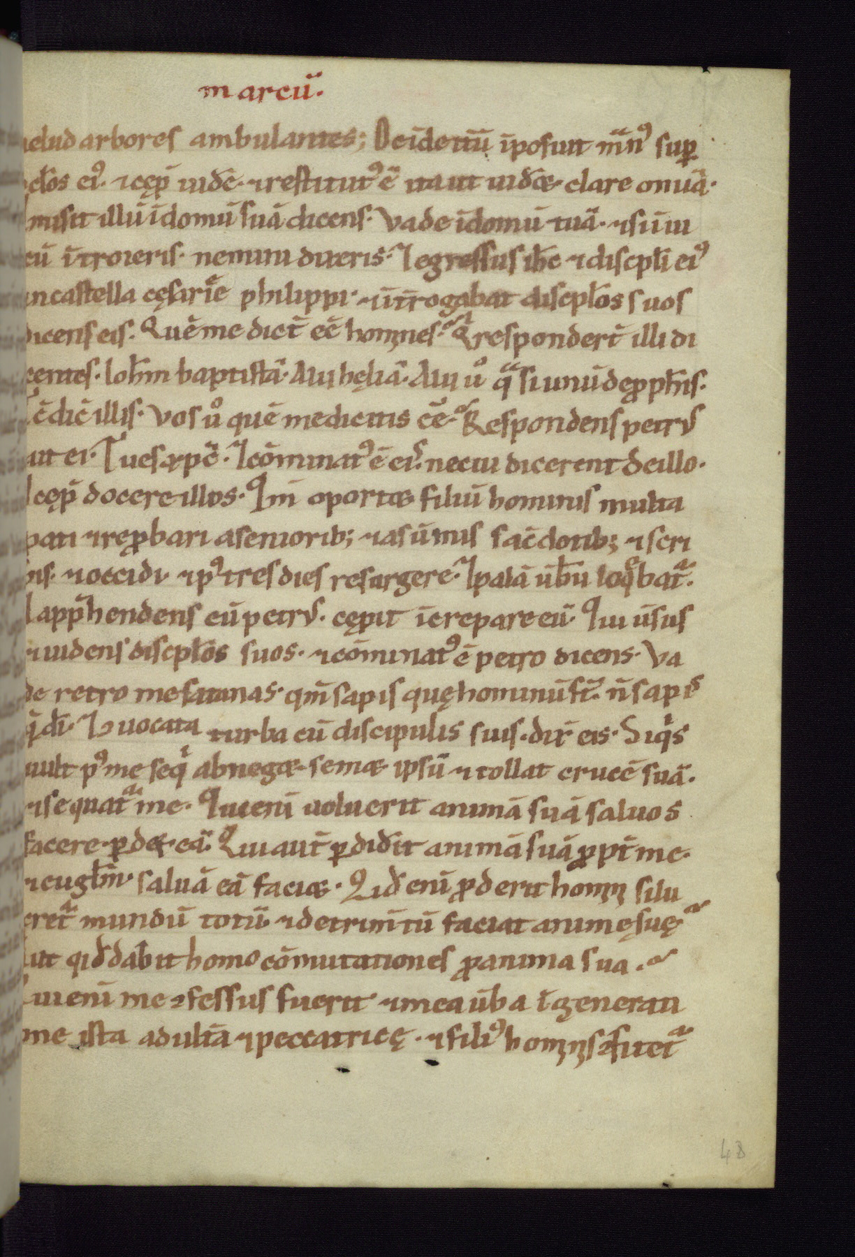 This small Gospel Book was made in Werden, Germany, in the eleventh century. Its size indicates that it was intended for daily, personal use, and a series of ownership inscriptions on the first folio, which trace the ownership of the manuscript among several members of the clergy, provides insight into its use. Although the book contains little decoration, with no canon tables or ornamental initials, the Gospels are introduced by three brown- and red-ink pen drawings of the Evangelists, two of which were embedded into the end of the previous Gospel by the artist. The manuscript is, however, incomplete and lacks the end of Matthew as well as the portrait of Mark, which was likely incorporated into Matthew's explicit page, as was done with the other portraits.