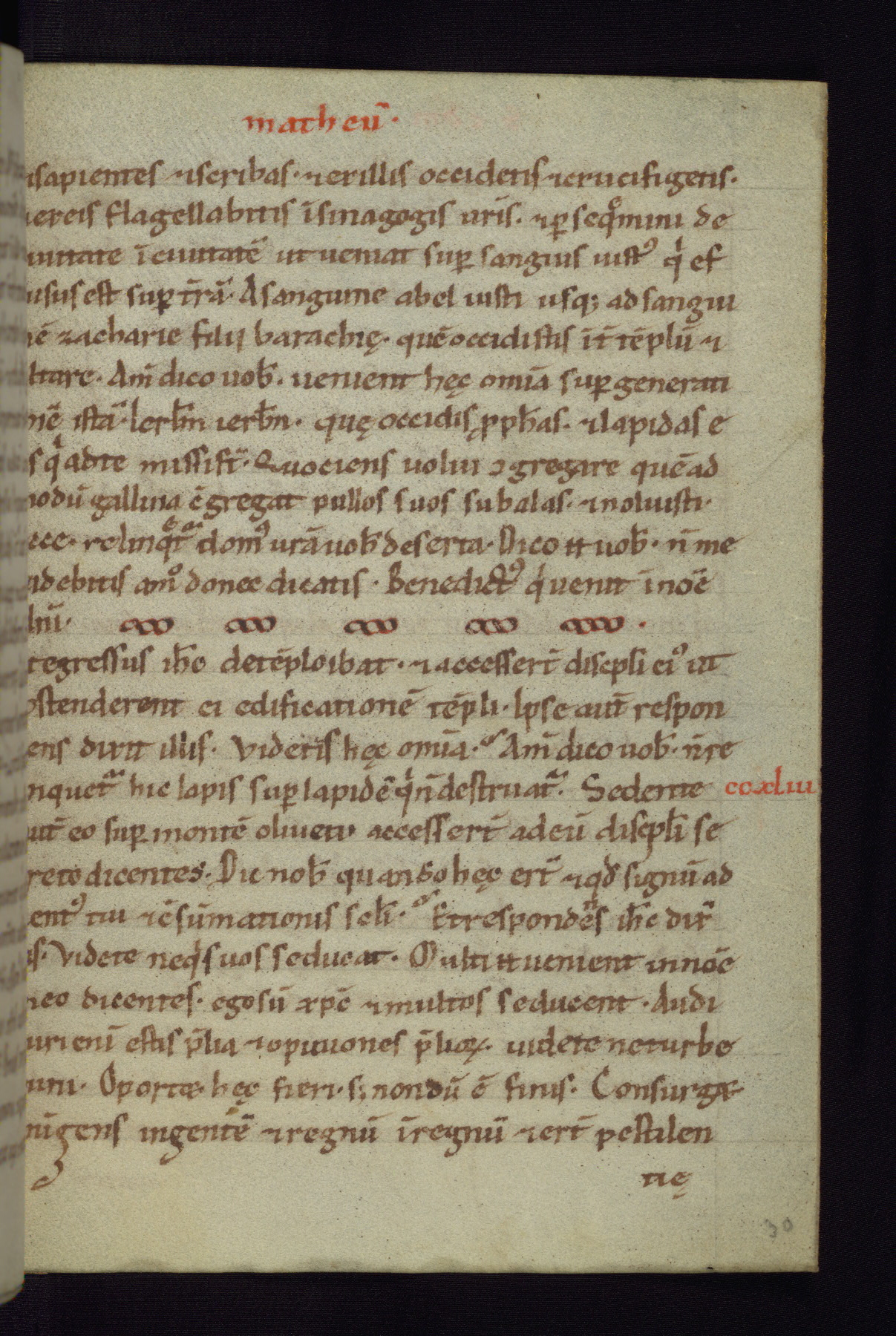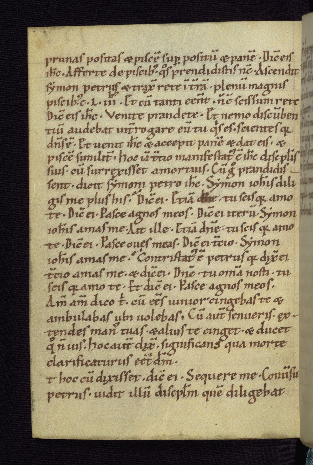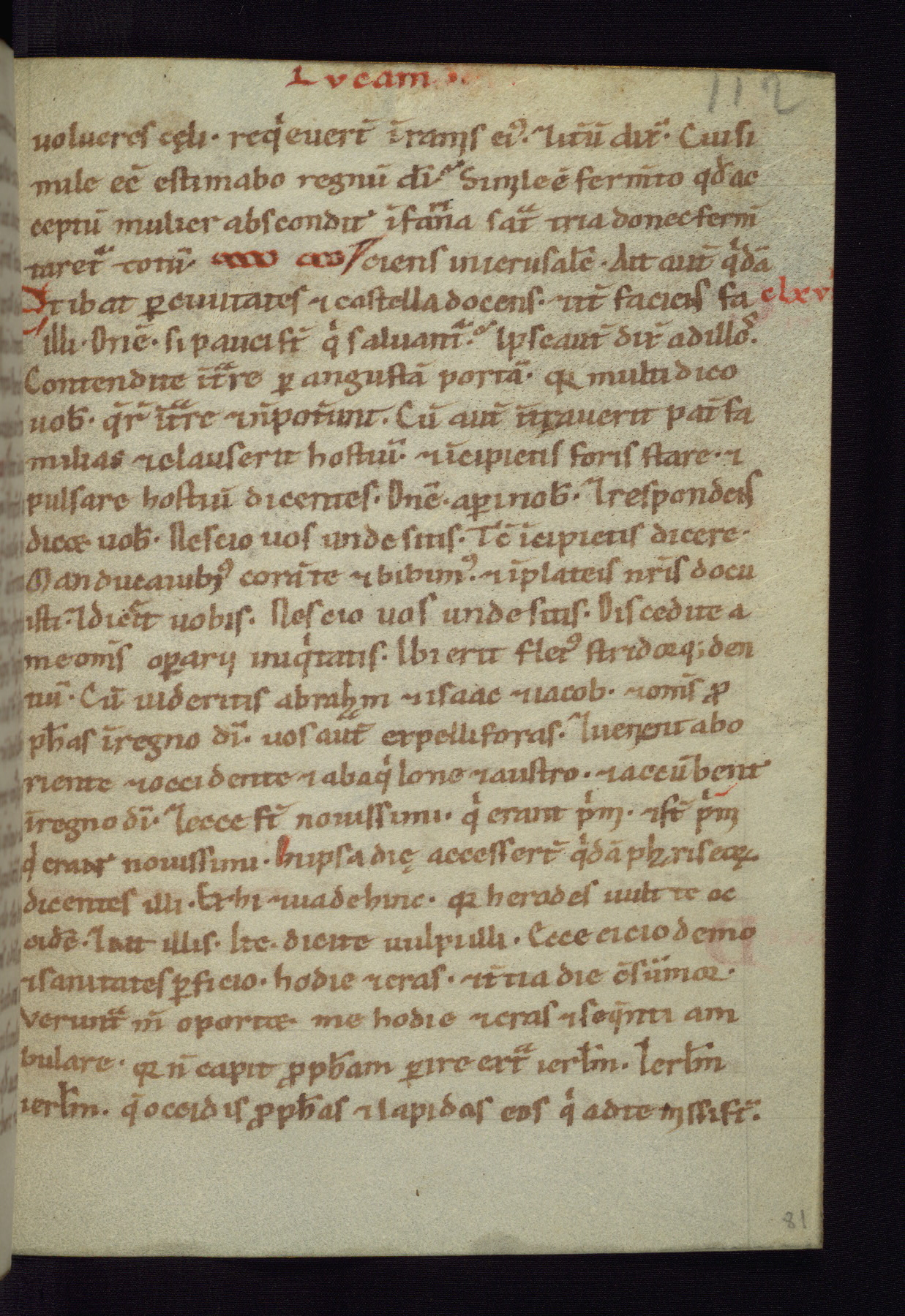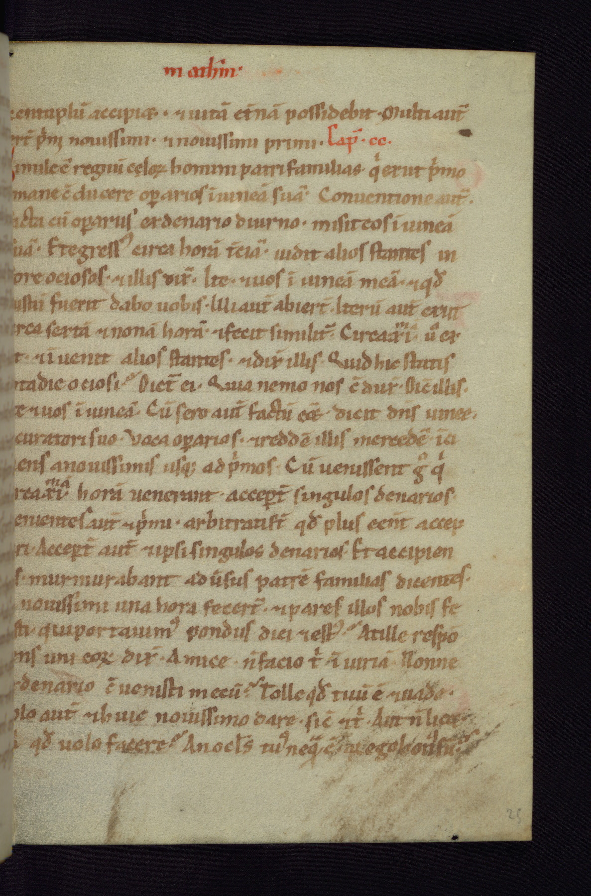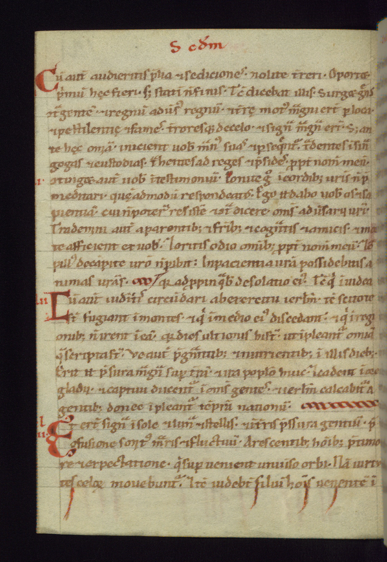 This small Gospel Book was made in Werden, Germany, in the eleventh century. Its size indicates that it was intended for daily, personal use, and a series of ownership inscriptions on the first folio, which trace the ownership of the manuscript among several members of the clergy, provides insight into its use. Although the book contains little decoration, with no canon tables or ornamental initials, the Gospels are introduced by three brown- and red-ink pen drawings of the Evangelists, two of which were embedded into the end of the previous Gospel by the artist. The manuscript is, however, incomplete and lacks the end of Matthew as well as the portrait of Mark, which was likely incorporated into Matthew's explicit page, as was done with the other portraits.