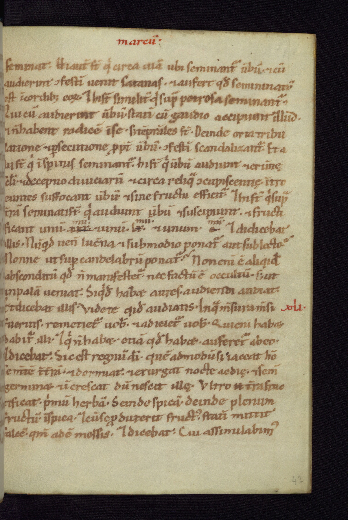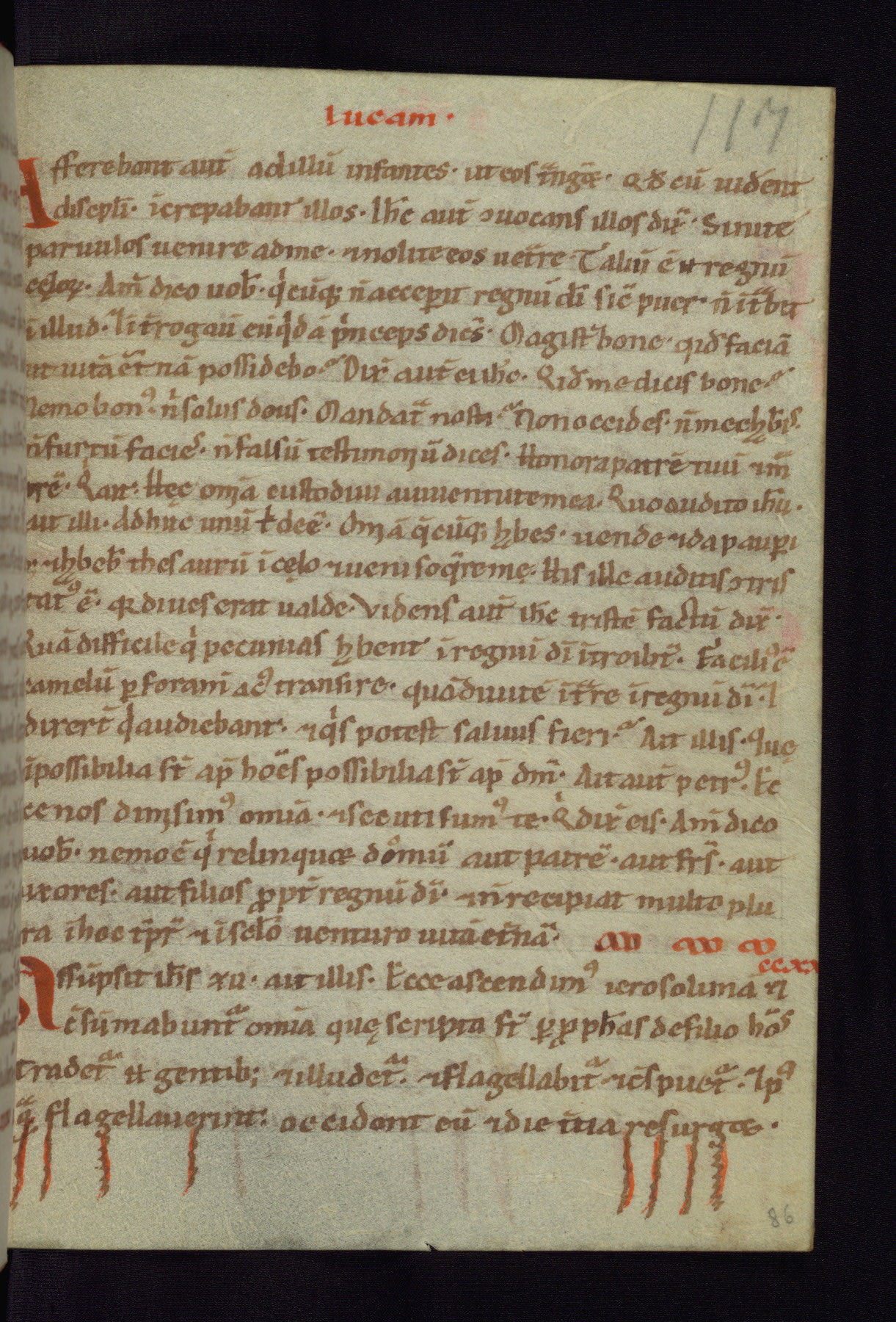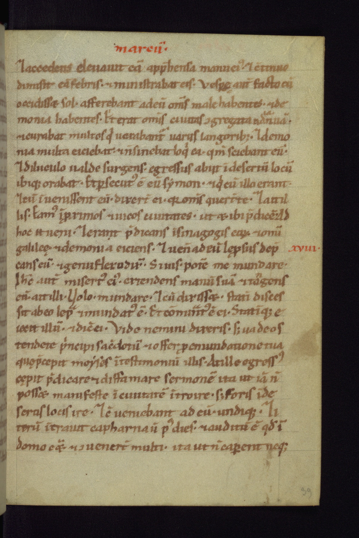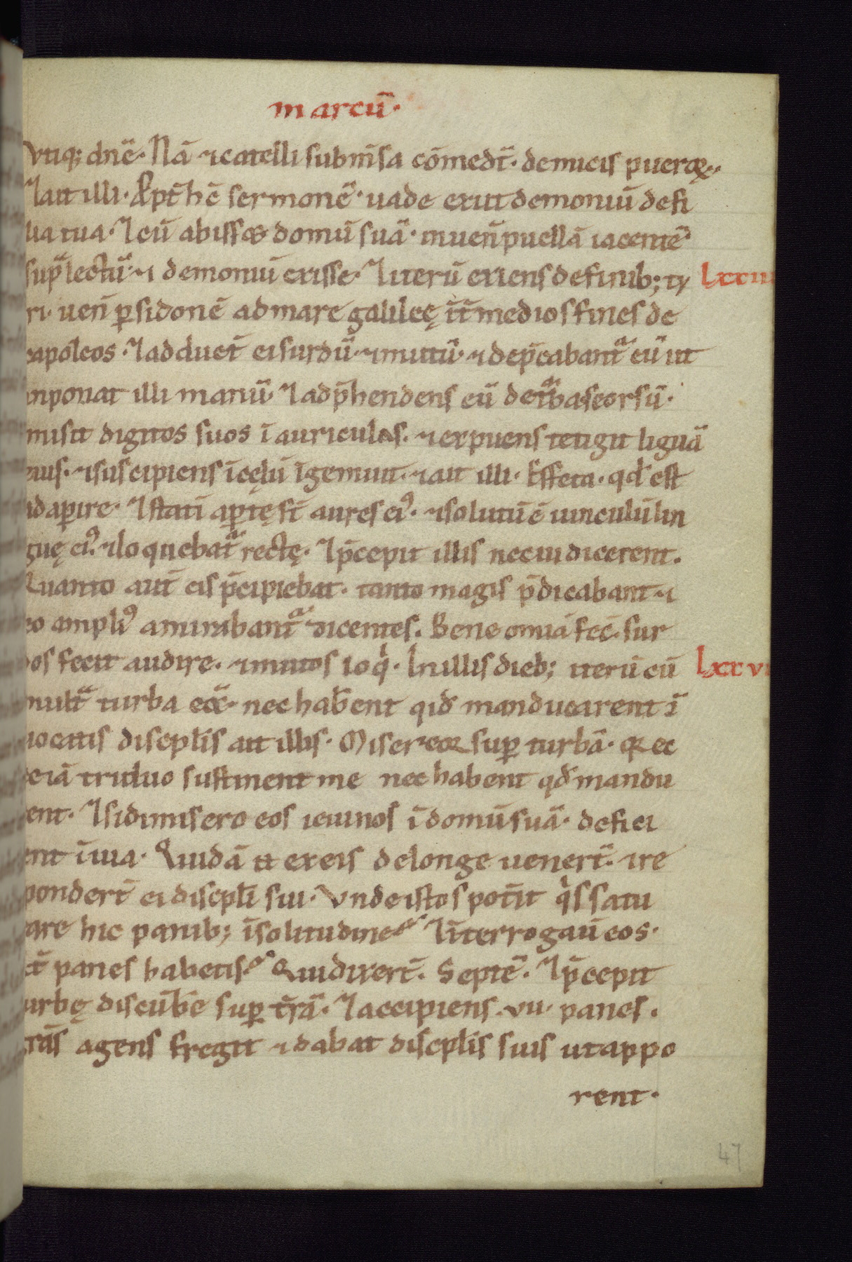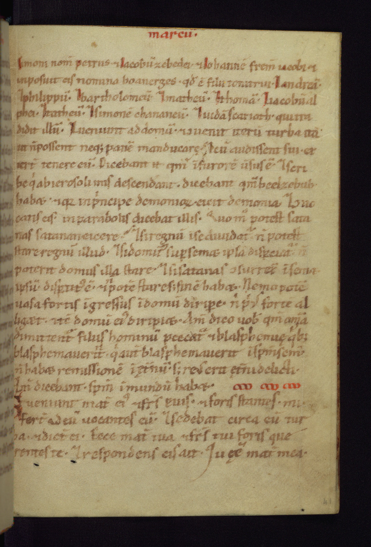 This small Gospel Book was made in Werden, Germany, in the eleventh century. Its size indicates that it was intended for daily, personal use, and a series of ownership inscriptions on the first folio, which trace the ownership of the manuscript among several members of the clergy, provides insight into its use. Although the book contains little decoration, with no canon tables or ornamental initials, the Gospels are introduced by three brown- and red-ink pen drawings of the Evangelists, two of which were embedded into the end of the previous Gospel by the artist. The manuscript is, however, incomplete and lacks the end of Matthew as well as the portrait of Mark, which was likely incorporated into Matthew's explicit page, as was done with the other portraits.