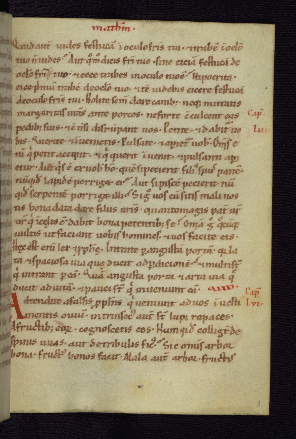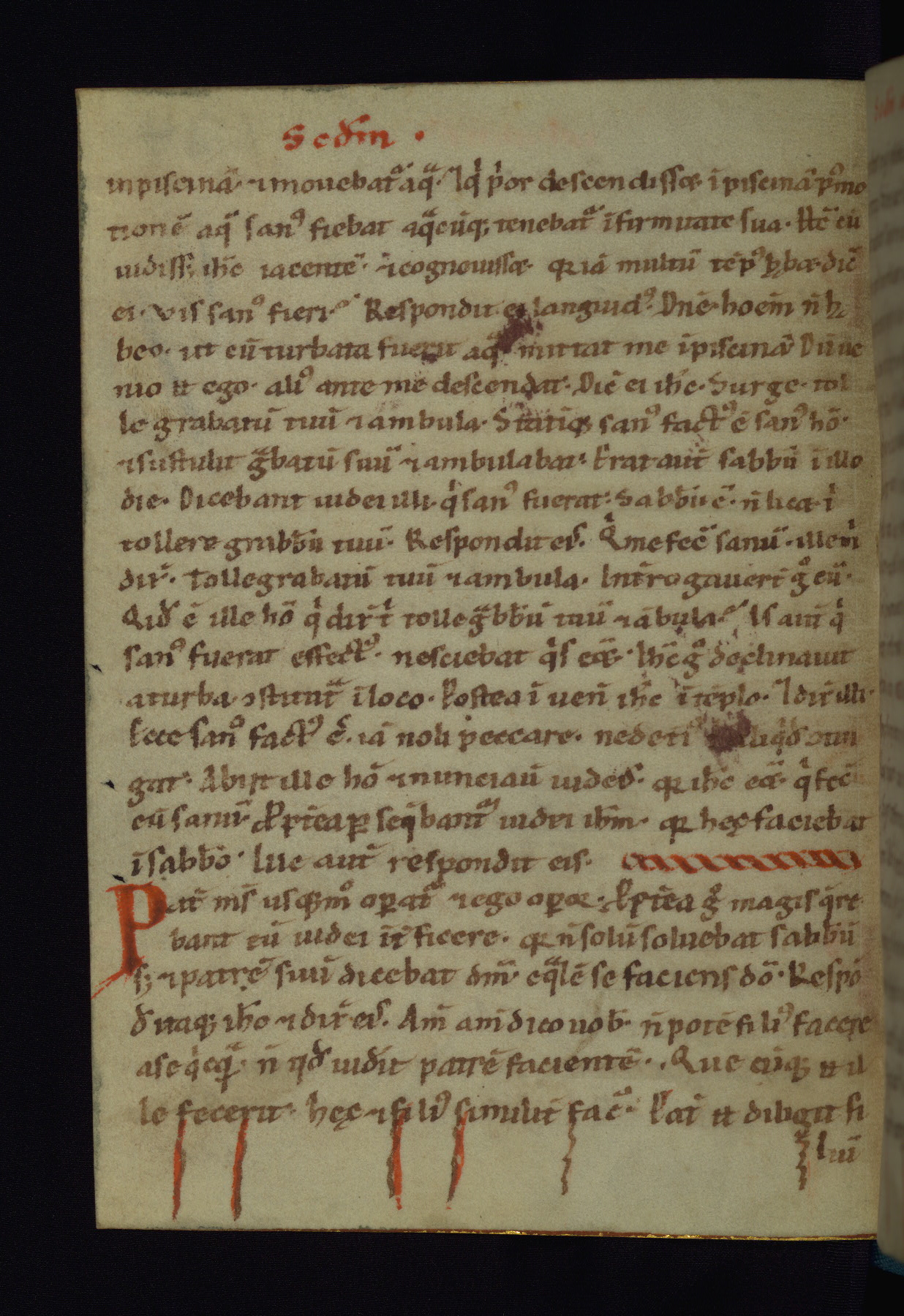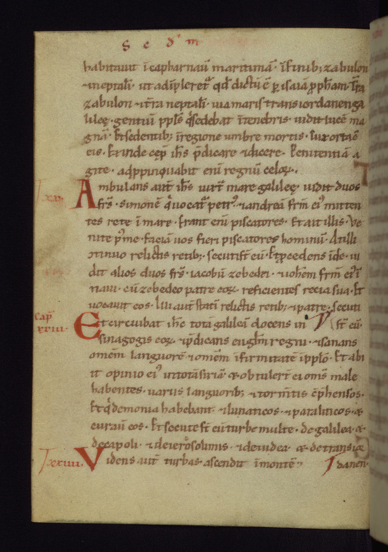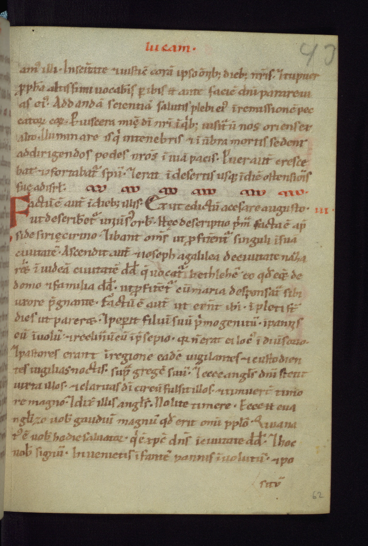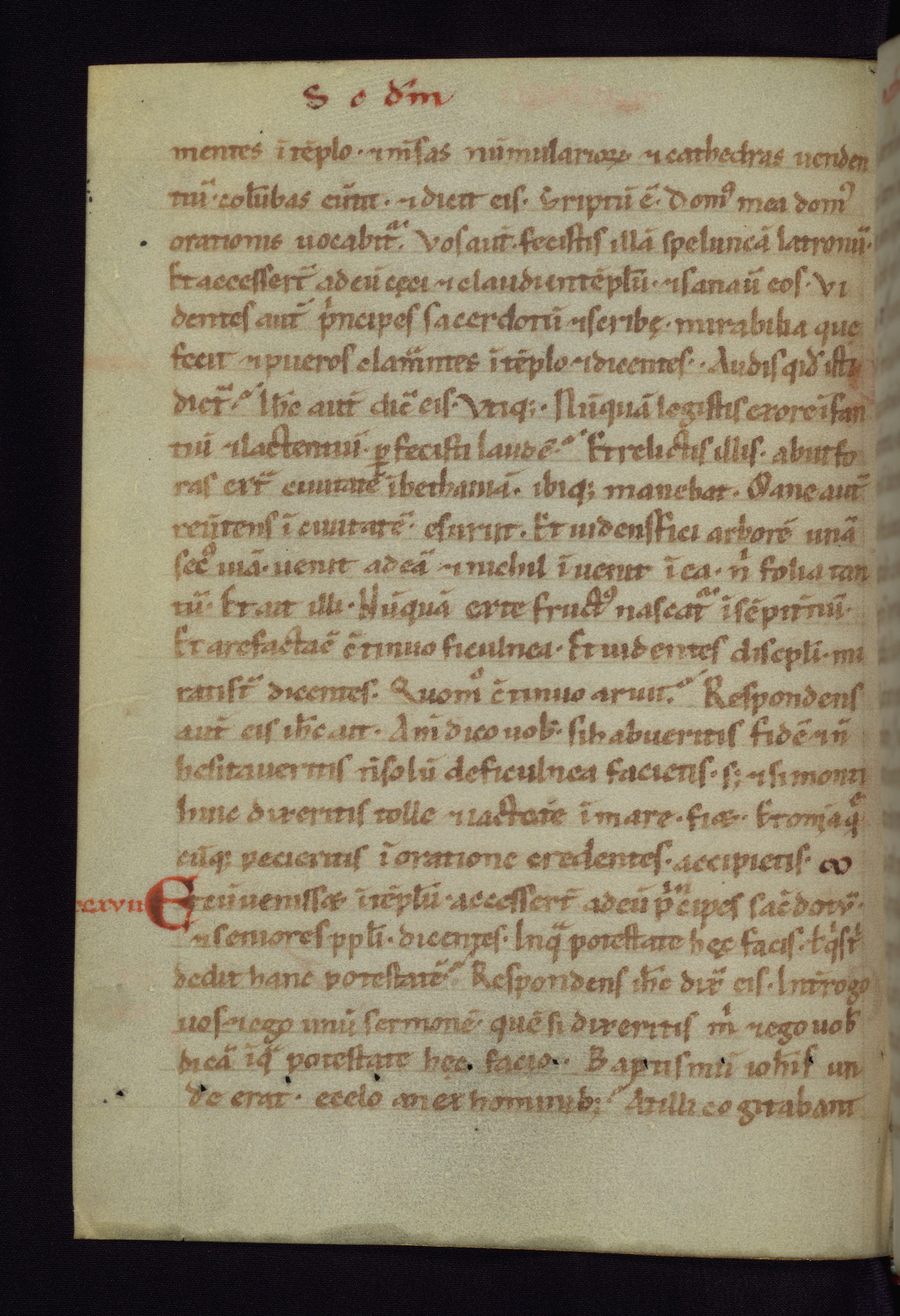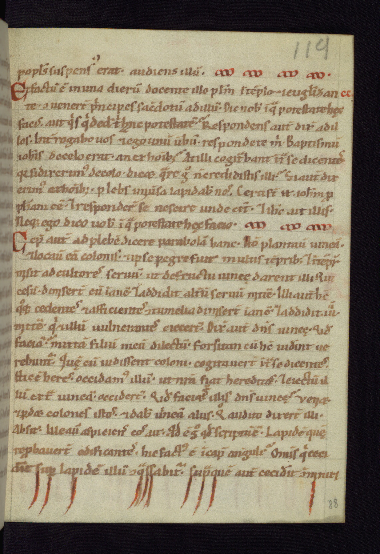 This small Gospel Book was made in Werden, Germany, in the eleventh century. Its size indicates that it was intended for daily, personal use, and a series of ownership inscriptions on the first folio, which trace the ownership of the manuscript among several members of the clergy, provides insight into its use. Although the book contains little decoration, with no canon tables or ornamental initials, the Gospels are introduced by three brown- and red-ink pen drawings of the Evangelists, two of which were embedded into the end of the previous Gospel by the artist. The manuscript is, however, incomplete and lacks the end of Matthew as well as the portrait of Mark, which was likely incorporated into Matthew's explicit page, as was done with the other portraits.