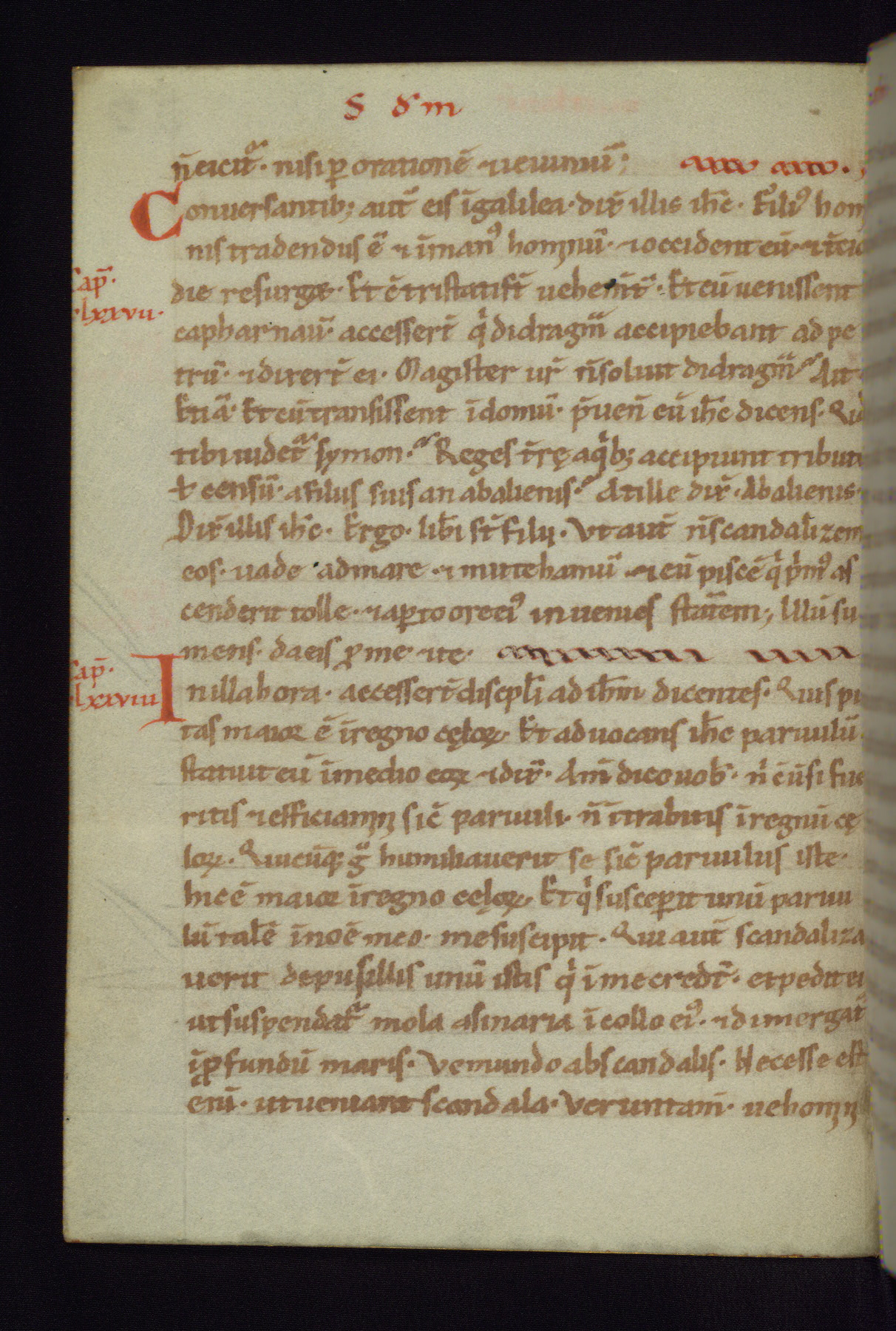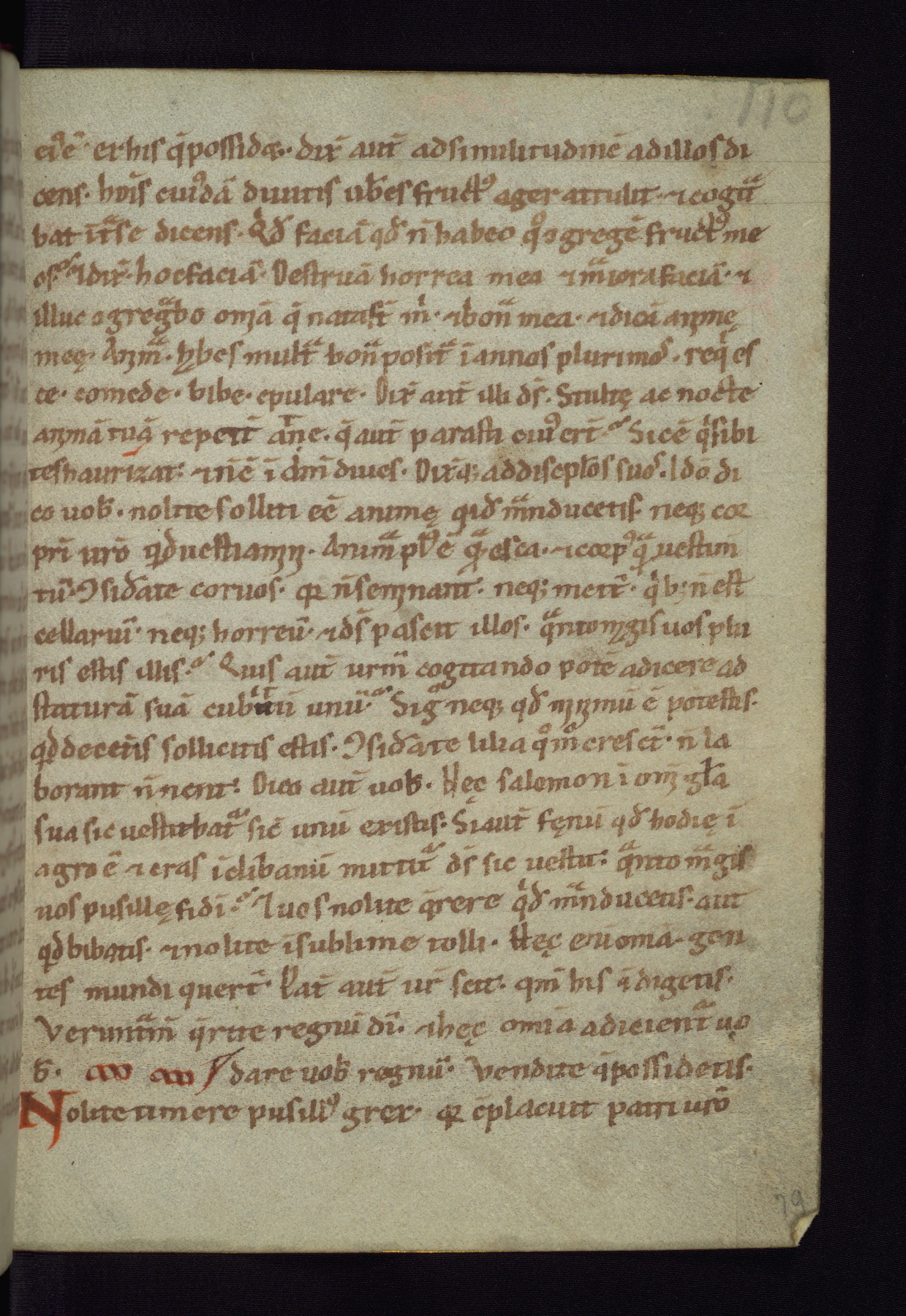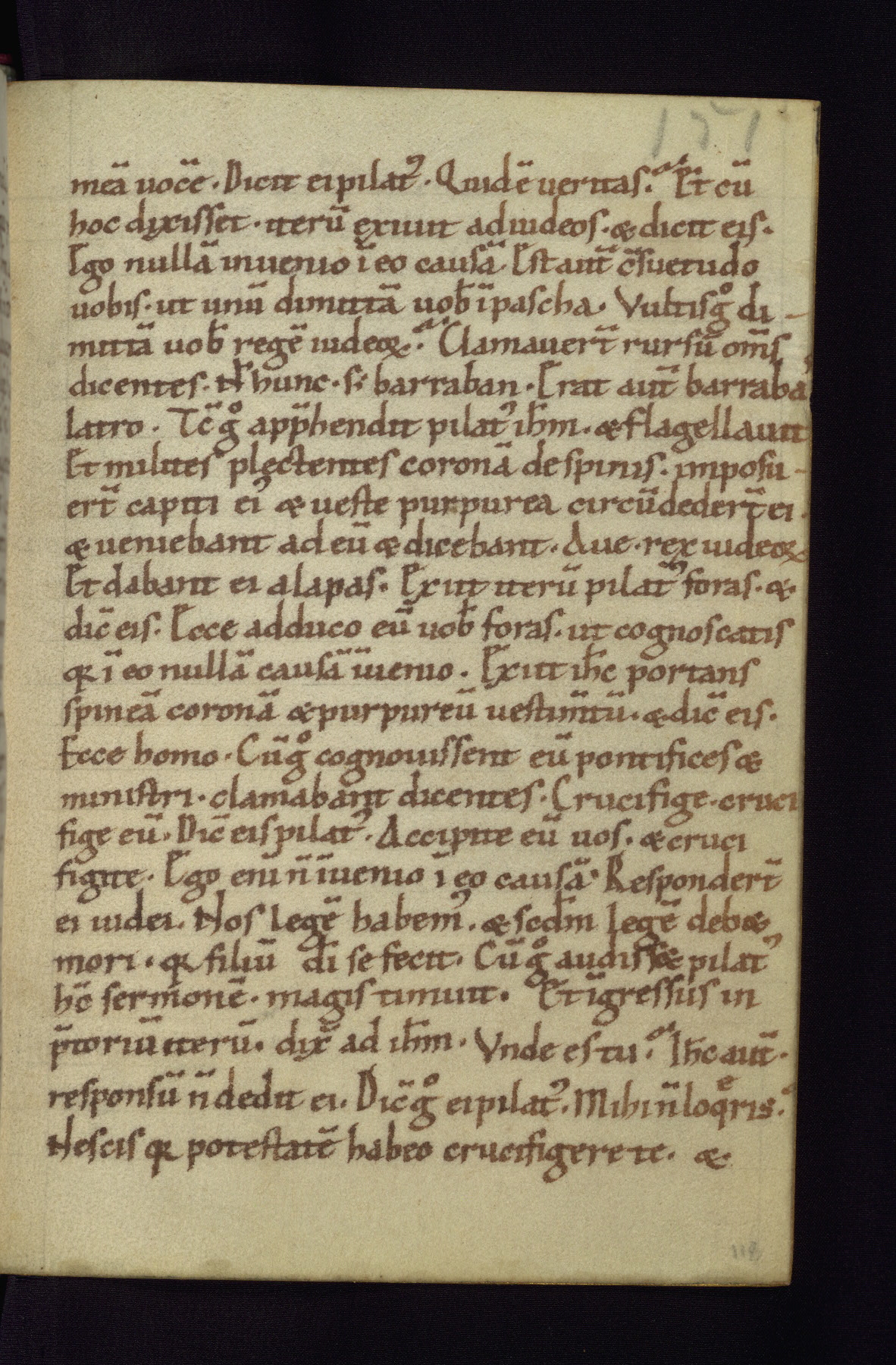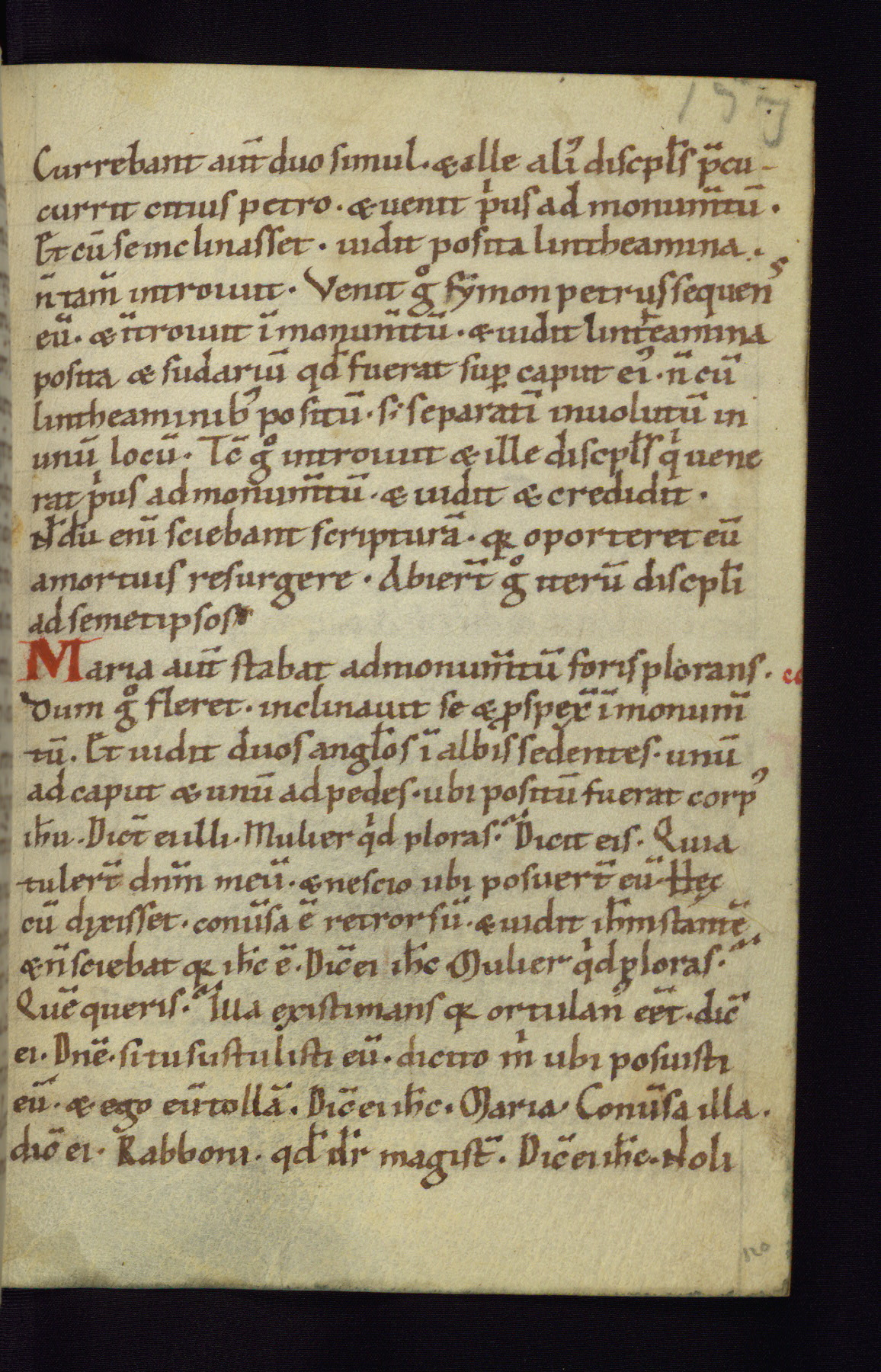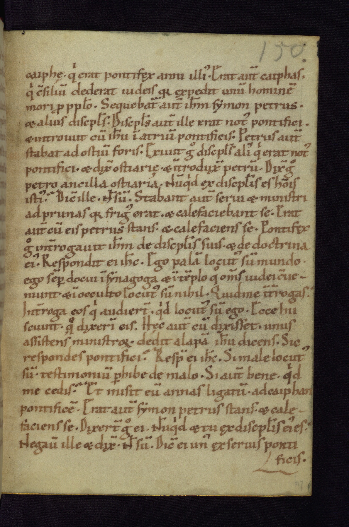 This small Gospel Book was made in Werden, Germany, in the eleventh century. Its size indicates that it was intended for daily, personal use, and a series of ownership inscriptions on the first folio, which trace the ownership of the manuscript among several members of the clergy, provides insight into its use. Although the book contains little decoration, with no canon tables or ornamental initials, the Gospels are introduced by three brown- and red-ink pen drawings of the Evangelists, two of which were embedded into the end of the previous Gospel by the artist. The manuscript is, however, incomplete and lacks the end of Matthew as well as the portrait of Mark, which was likely incorporated into Matthew's explicit page, as was done with the other portraits.