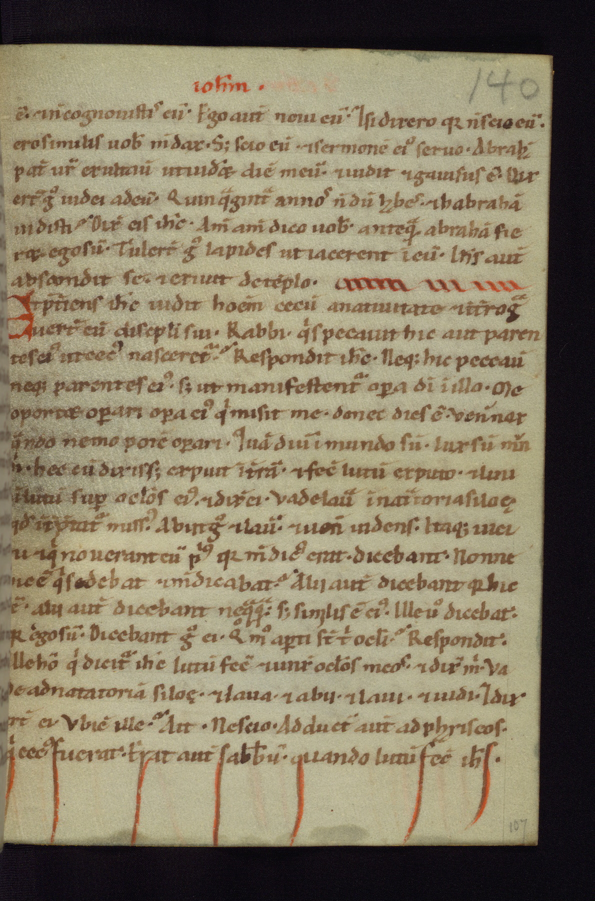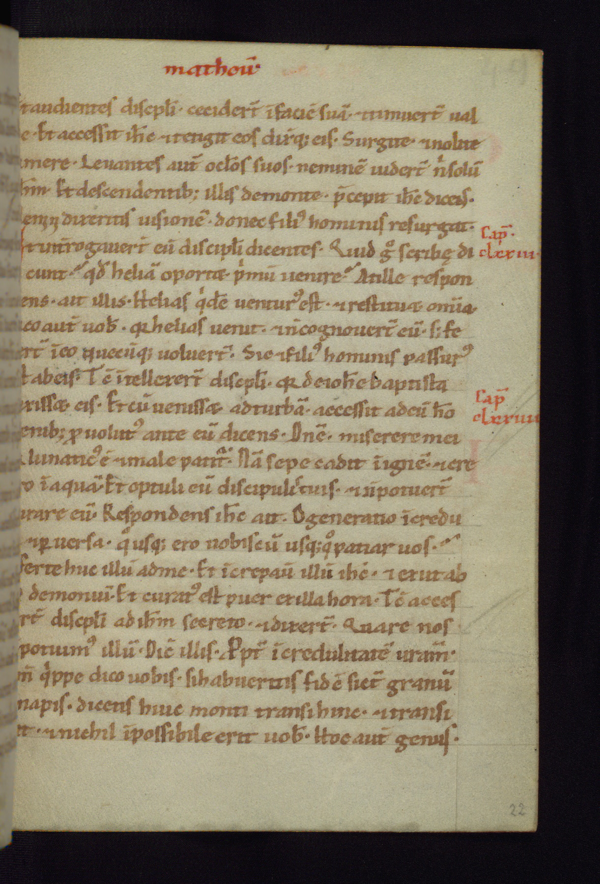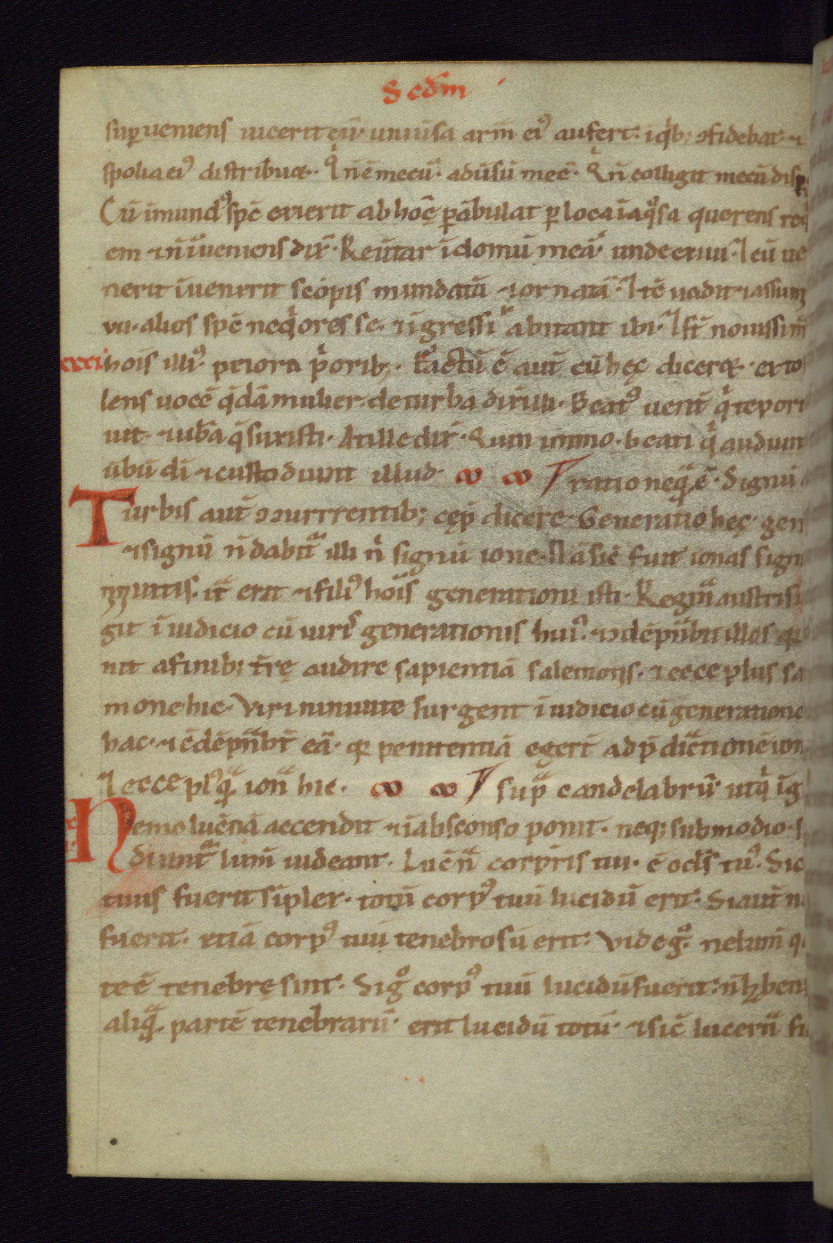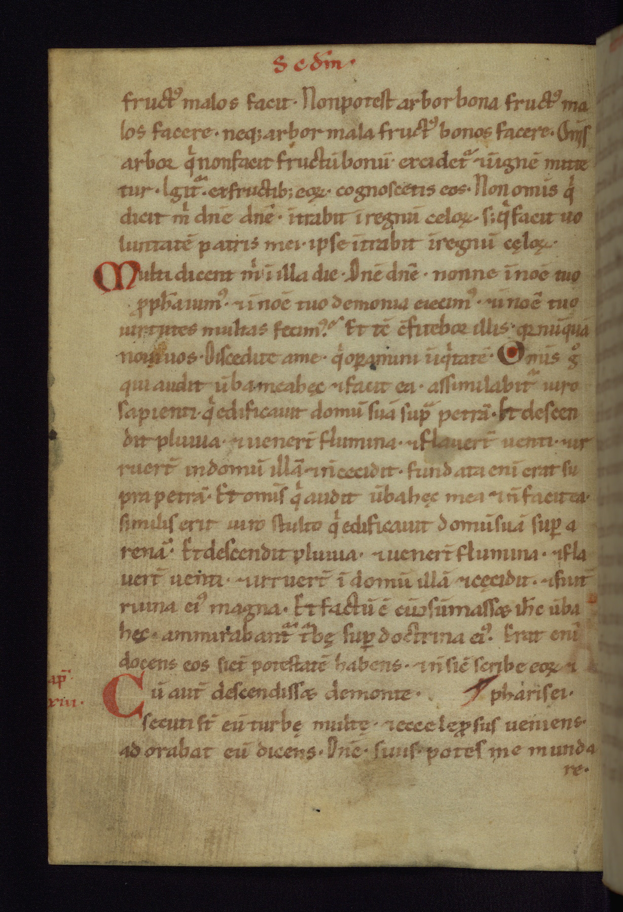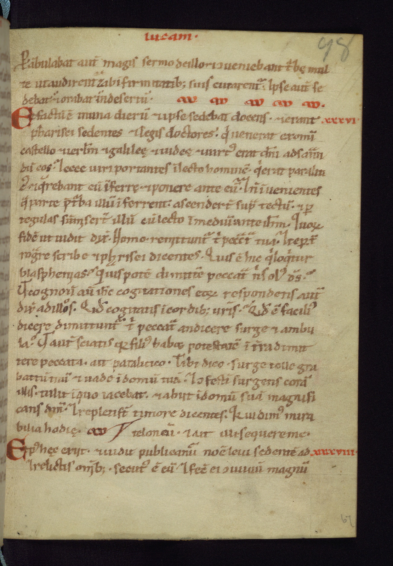 This small Gospel Book was made in Werden, Germany, in the eleventh century. Its size indicates that it was intended for daily, personal use, and a series of ownership inscriptions on the first folio, which trace the ownership of the manuscript among several members of the clergy, provides insight into its use. Although the book contains little decoration, with no canon tables or ornamental initials, the Gospels are introduced by three brown- and red-ink pen drawings of the Evangelists, two of which were embedded into the end of the previous Gospel by the artist. The manuscript is, however, incomplete and lacks the end of Matthew as well as the portrait of Mark, which was likely incorporated into Matthew's explicit page, as was done with the other portraits.