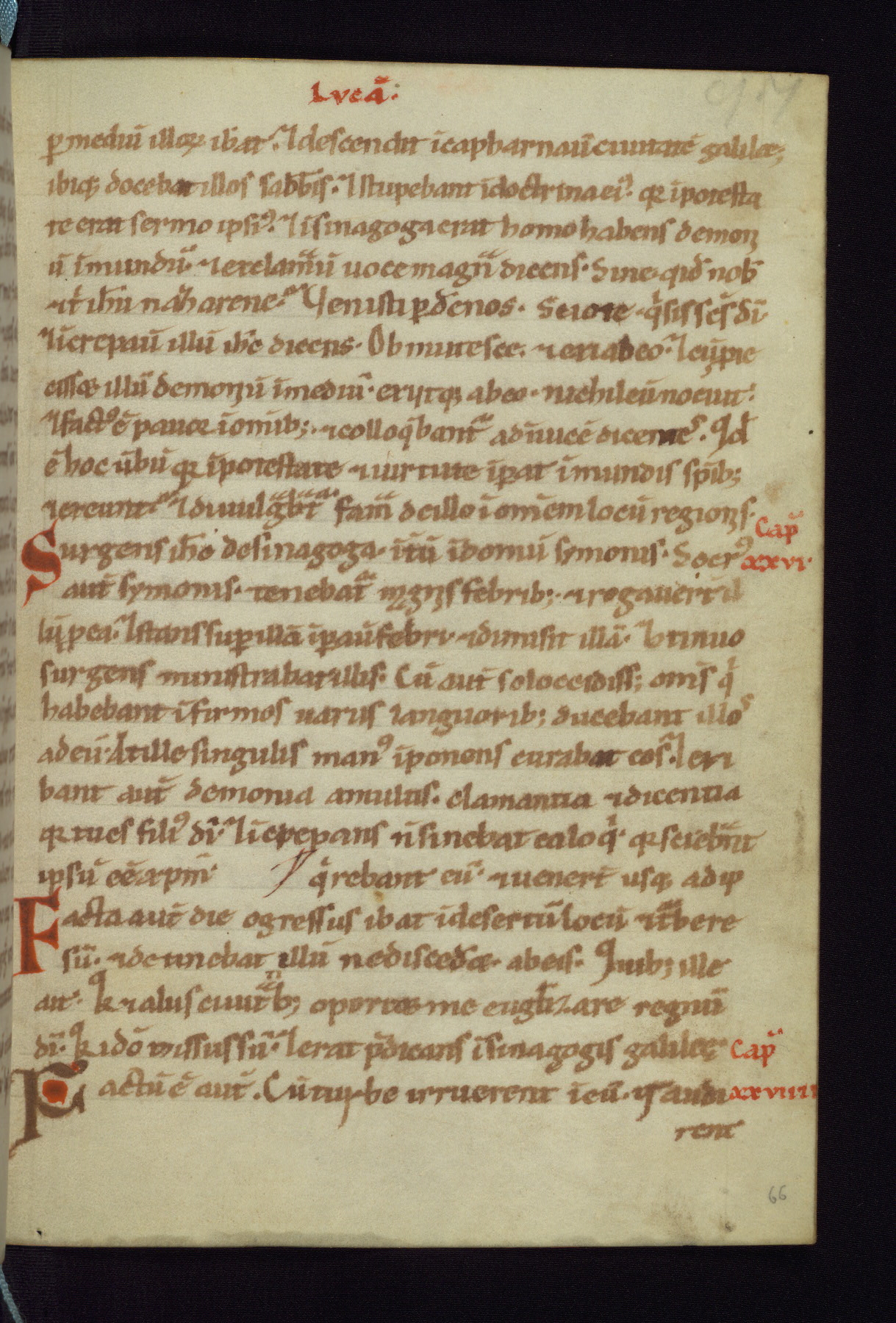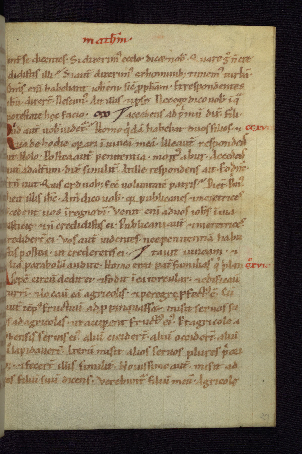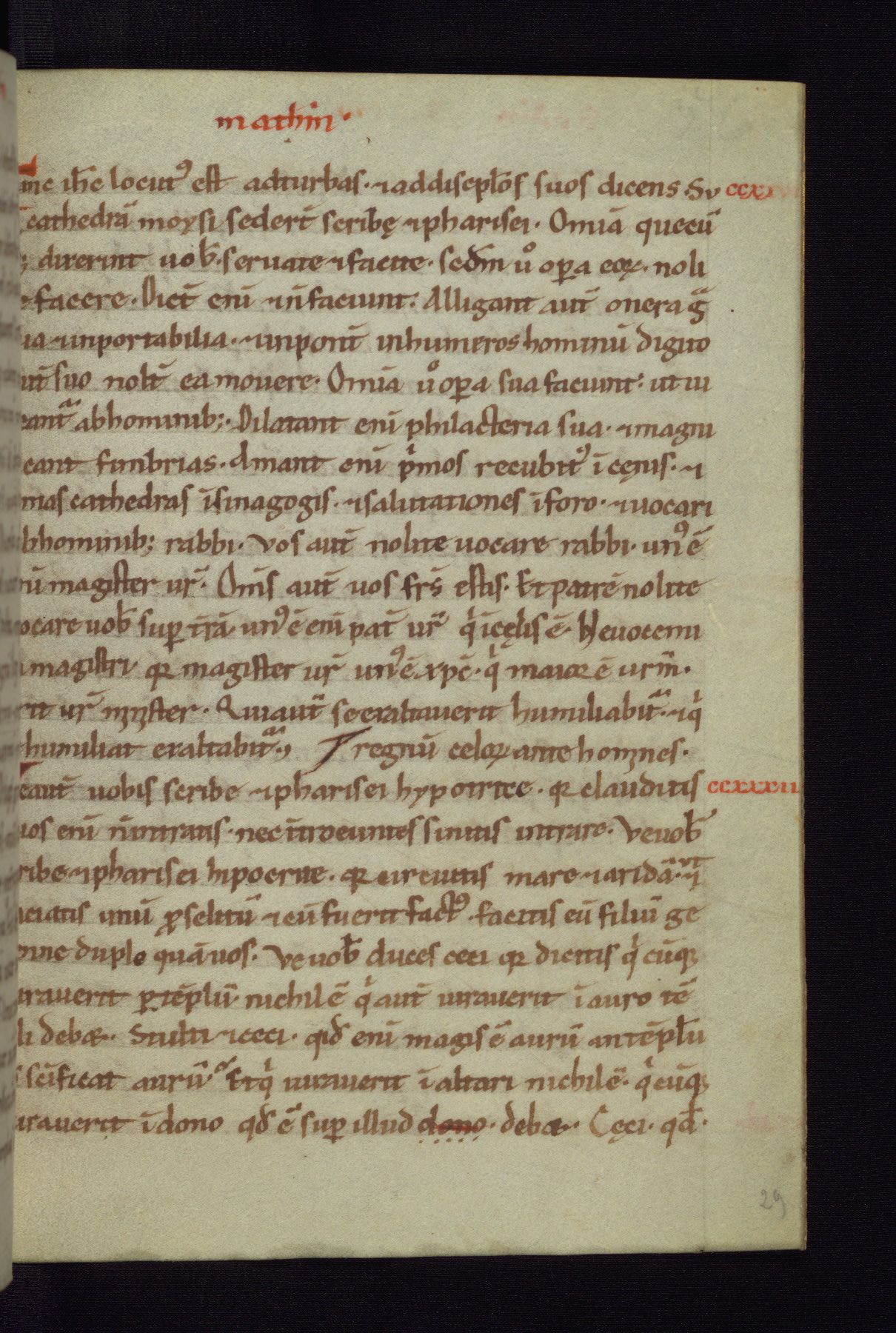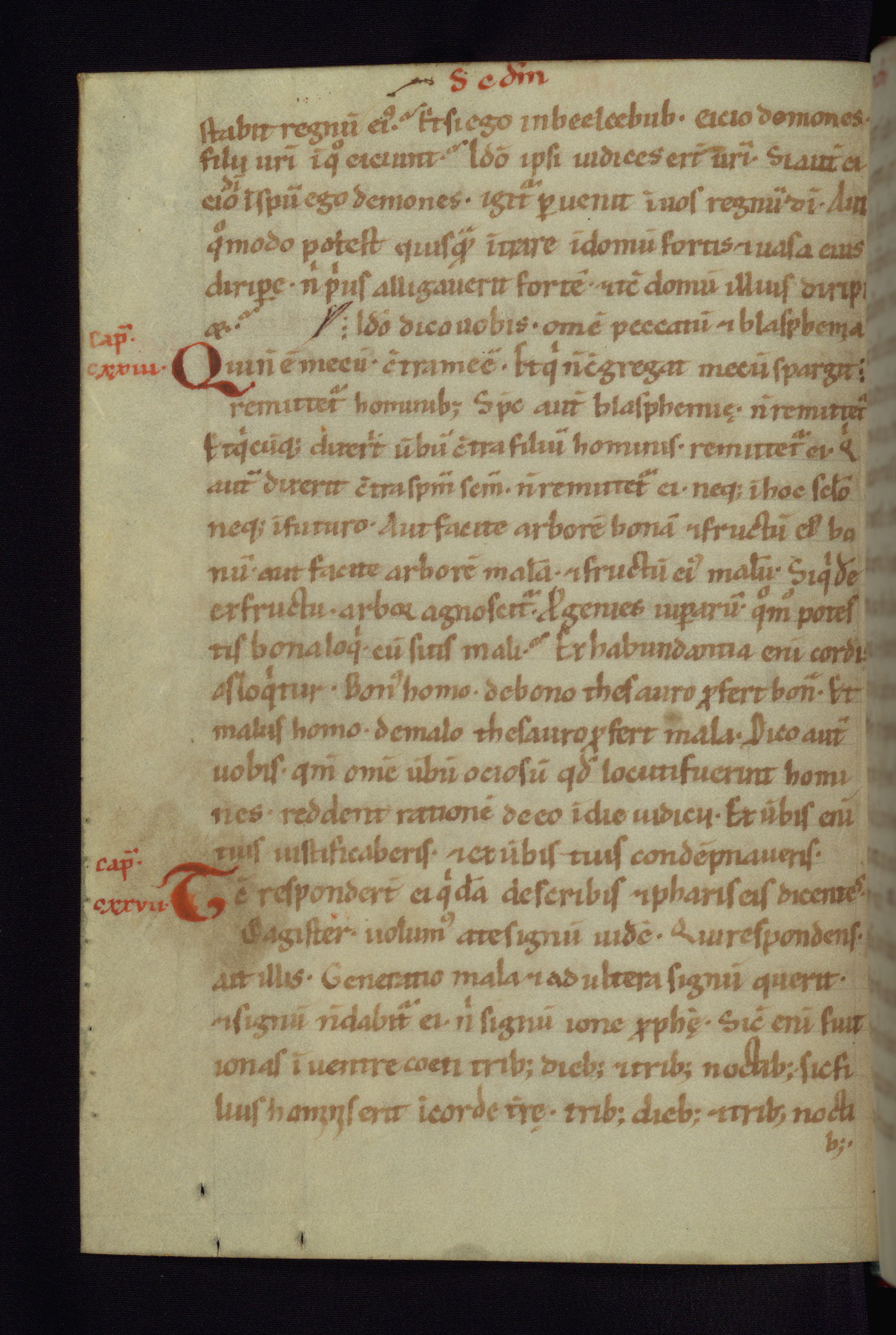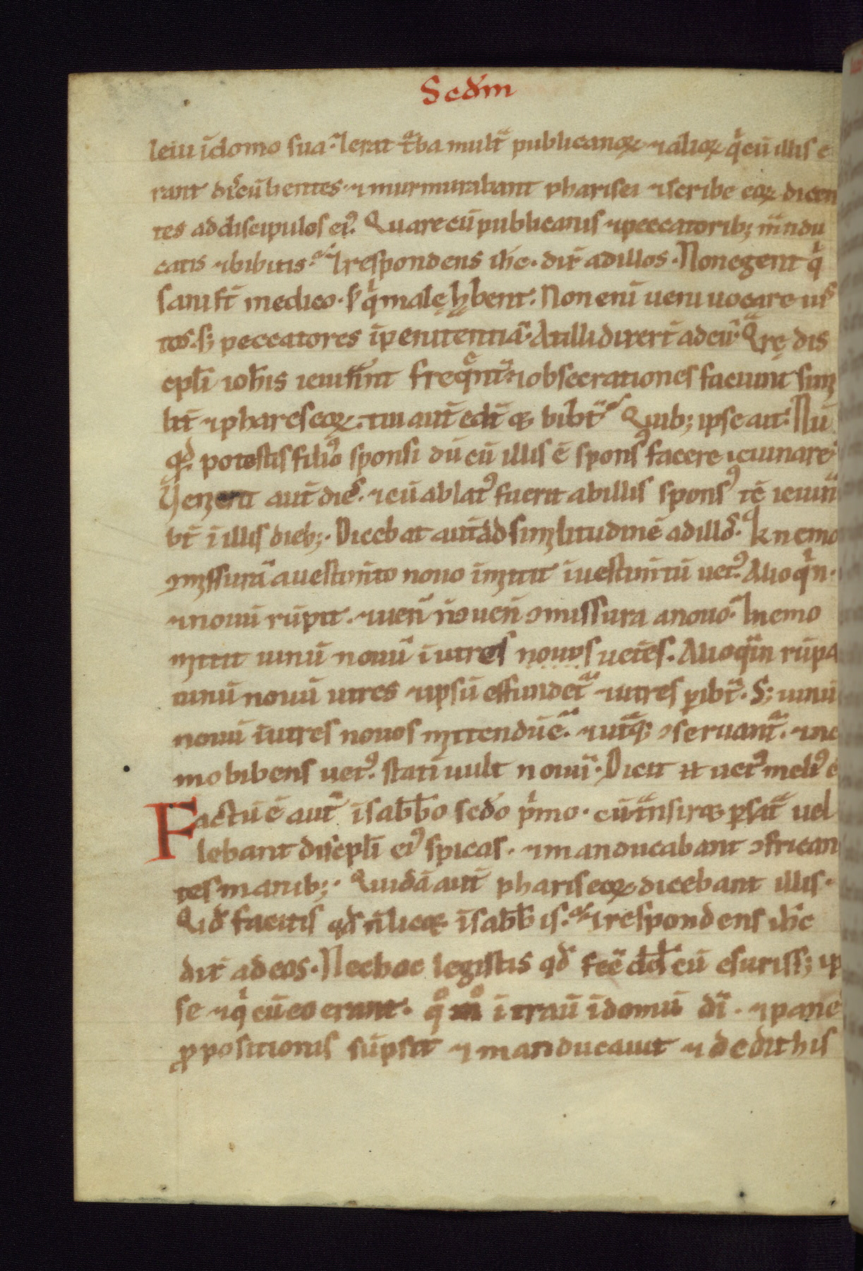 This small Gospel Book was made in Werden, Germany, in the eleventh century. Its size indicates that it was intended for daily, personal use, and a series of ownership inscriptions on the first folio, which trace the ownership of the manuscript among several members of the clergy, provides insight into its use. Although the book contains little decoration, with no canon tables or ornamental initials, the Gospels are introduced by three brown- and red-ink pen drawings of the Evangelists, two of which were embedded into the end of the previous Gospel by the artist. The manuscript is, however, incomplete and lacks the end of Matthew as well as the portrait of Mark, which was likely incorporated into Matthew's explicit page, as was done with the other portraits.