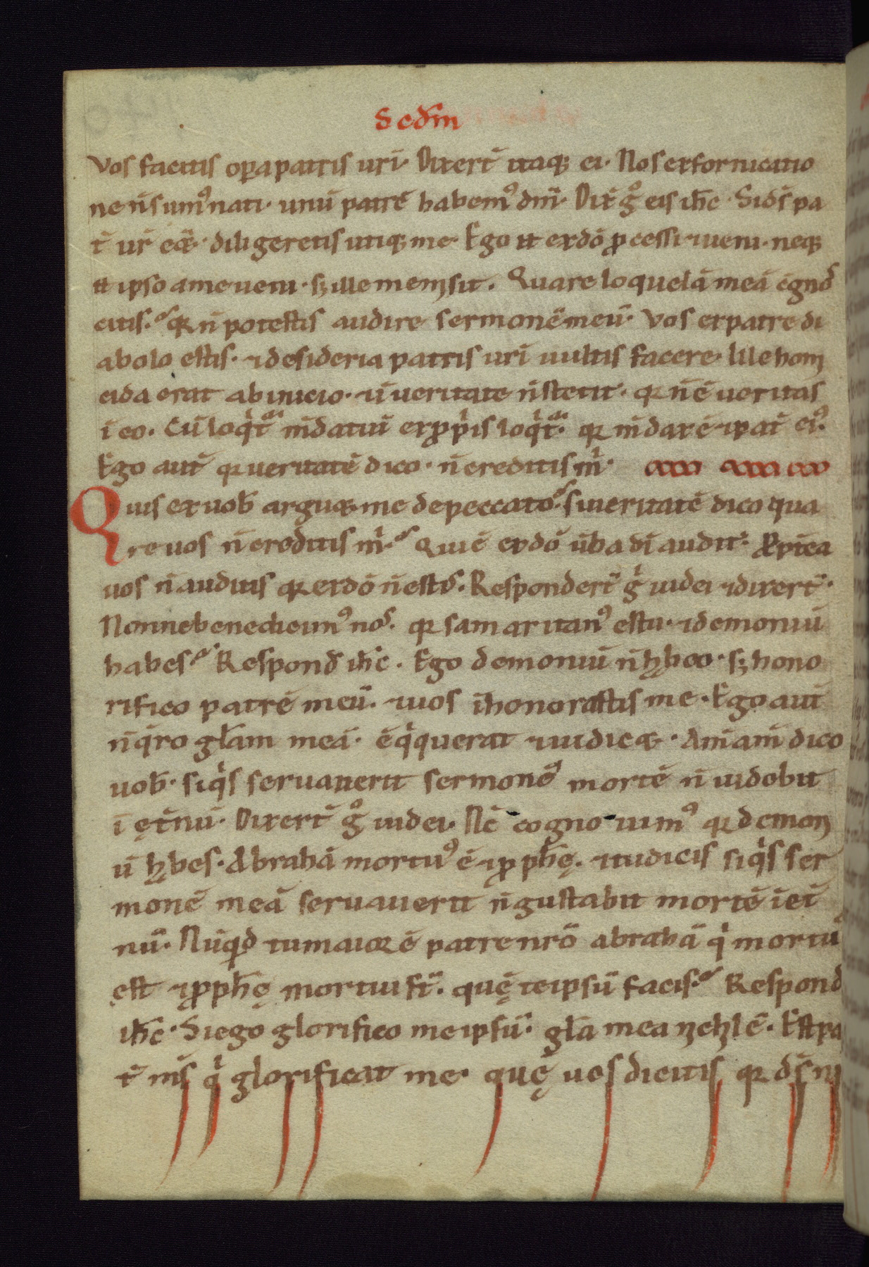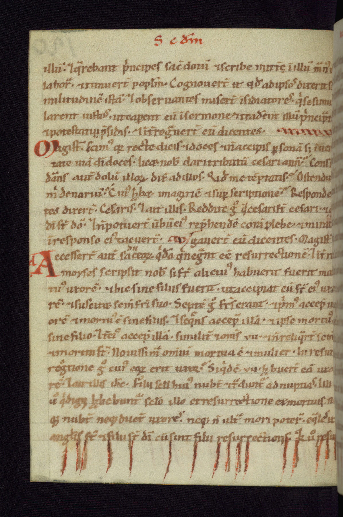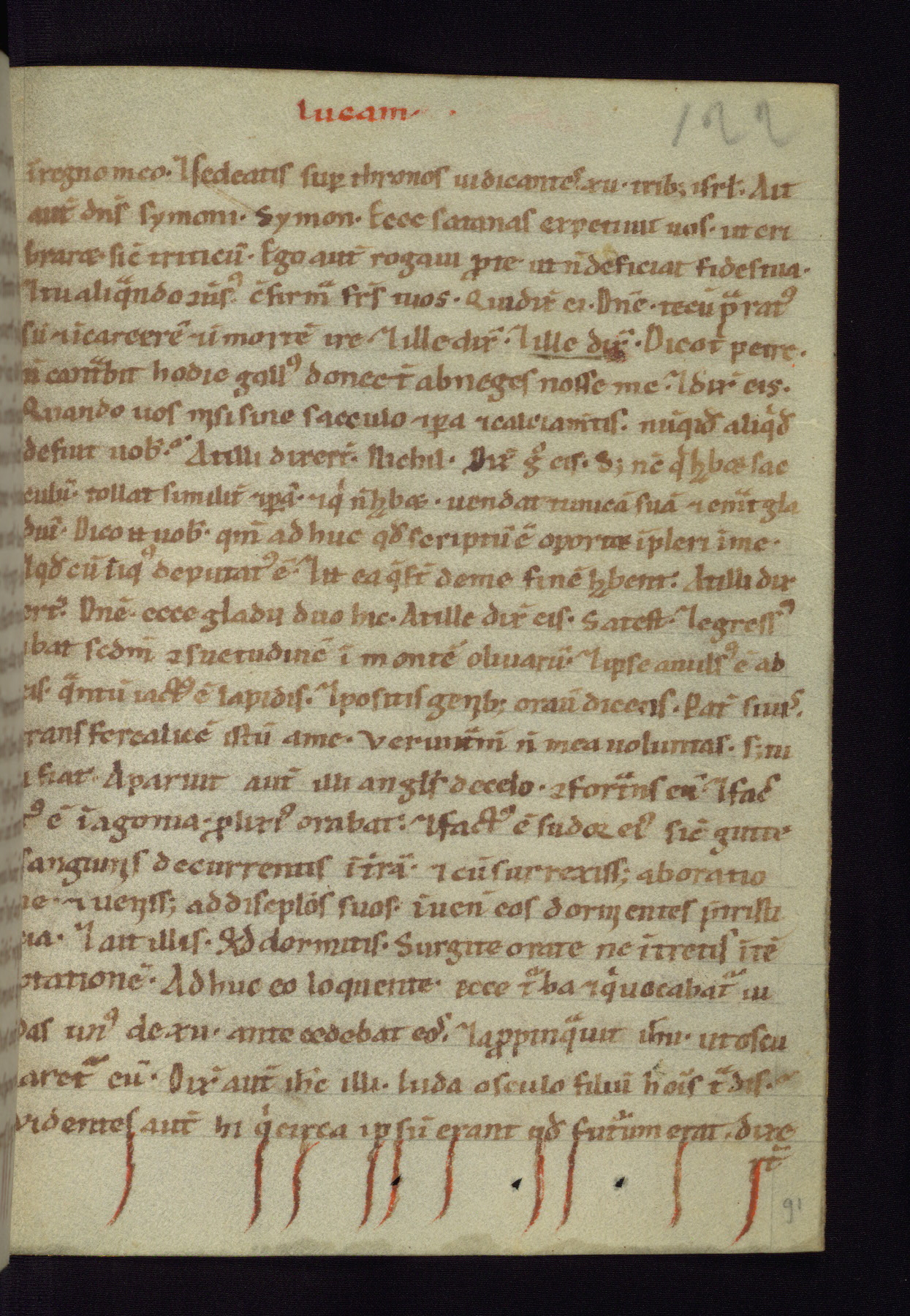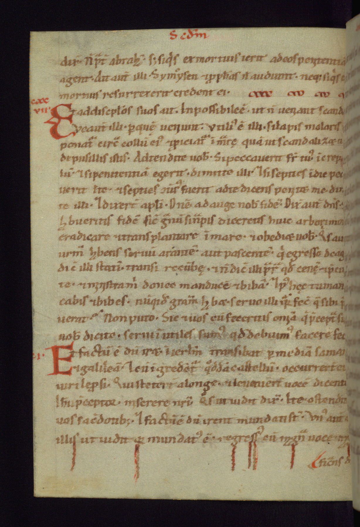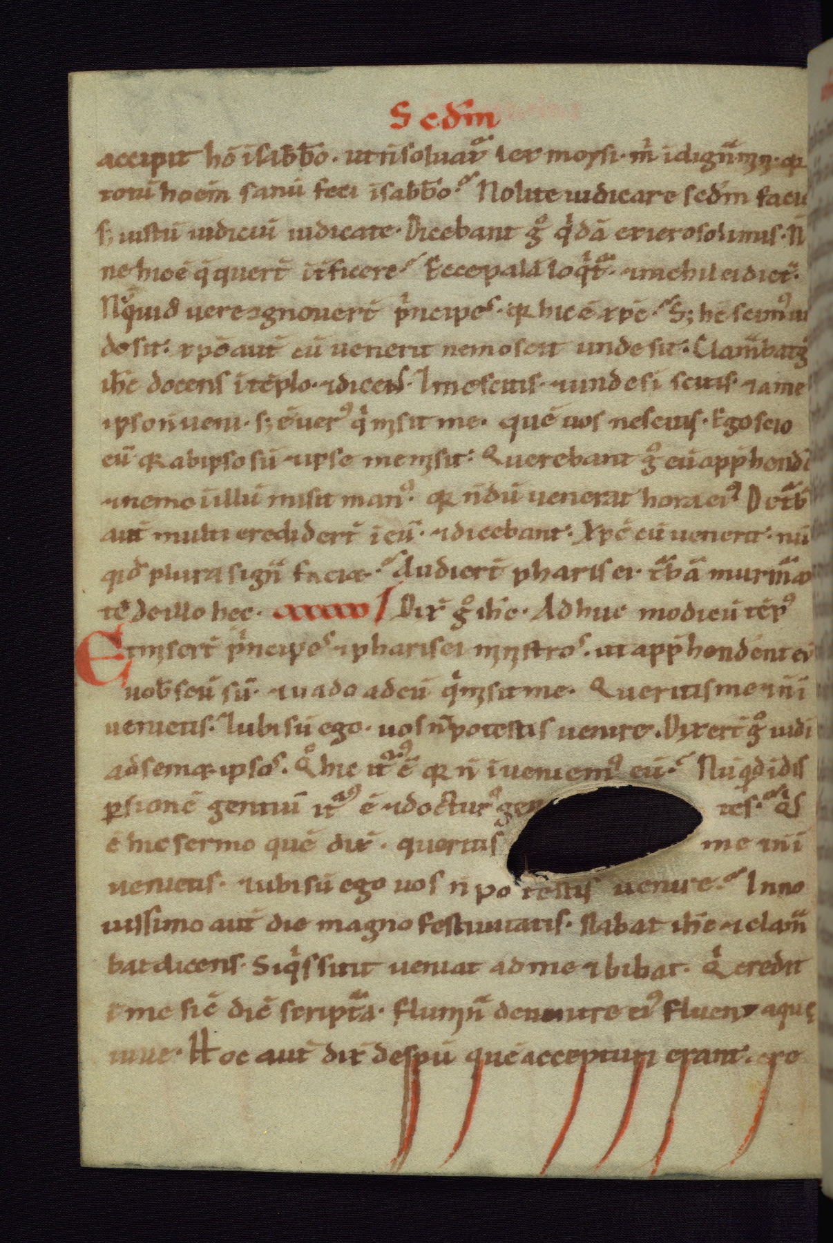 This small Gospel Book was made in Werden, Germany, in the eleventh century. Its size indicates that it was intended for daily, personal use, and a series of ownership inscriptions on the first folio, which trace the ownership of the manuscript among several members of the clergy, provides insight into its use. Although the book contains little decoration, with no canon tables or ornamental initials, the Gospels are introduced by three brown- and red-ink pen drawings of the Evangelists, two of which were embedded into the end of the previous Gospel by the artist. The manuscript is, however, incomplete and lacks the end of Matthew as well as the portrait of Mark, which was likely incorporated into Matthew's explicit page, as was done with the other portraits.