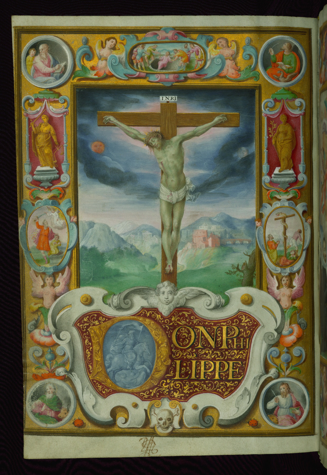 - Title: Crucifixion, with marginal Old Testament scenes and saints