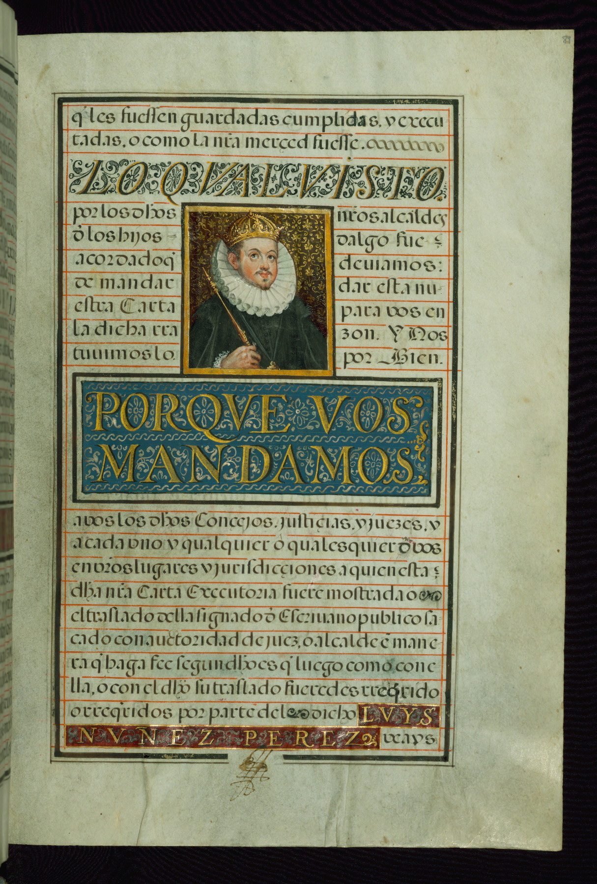 Walters Ms. W.504, Patent of Nobility granted by Philip III to Don Luys Nuñez Perez