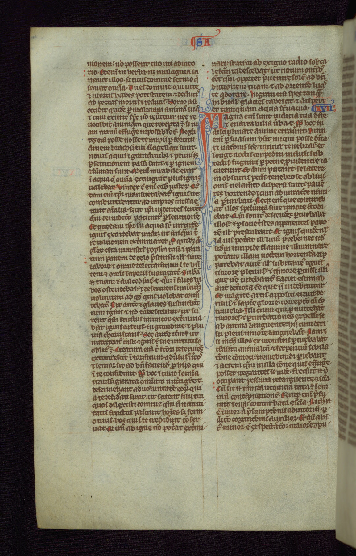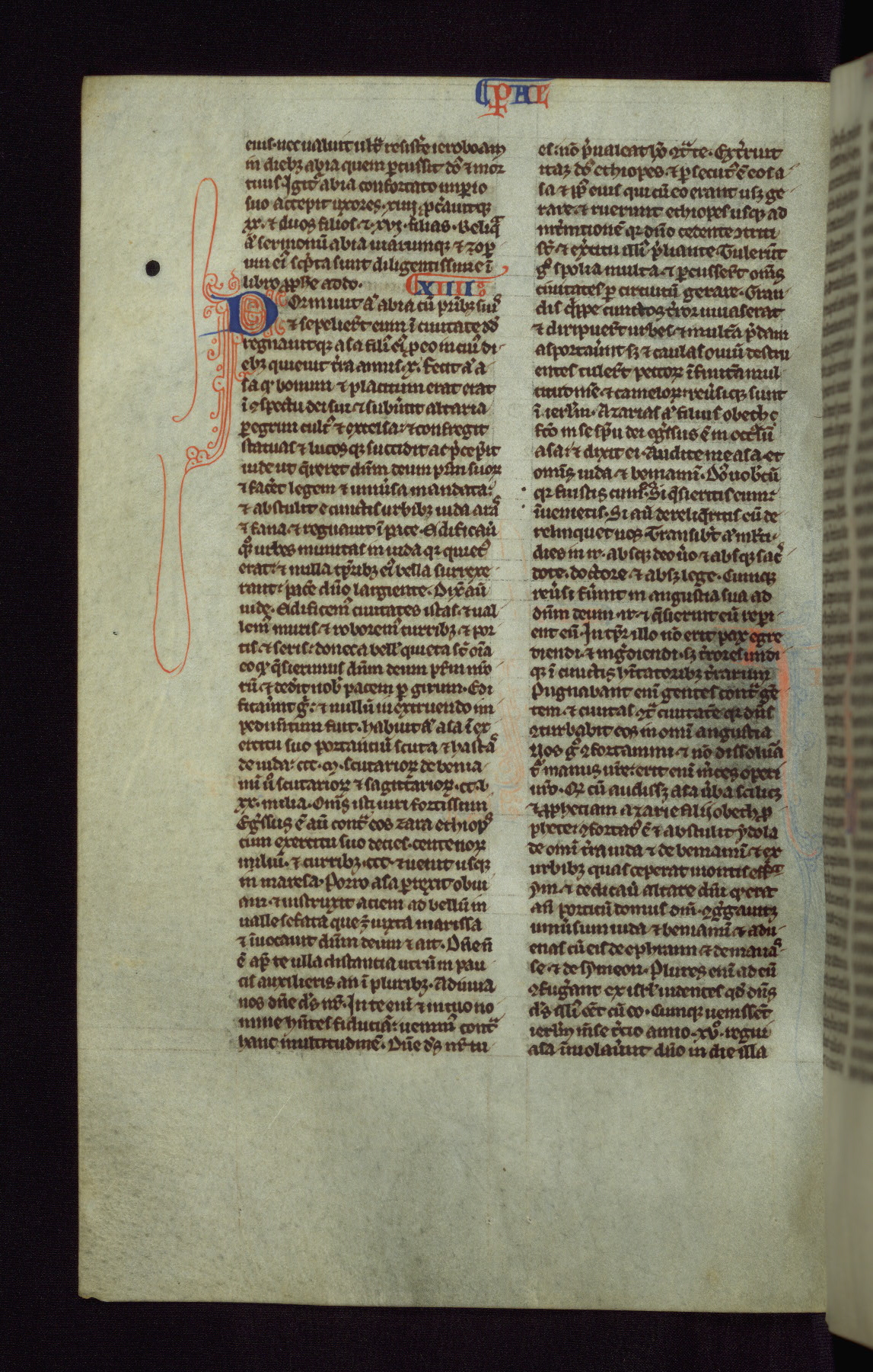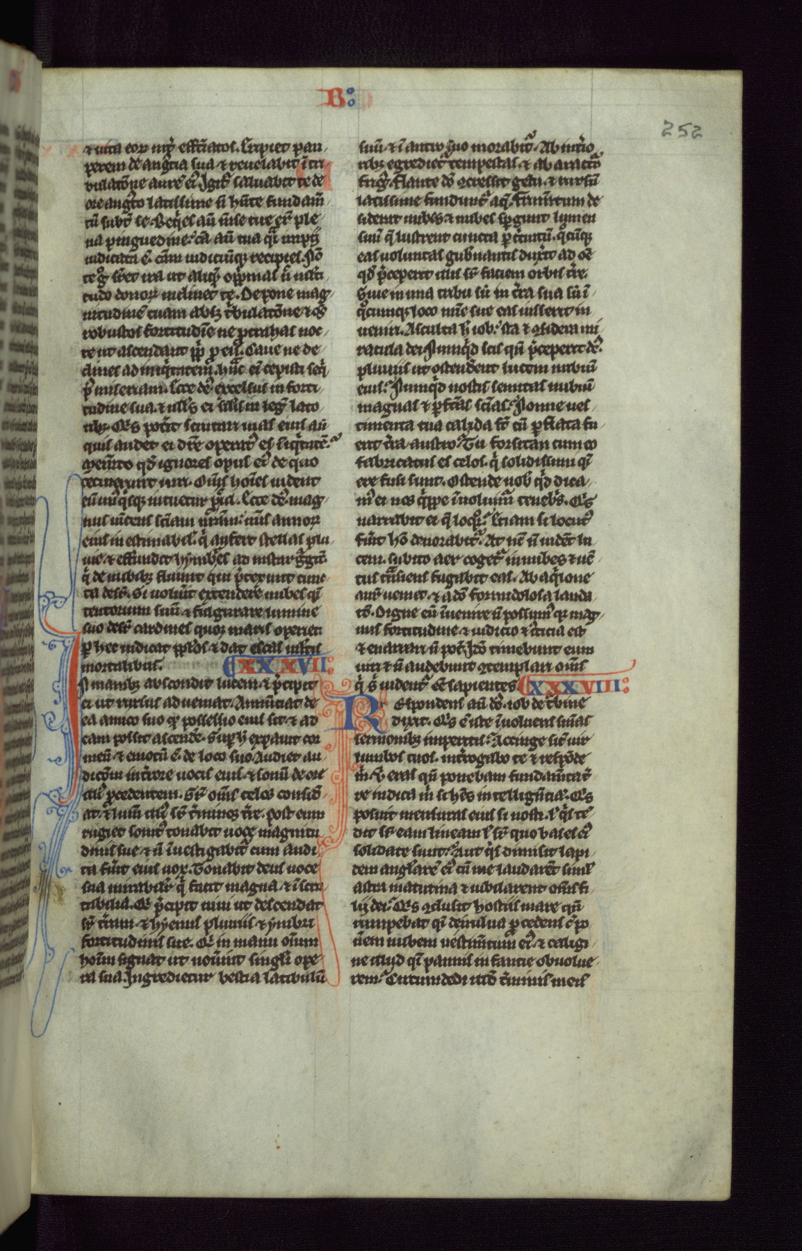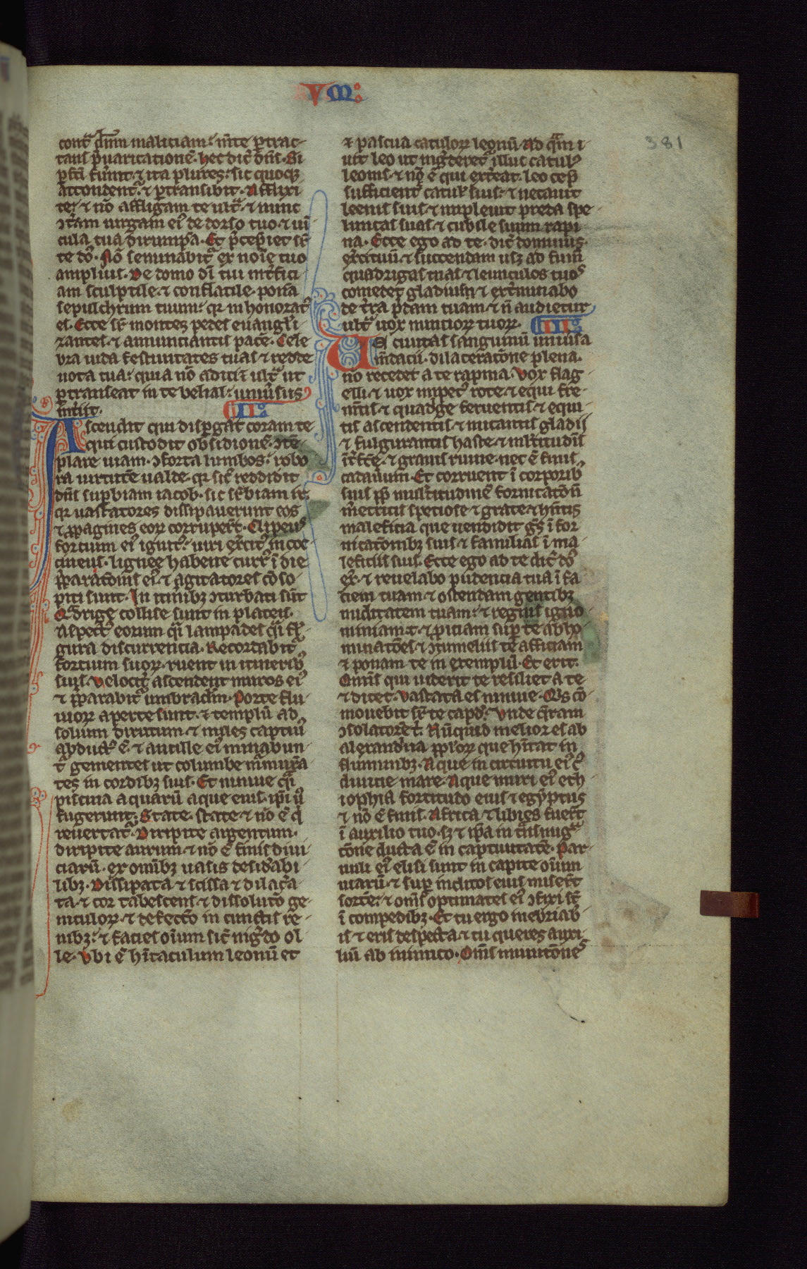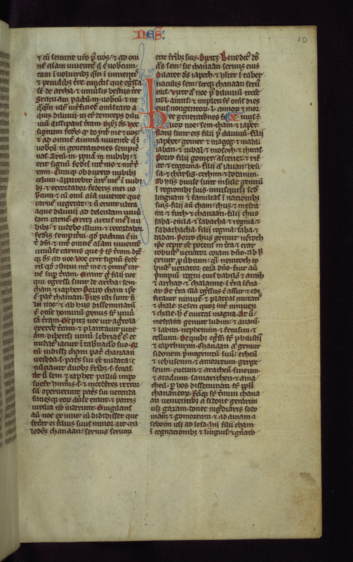 This pocket-size Bible was created around the middle of the thirteenth century in England. It contains the Vulgate text of the Old and New Testaments, arranged in order and divided into chapters. Such Bibles, designed for individual rather than institutional use, began to be created on a large scale during the thirteenth century, especially in Paris. This manuscript is illuminated with a large number of small historiated initials, and also includes a somewhat later image of the Three Living and the Three Dead, a popular scene based on a French poem of the same century.