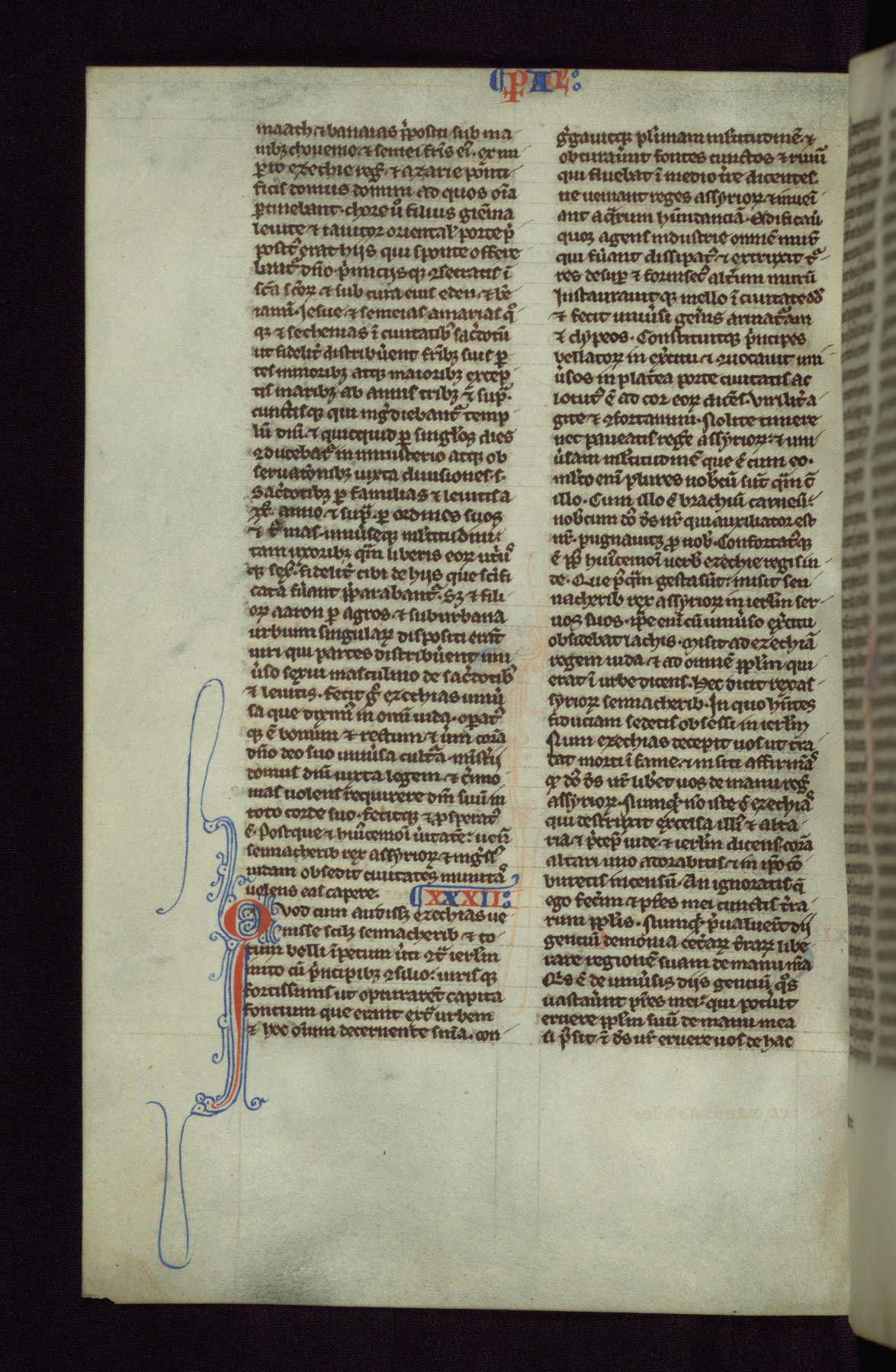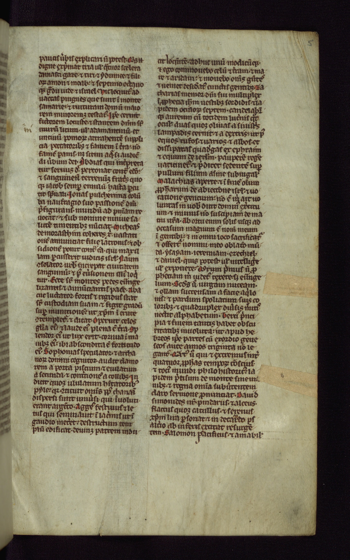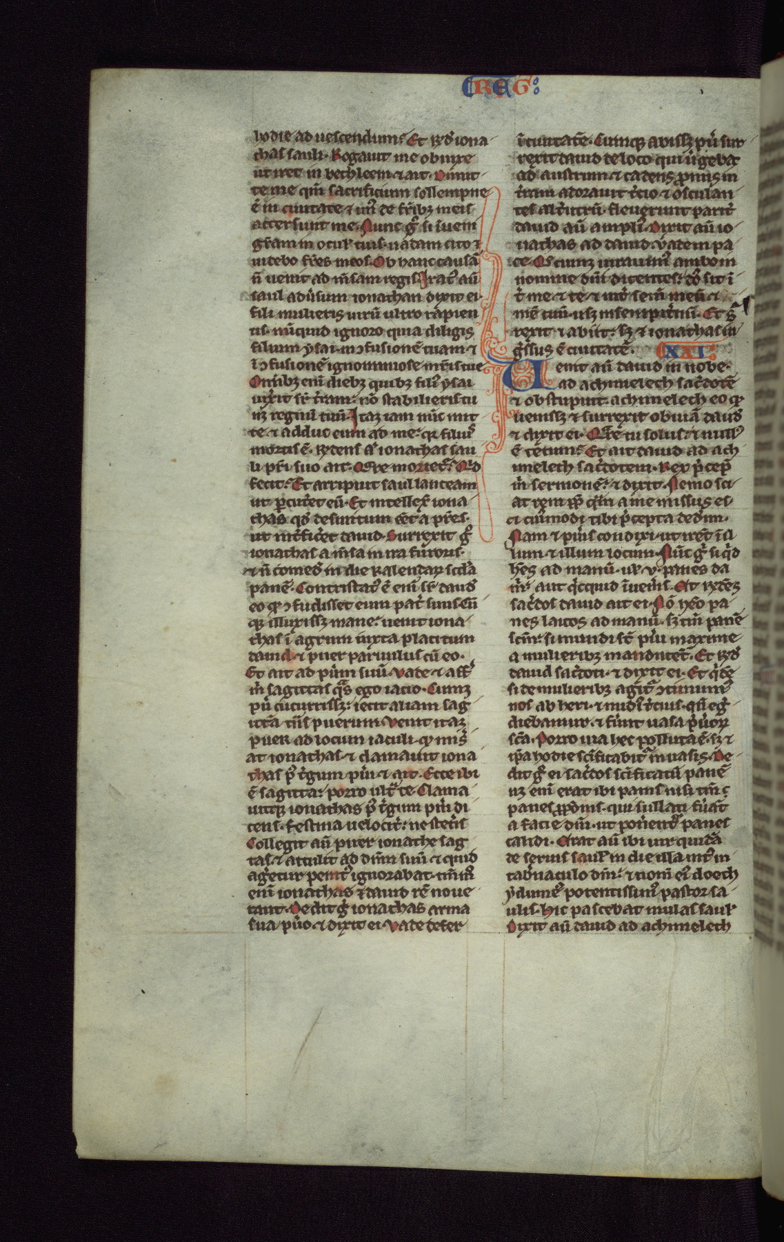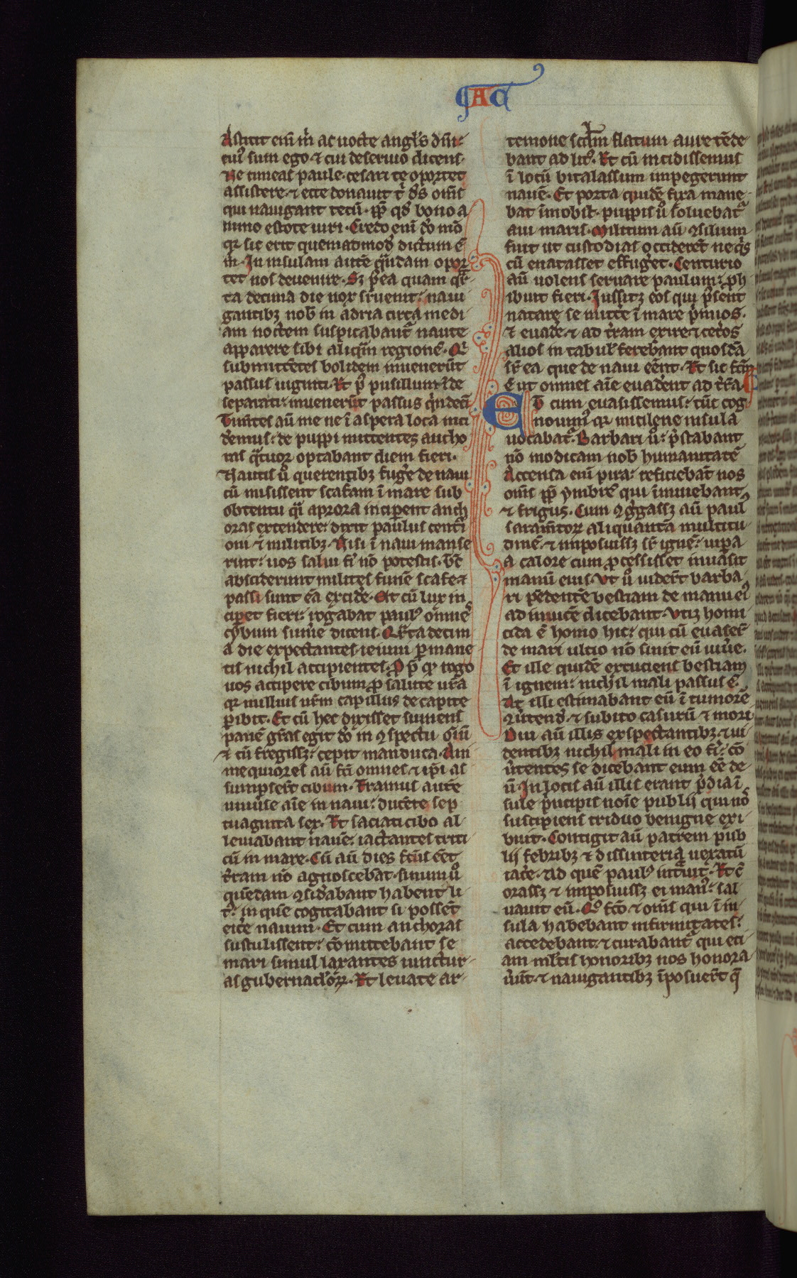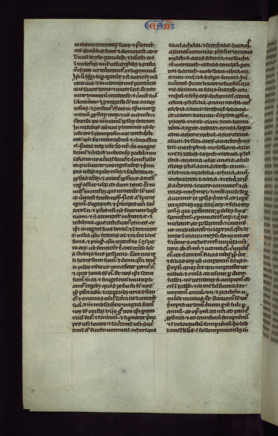 This pocket-size Bible was created around the middle of the thirteenth century in England. It contains the Vulgate text of the Old and New Testaments, arranged in order and divided into chapters. Such Bibles, designed for individual rather than institutional use, began to be created on a large scale during the thirteenth century, especially in Paris. This manuscript is illuminated with a large number of small historiated initials, and also includes a somewhat later image of the Three Living and the Three Dead, a popular scene based on a French poem of the same century.