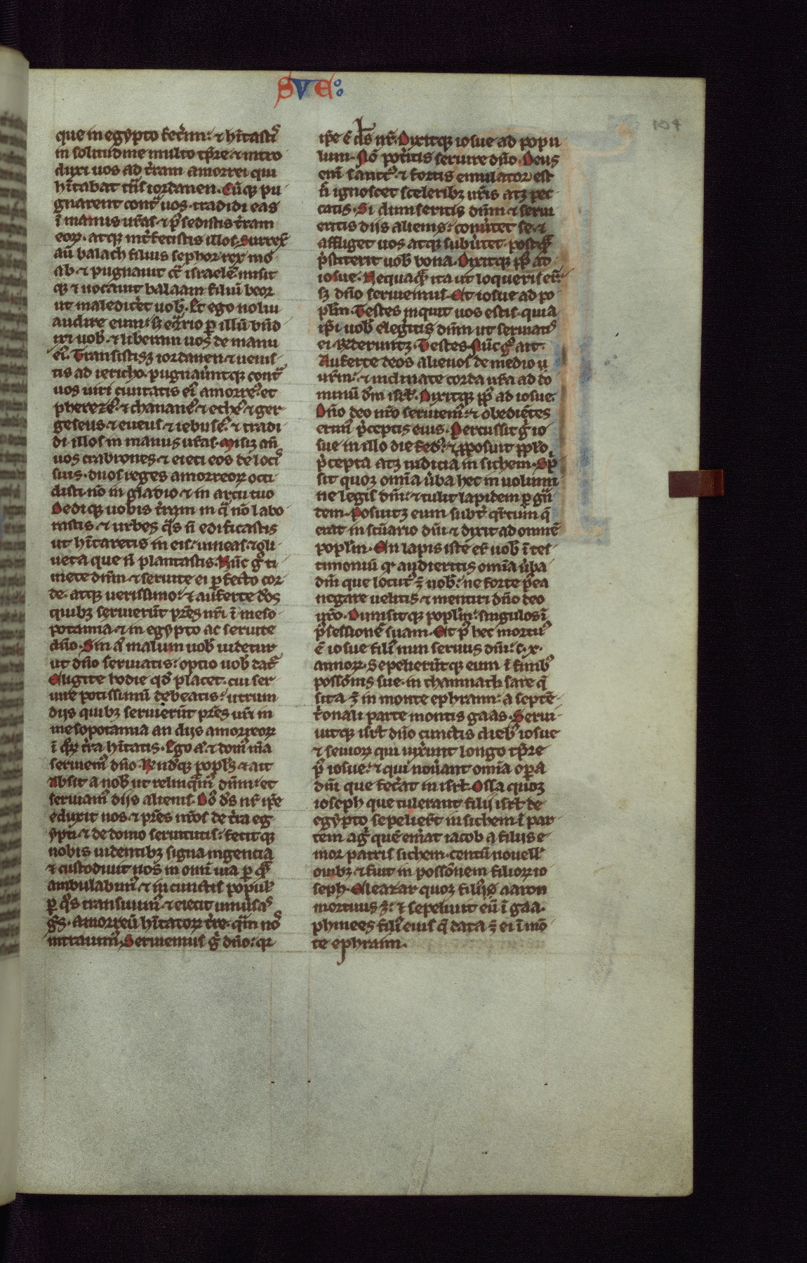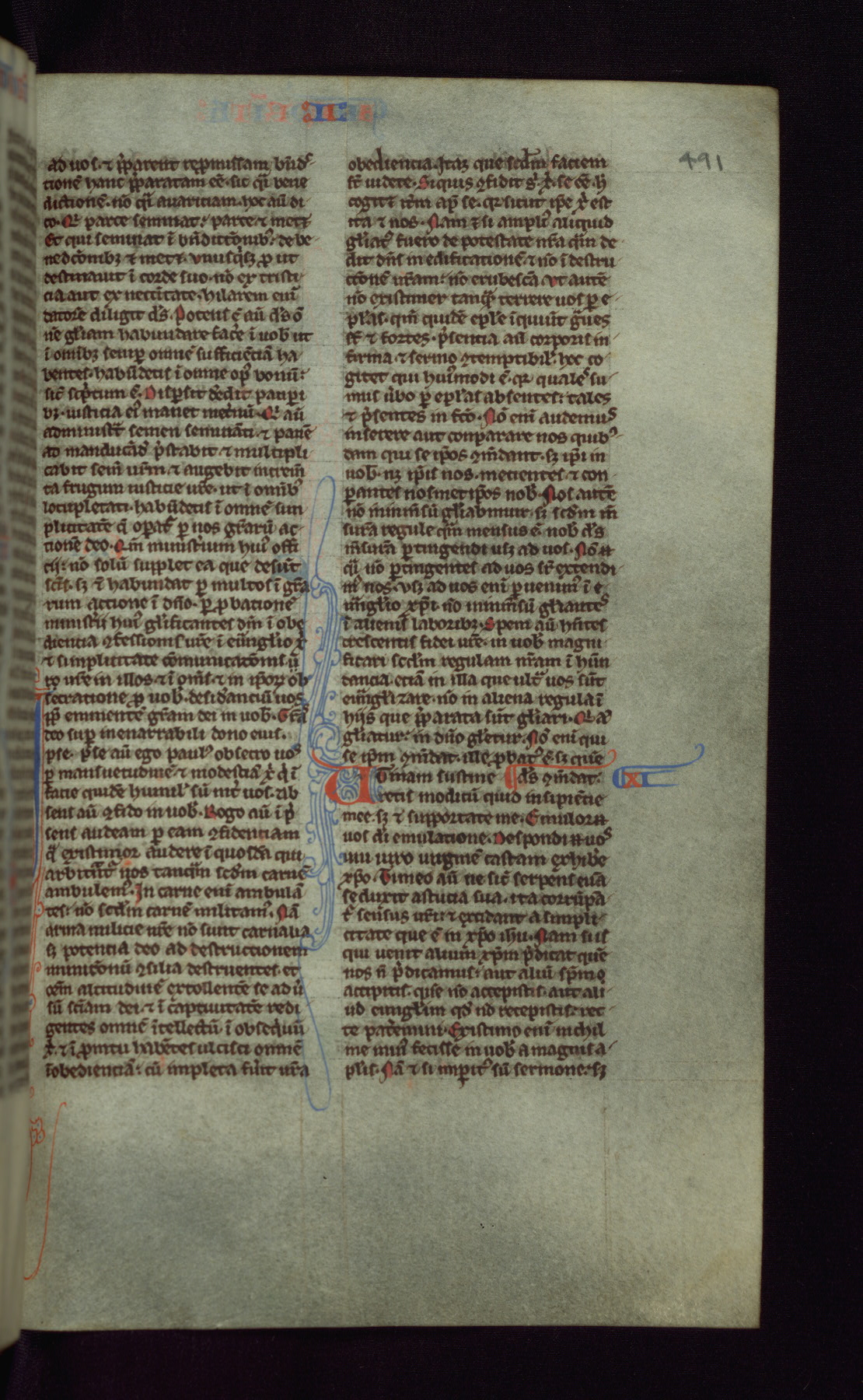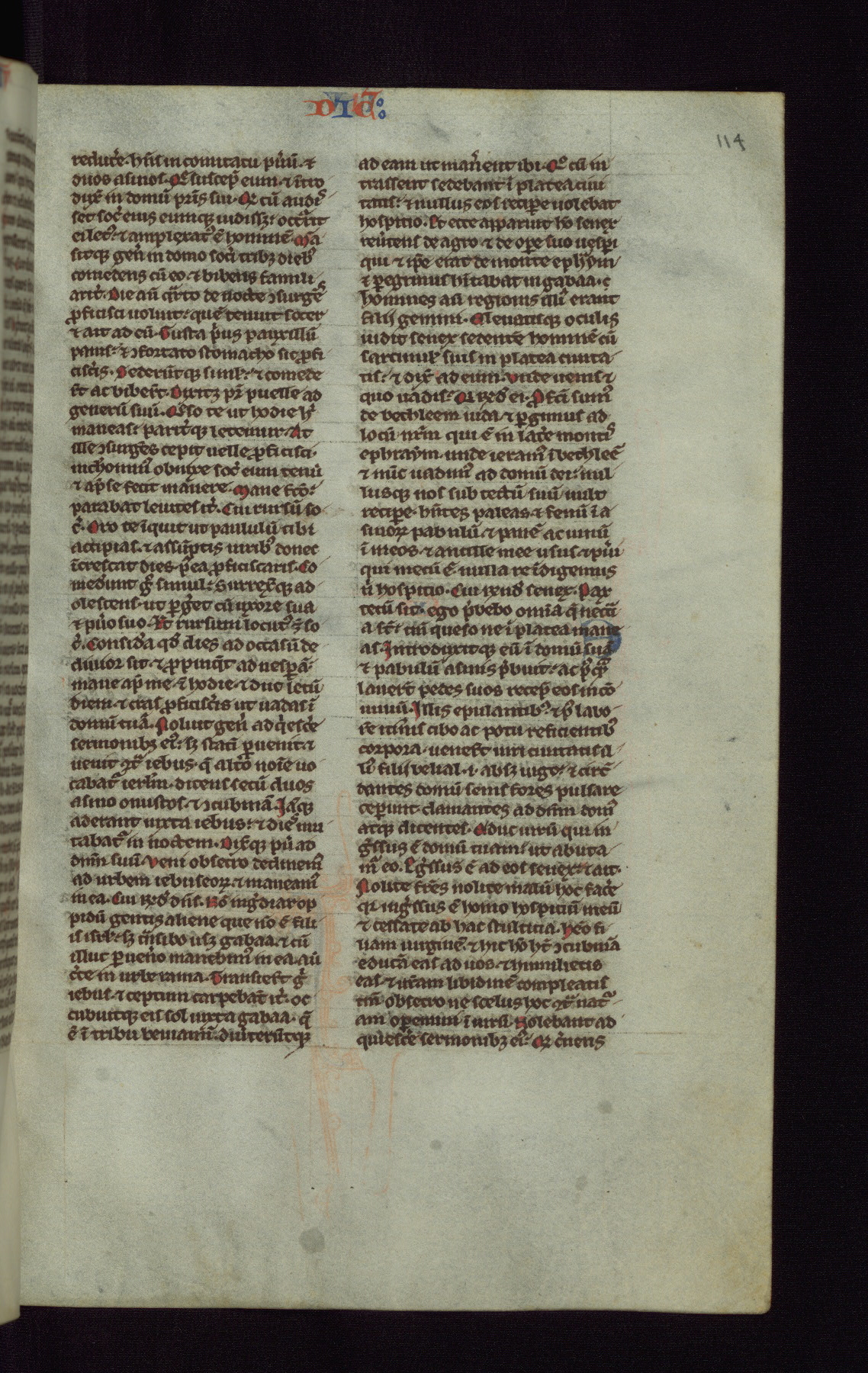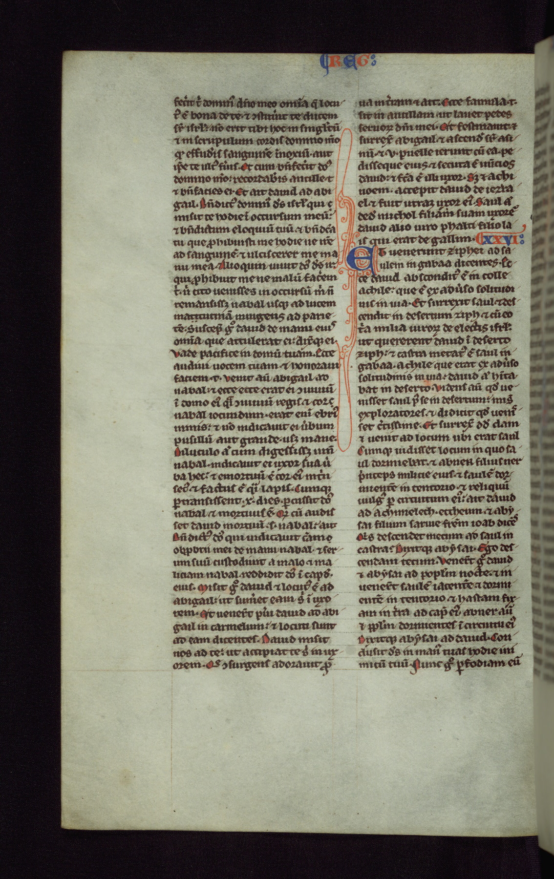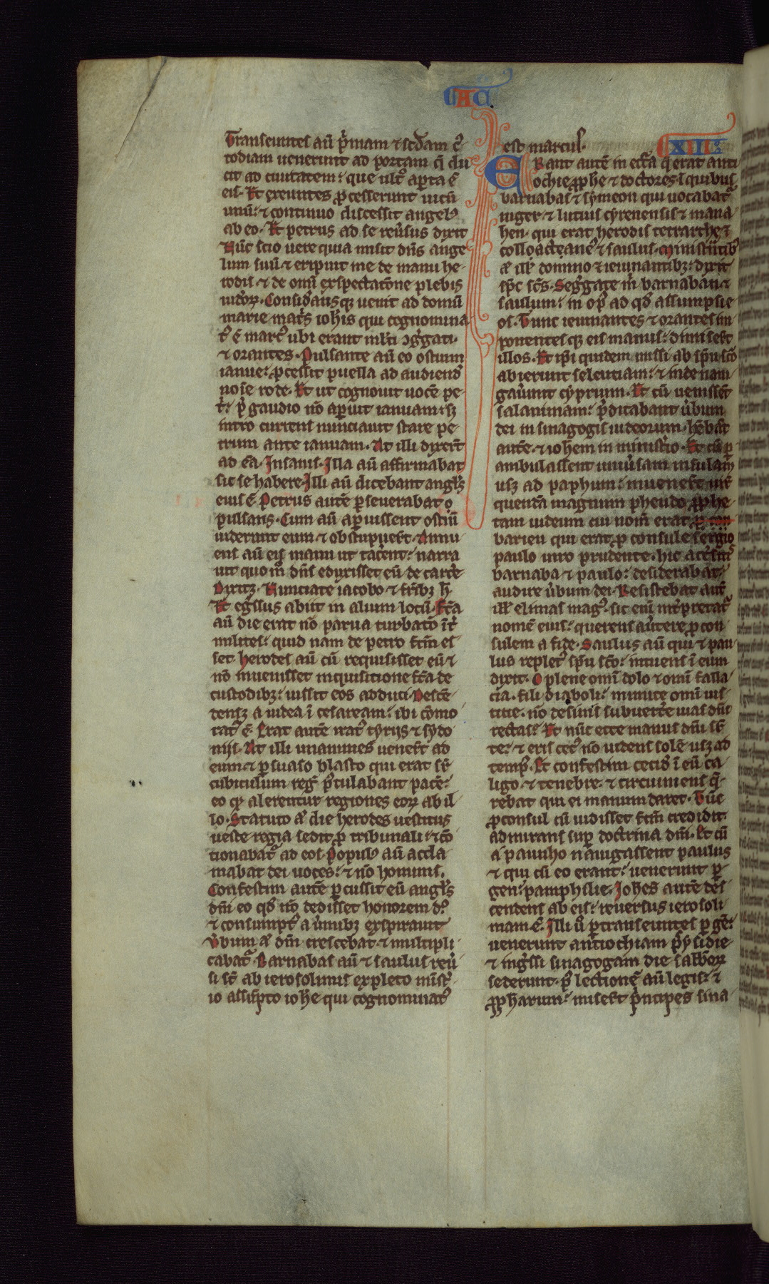This pocket-size Bible was created around the middle of the thirteenth century in England. It contains the Vulgate text of the Old and New Testaments, arranged in order and divided into chapters. Such Bibles, designed for individual rather than institutional use, began to be created on a large scale during the thirteenth century, especially in Paris. This manuscript is illuminated with a large number of small historiated initials, and also includes a somewhat later image of the Three Living and the Three Dead, a popular scene based on a French poem of the same century.
