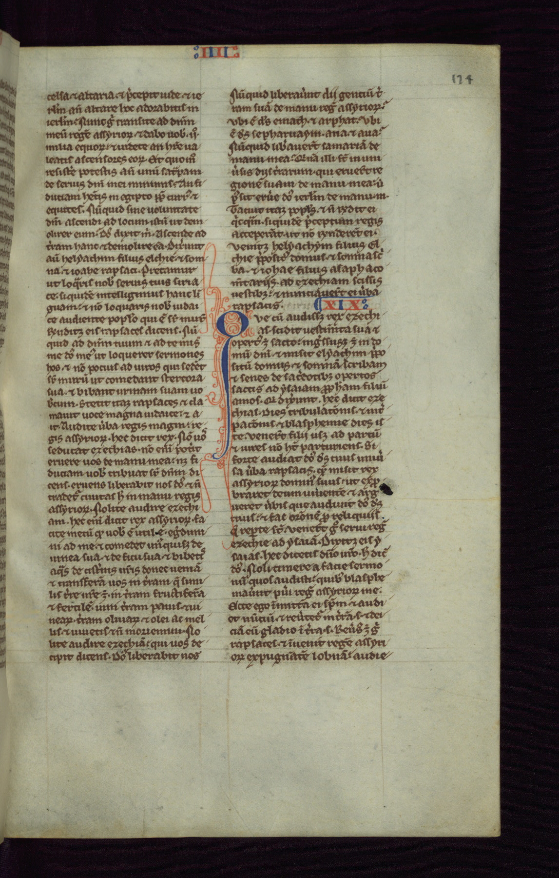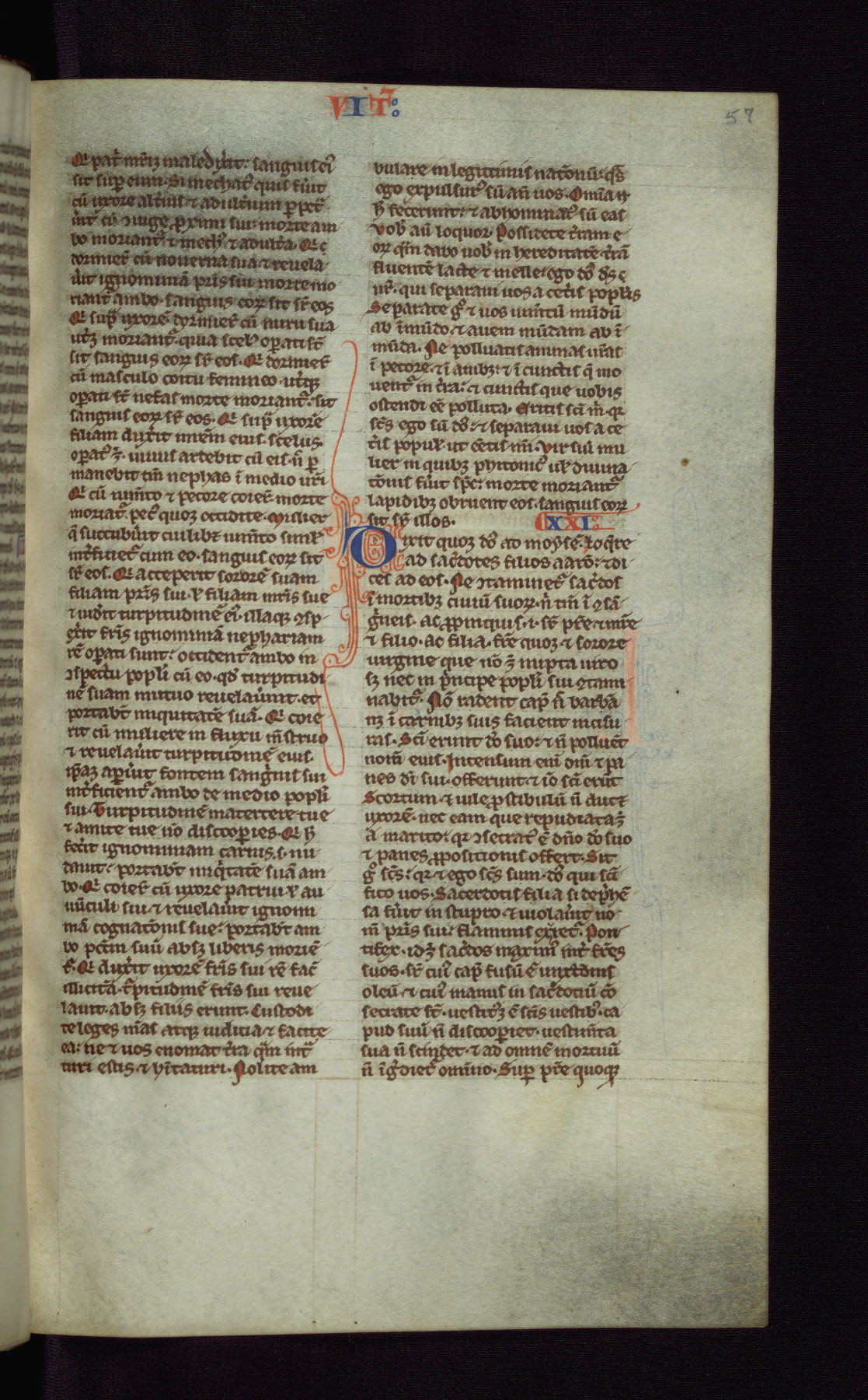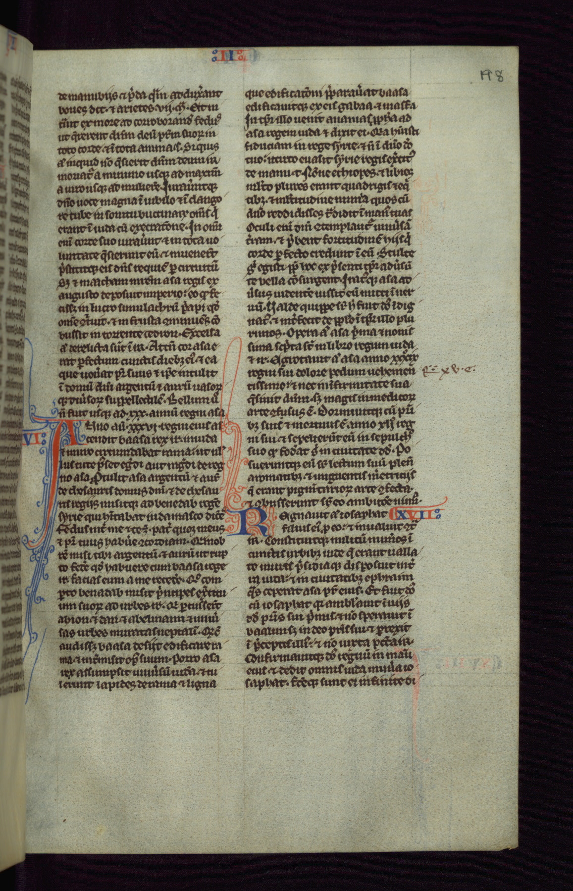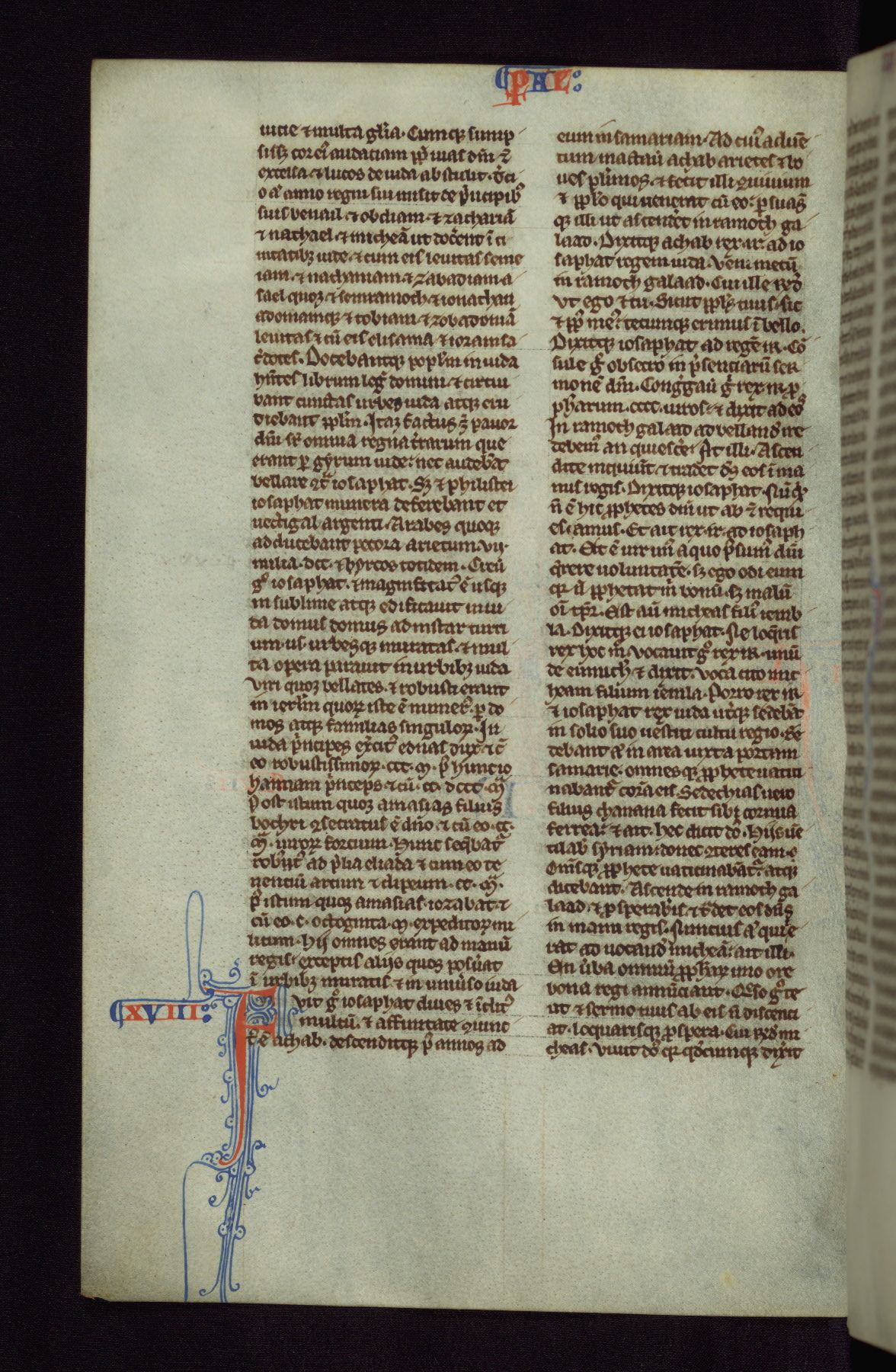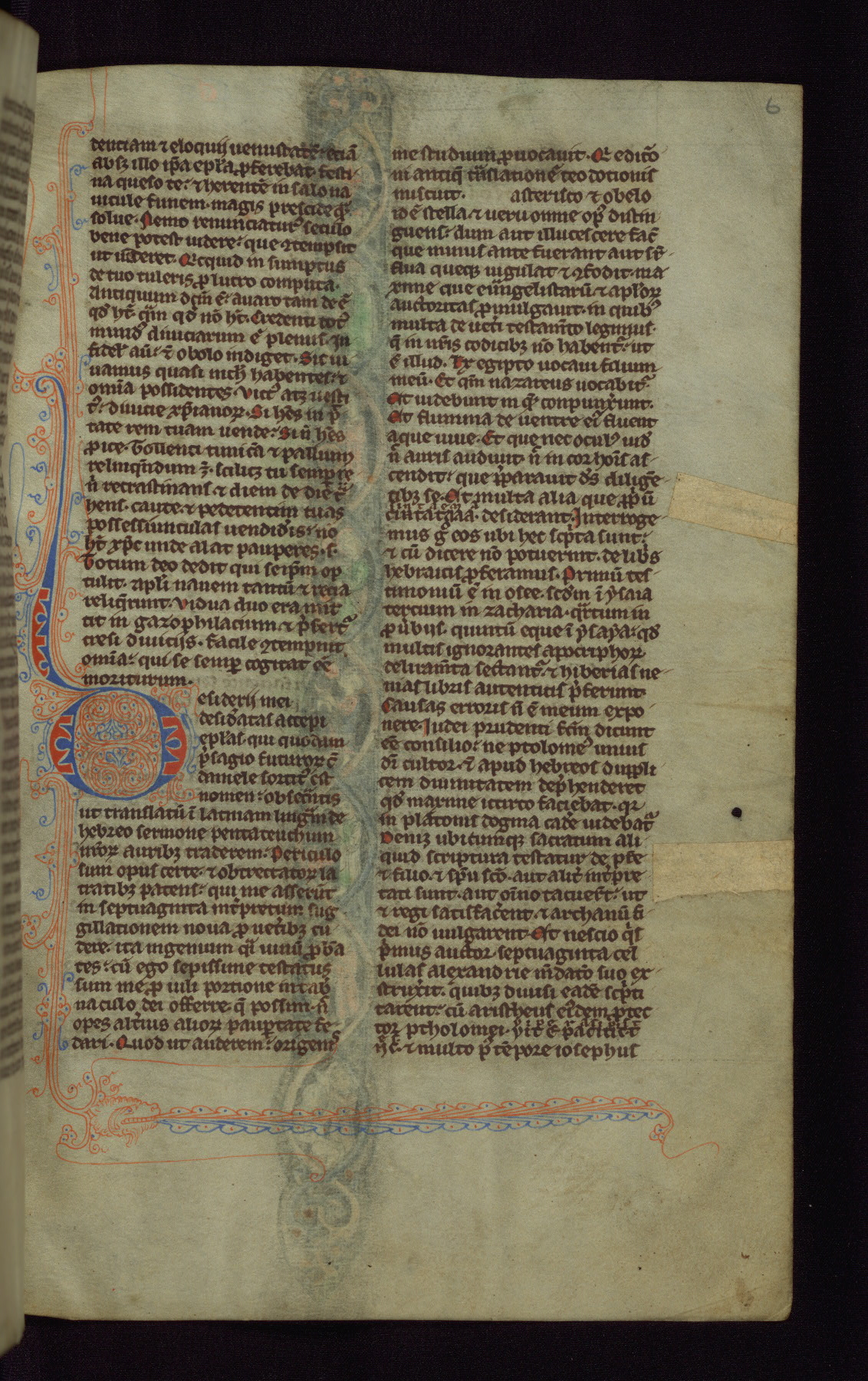 This pocket-size Bible was created around the middle of the thirteenth century in England. It contains the Vulgate text of the Old and New Testaments, arranged in order and divided into chapters. Such Bibles, designed for individual rather than institutional use, began to be created on a large scale during the thirteenth century, especially in Paris. This manuscript is illuminated with a large number of small historiated initials, and also includes a somewhat later image of the Three Living and the Three Dead, a popular scene based on a French poem of the same century.