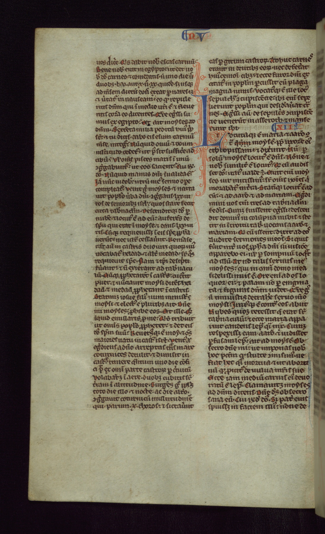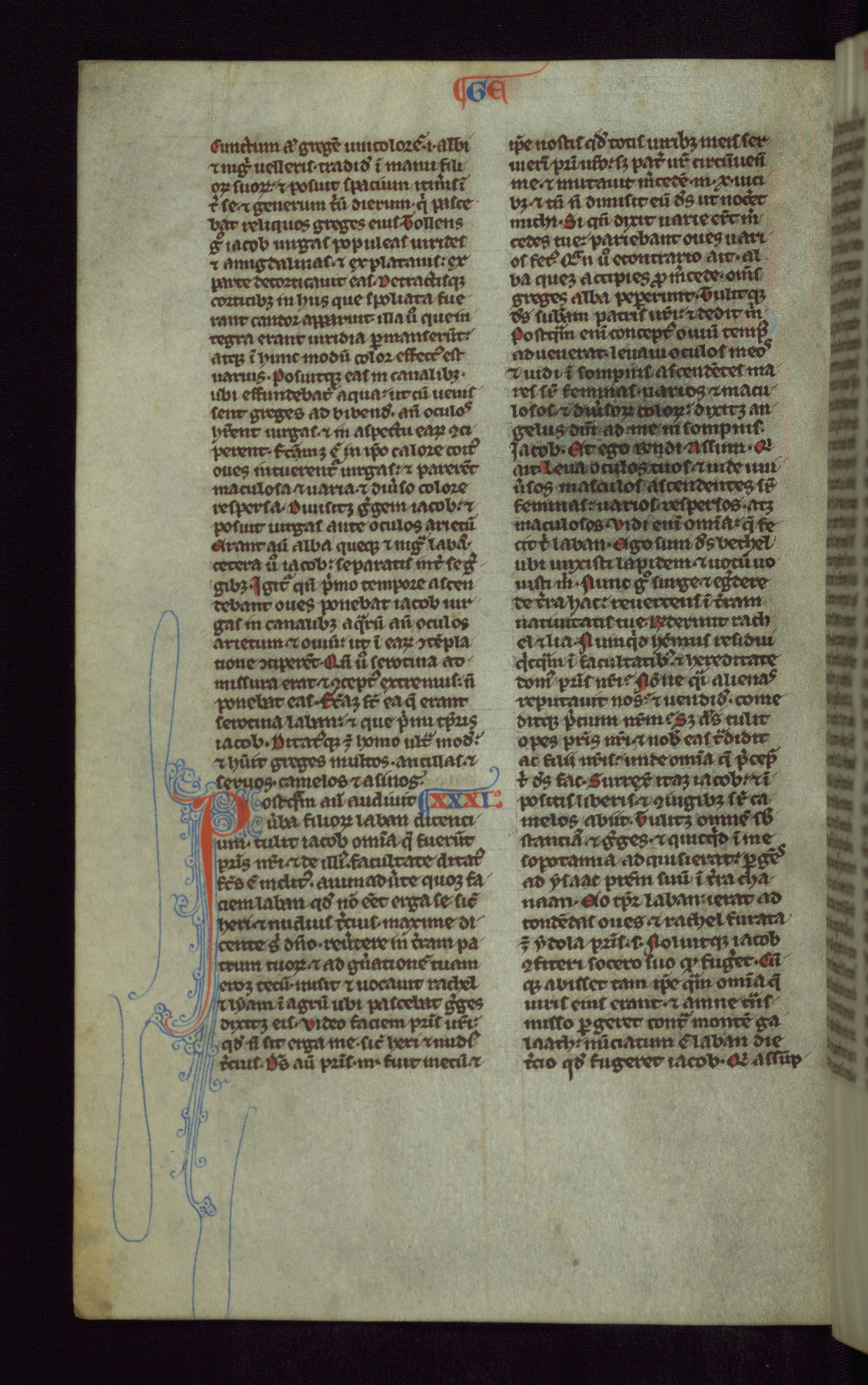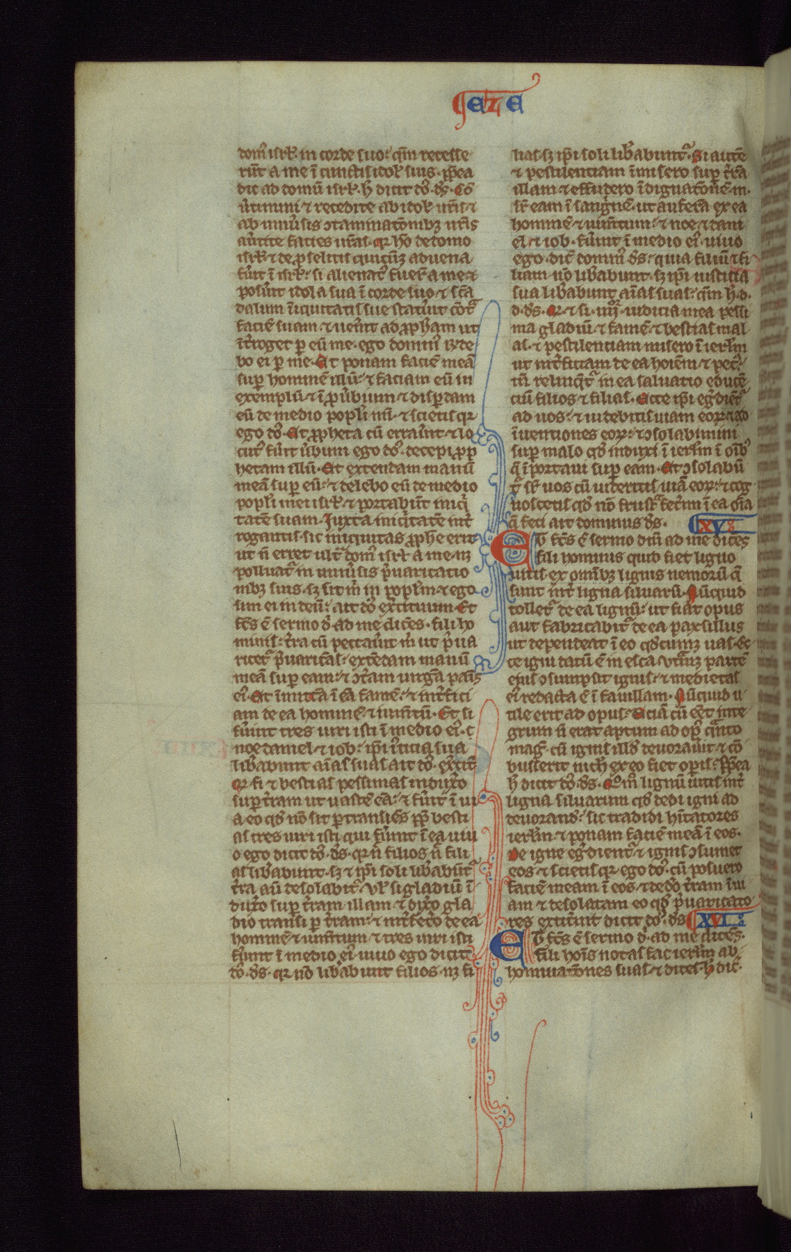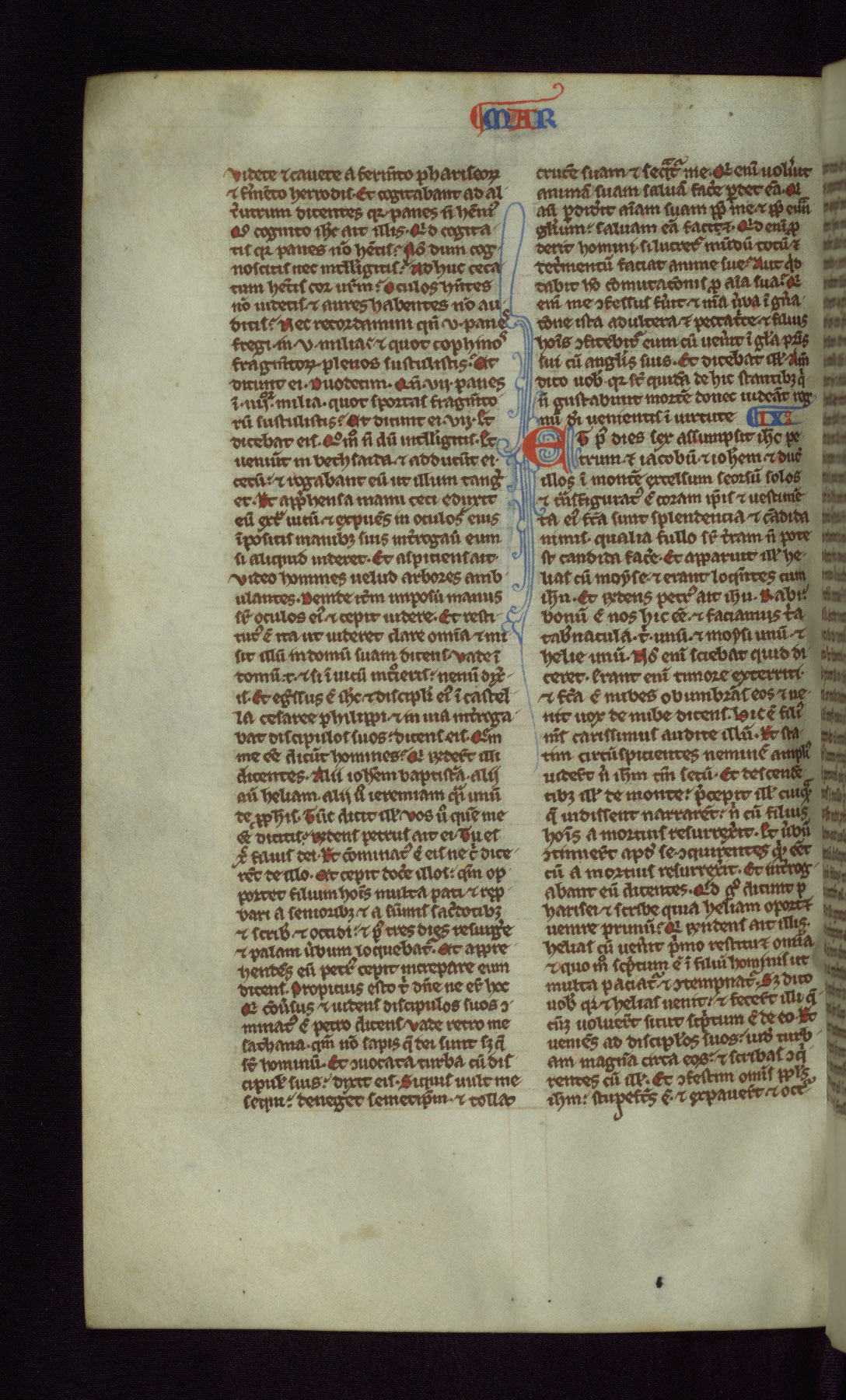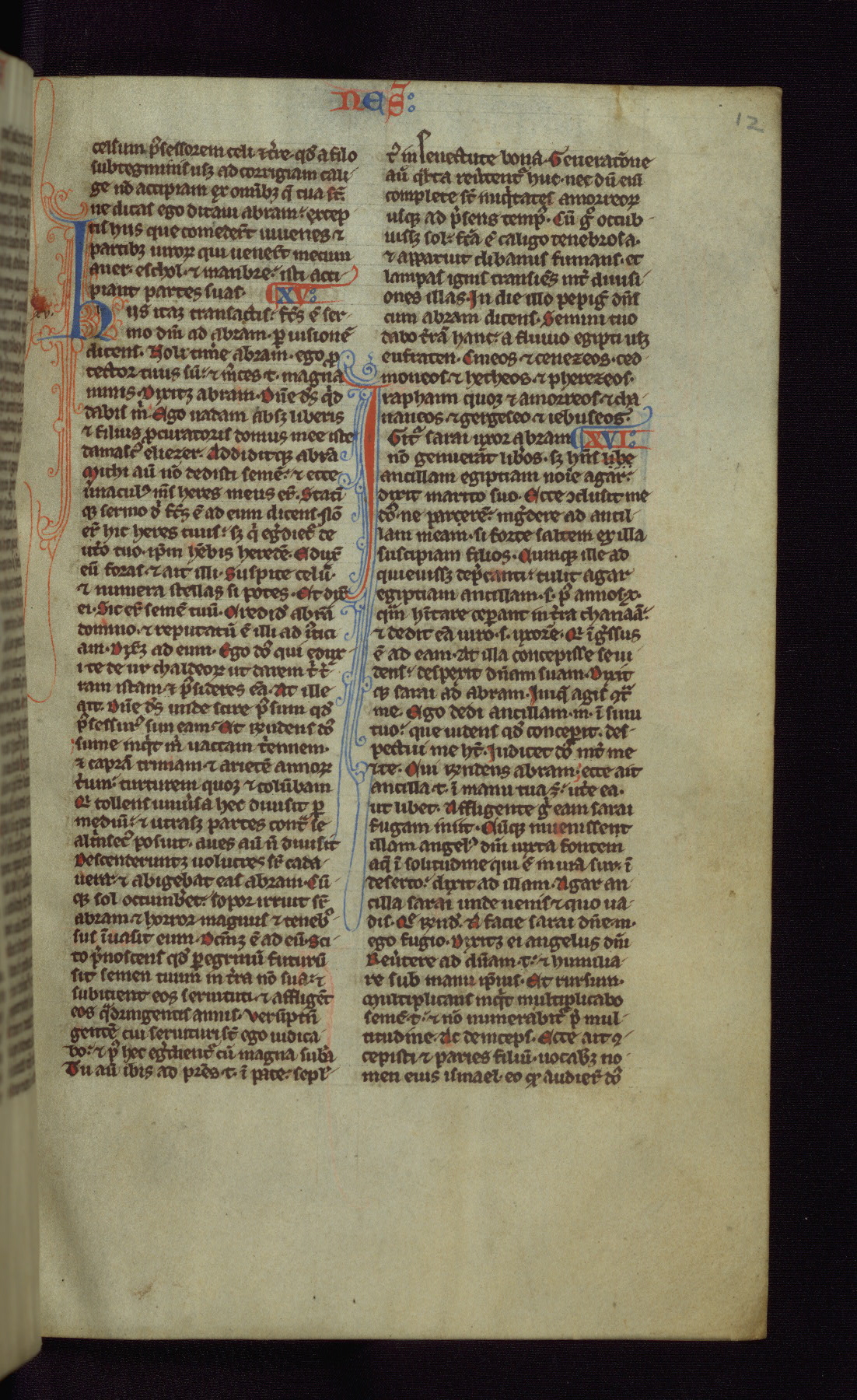 This pocket-size Bible was created around the middle of the thirteenth century in England. It contains the Vulgate text of the Old and New Testaments, arranged in order and divided into chapters. Such Bibles, designed for individual rather than institutional use, began to be created on a large scale during the thirteenth century, especially in Paris. This manuscript is illuminated with a large number of small historiated initials, and also includes a somewhat later image of the Three Living and the Three Dead, a popular scene based on a French poem of the same century.