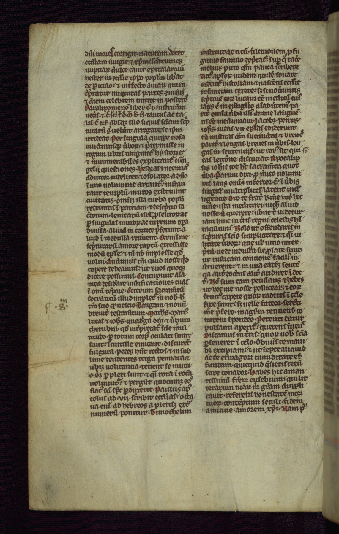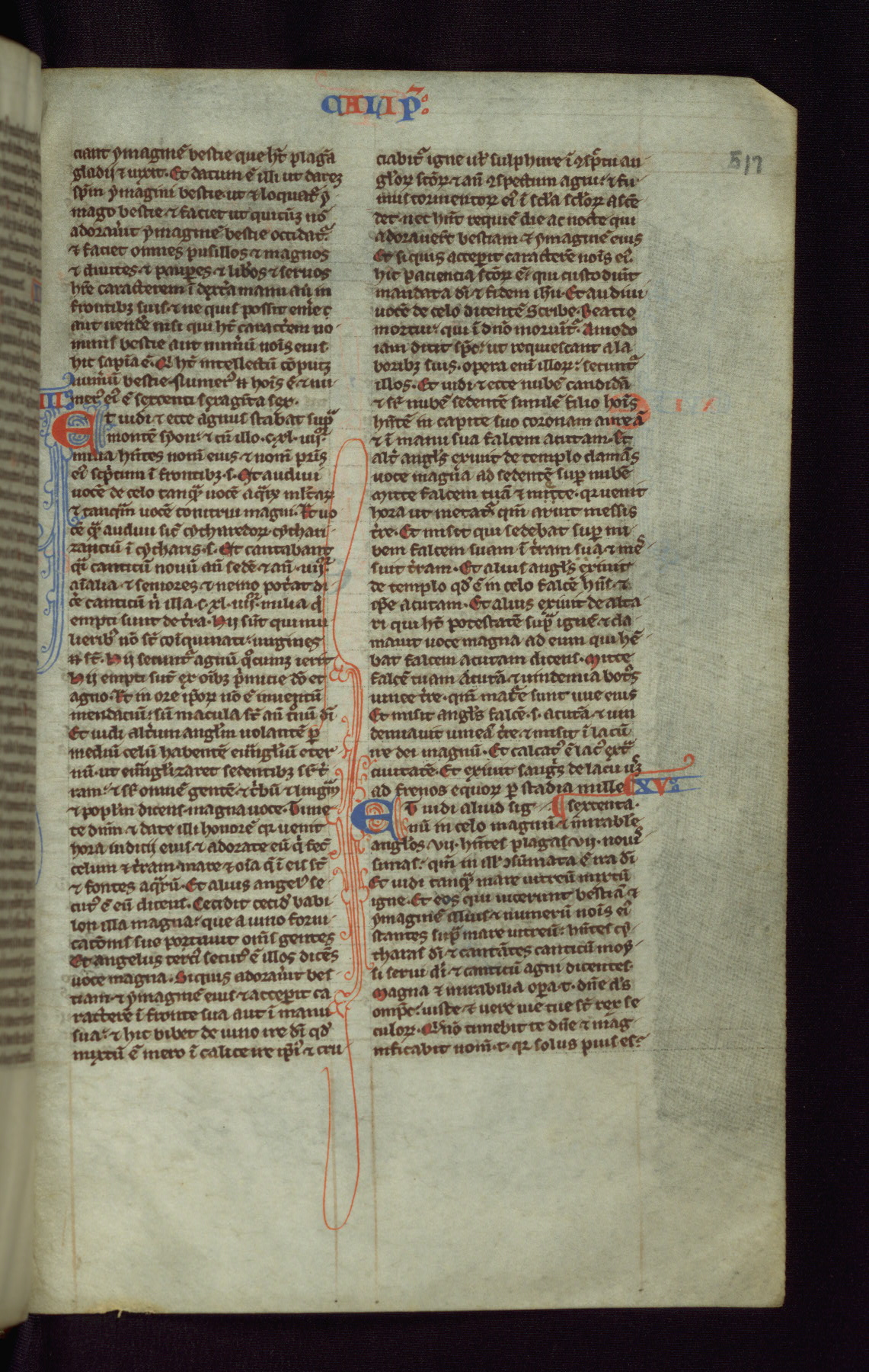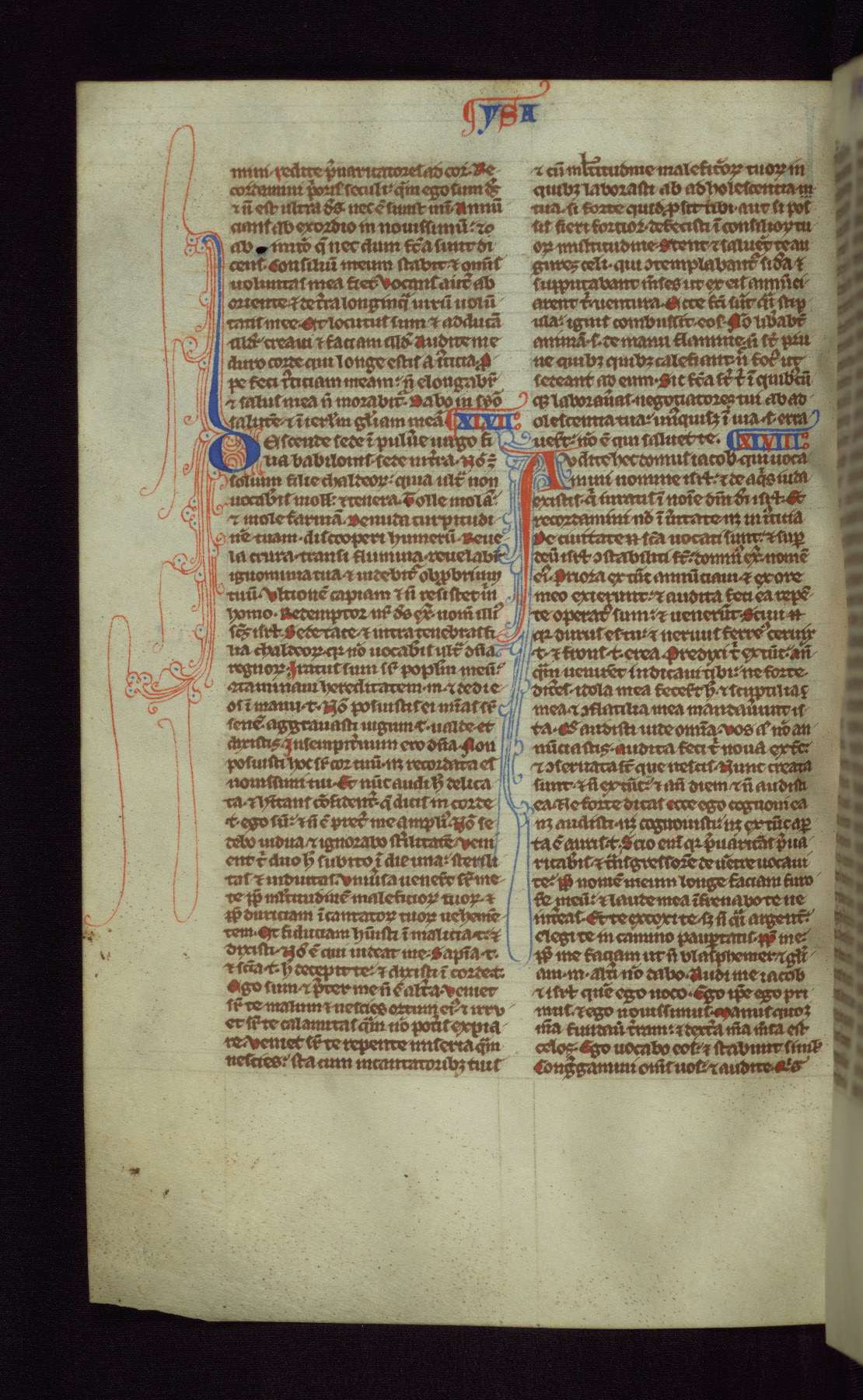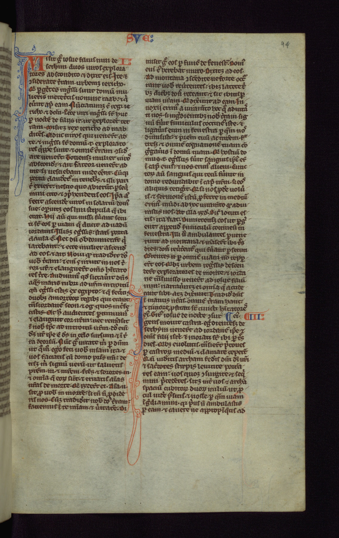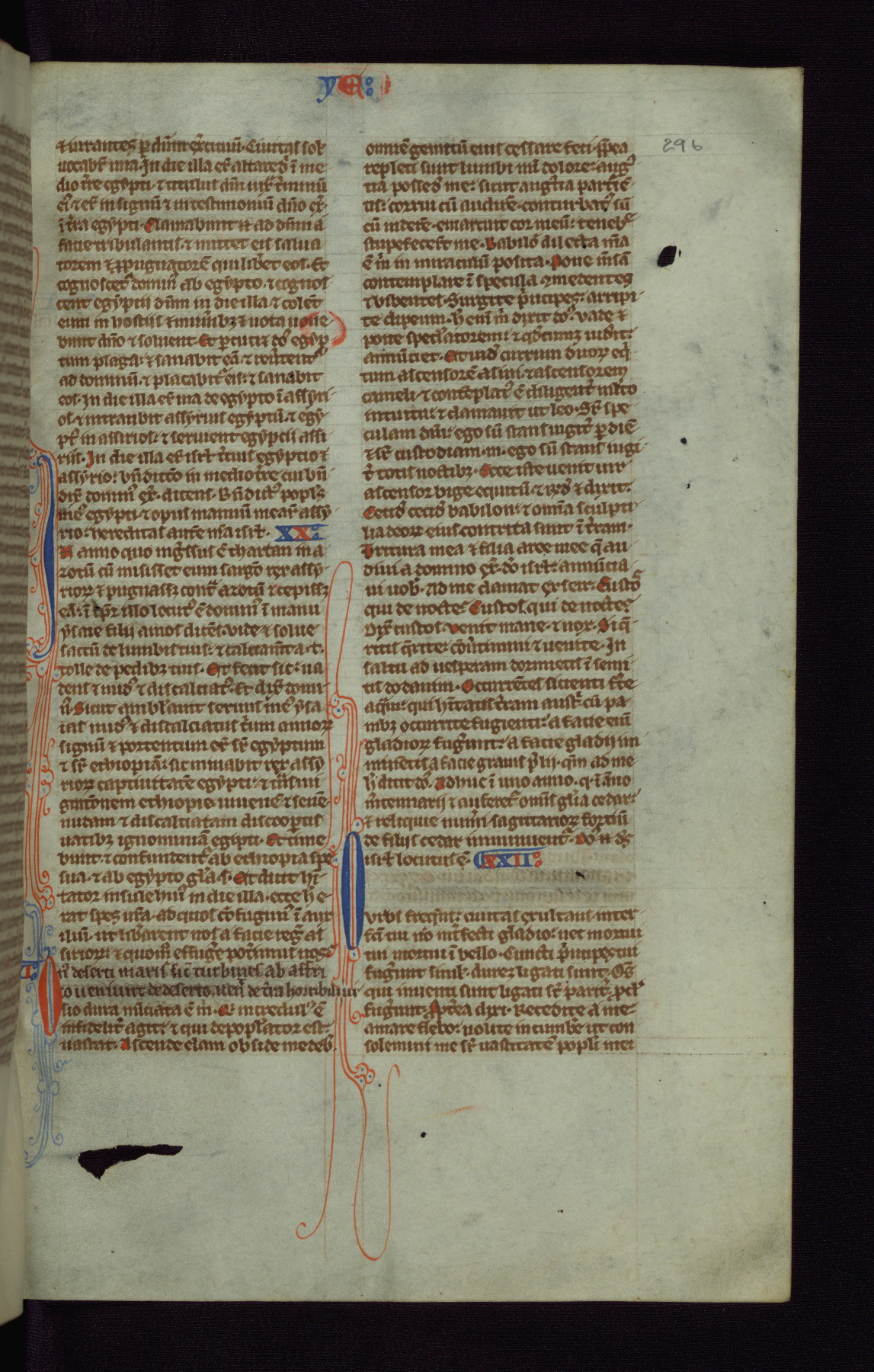 This pocket-size Bible was created around the middle of the thirteenth century in England. It contains the Vulgate text of the Old and New Testaments, arranged in order and divided into chapters. Such Bibles, designed for individual rather than institutional use, began to be created on a large scale during the thirteenth century, especially in Paris. This manuscript is illuminated with a large number of small historiated initials, and also includes a somewhat later image of the Three Living and the Three Dead, a popular scene based on a French poem of the same century.