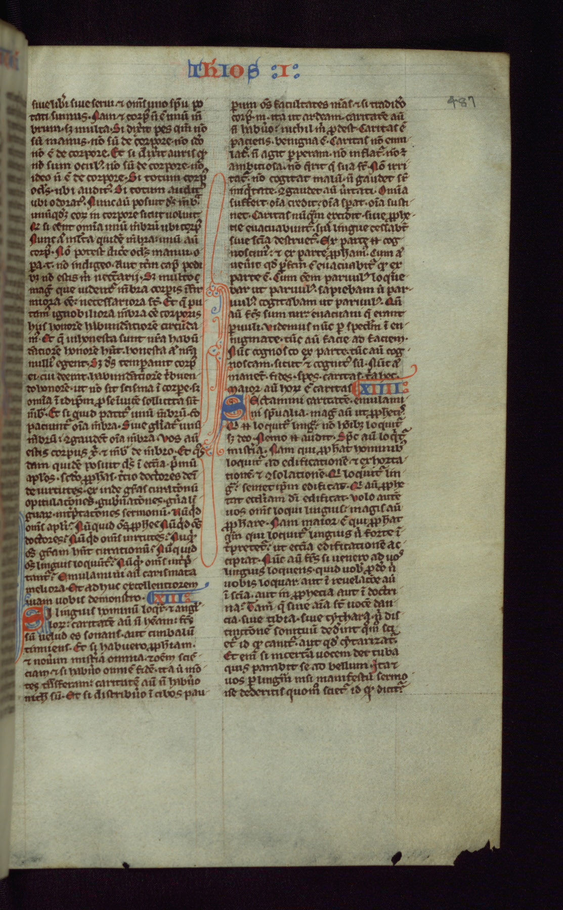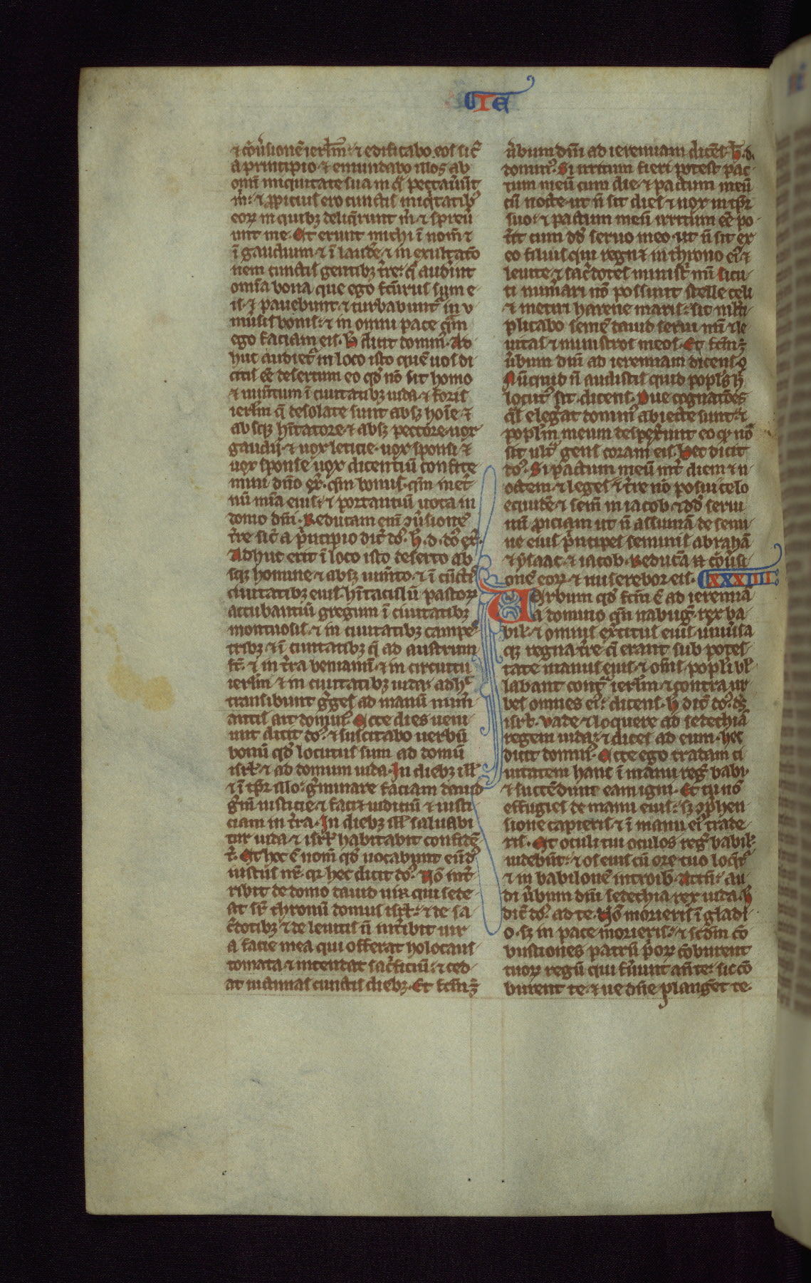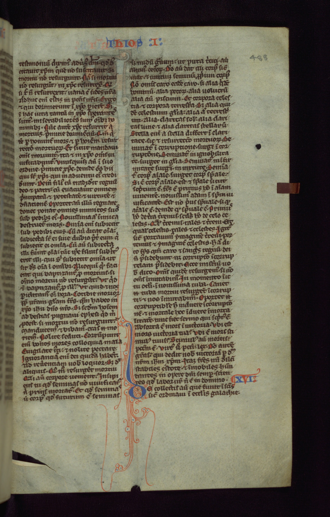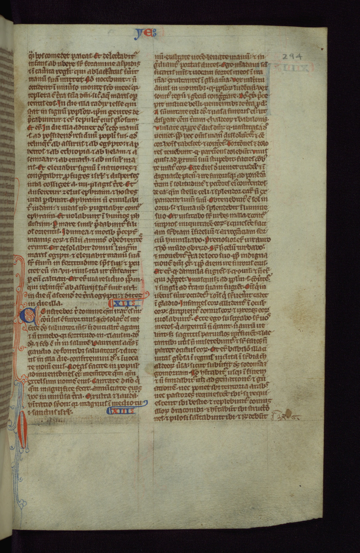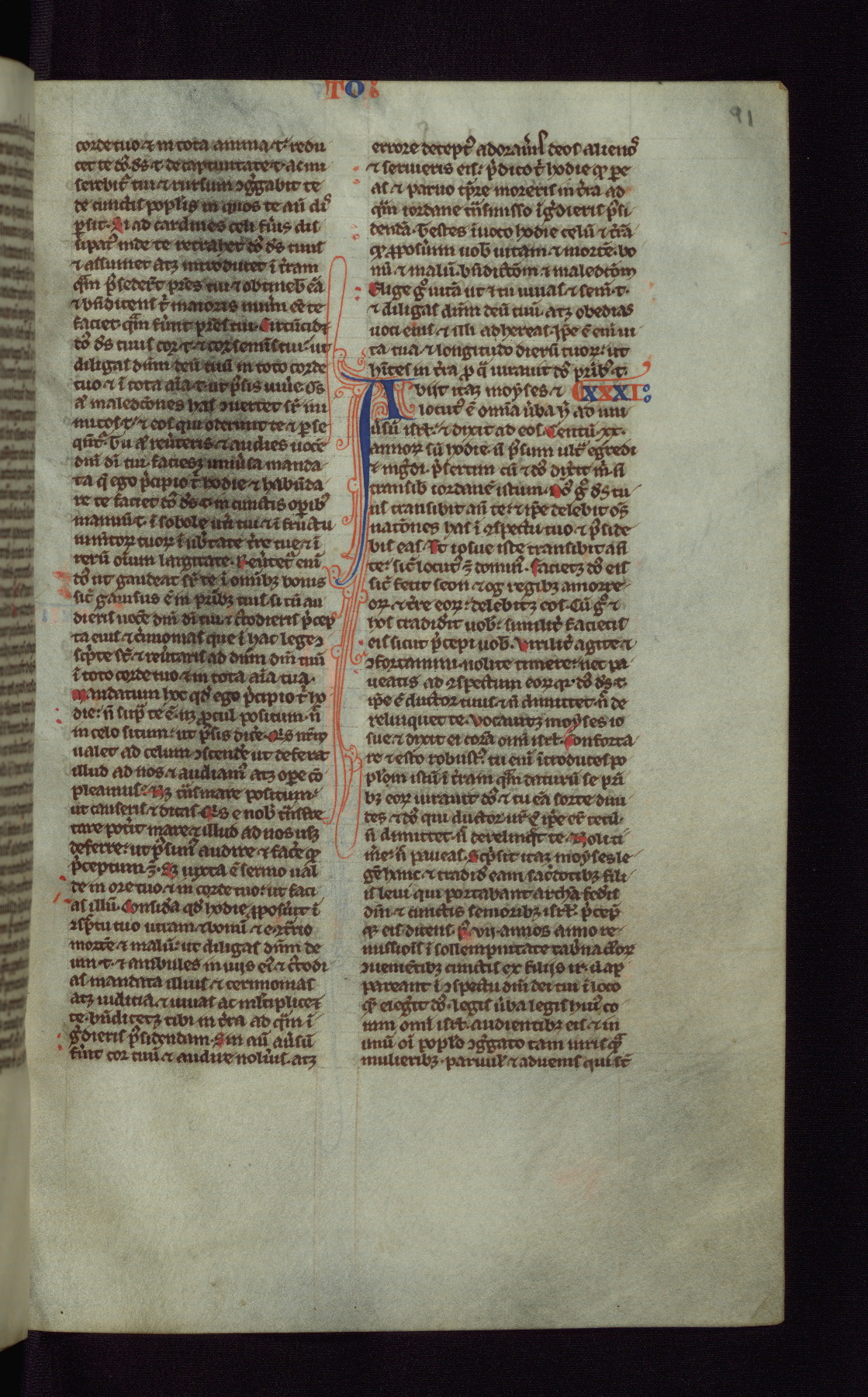 This pocket-size Bible was created around the middle of the thirteenth century in England. It contains the Vulgate text of the Old and New Testaments, arranged in order and divided into chapters. Such Bibles, designed for individual rather than institutional use, began to be created on a large scale during the thirteenth century, especially in Paris. This manuscript is illuminated with a large number of small historiated initials, and also includes a somewhat later image of the Three Living and the Three Dead, a popular scene based on a French poem of the same century.