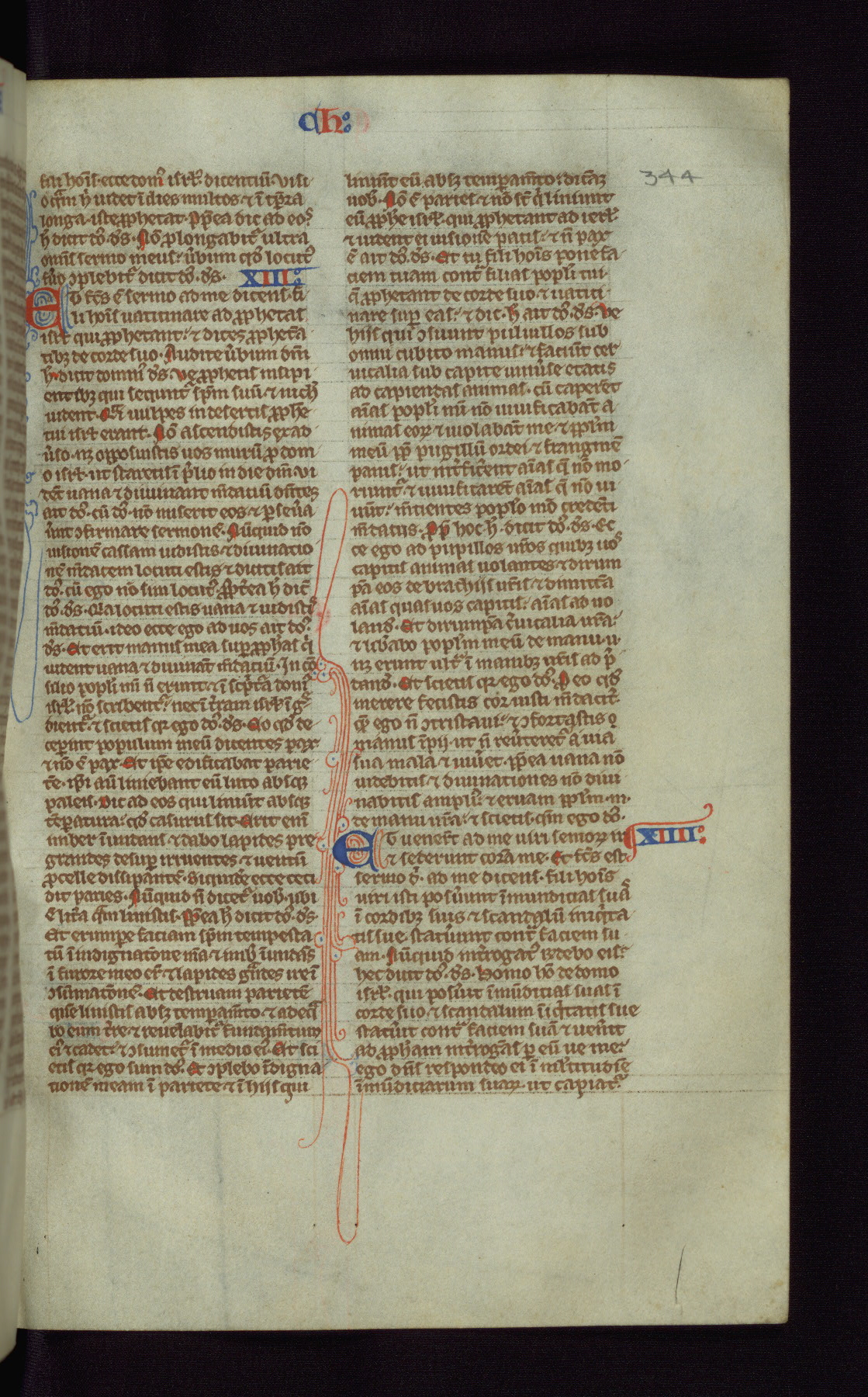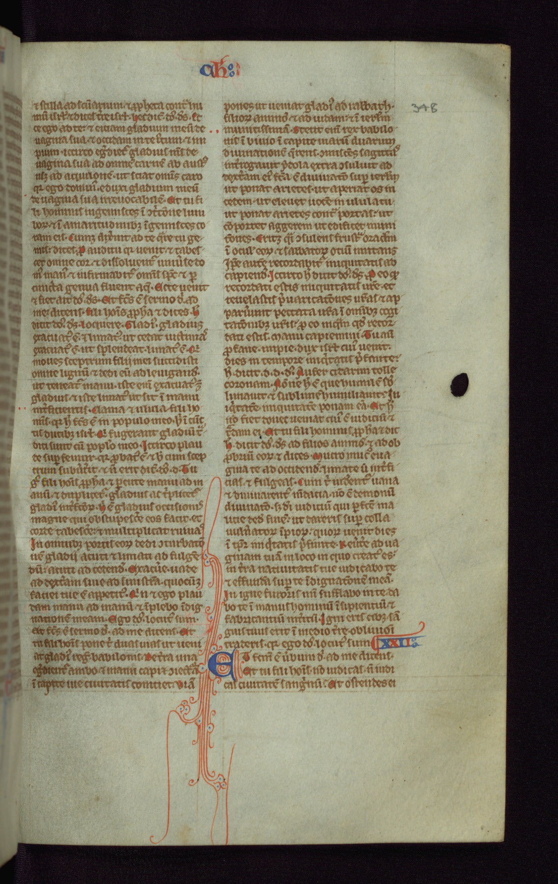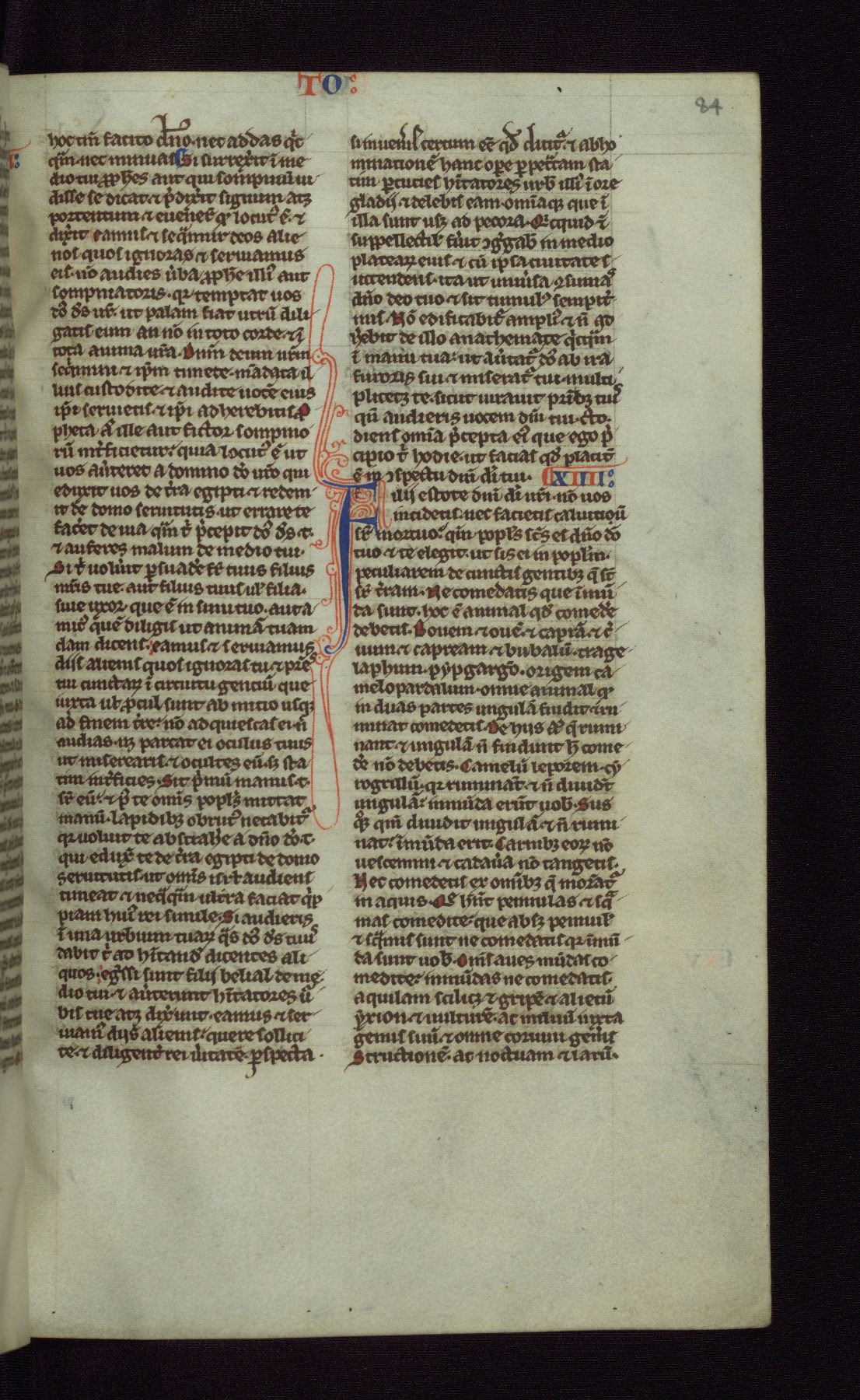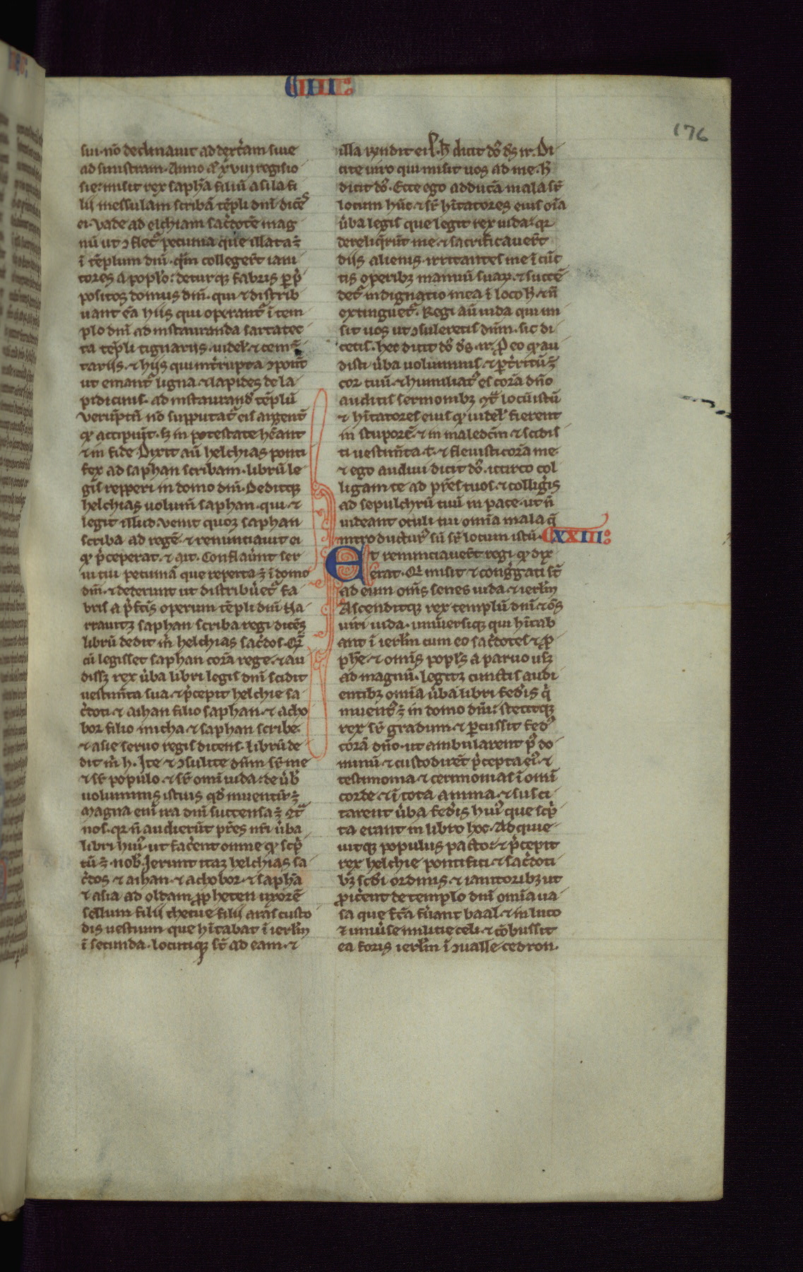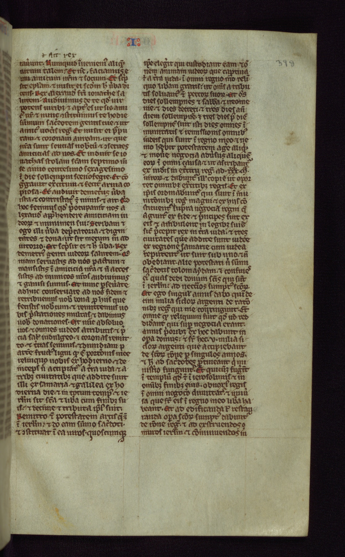 This pocket-size Bible was created around the middle of the thirteenth century in England. It contains the Vulgate text of the Old and New Testaments, arranged in order and divided into chapters. Such Bibles, designed for individual rather than institutional use, began to be created on a large scale during the thirteenth century, especially in Paris. This manuscript is illuminated with a large number of small historiated initials, and also includes a somewhat later image of the Three Living and the Three Dead, a popular scene based on a French poem of the same century.