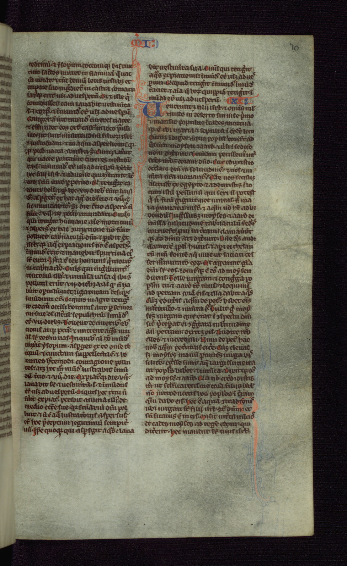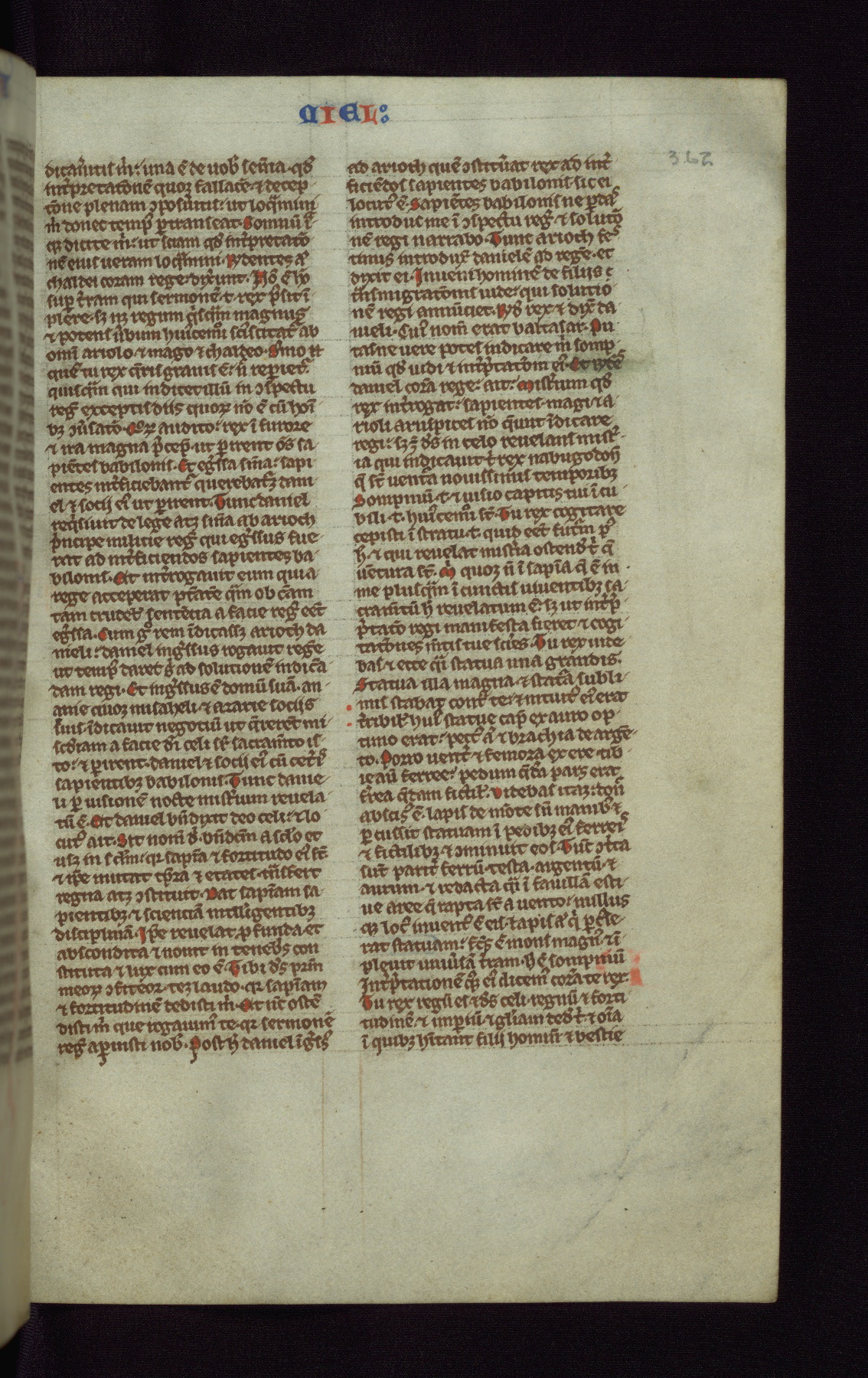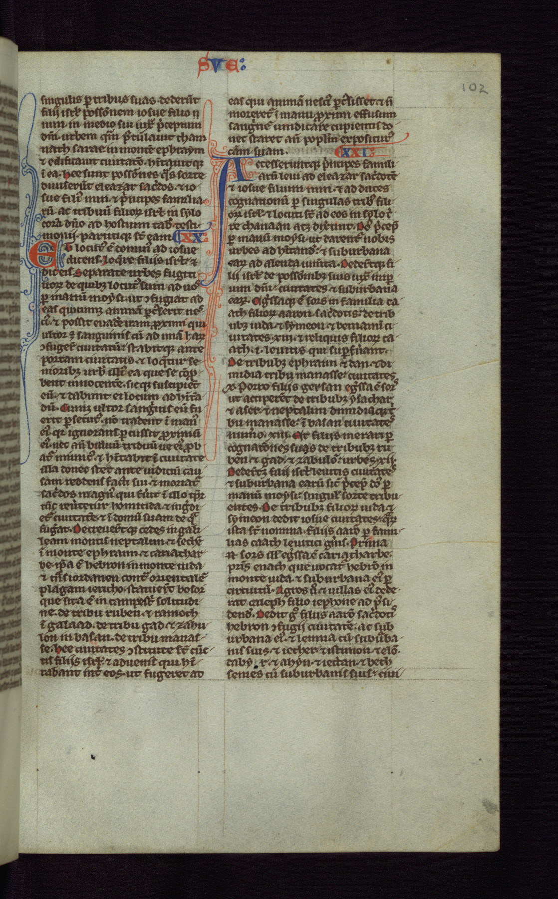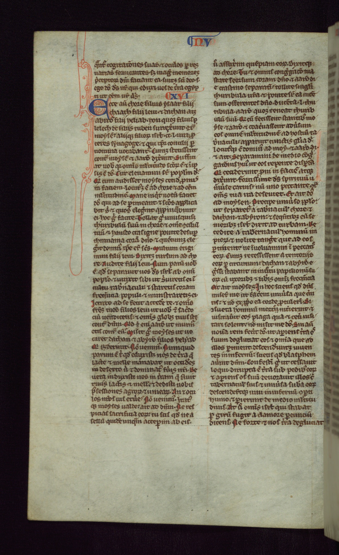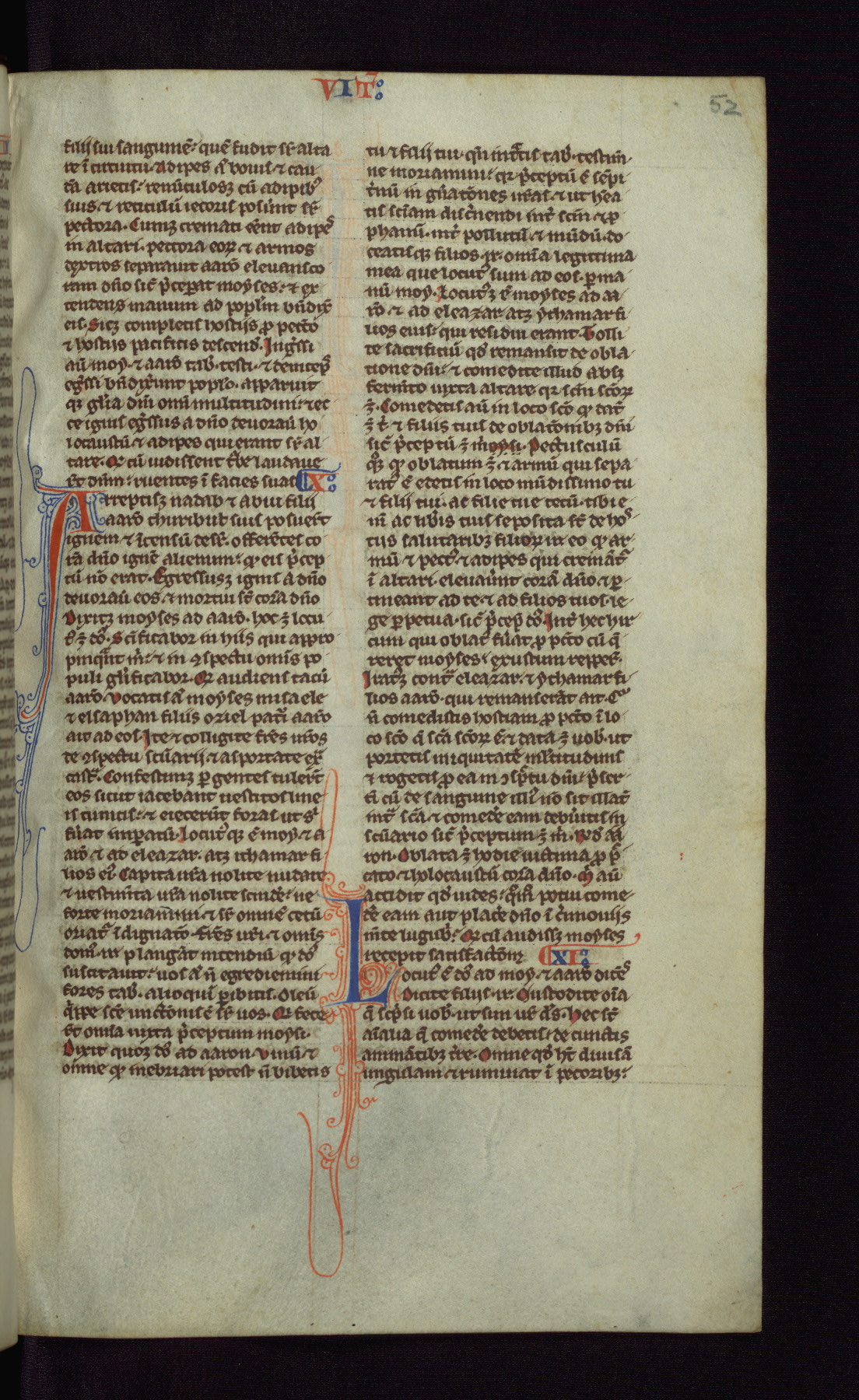 This pocket-size Bible was created around the middle of the thirteenth century in England. It contains the Vulgate text of the Old and New Testaments, arranged in order and divided into chapters. Such Bibles, designed for individual rather than institutional use, began to be created on a large scale during the thirteenth century, especially in Paris. This manuscript is illuminated with a large number of small historiated initials, and also includes a somewhat later image of the Three Living and the Three Dead, a popular scene based on a French poem of the same century.