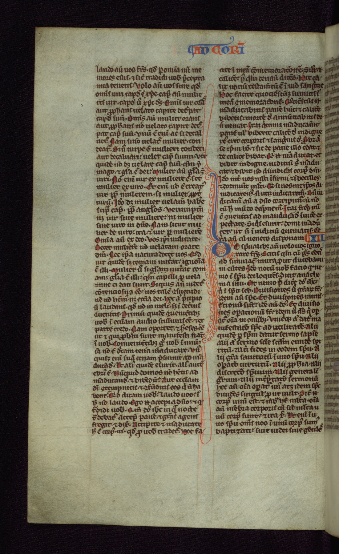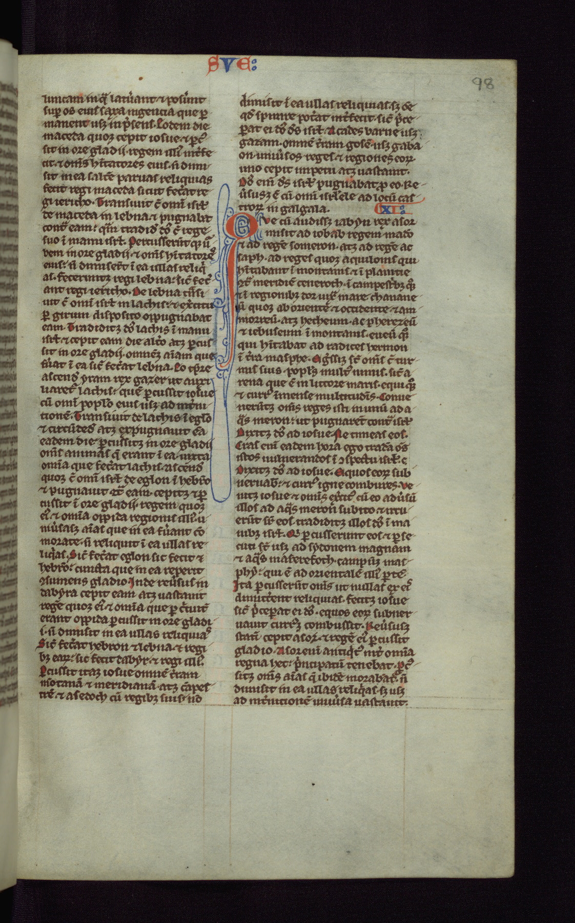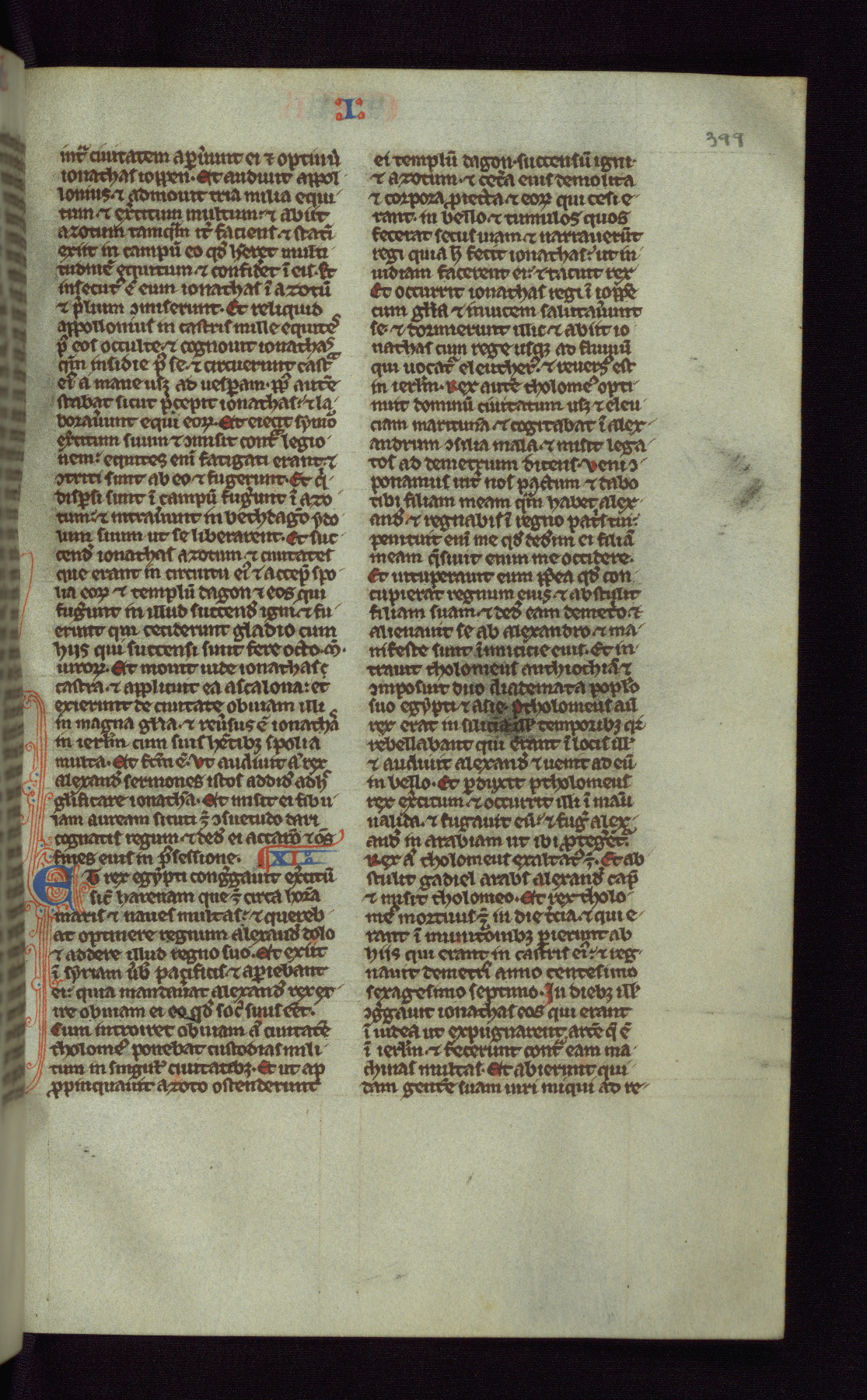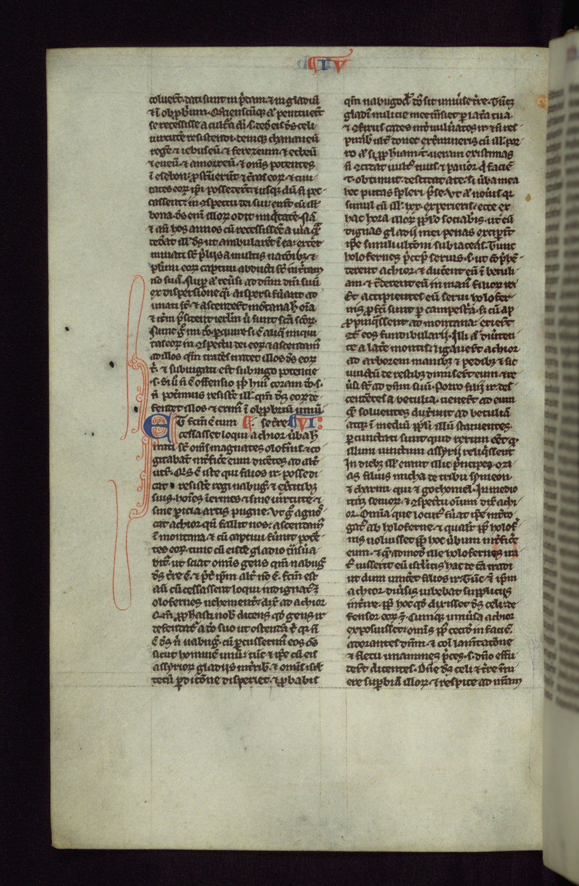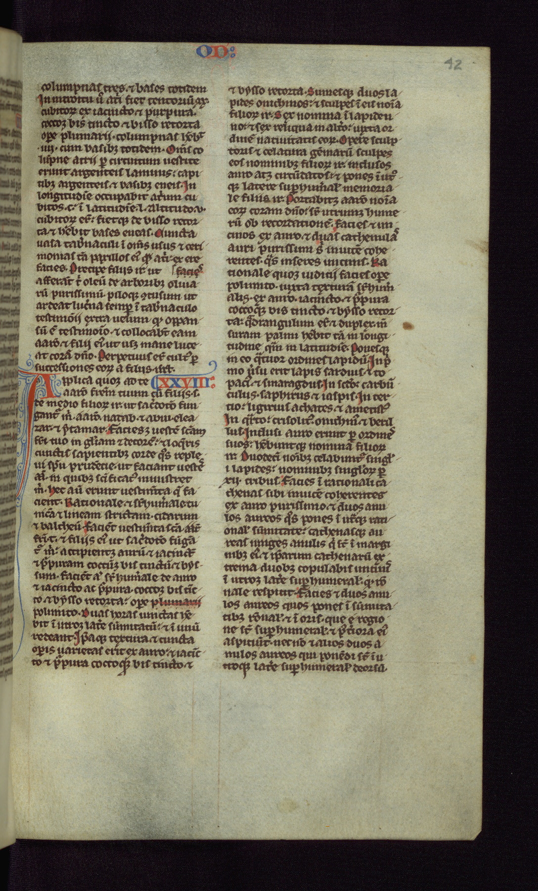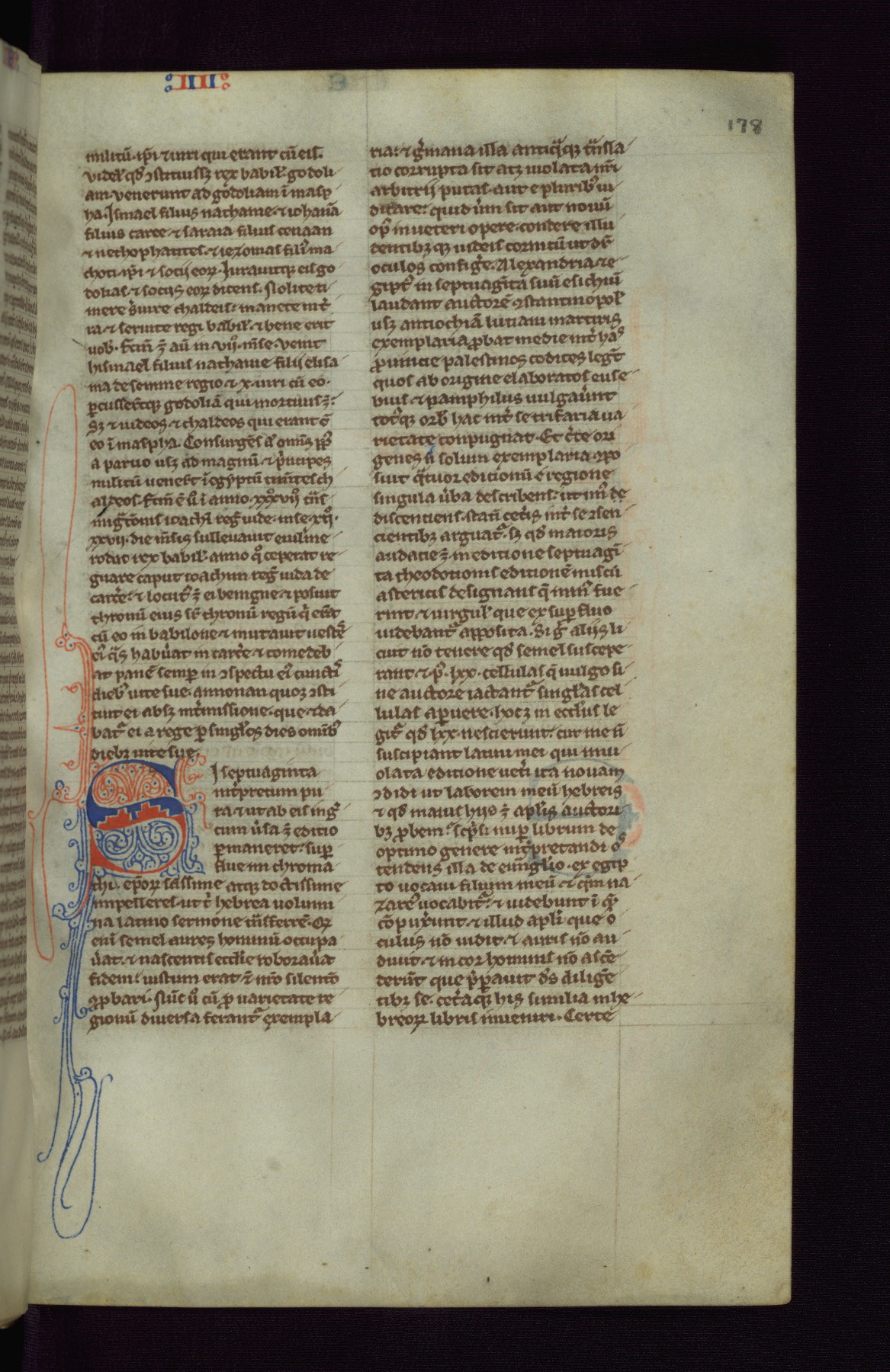 This pocket-size Bible was created around the middle of the thirteenth century in England. It contains the Vulgate text of the Old and New Testaments, arranged in order and divided into chapters. Such Bibles, designed for individual rather than institutional use, began to be created on a large scale during the thirteenth century, especially in Paris. This manuscript is illuminated with a large number of small historiated initials, and also includes a somewhat later image of the Three Living and the Three Dead, a popular scene based on a French poem of the same century.