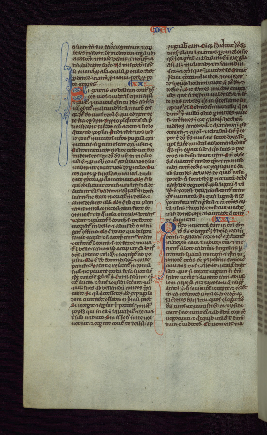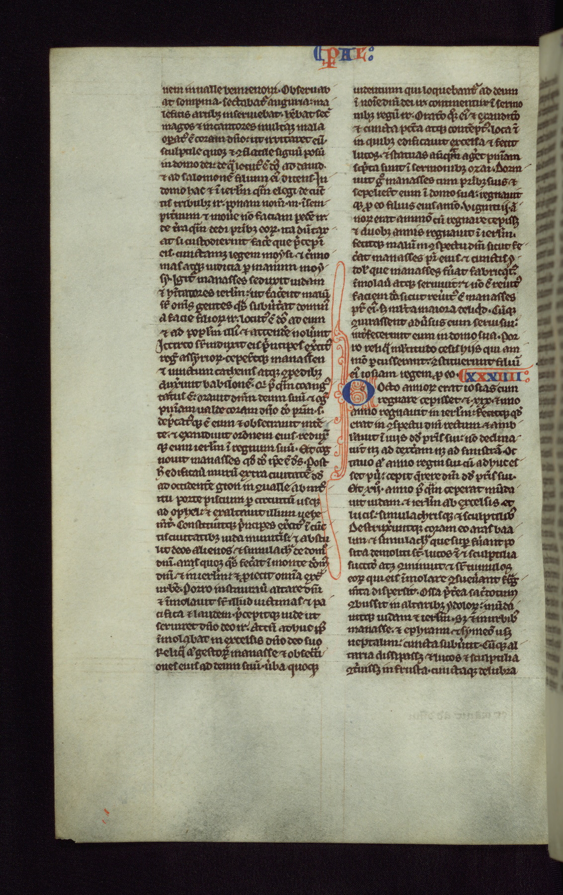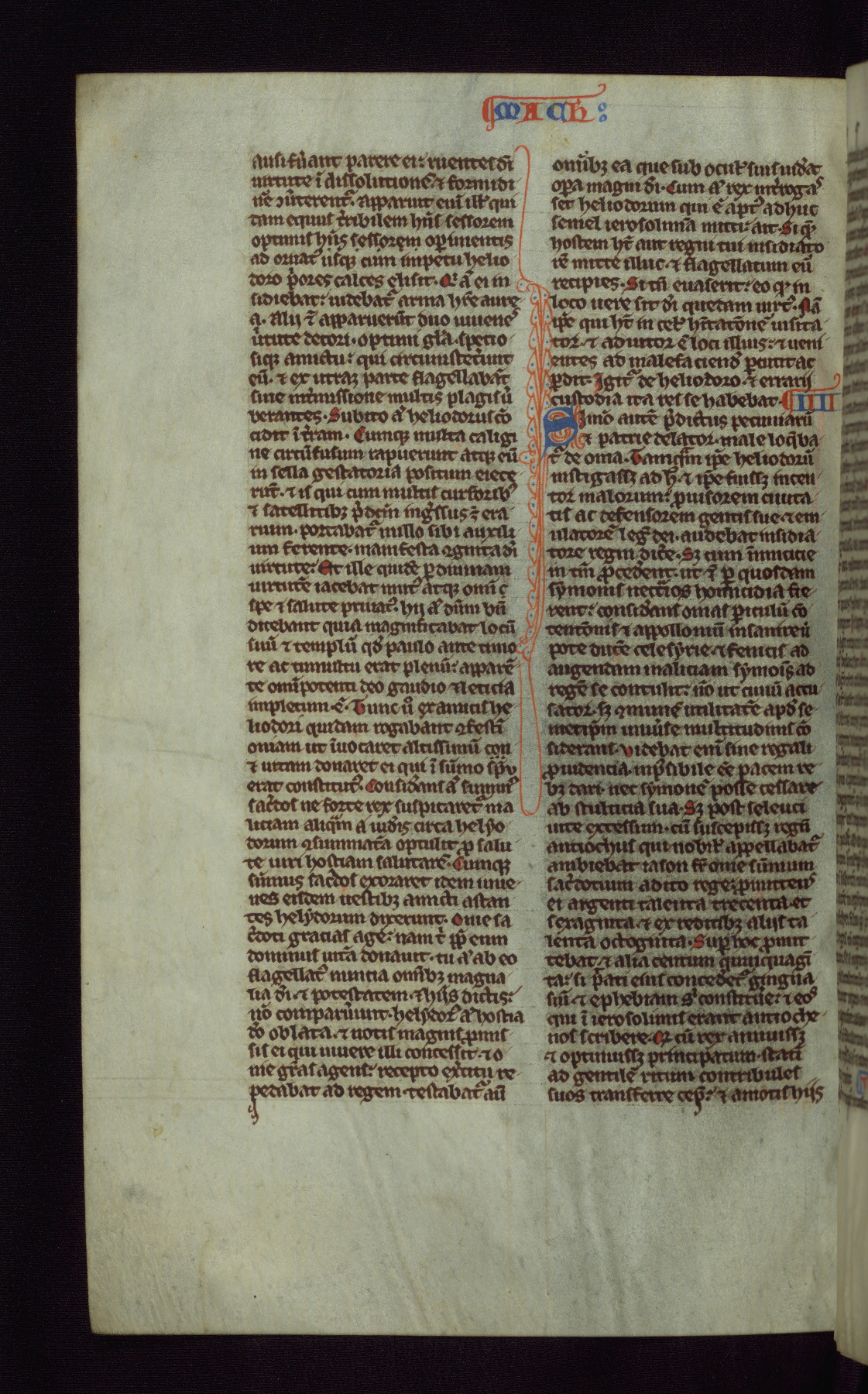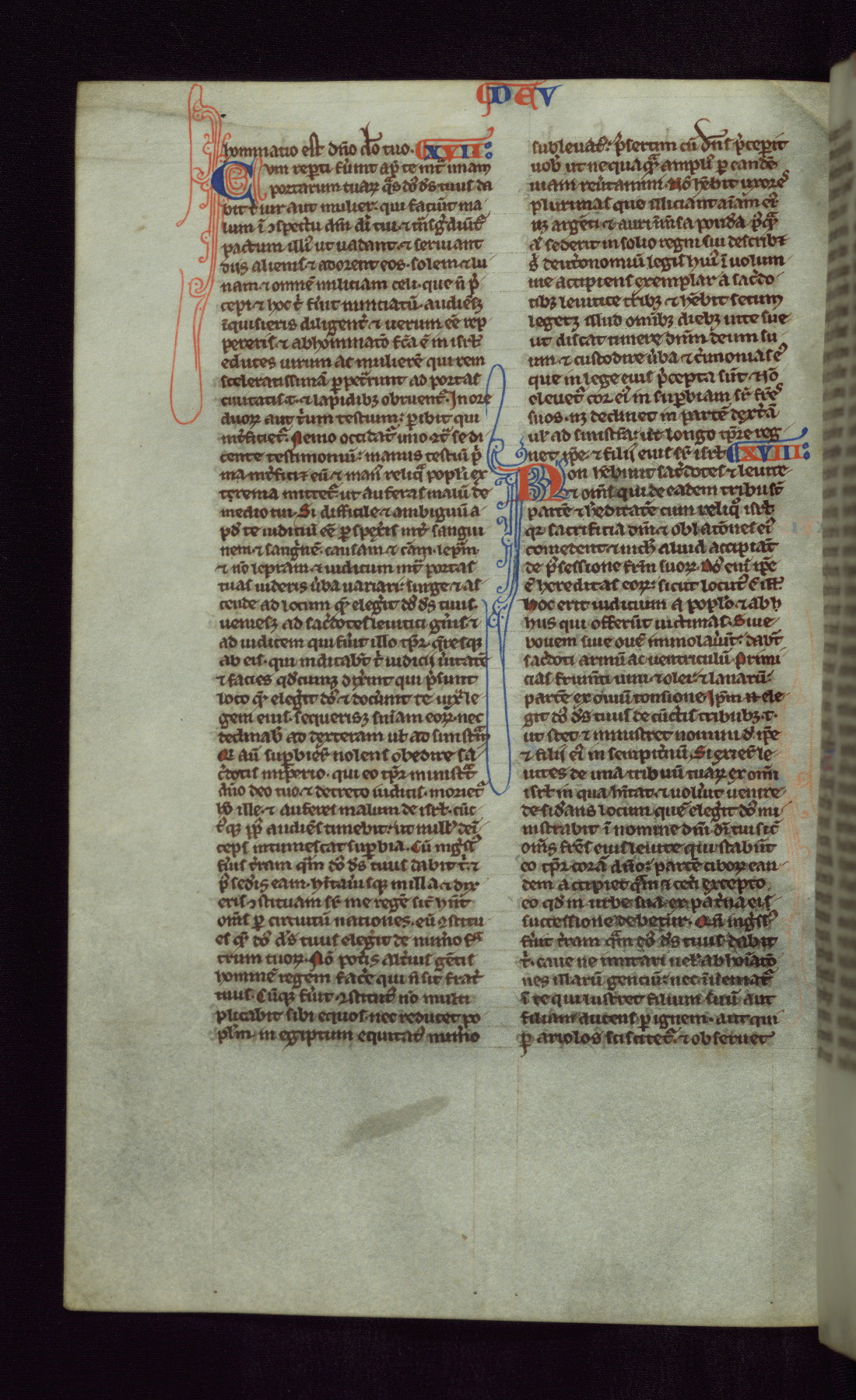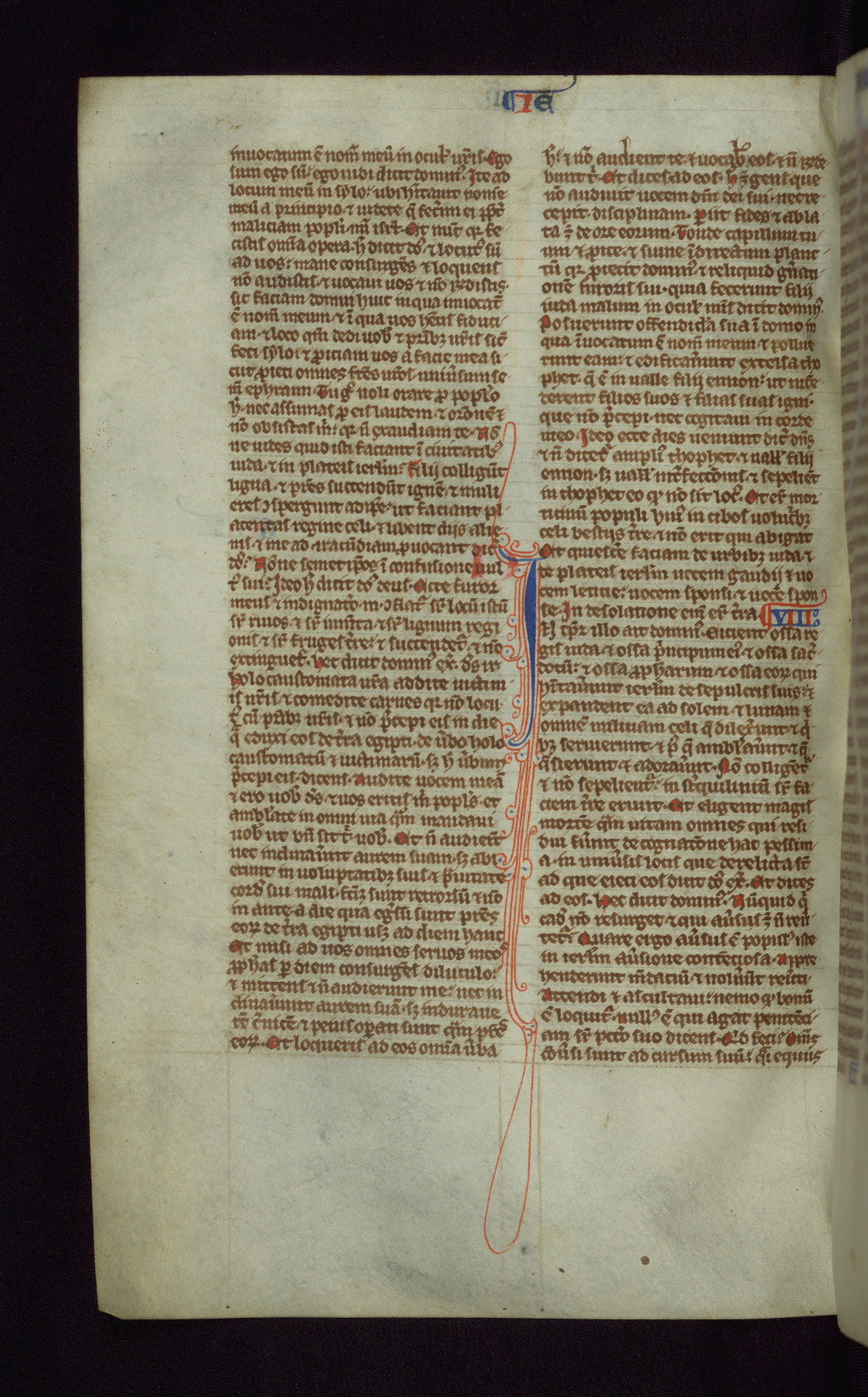 This pocket-size Bible was created around the middle of the thirteenth century in England. It contains the Vulgate text of the Old and New Testaments, arranged in order and divided into chapters. Such Bibles, designed for individual rather than institutional use, began to be created on a large scale during the thirteenth century, especially in Paris. This manuscript is illuminated with a large number of small historiated initials, and also includes a somewhat later image of the Three Living and the Three Dead, a popular scene based on a French poem of the same century.