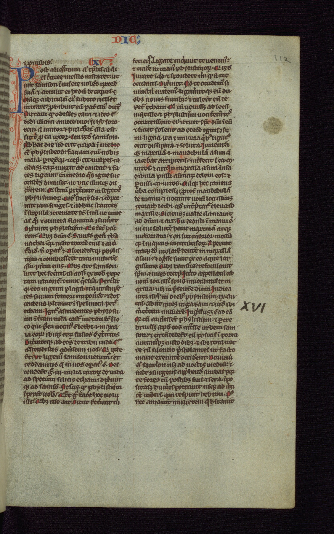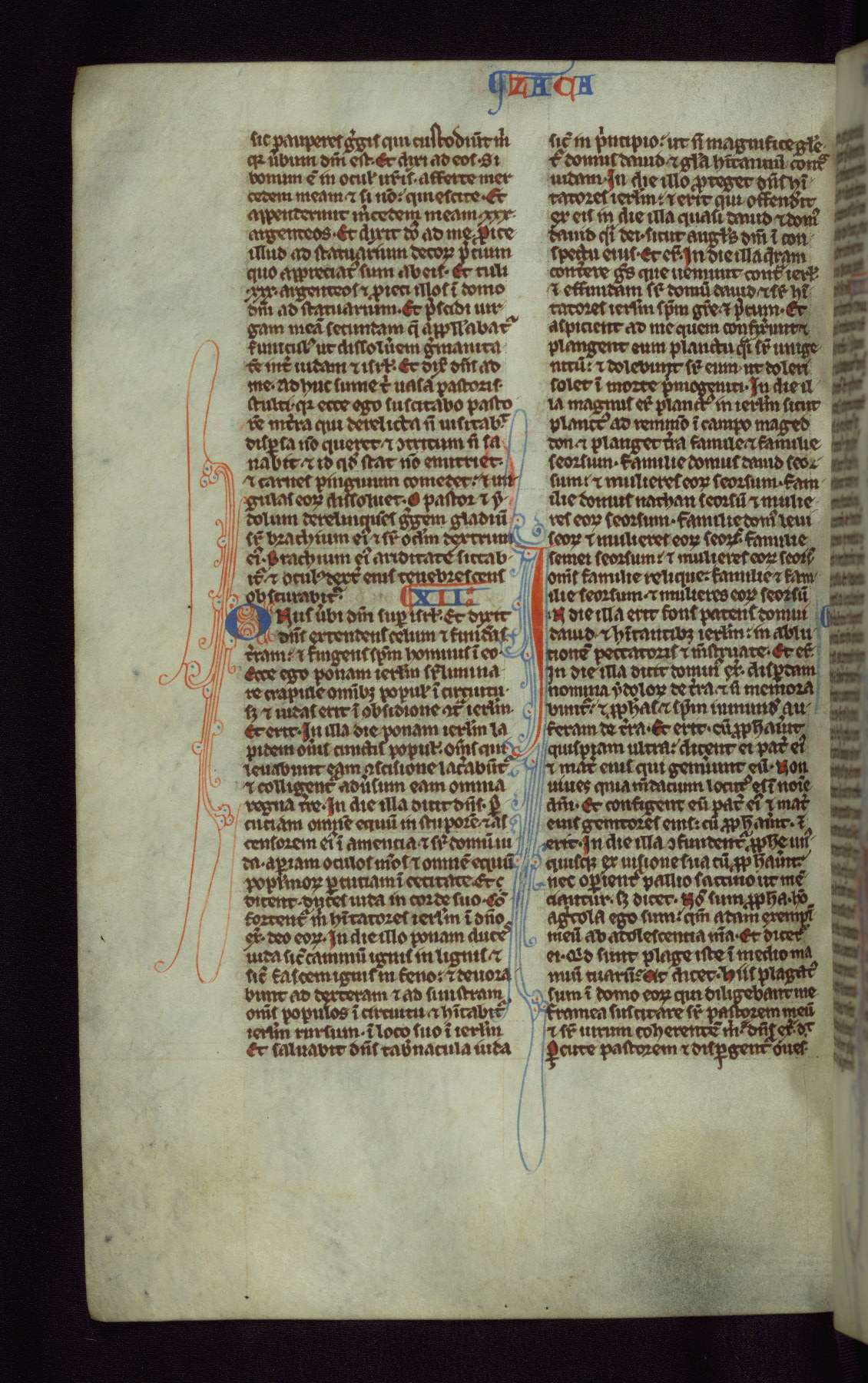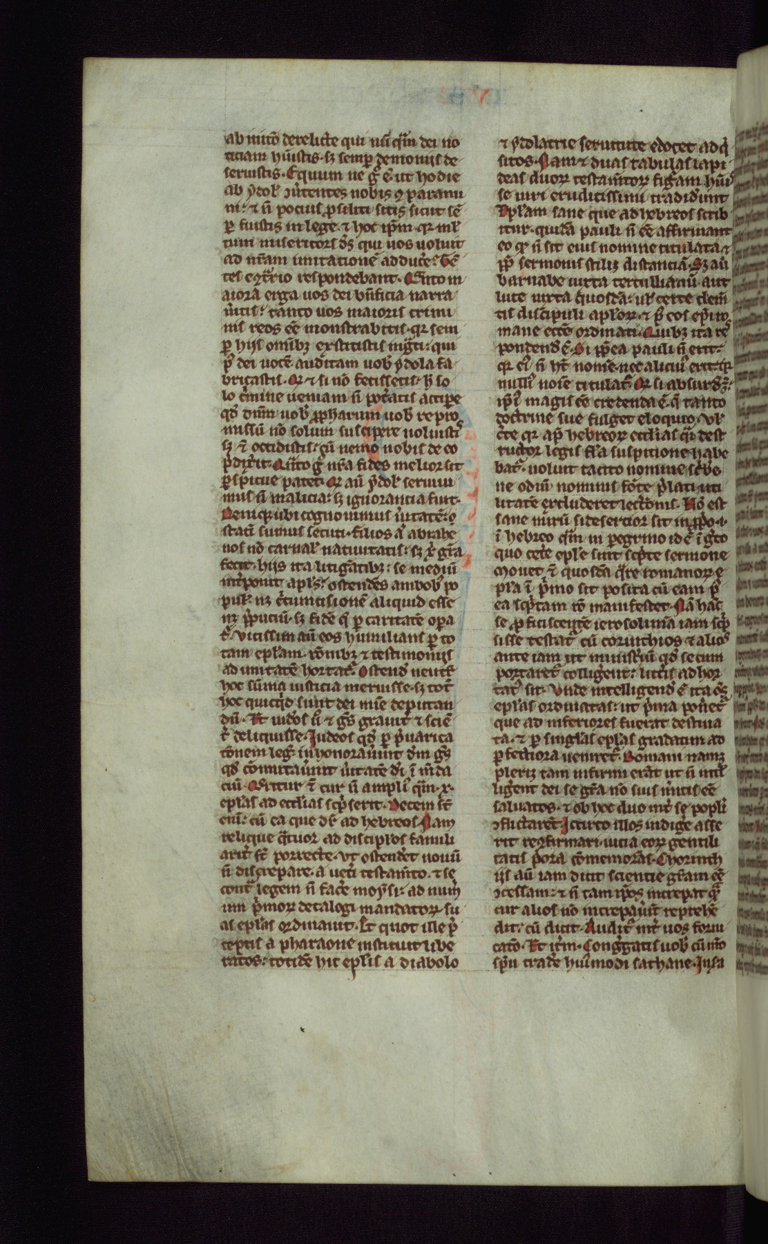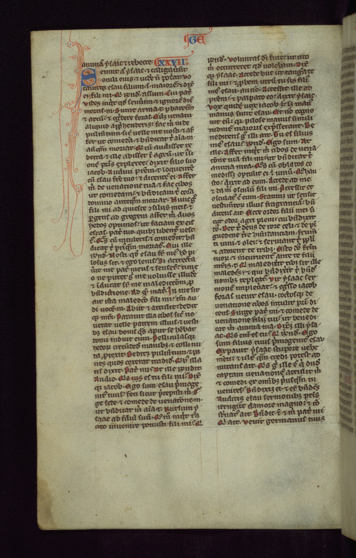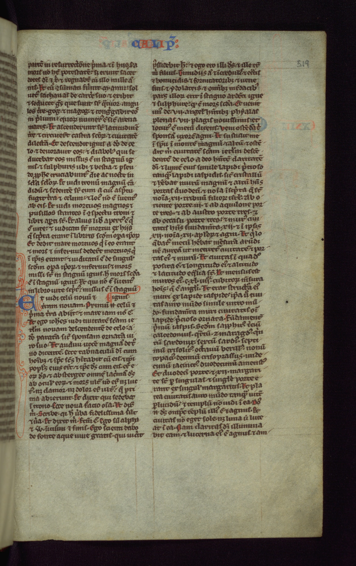 This pocket-size Bible was created around the middle of the thirteenth century in England. It contains the Vulgate text of the Old and New Testaments, arranged in order and divided into chapters. Such Bibles, designed for individual rather than institutional use, began to be created on a large scale during the thirteenth century, especially in Paris. This manuscript is illuminated with a large number of small historiated initials, and also includes a somewhat later image of the Three Living and the Three Dead, a popular scene based on a French poem of the same century.