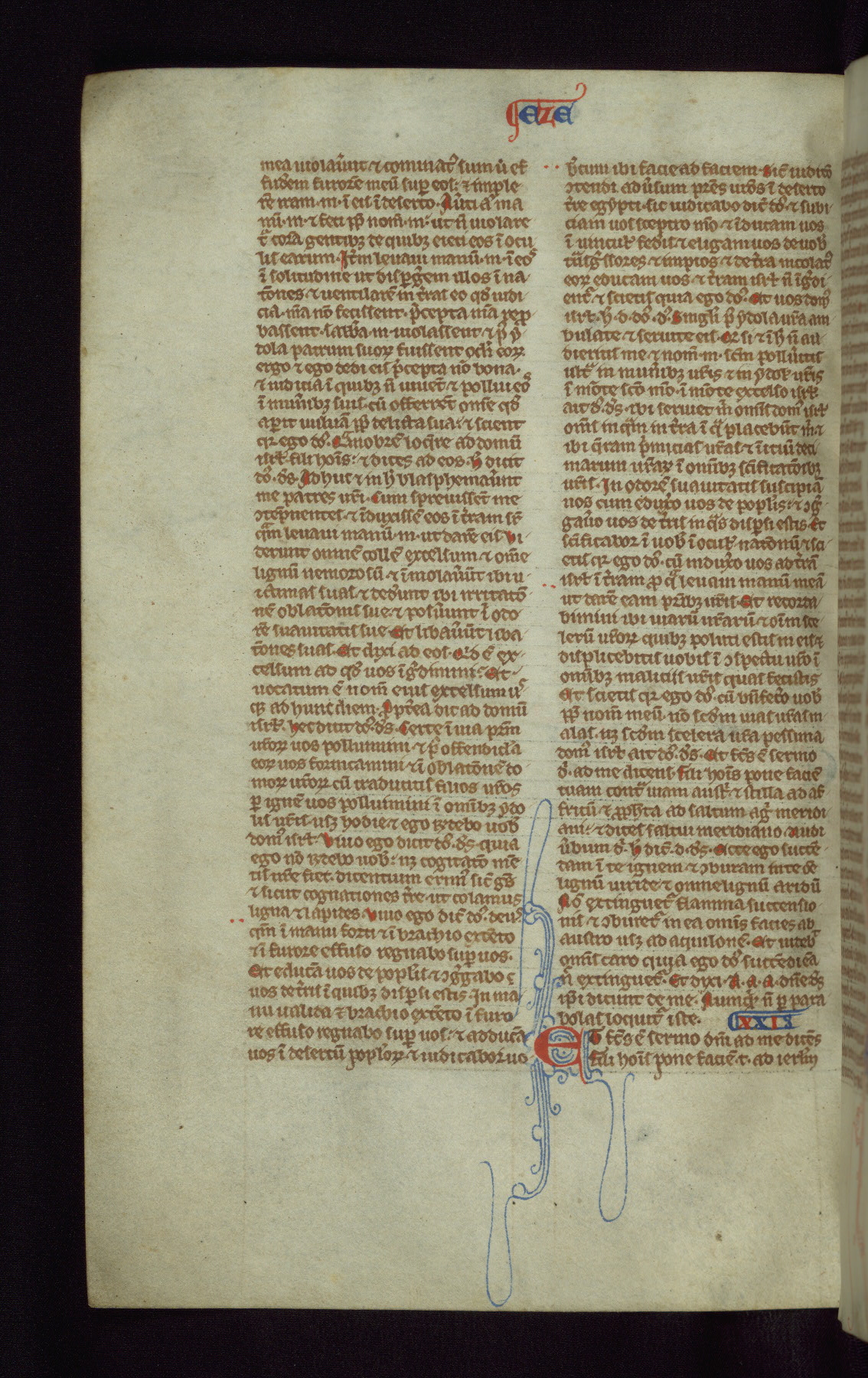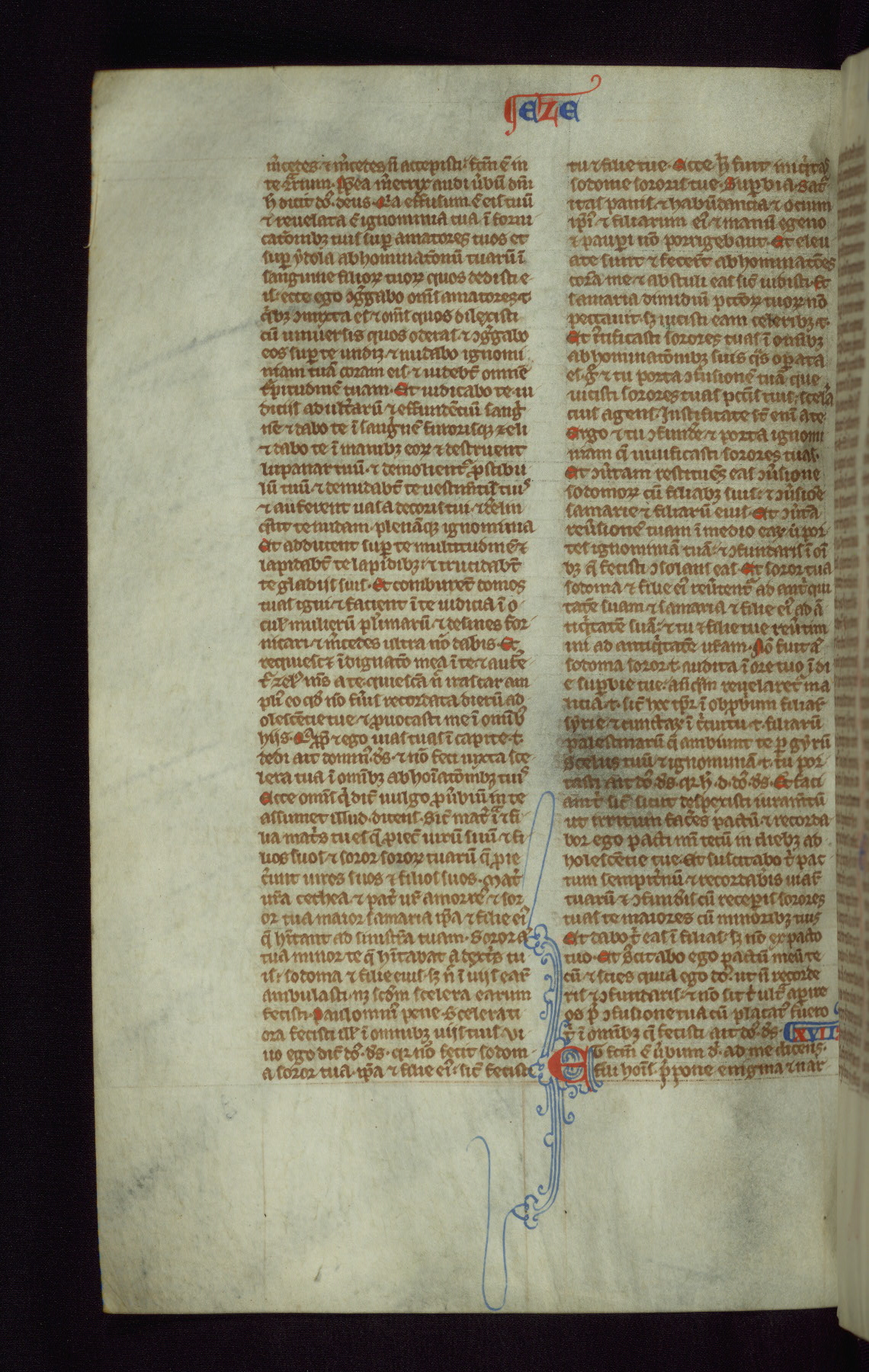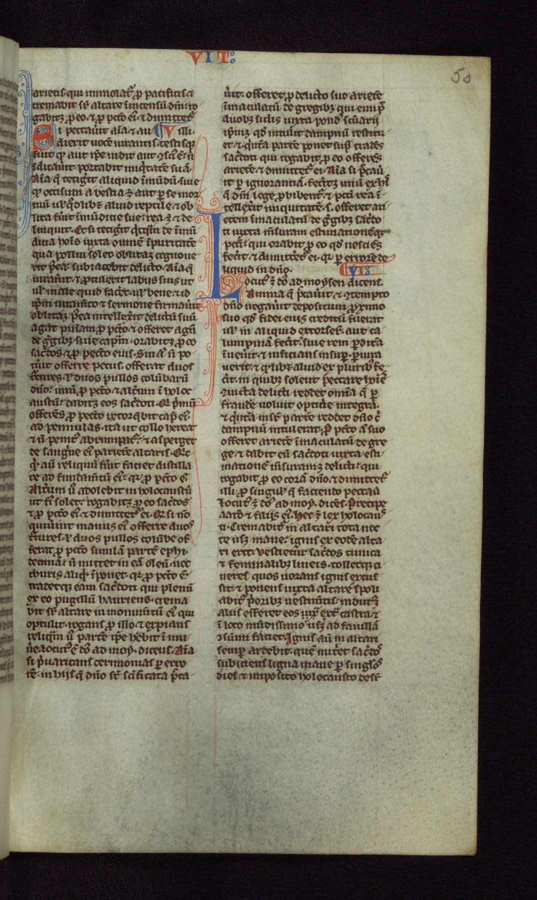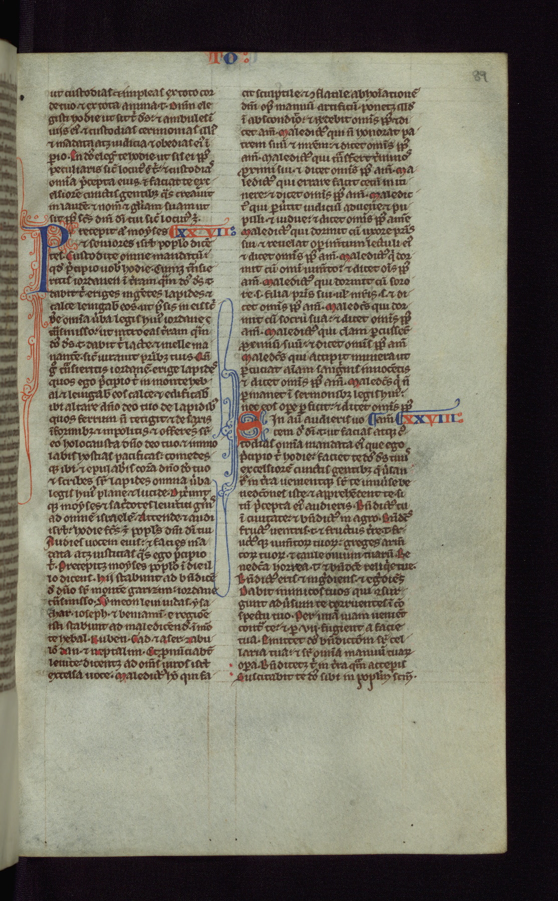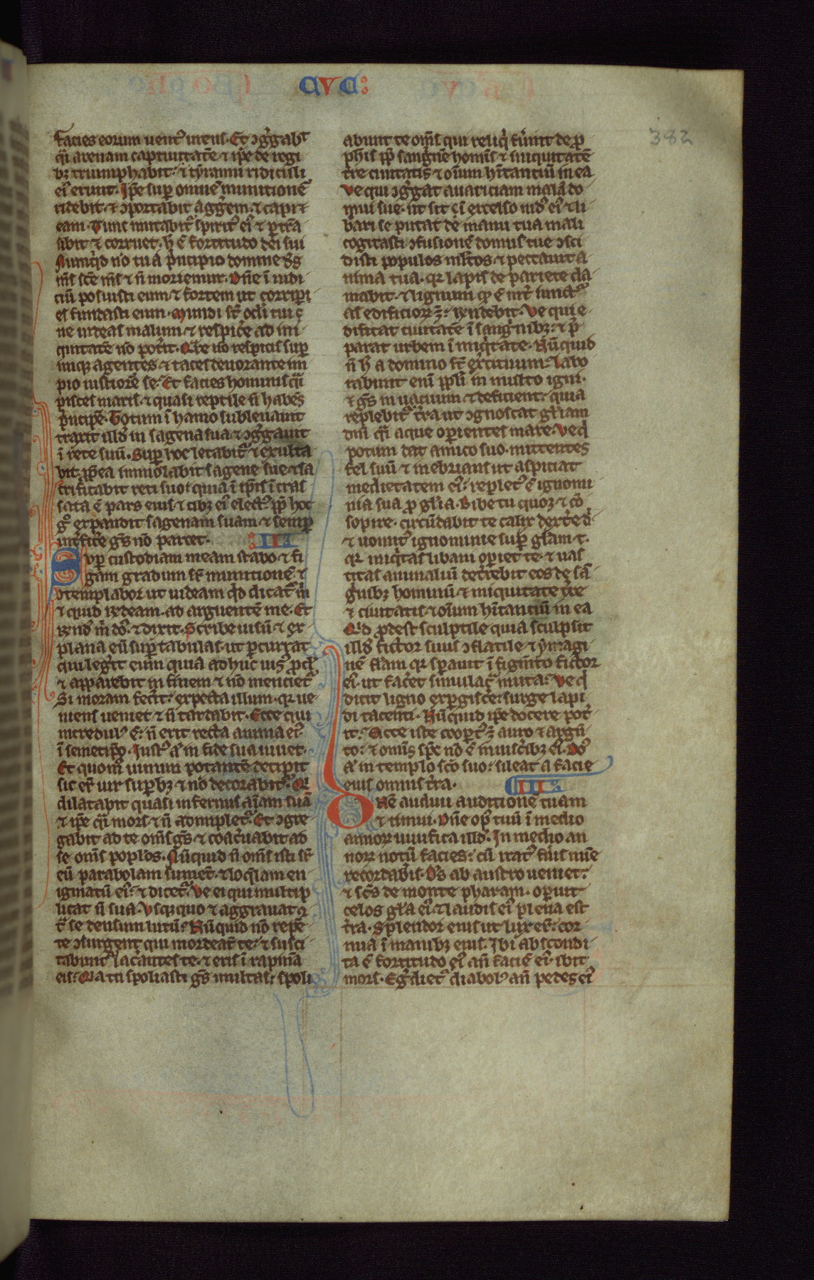 This pocket-size Bible was created around the middle of the thirteenth century in England. It contains the Vulgate text of the Old and New Testaments, arranged in order and divided into chapters. Such Bibles, designed for individual rather than institutional use, began to be created on a large scale during the thirteenth century, especially in Paris. This manuscript is illuminated with a large number of small historiated initials, and also includes a somewhat later image of the Three Living and the Three Dead, a popular scene based on a French poem of the same century.