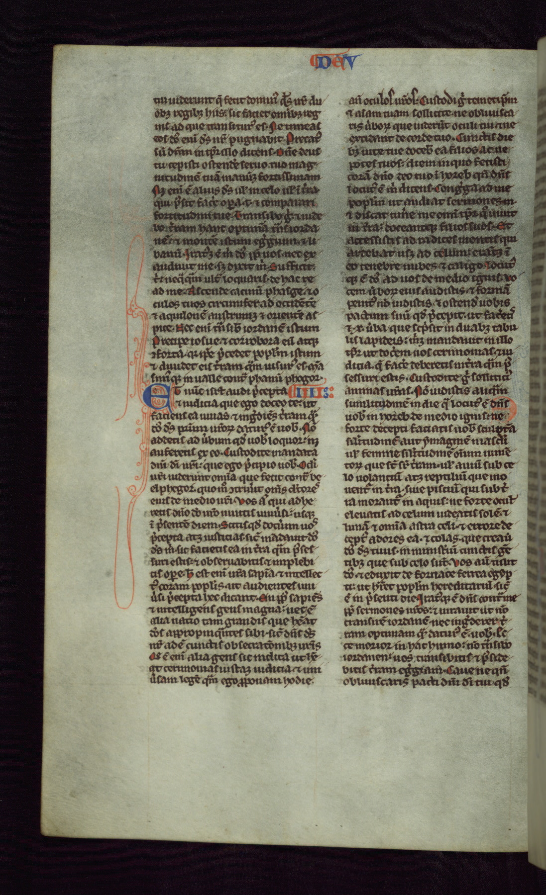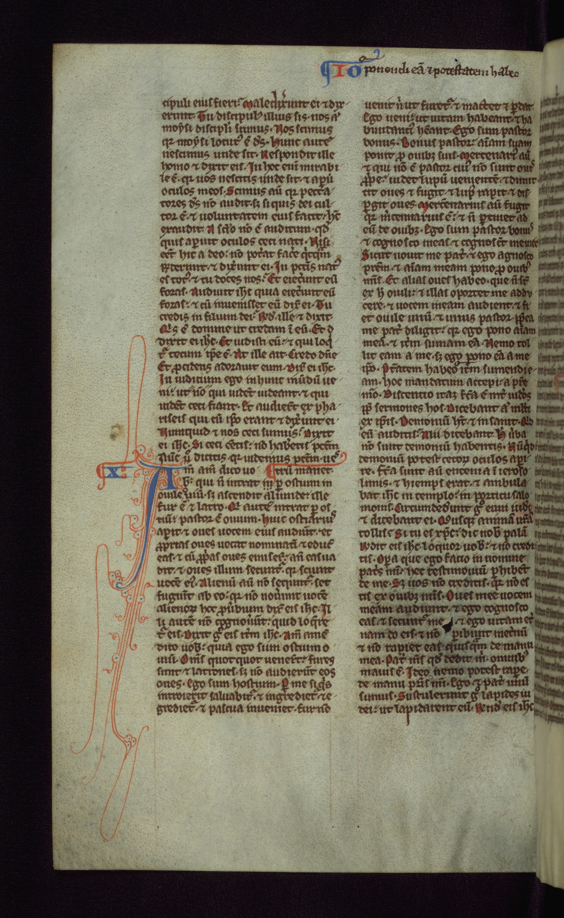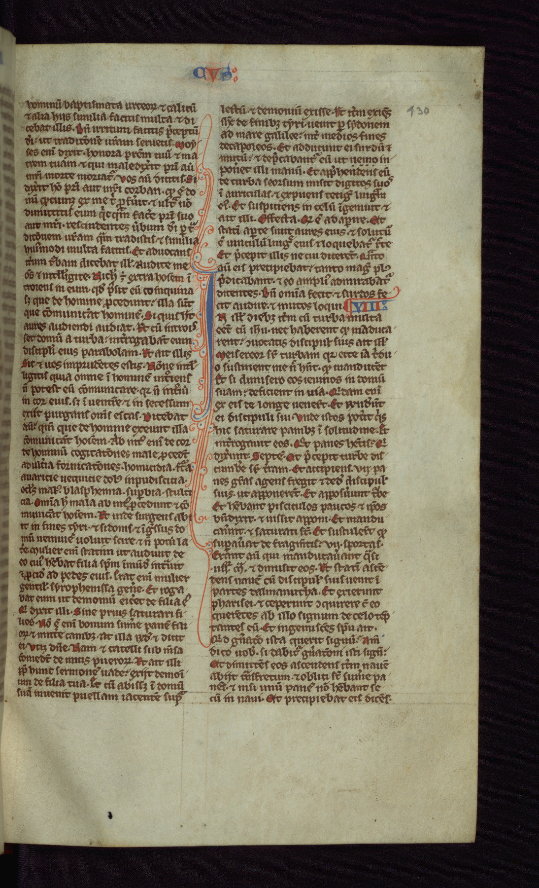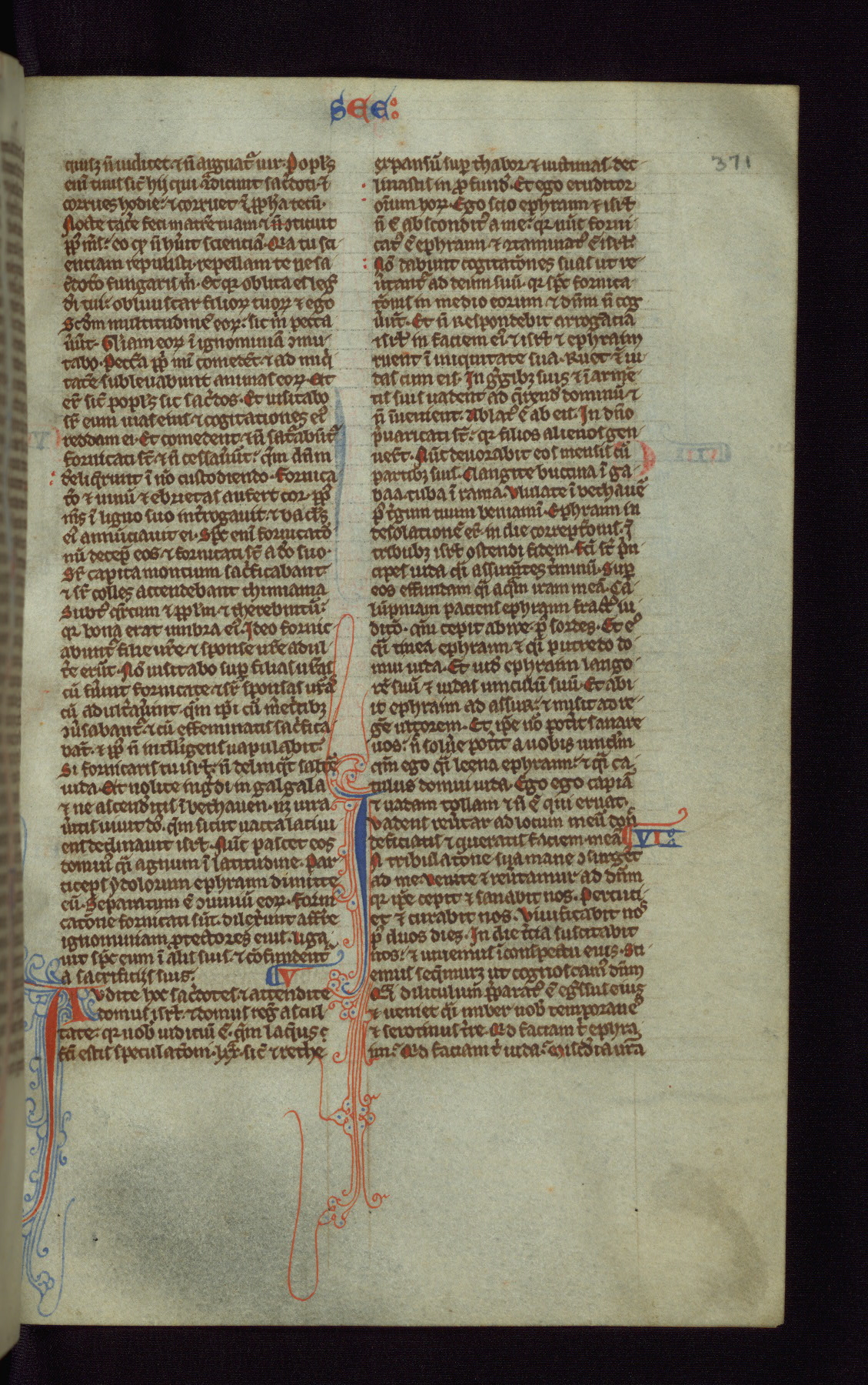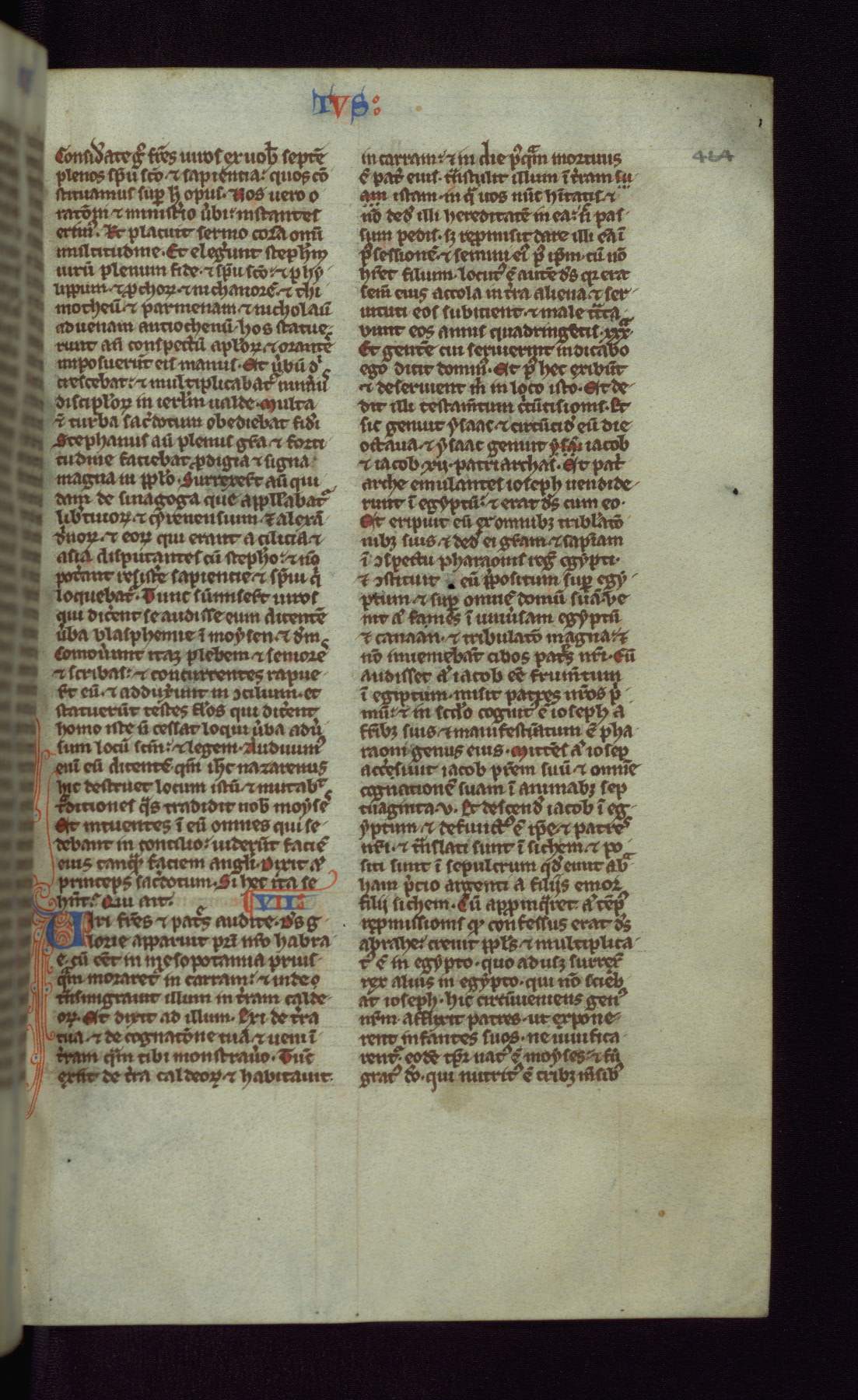 This pocket-size Bible was created around the middle of the thirteenth century in England. It contains the Vulgate text of the Old and New Testaments, arranged in order and divided into chapters. Such Bibles, designed for individual rather than institutional use, began to be created on a large scale during the thirteenth century, especially in Paris. This manuscript is illuminated with a large number of small historiated initials, and also includes a somewhat later image of the Three Living and the Three Dead, a popular scene based on a French poem of the same century.