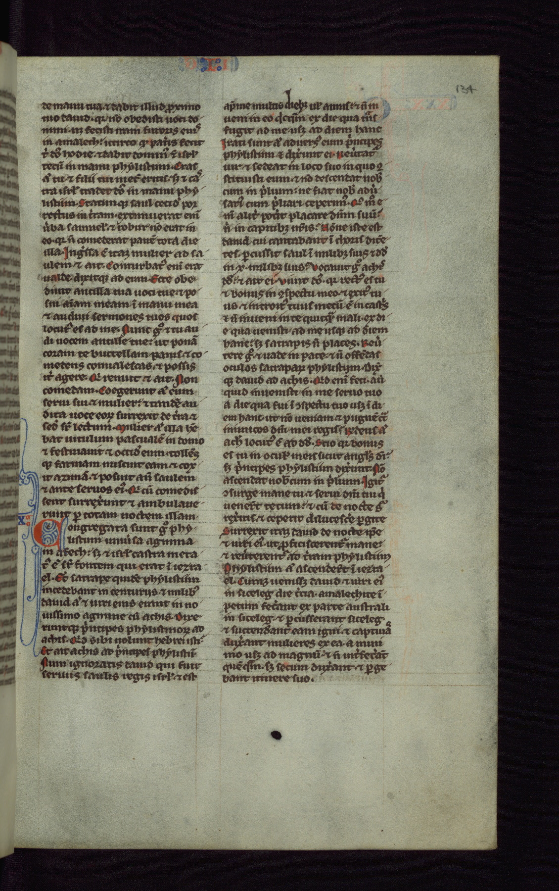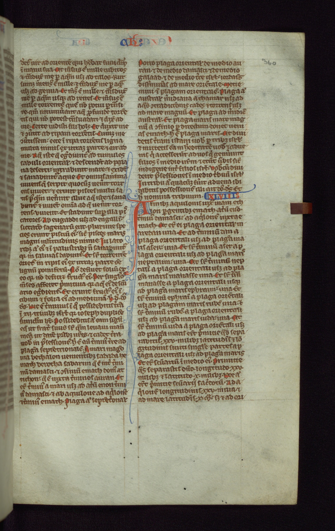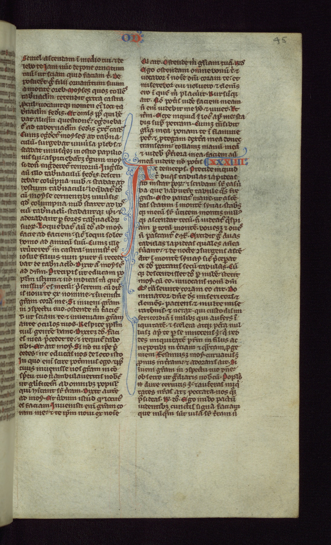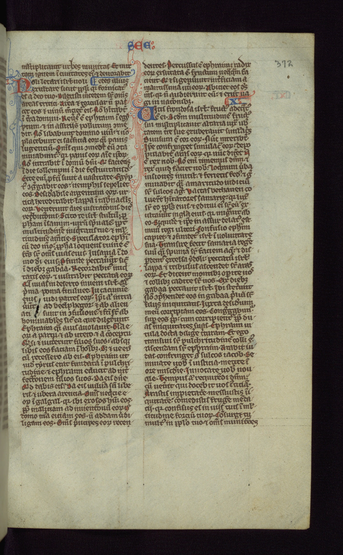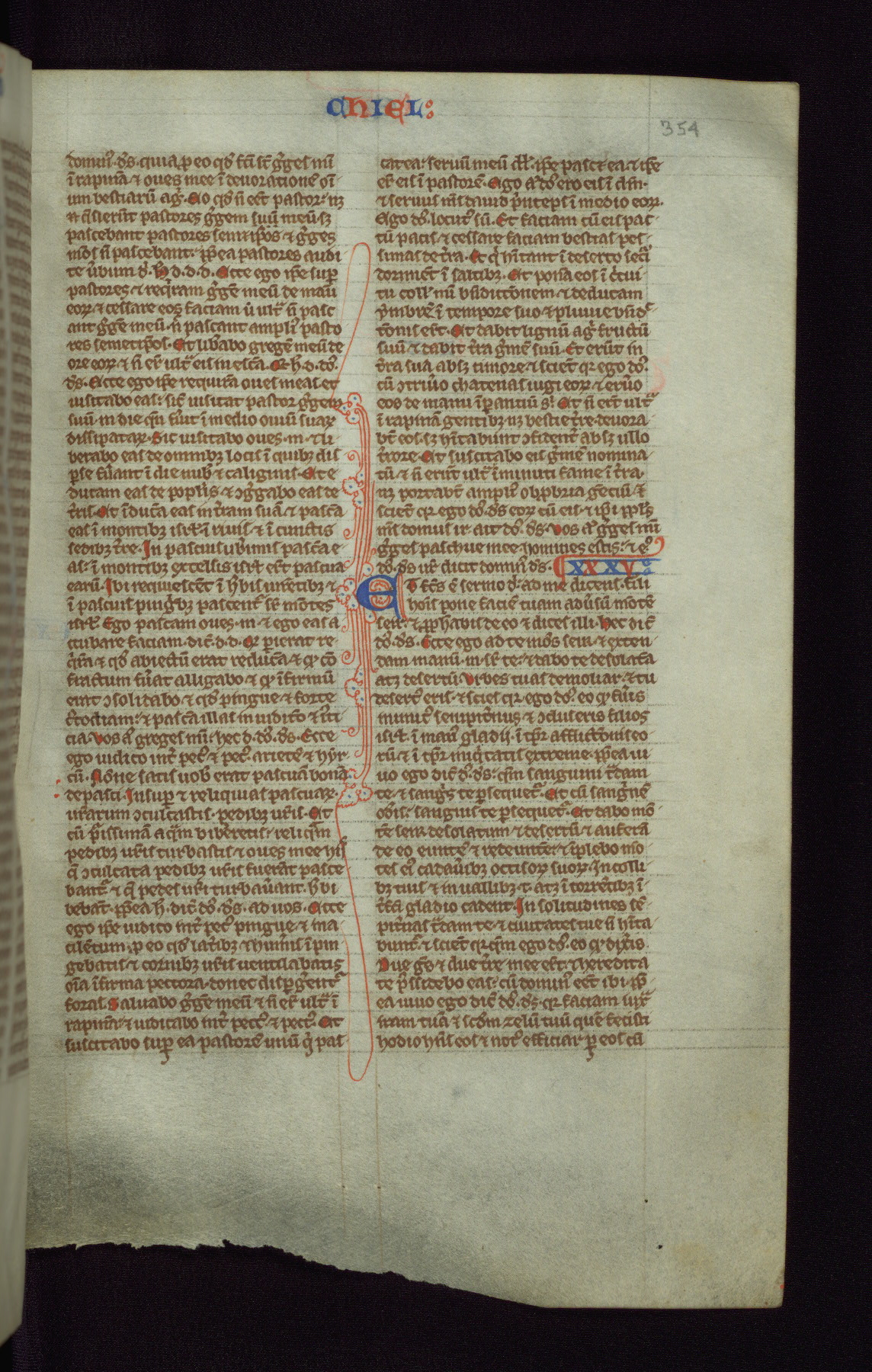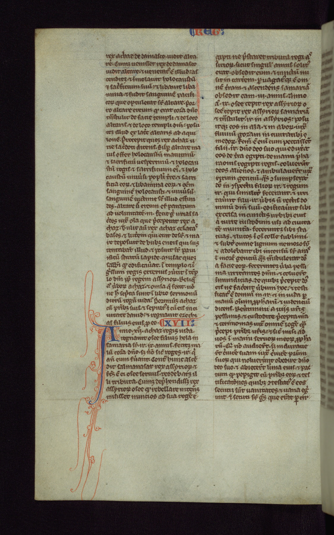 This pocket-size Bible was created around the middle of the thirteenth century in England. It contains the Vulgate text of the Old and New Testaments, arranged in order and divided into chapters. Such Bibles, designed for individual rather than institutional use, began to be created on a large scale during the thirteenth century, especially in Paris. This manuscript is illuminated with a large number of small historiated initials, and also includes a somewhat later image of the Three Living and the Three Dead, a popular scene based on a French poem of the same century.