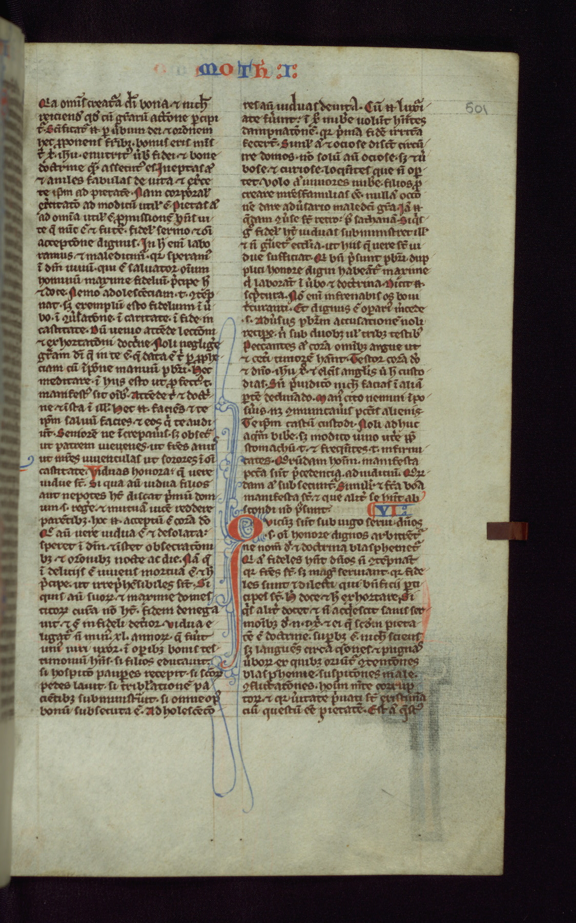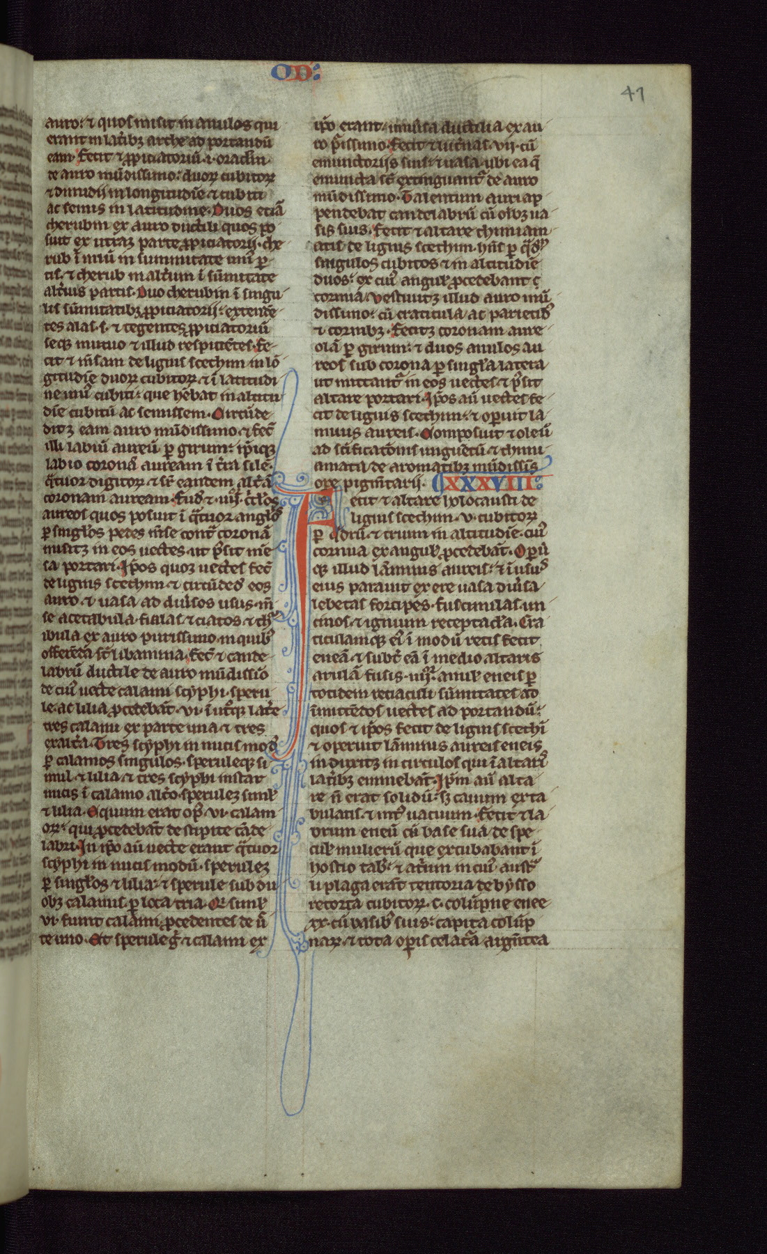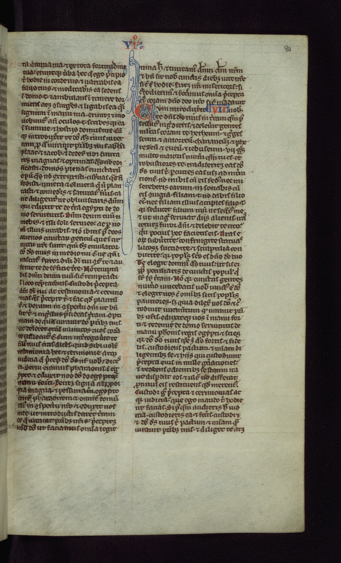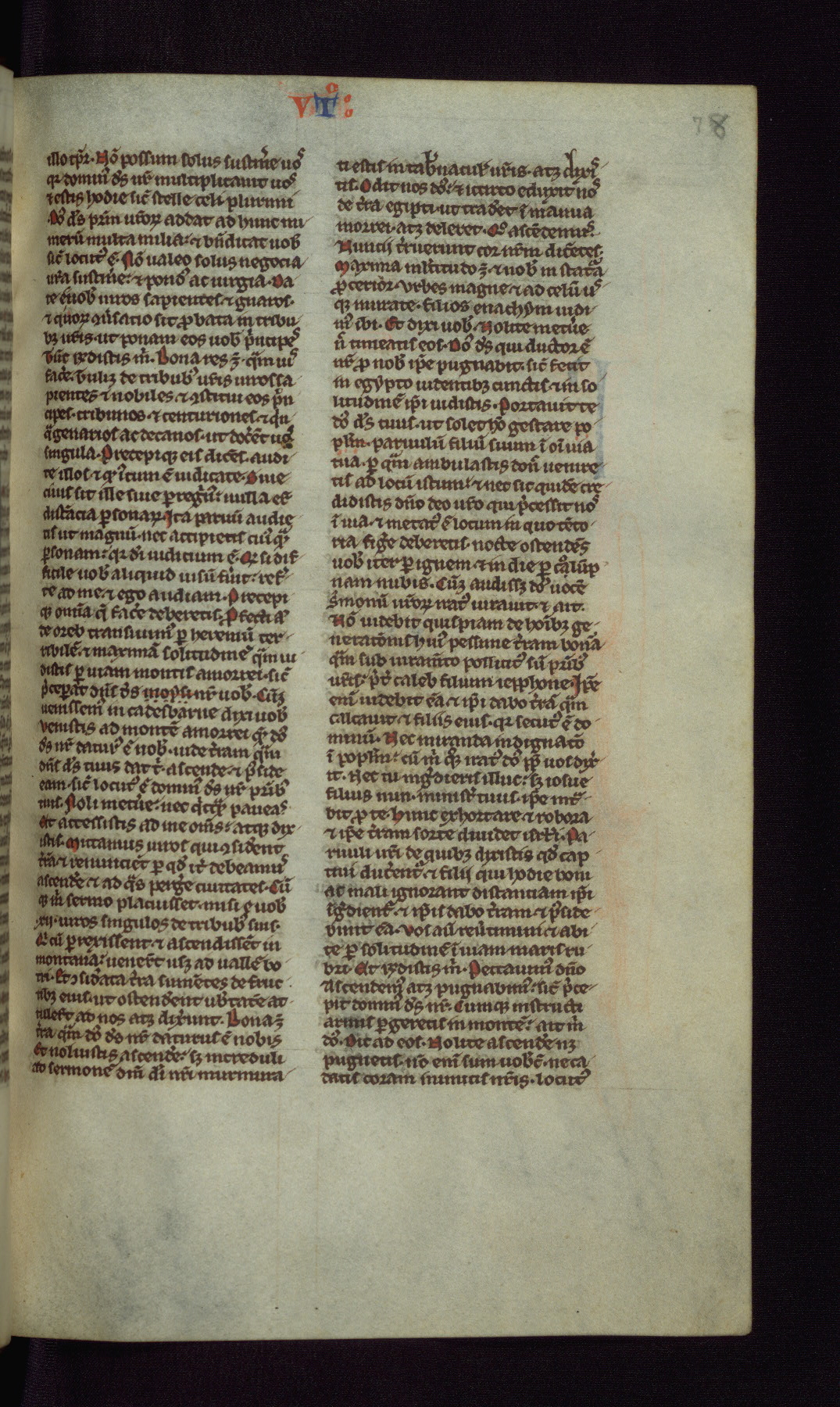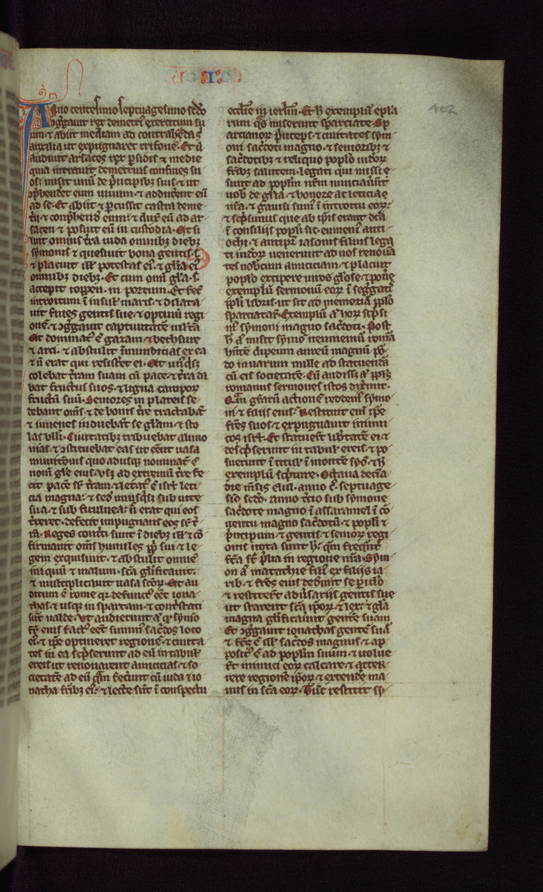 This pocket-size Bible was created around the middle of the thirteenth century in England. It contains the Vulgate text of the Old and New Testaments, arranged in order and divided into chapters. Such Bibles, designed for individual rather than institutional use, began to be created on a large scale during the thirteenth century, especially in Paris. This manuscript is illuminated with a large number of small historiated initials, and also includes a somewhat later image of the Three Living and the Three Dead, a popular scene based on a French poem of the same century.