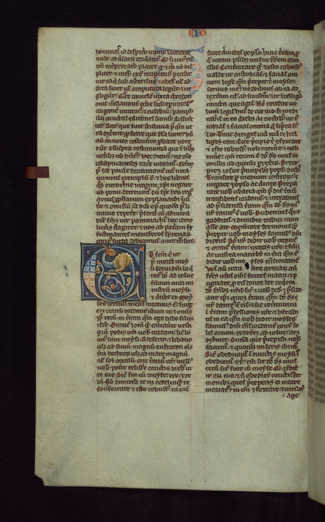 - Decoration note: Historiated initials at beginnings of most books (5-14 lines); decorated initials (4-8 lines), sometimes with dragons or lions, at beginnings of prologues and some books; 2 line capitals at beginnings of chapters, in red and blue, with contrasting flourishes; running heads in alternating blue and red capitals; rubrics generally left blank, but in red for fols. 263r-339v; text in various shades, from light brown to black