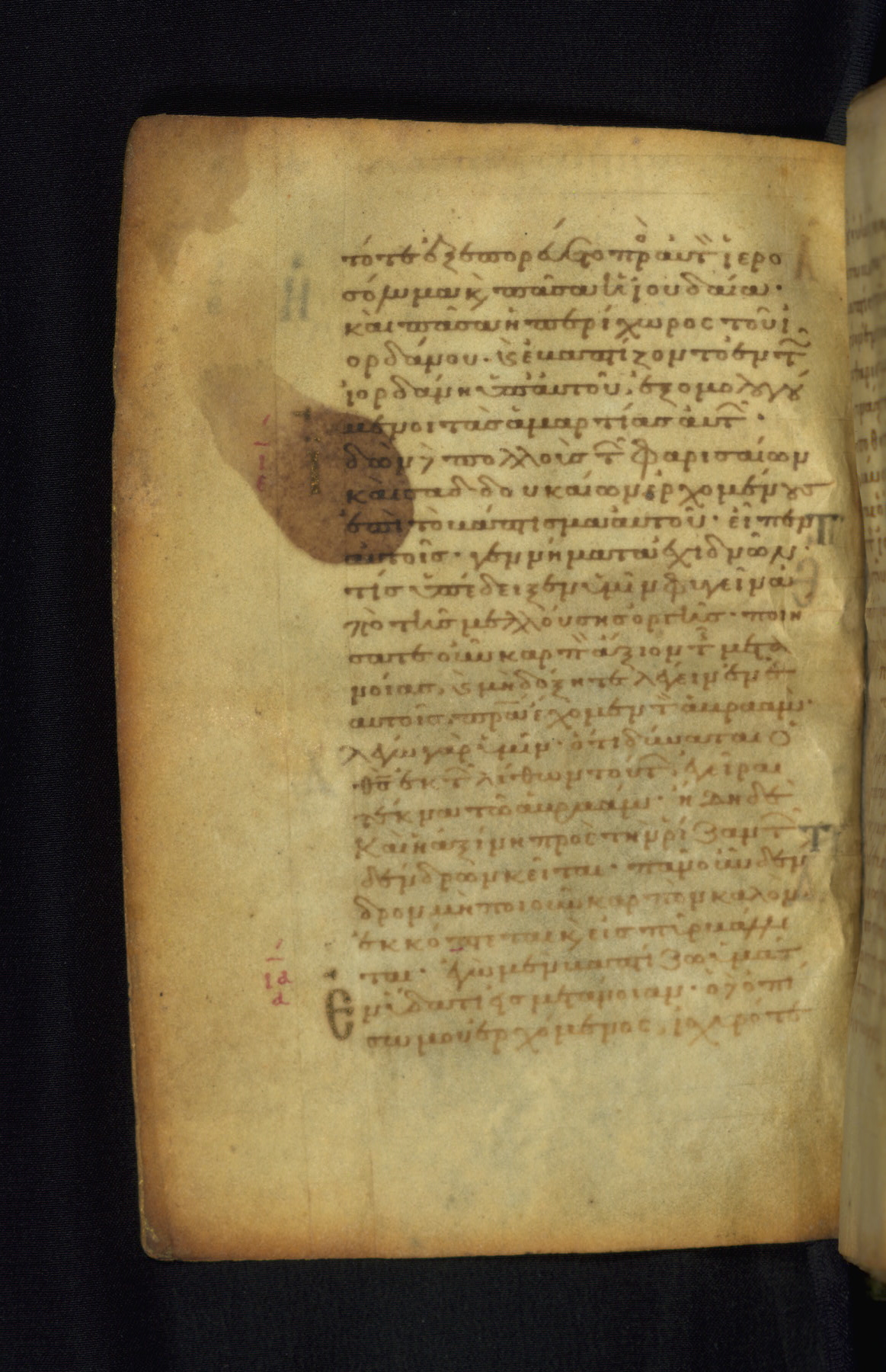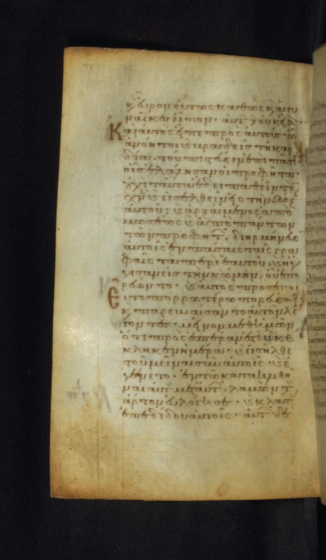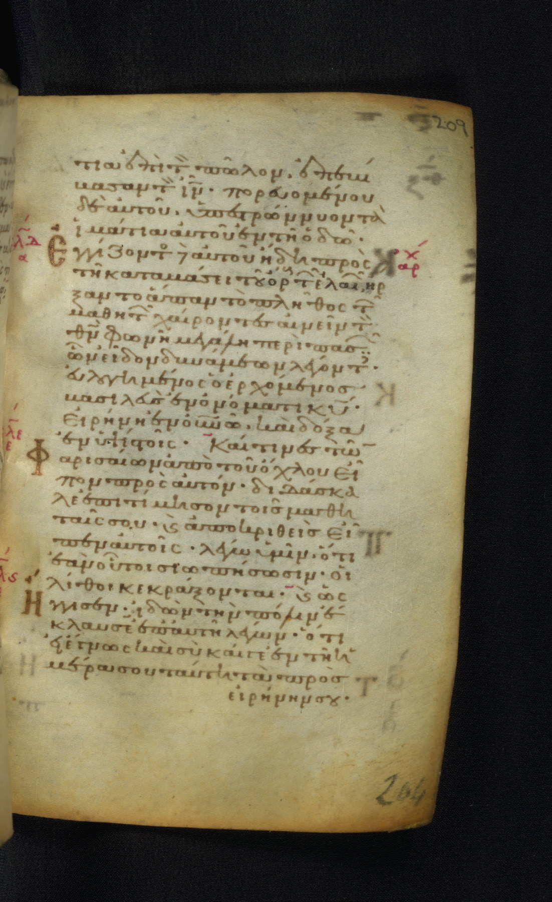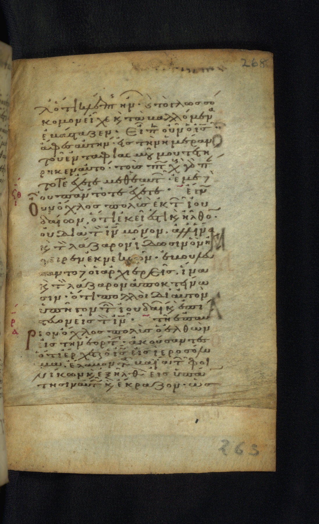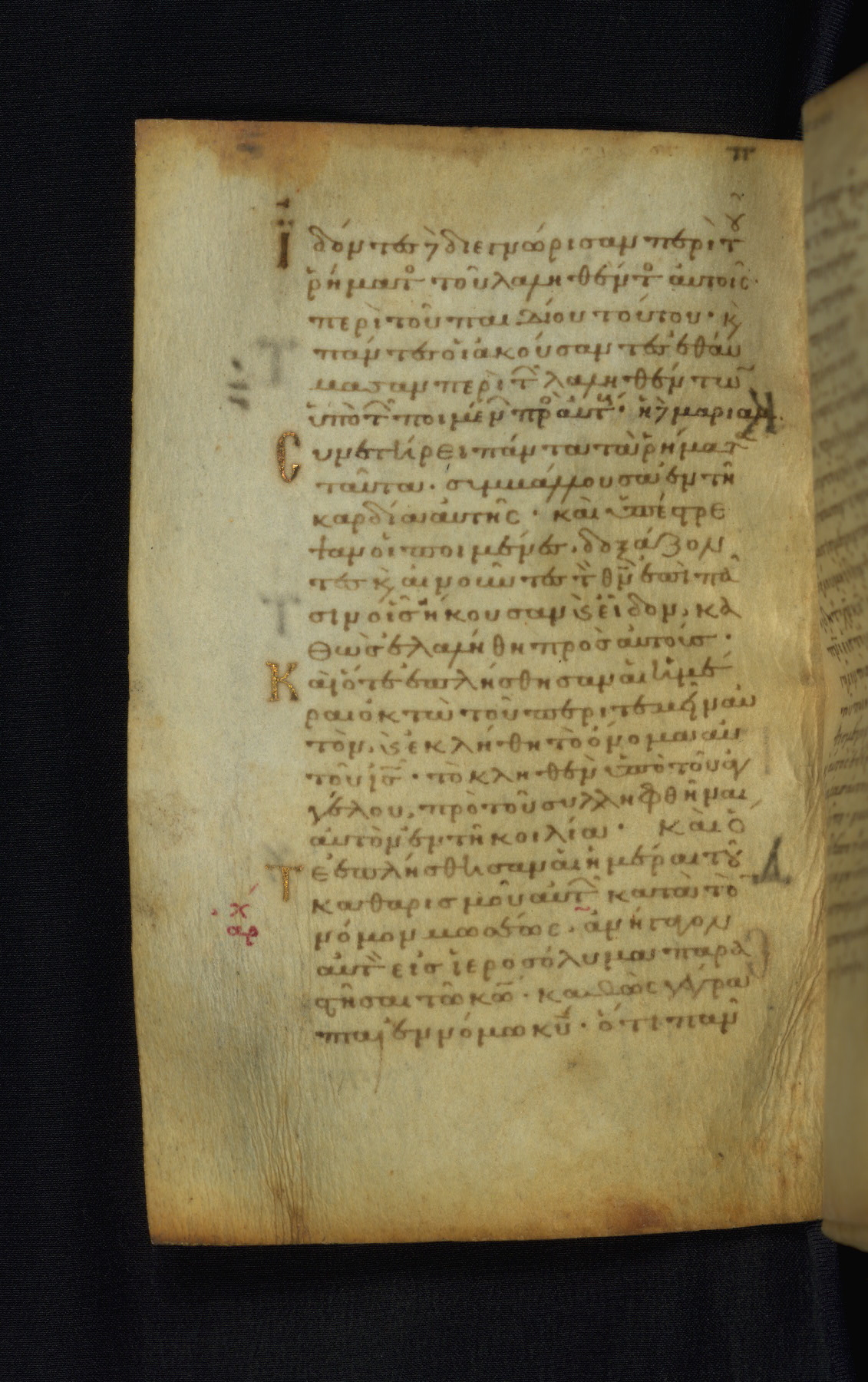 This Gospel book was likely created in the capital of the Byzantine Empire, Constantinople, in the eleventh century. The manuscript is remarkable on account of its exceptionally small size, as well as the high quality of its script and miniatures. Its extensive image cycle includes six full-page miniatures, four half-page miniatures, four historiated initials, and marginalia.
