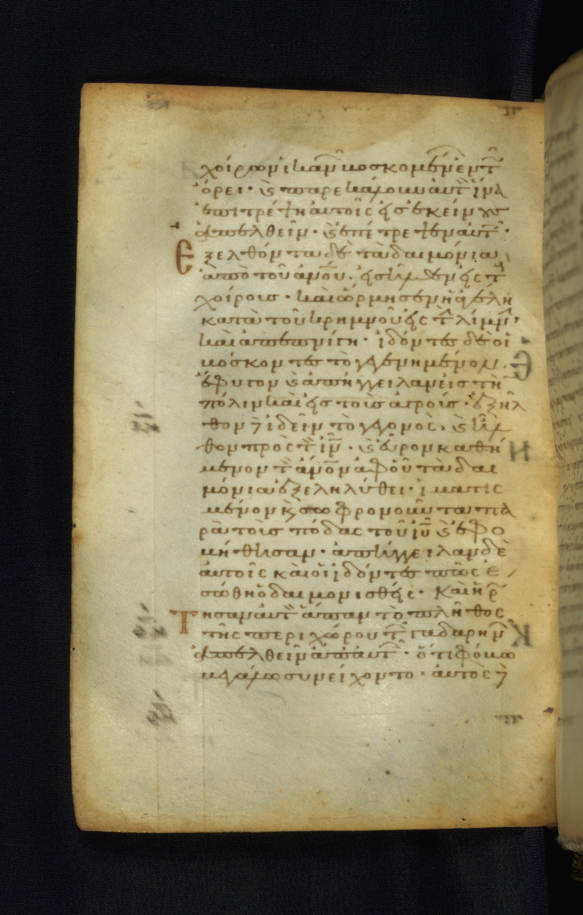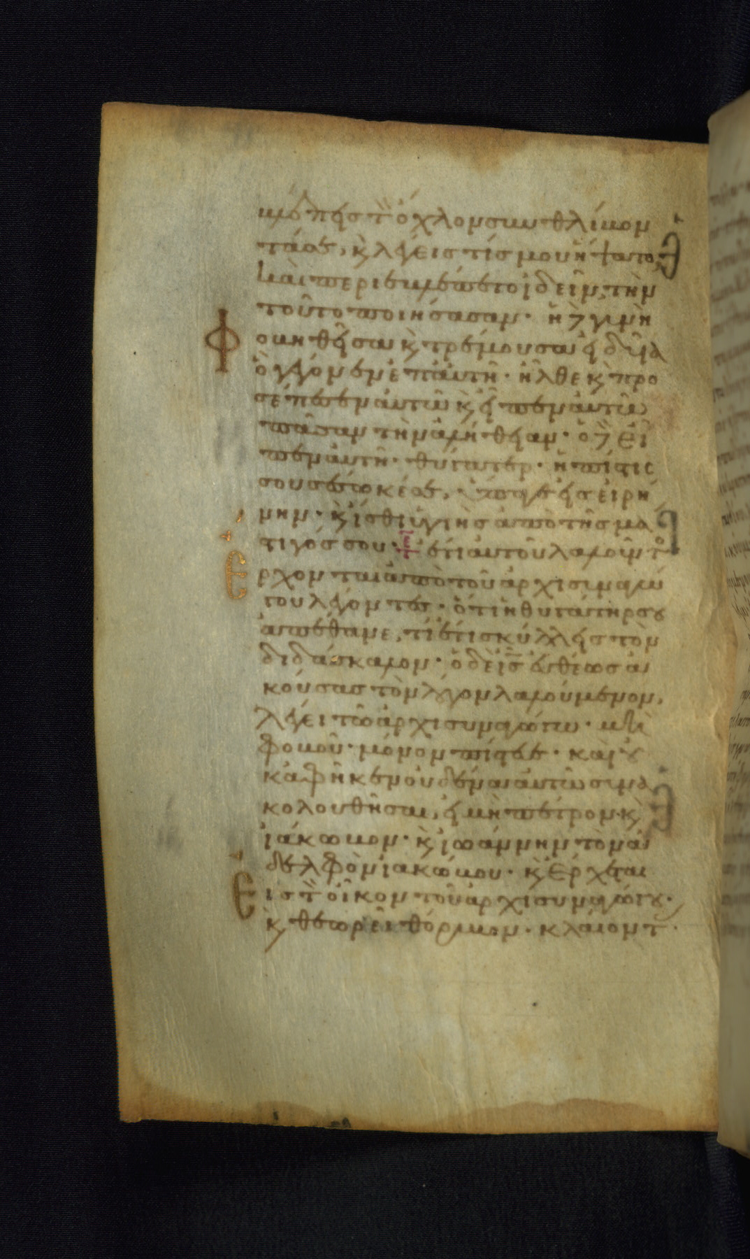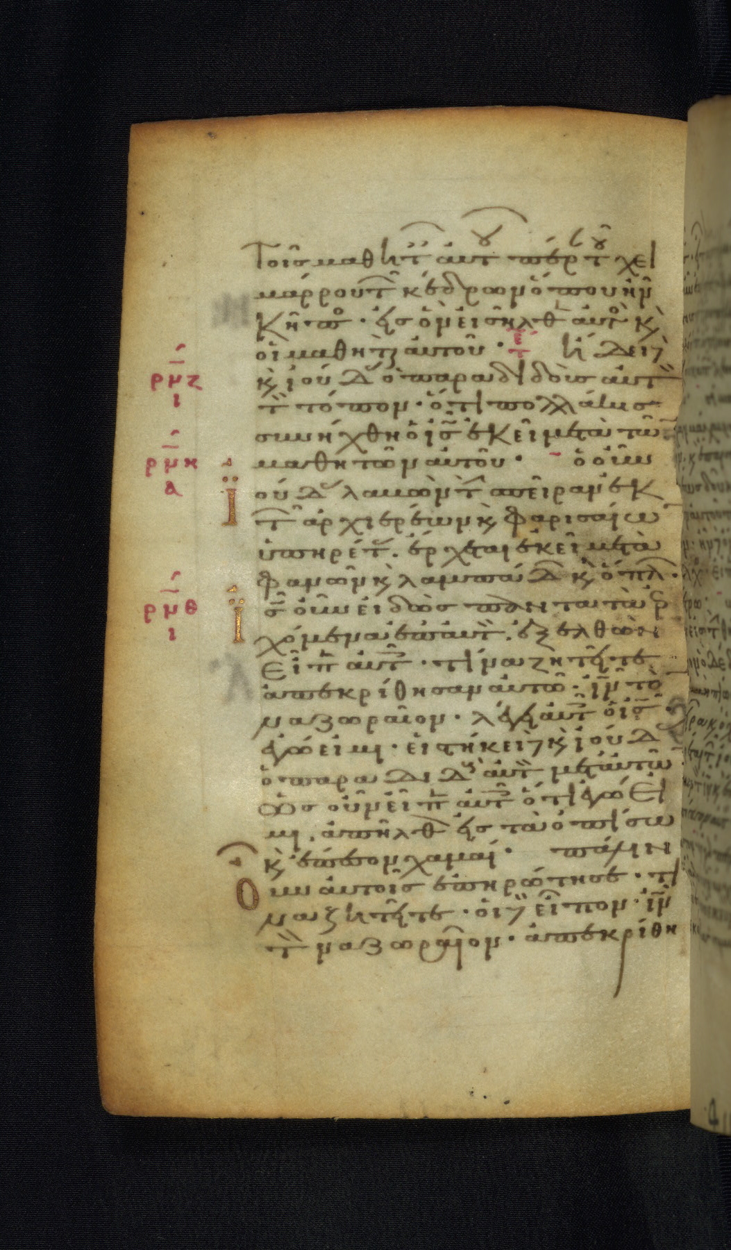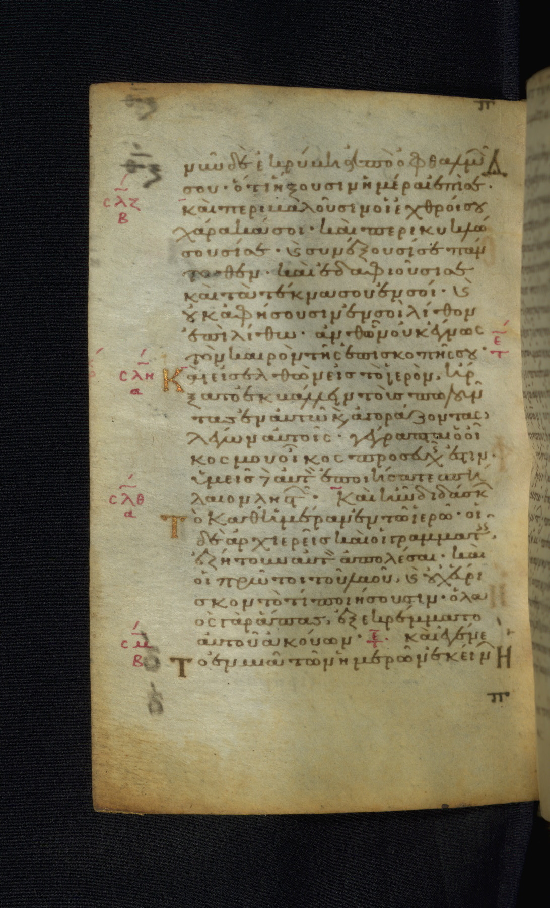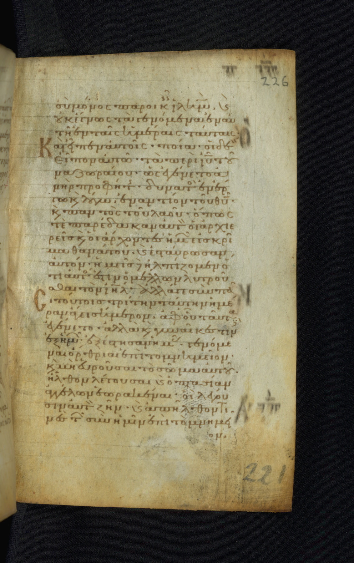 This Gospel book was likely created in the capital of the Byzantine Empire, Constantinople, in the eleventh century. The manuscript is remarkable on account of its exceptionally small size, as well as the high quality of its script and miniatures. Its extensive image cycle includes six full-page miniatures, four half-page miniatures, four historiated initials, and marginalia.