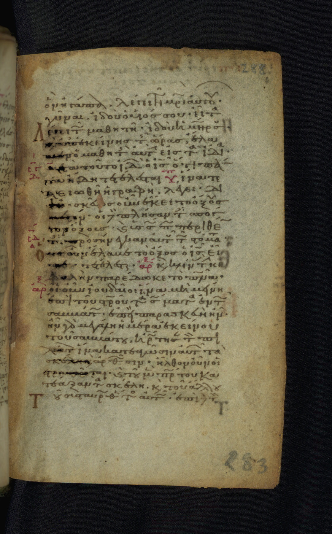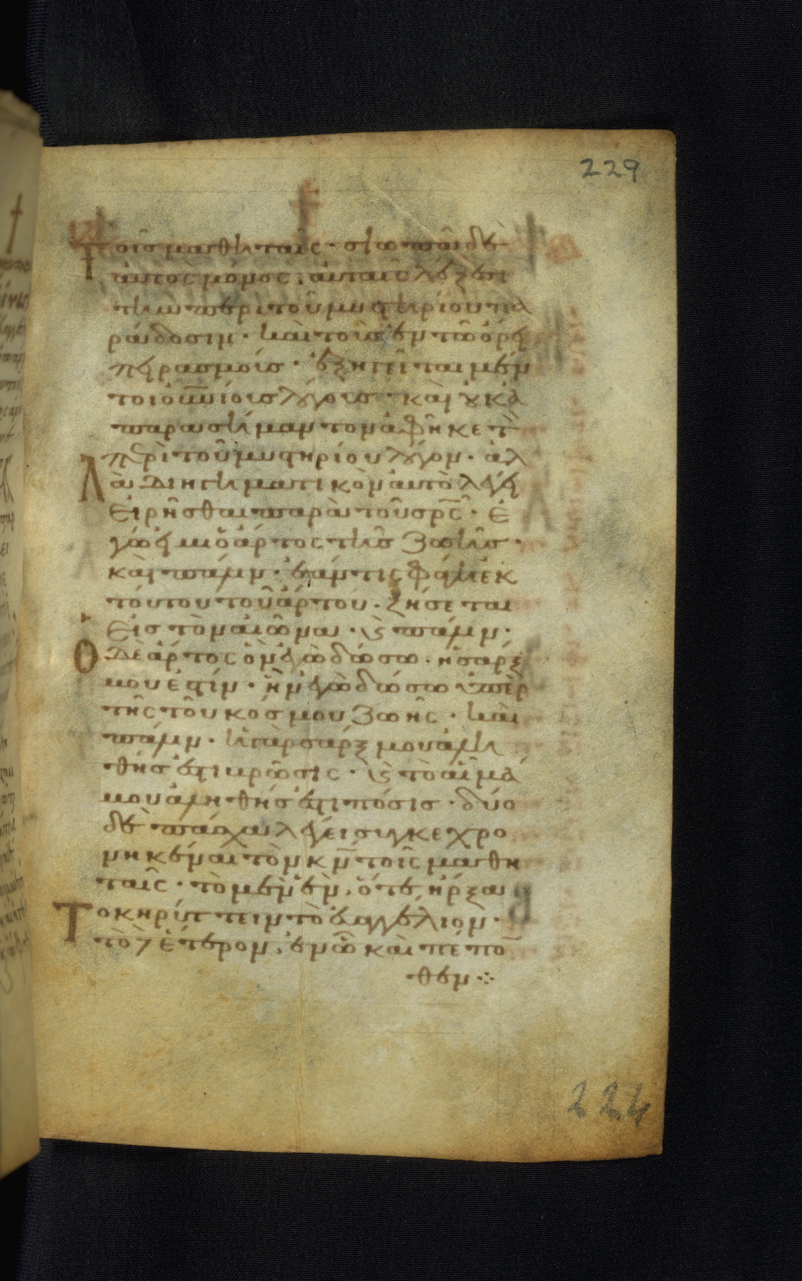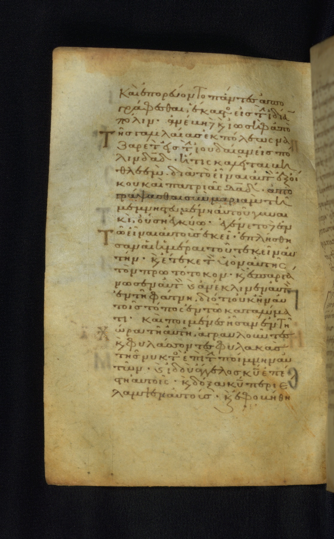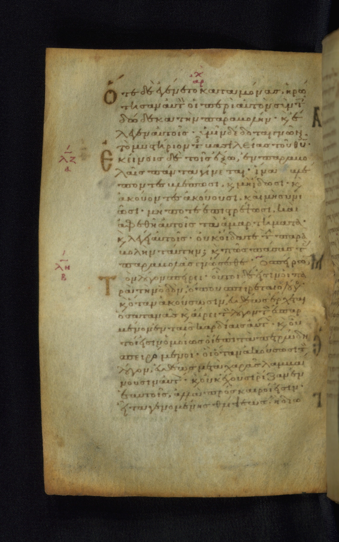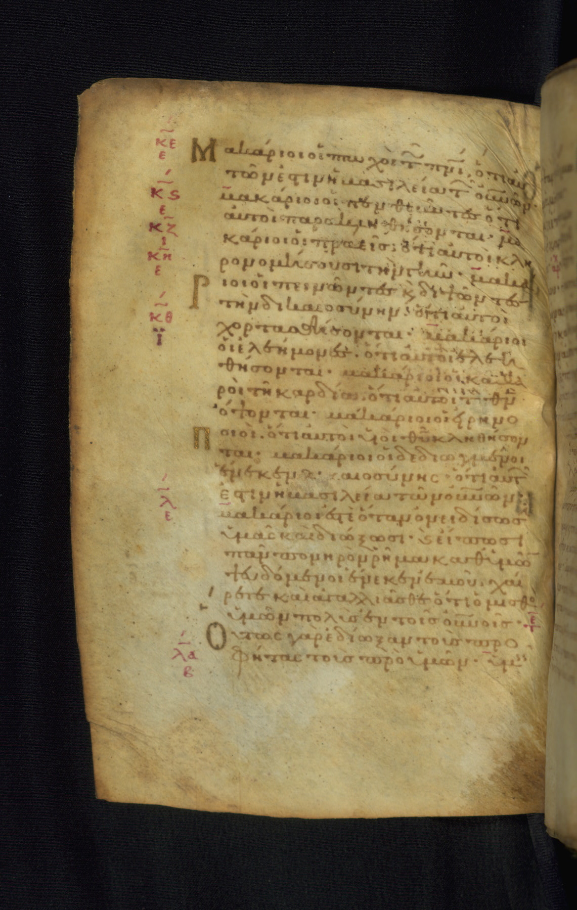 This Gospel book was likely created in the capital of the Byzantine Empire, Constantinople, in the eleventh century. The manuscript is remarkable on account of its exceptionally small size, as well as the high quality of its script and miniatures. Its extensive image cycle includes six full-page miniatures, four half-page miniatures, four historiated initials, and marginalia.
