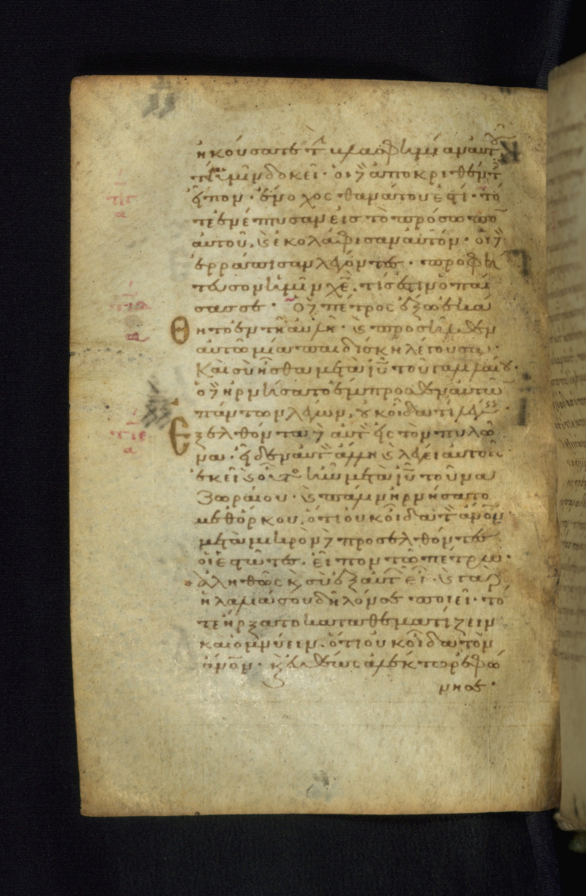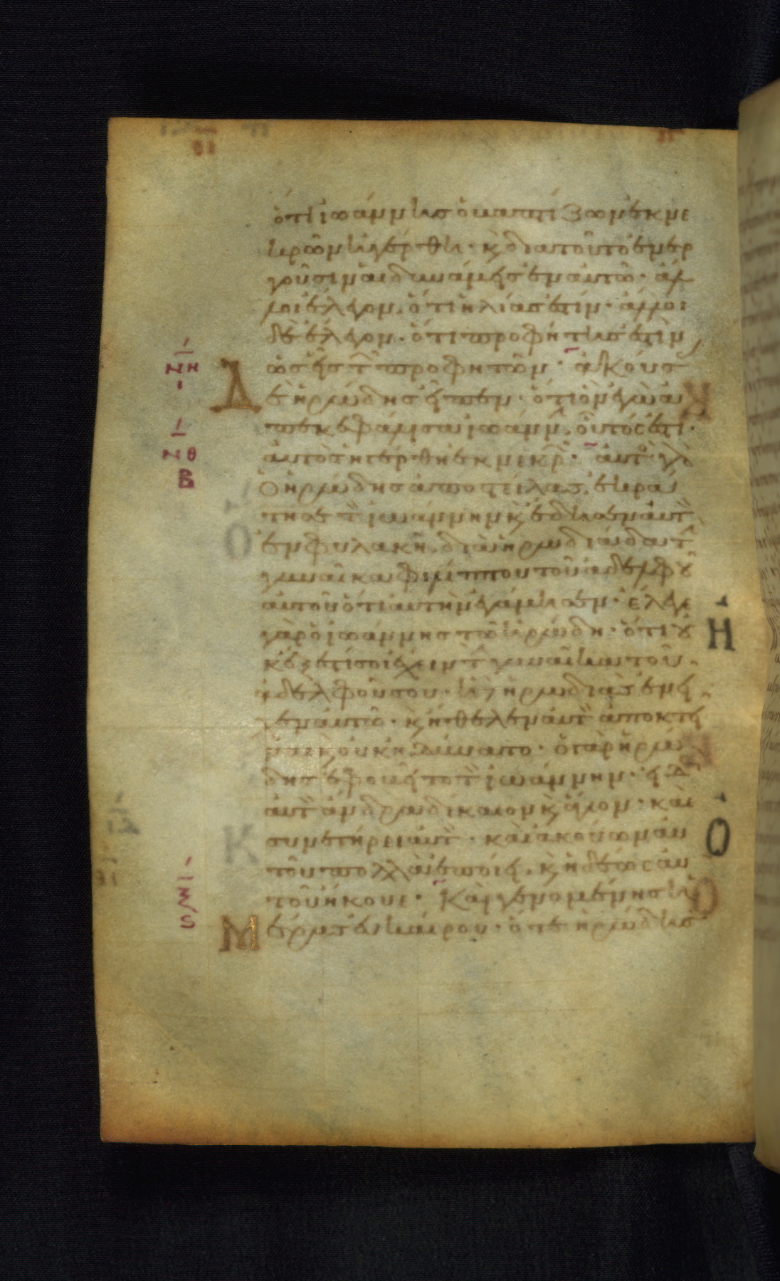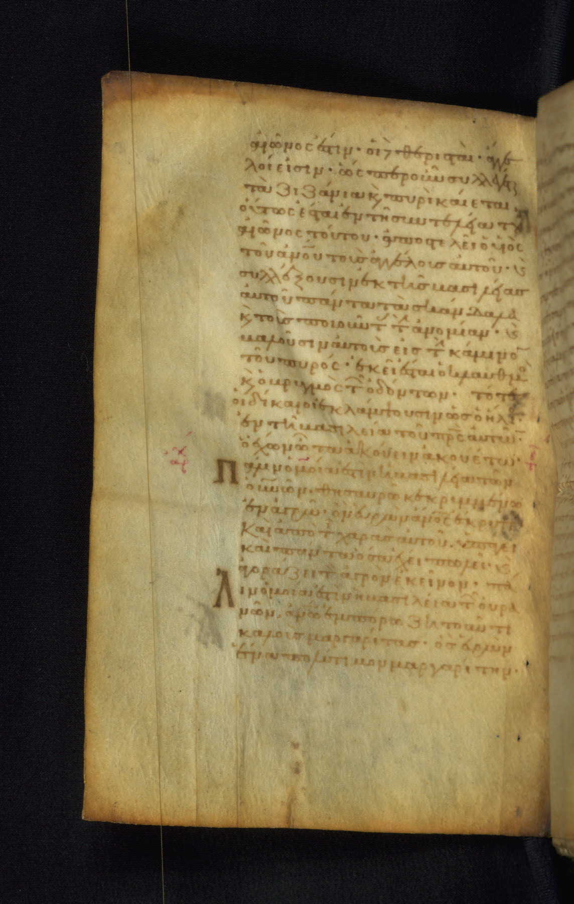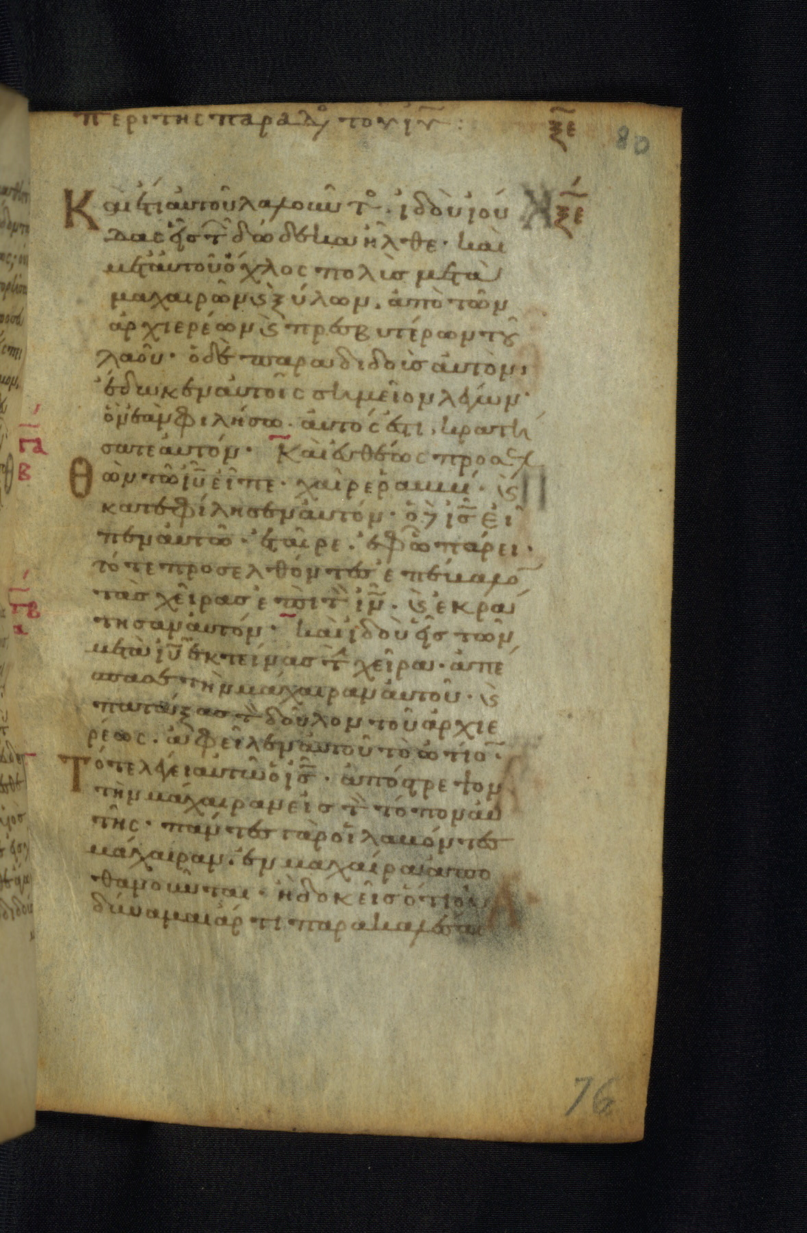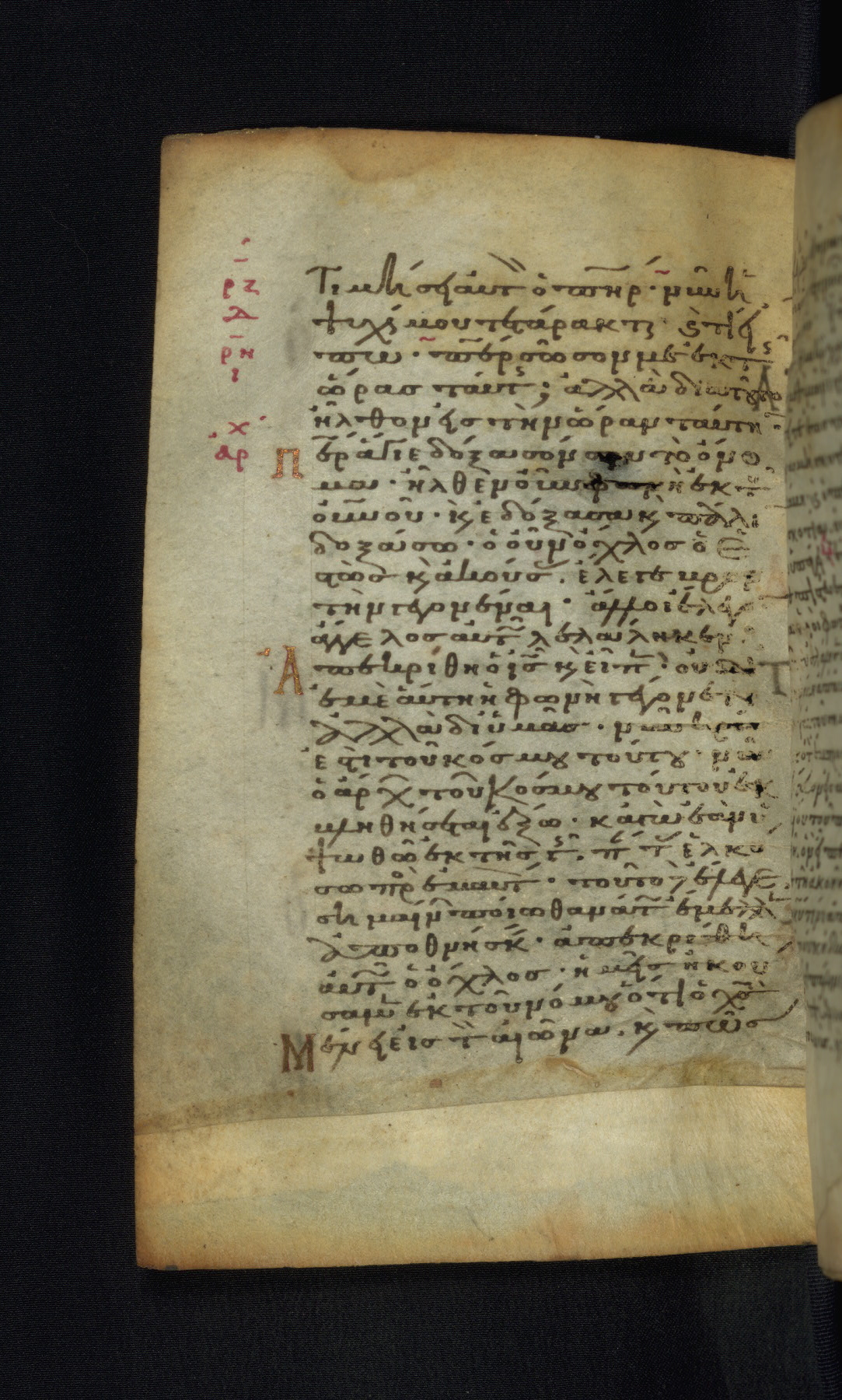 This Gospel book was likely created in the capital of the Byzantine Empire, Constantinople, in the eleventh century. The manuscript is remarkable on account of its exceptionally small size, as well as the high quality of its script and miniatures. Its extensive image cycle includes six full-page miniatures, four half-page miniatures, four historiated initials, and marginalia.