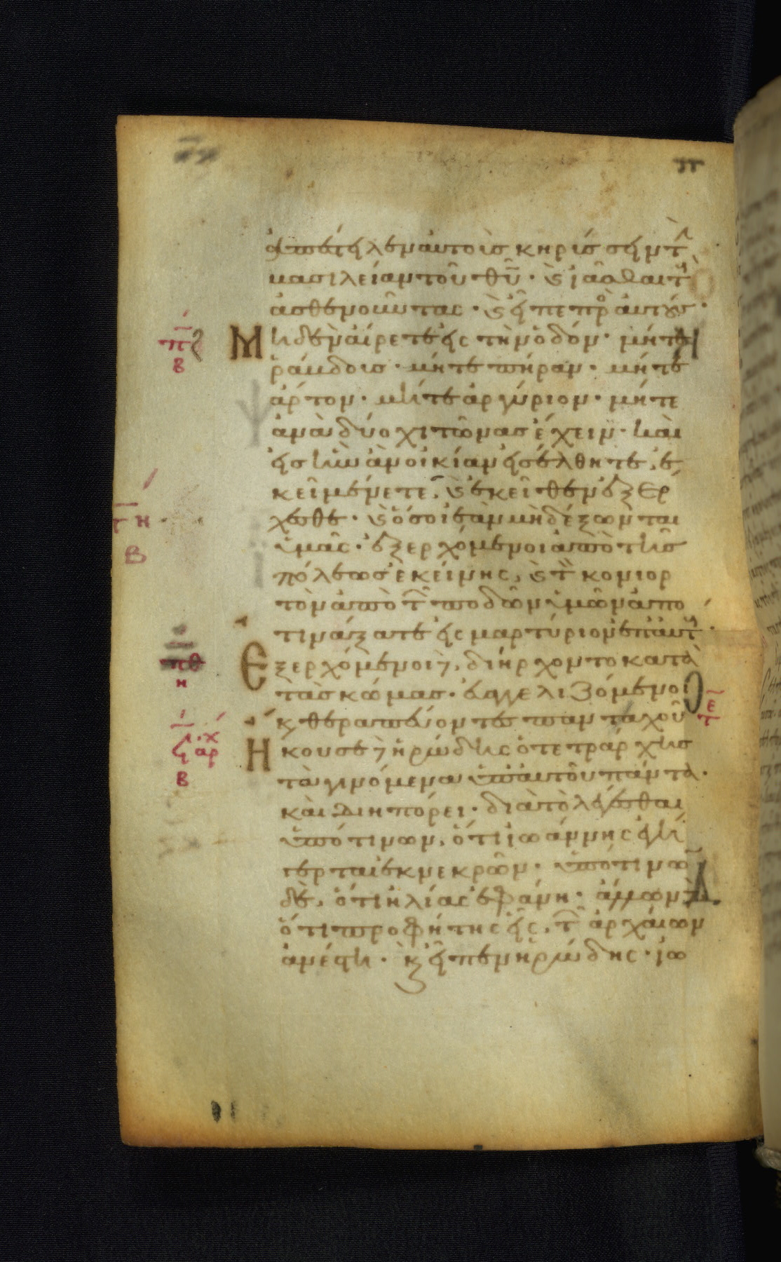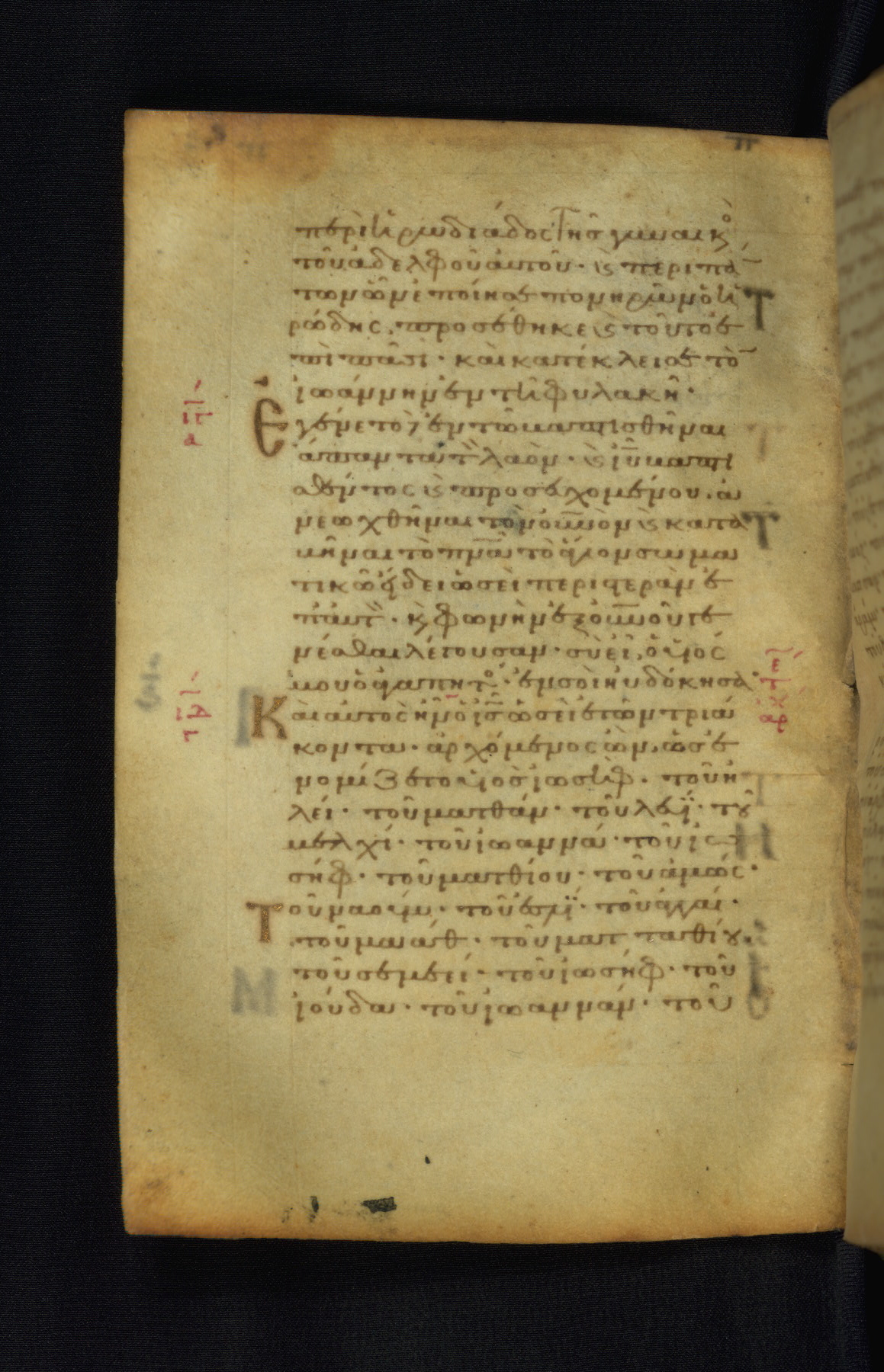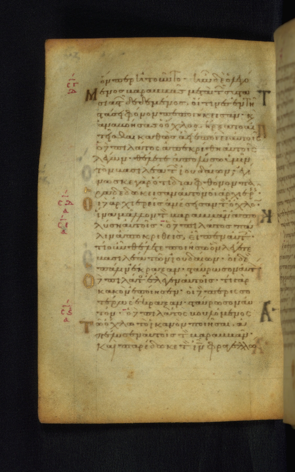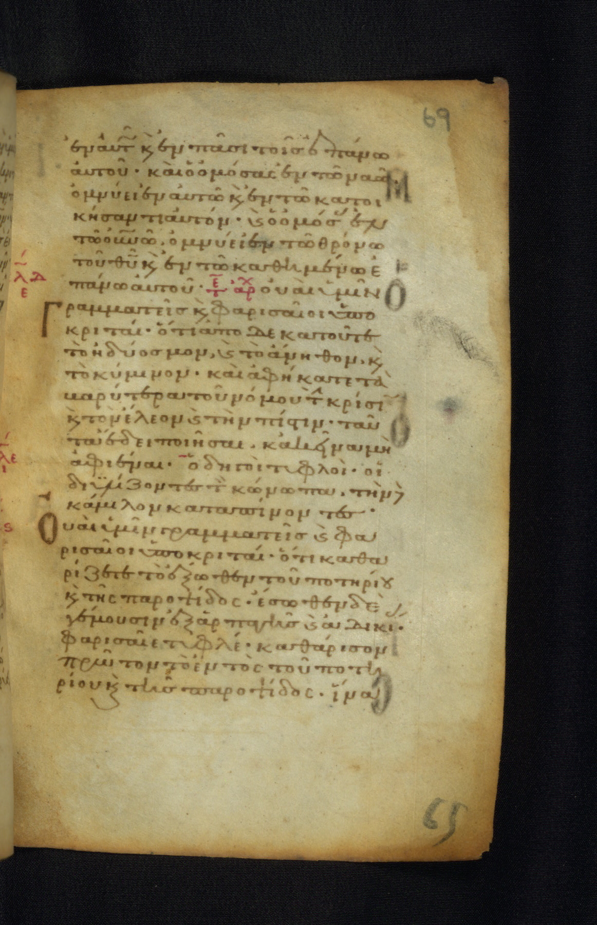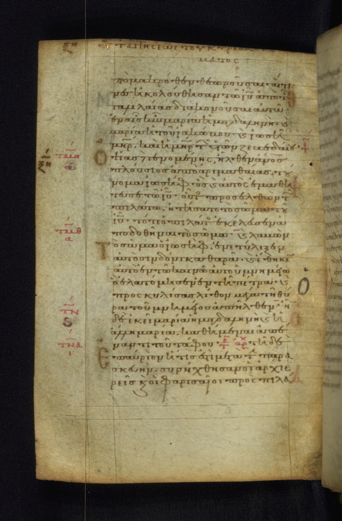 This Gospel book was likely created in the capital of the Byzantine Empire, Constantinople, in the eleventh century. The manuscript is remarkable on account of its exceptionally small size, as well as the high quality of its script and miniatures. Its extensive image cycle includes six full-page miniatures, four half-page miniatures, four historiated initials, and marginalia.
