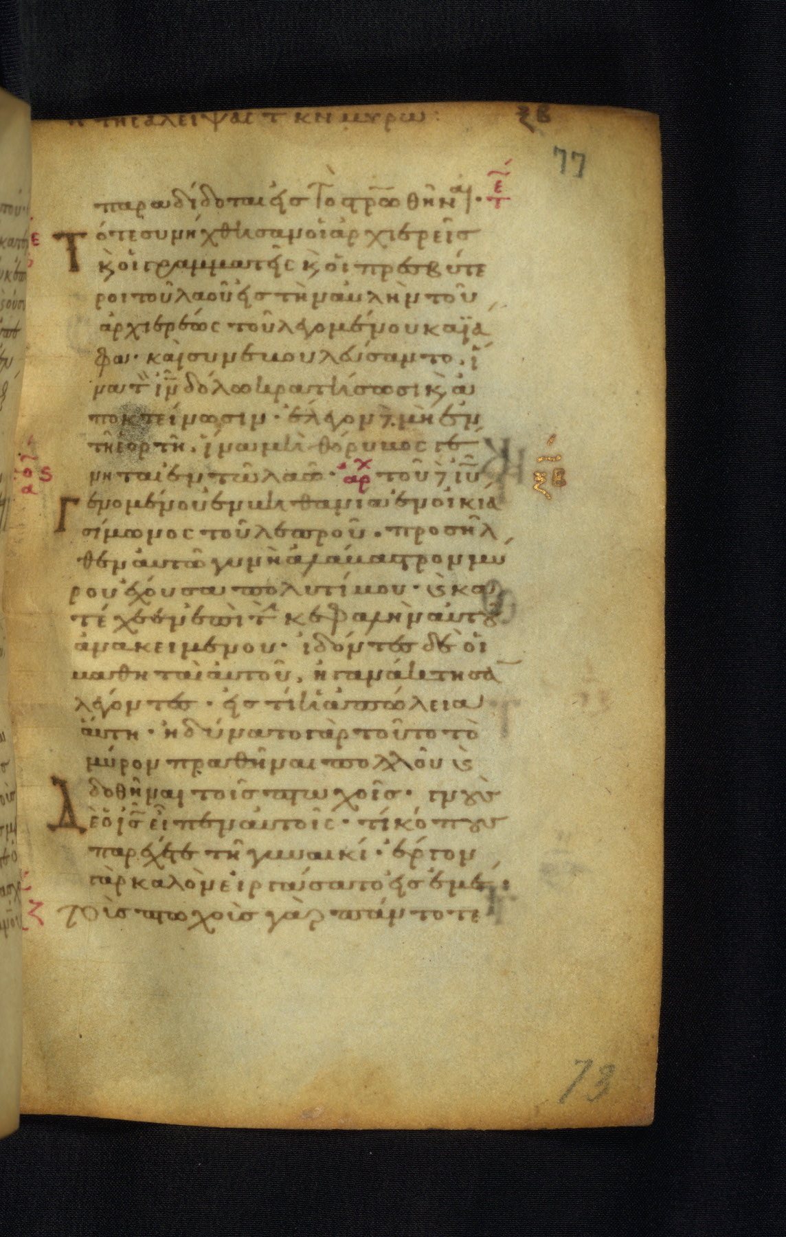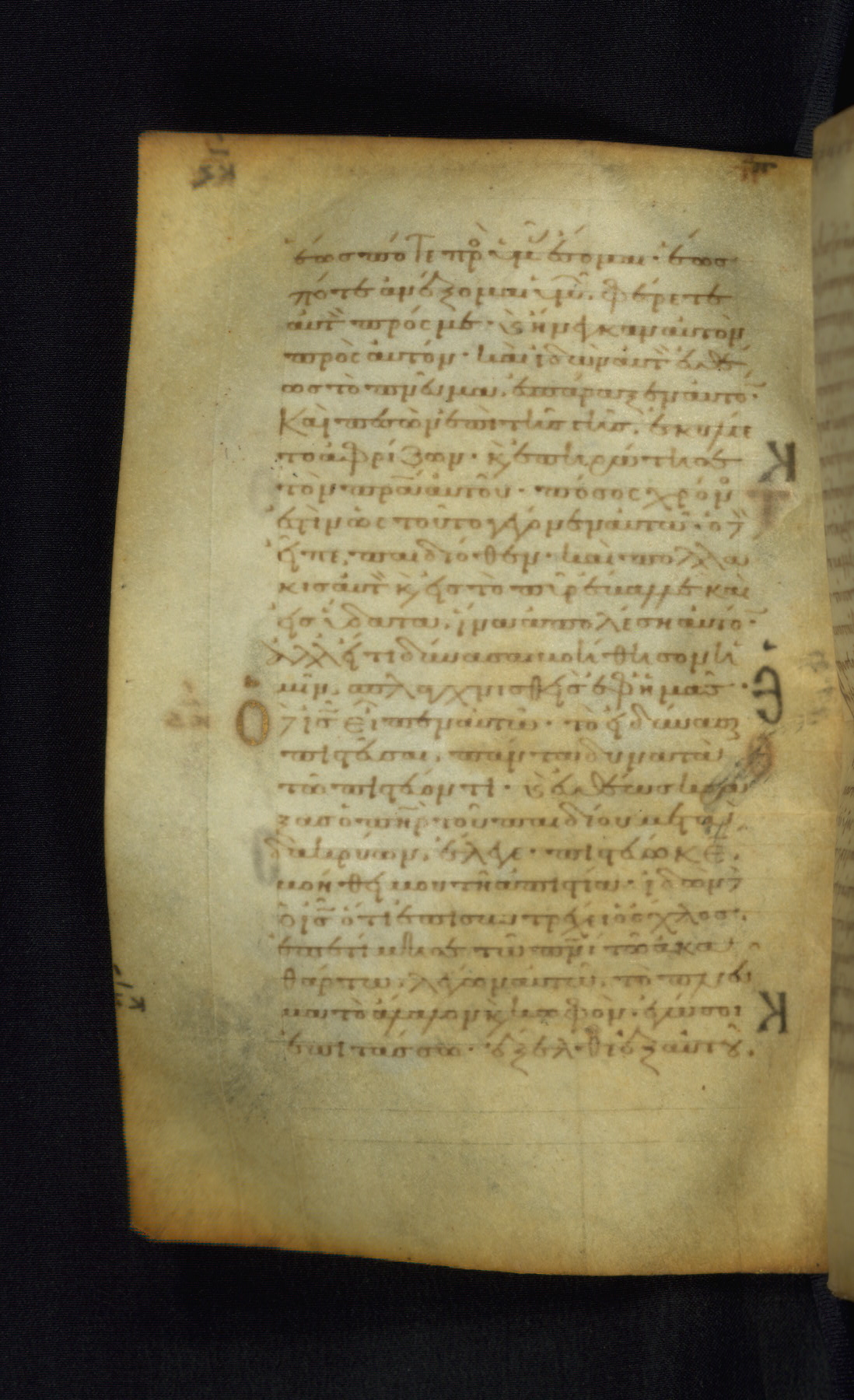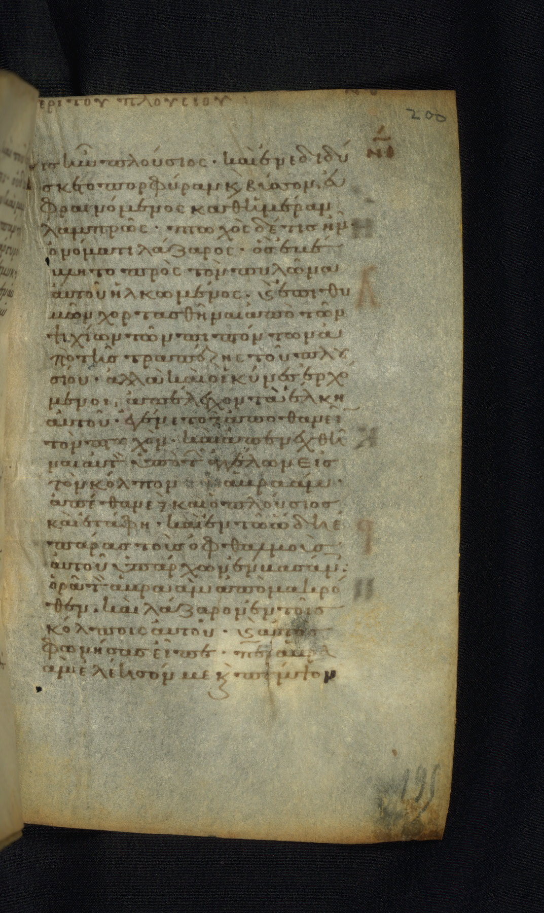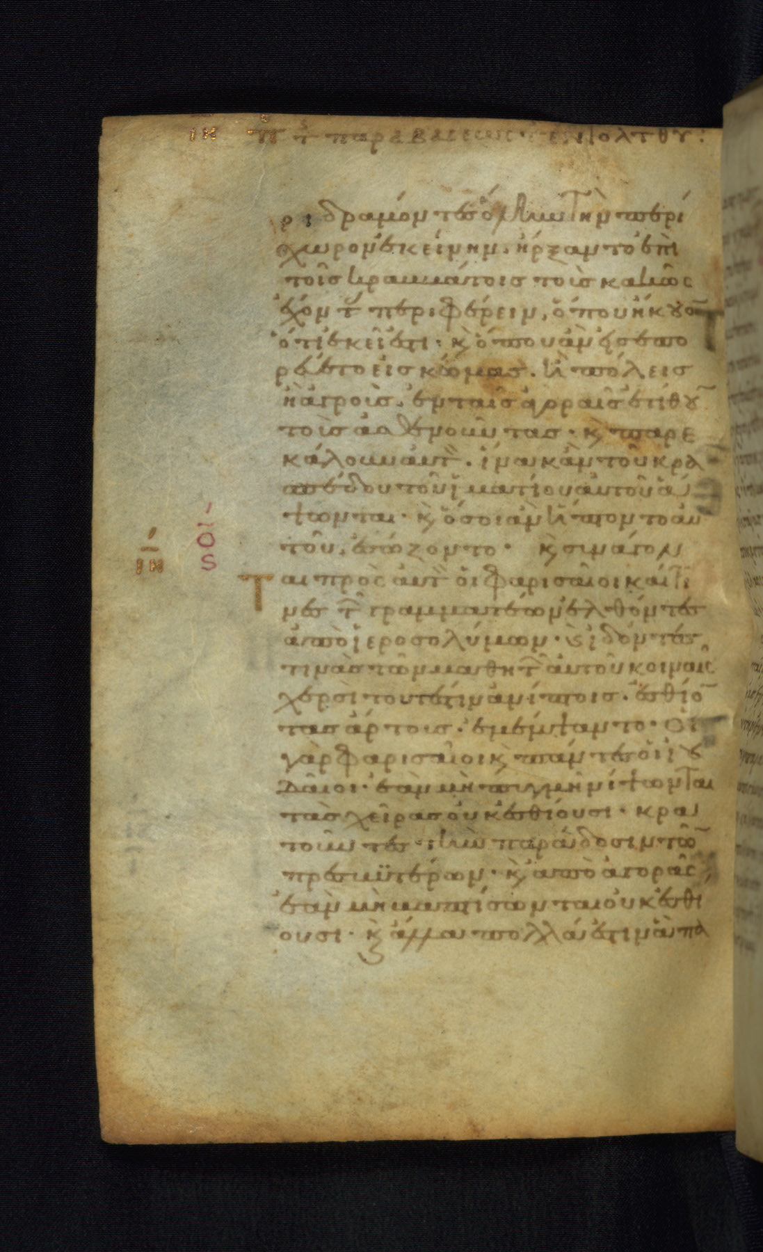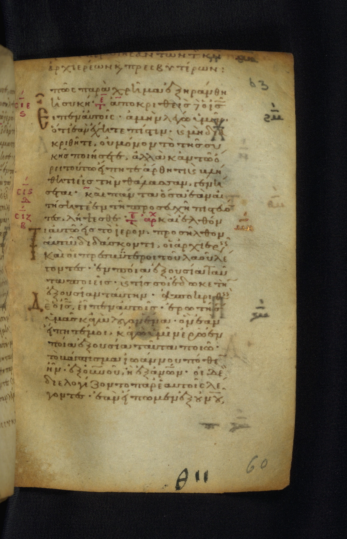This Gospel book was likely created in the capital of the Byzantine Empire, Constantinople, in the eleventh century. The manuscript is remarkable on account of its exceptionally small size, as well as the high quality of its script and miniatures. Its extensive image cycle includes six full-page miniatures, four half-page miniatures, four historiated initials, and marginalia.