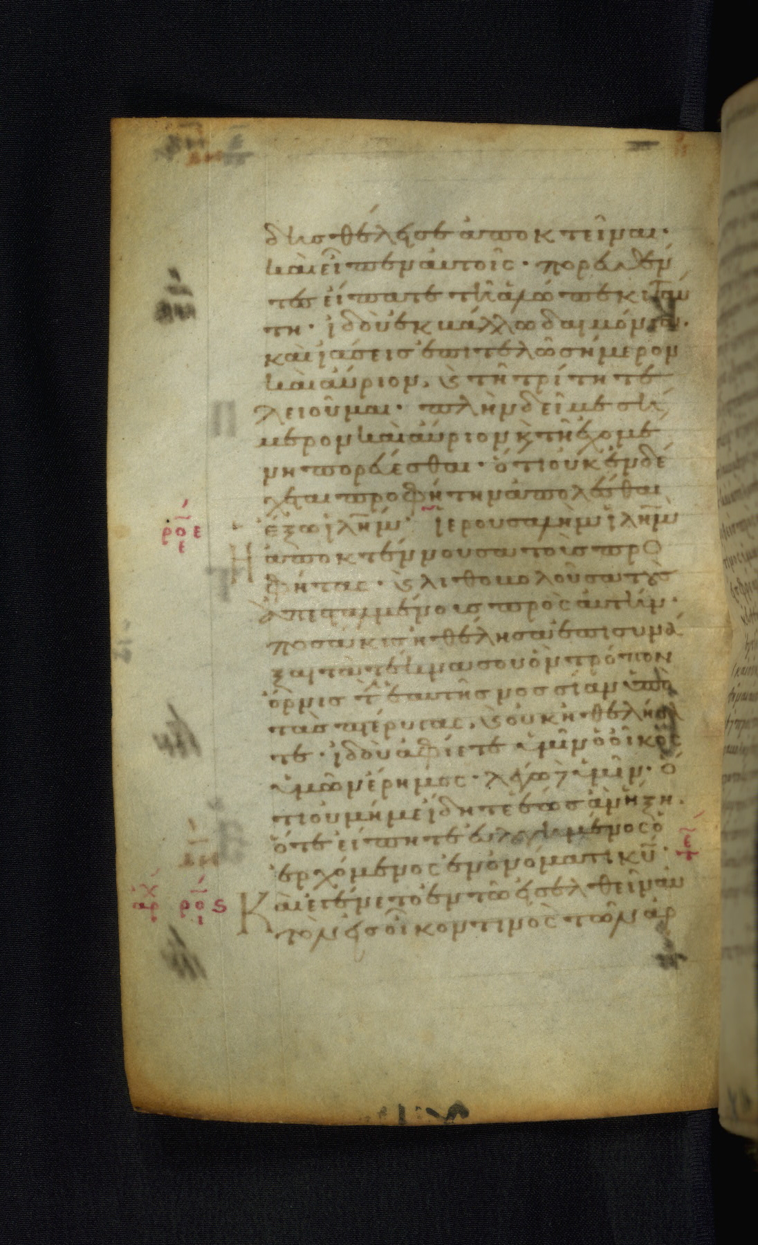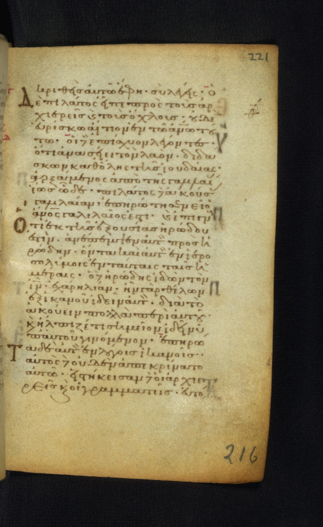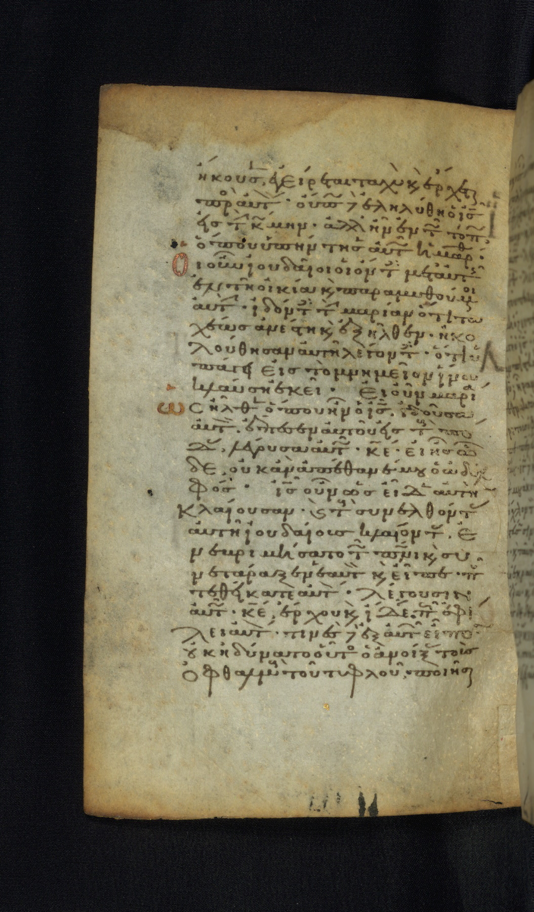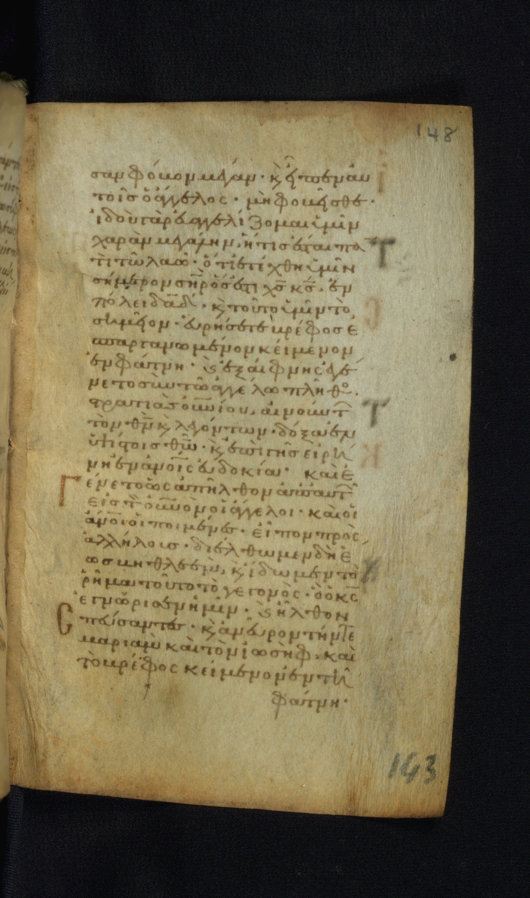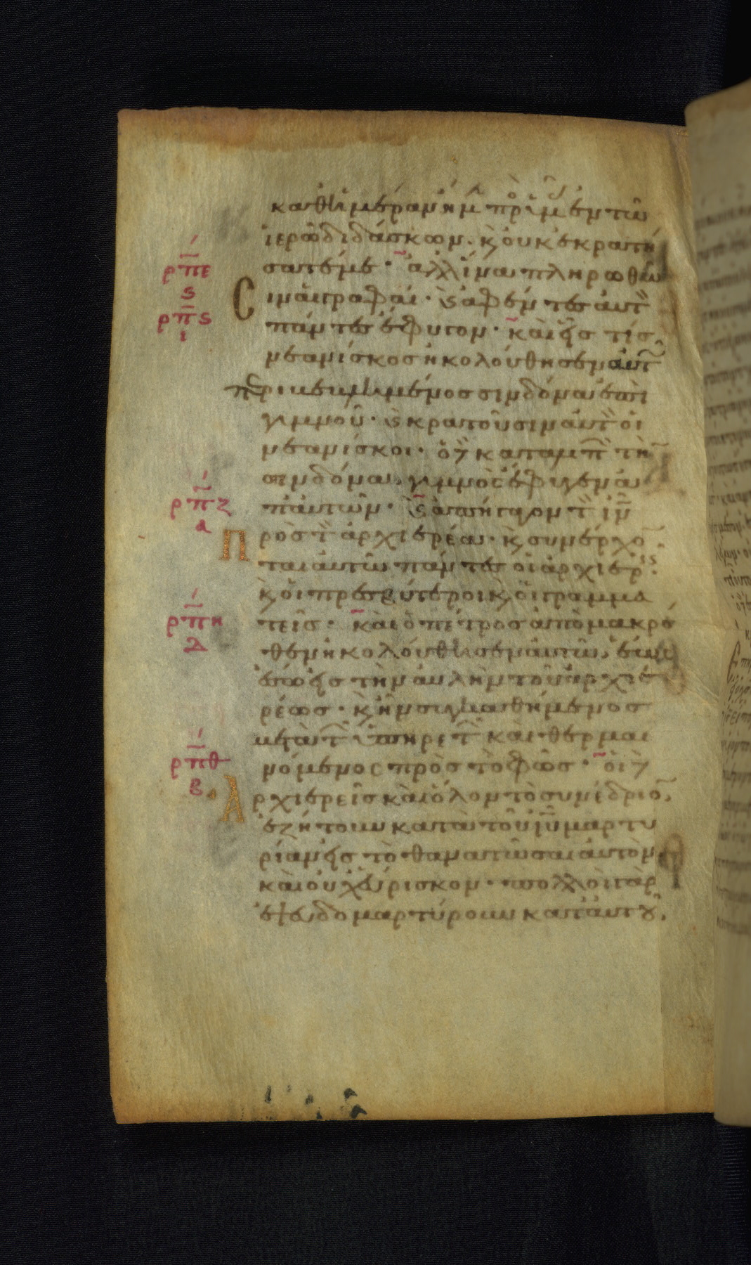 This Gospel book was likely created in the capital of the Byzantine Empire, Constantinople, in the eleventh century. The manuscript is remarkable on account of its exceptionally small size, as well as the high quality of its script and miniatures. Its extensive image cycle includes six full-page miniatures, four half-page miniatures, four historiated initials, and marginalia.