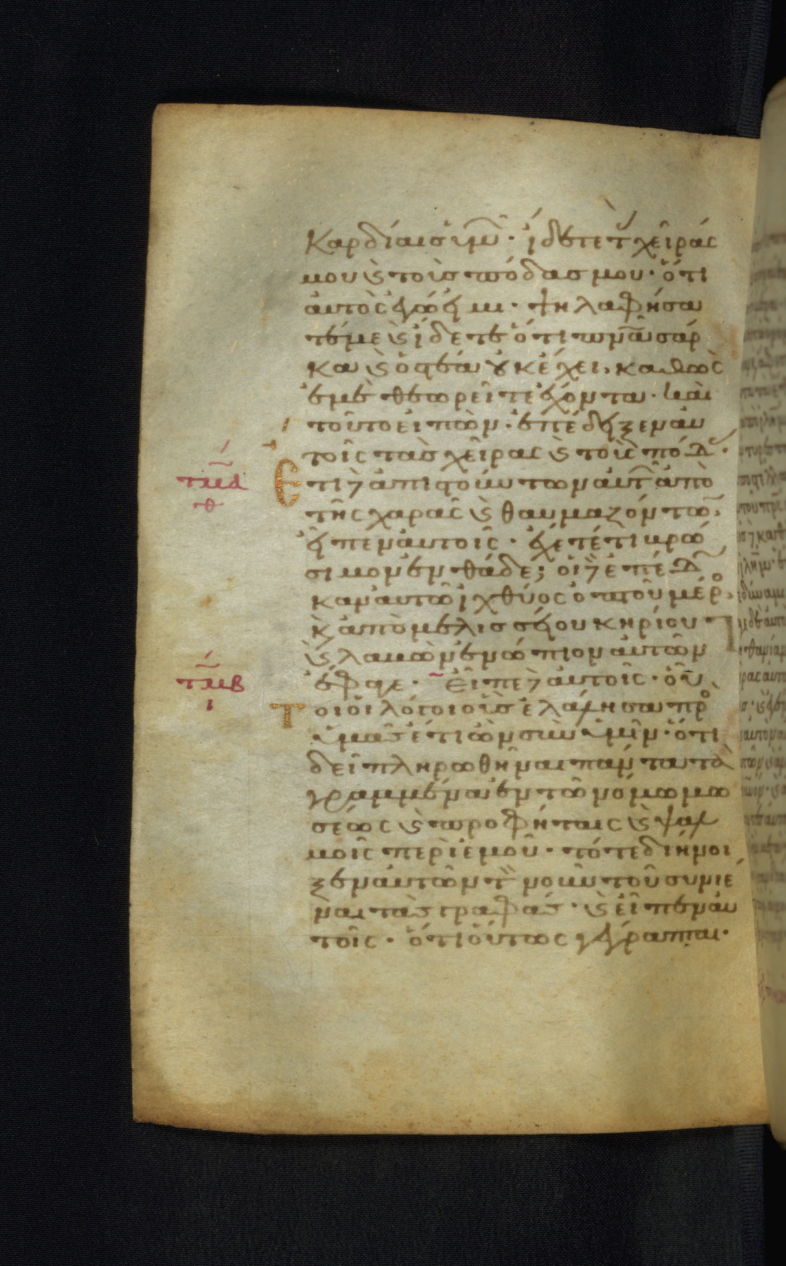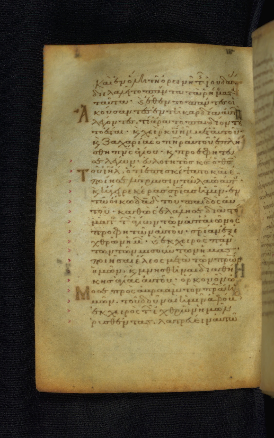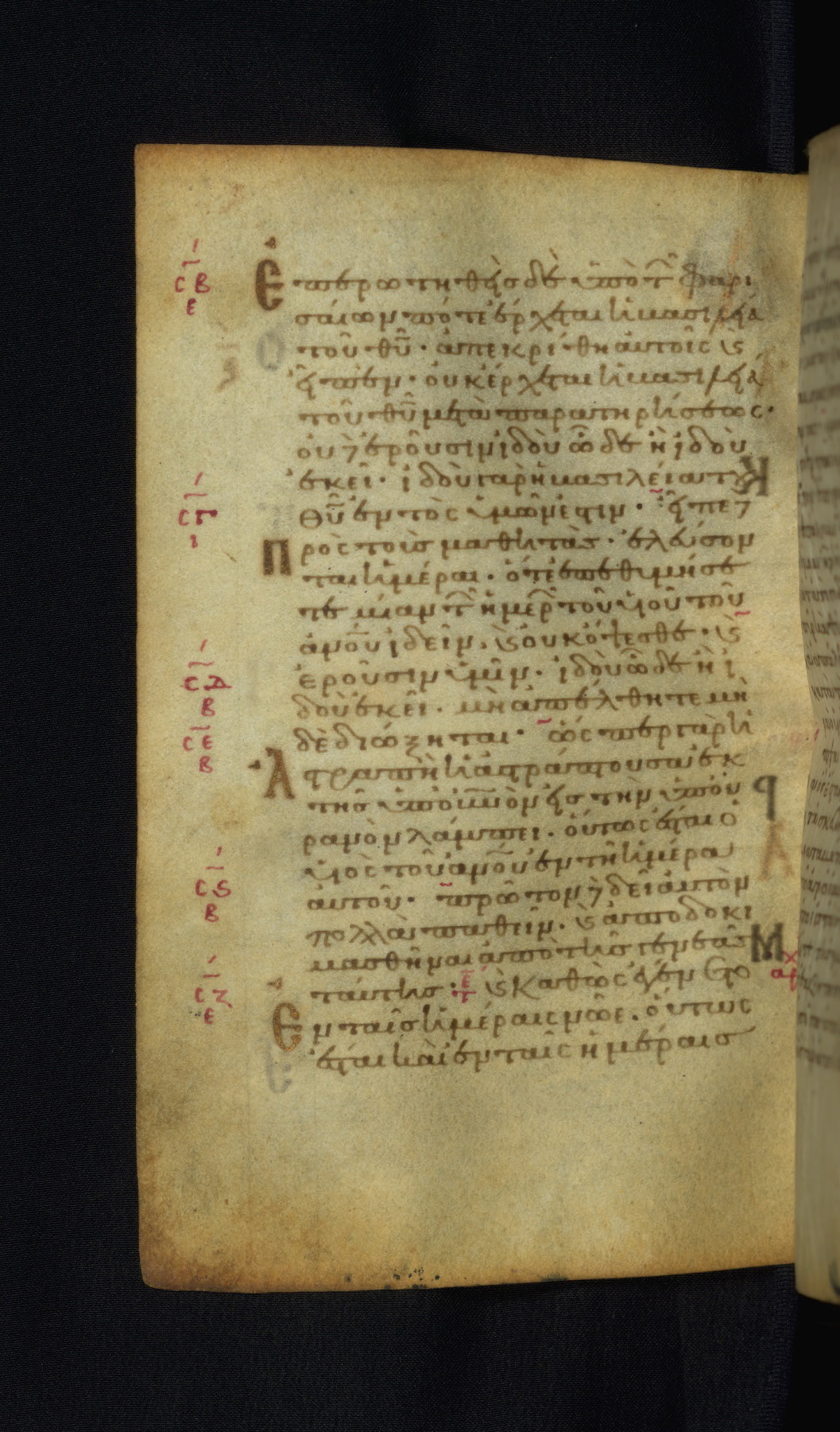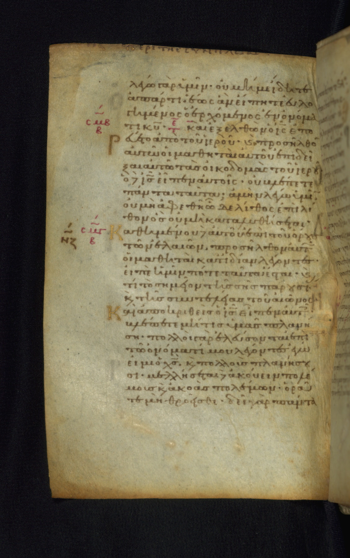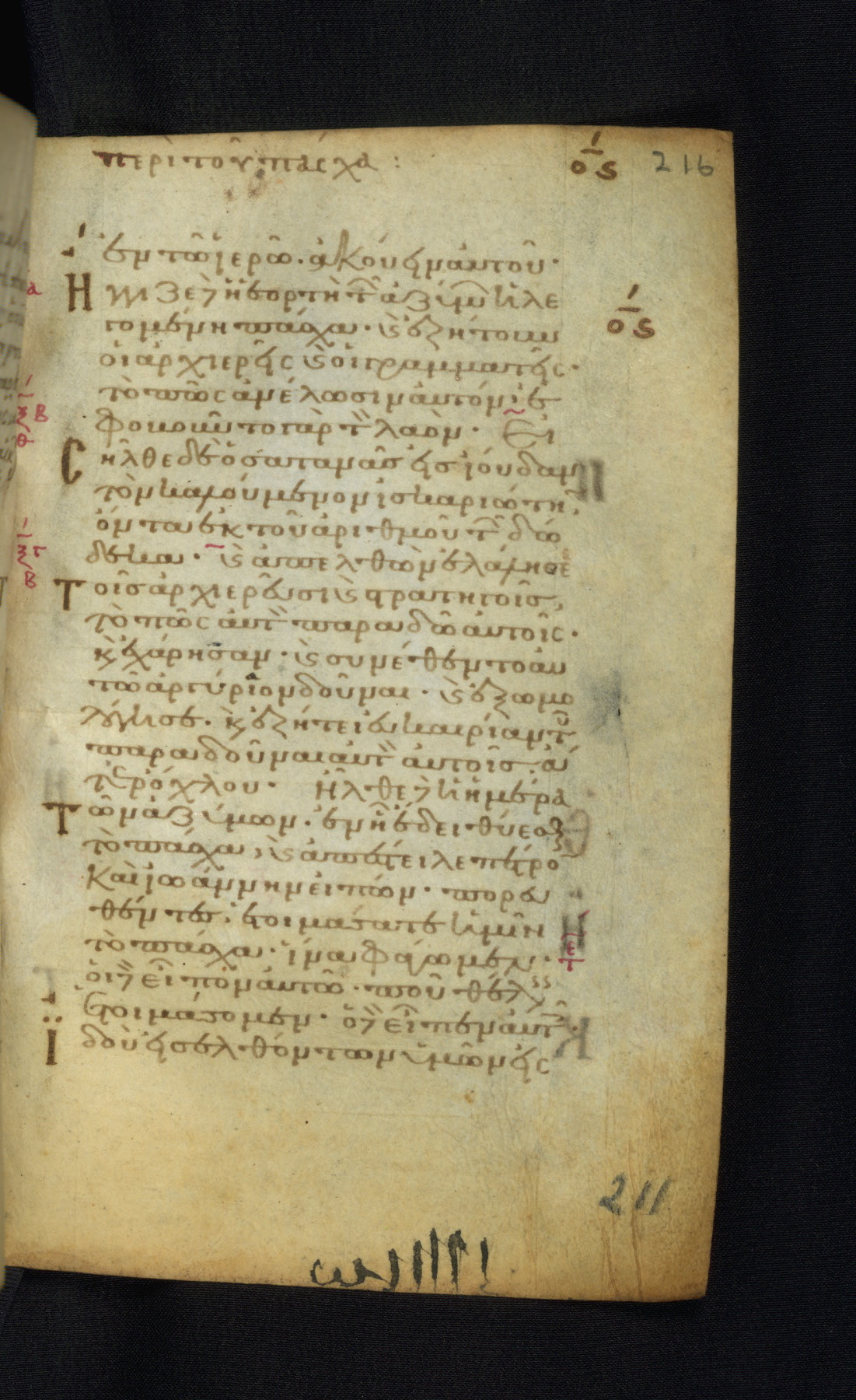 This Gospel book was likely created in the capital of the Byzantine Empire, Constantinople, in the eleventh century. The manuscript is remarkable on account of its exceptionally small size, as well as the high quality of its script and miniatures. Its extensive image cycle includes six full-page miniatures, four half-page miniatures, four historiated initials, and marginalia.
