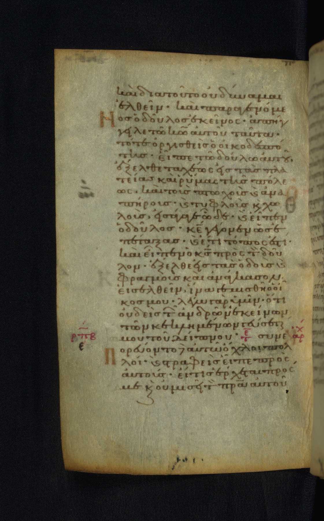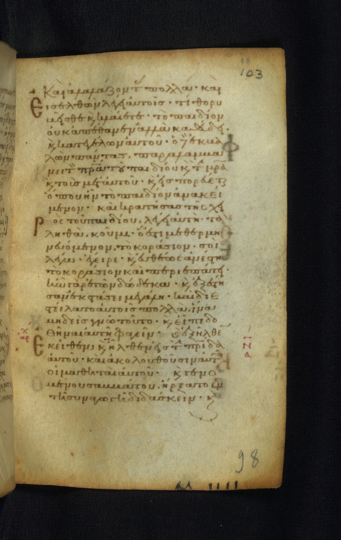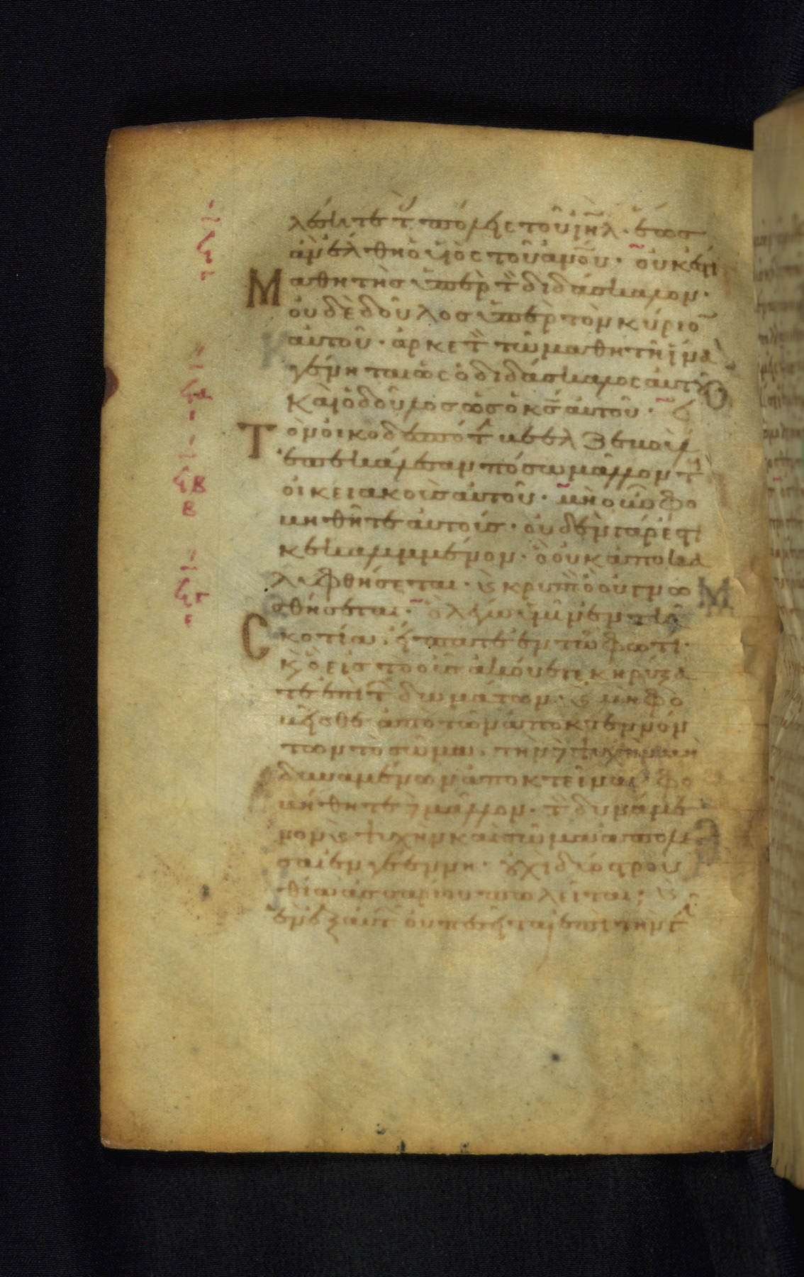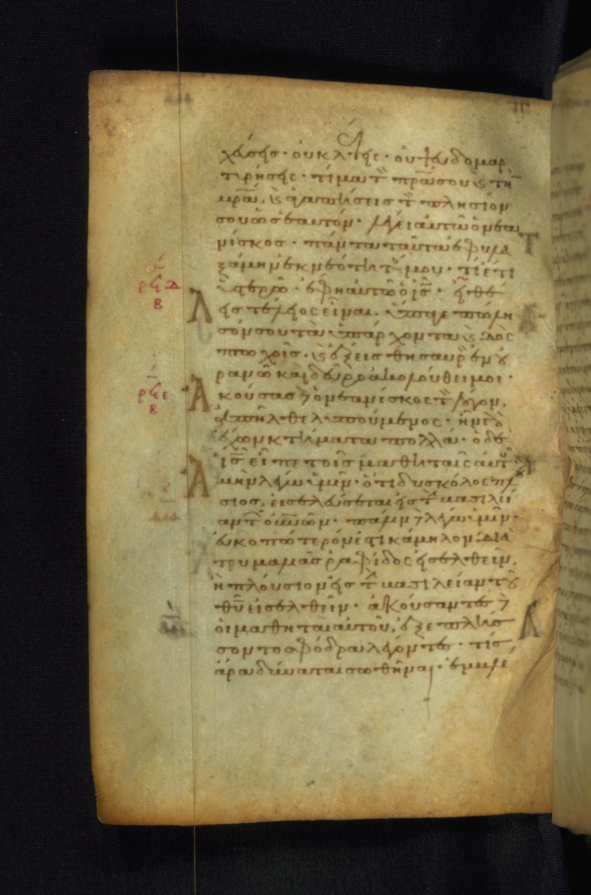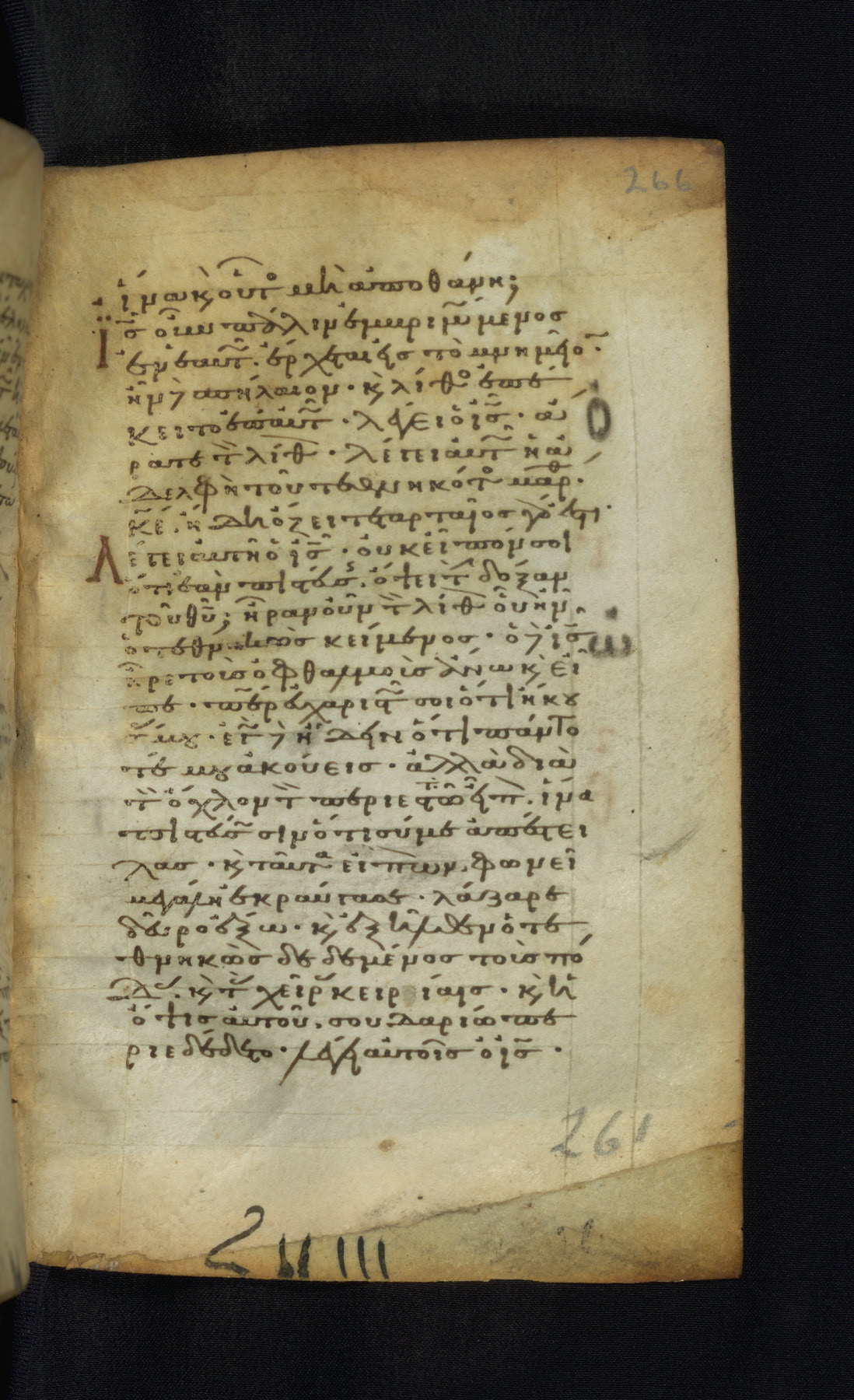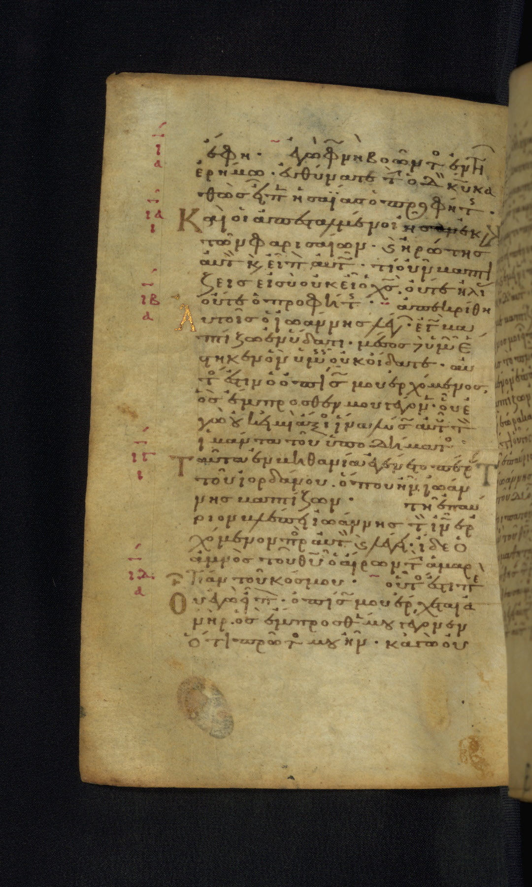 This Gospel book was likely created in the capital of the Byzantine Empire, Constantinople, in the eleventh century. The manuscript is remarkable on account of its exceptionally small size, as well as the high quality of its script and miniatures. Its extensive image cycle includes six full-page miniatures, four half-page miniatures, four historiated initials, and marginalia.