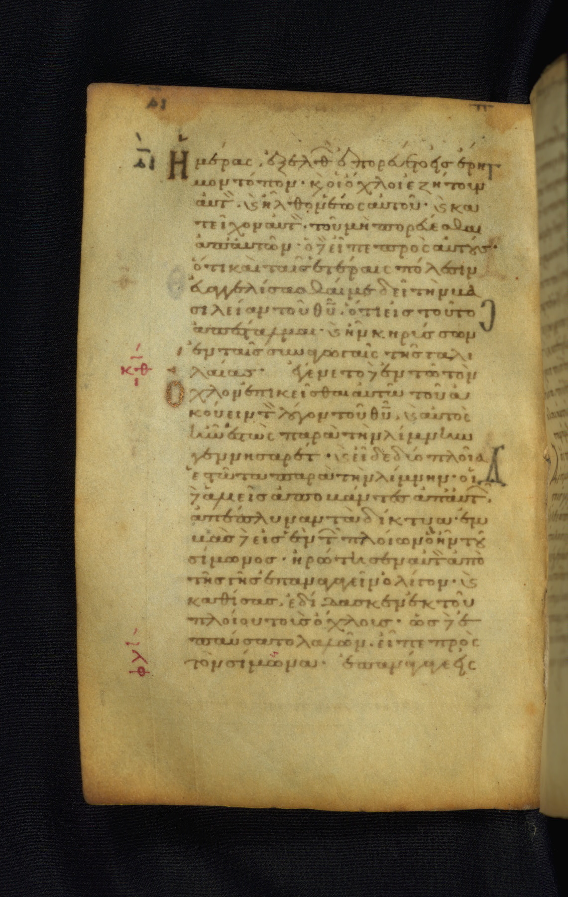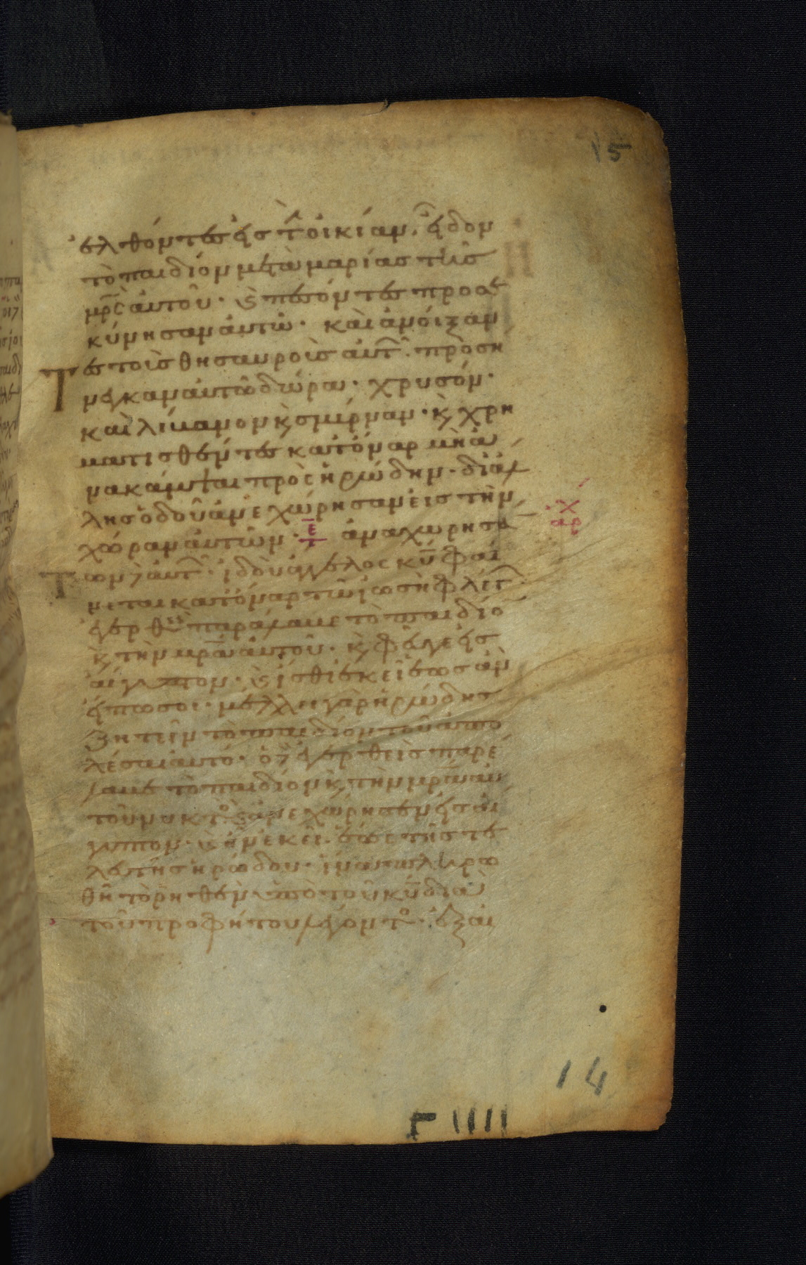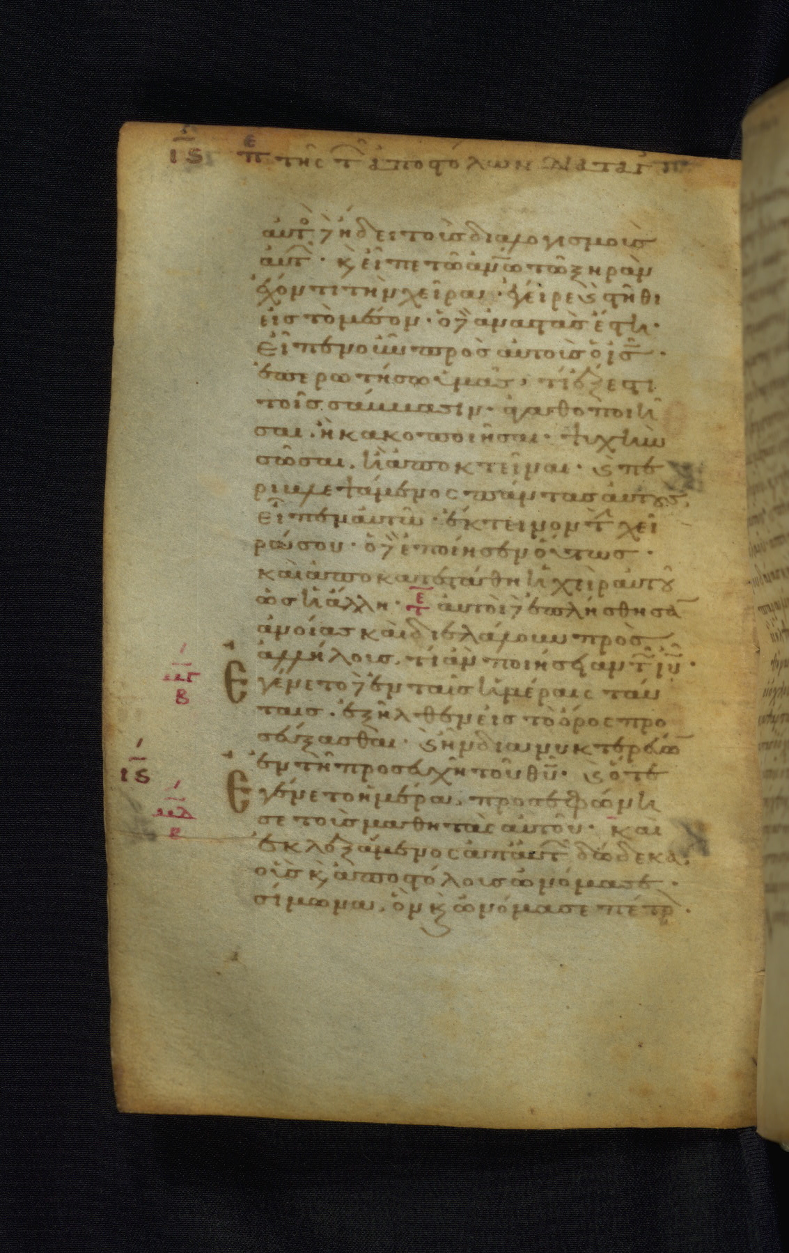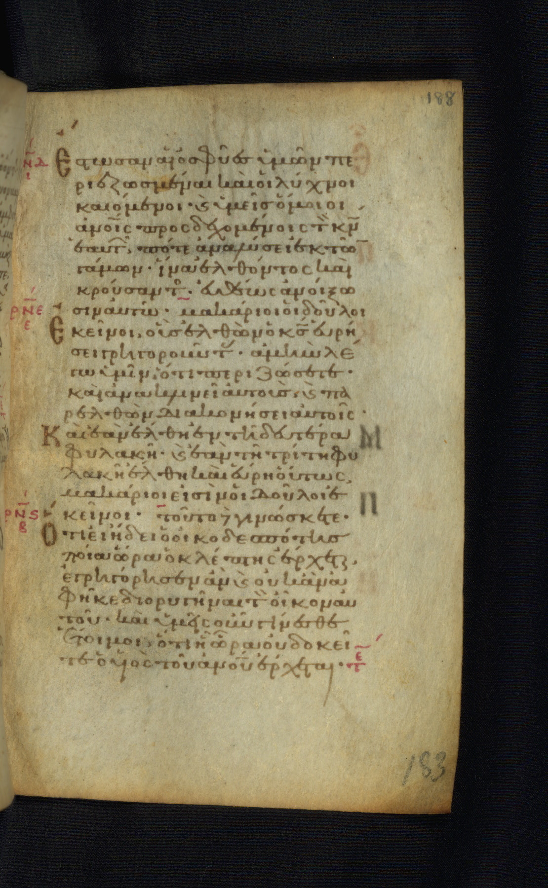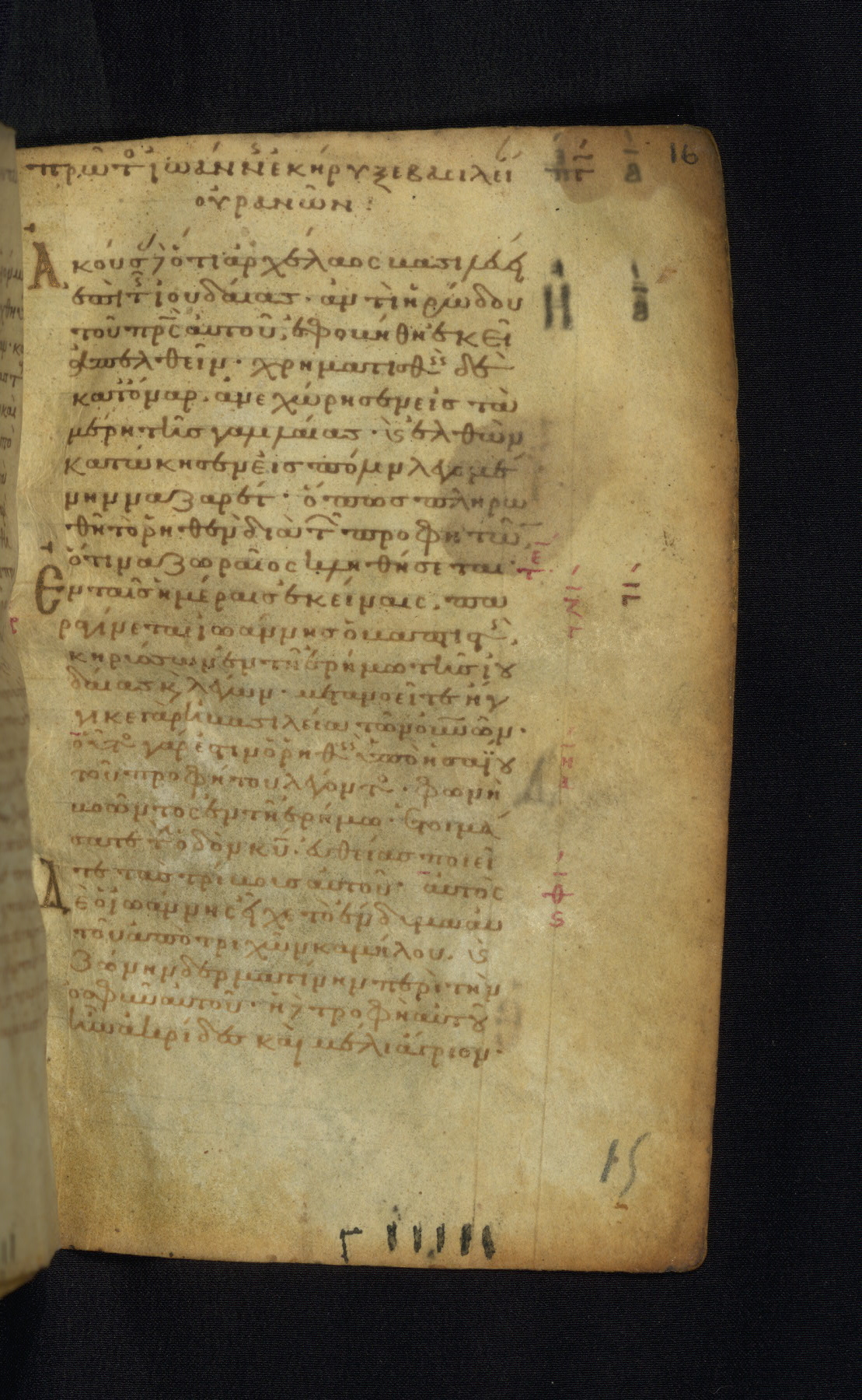This Gospel book was likely created in the capital of the Byzantine Empire, Constantinople, in the eleventh century. The manuscript is remarkable on account of its exceptionally small size, as well as the high quality of its script and miniatures. Its extensive image cycle includes six full-page miniatures, four half-page miniatures, four historiated initials, and marginalia.