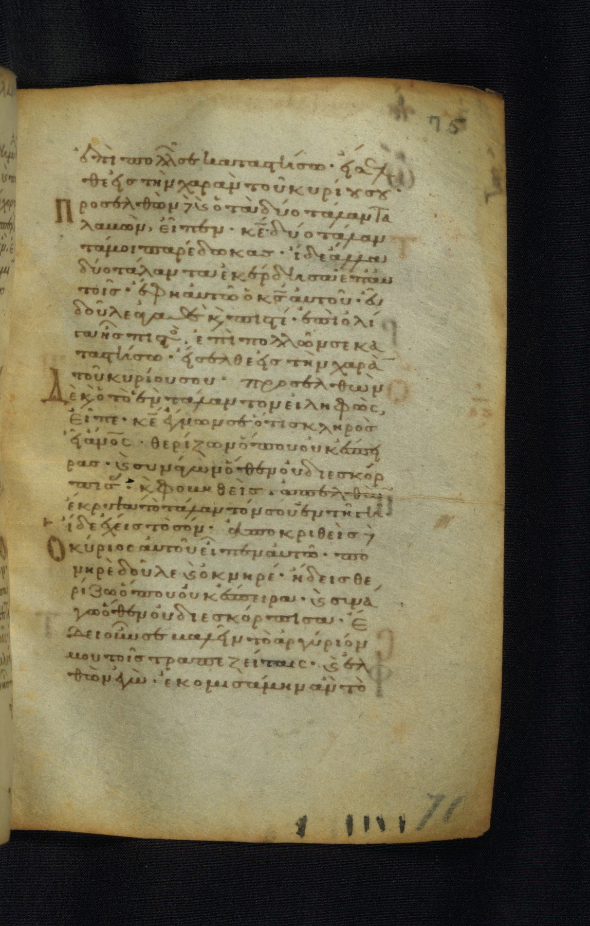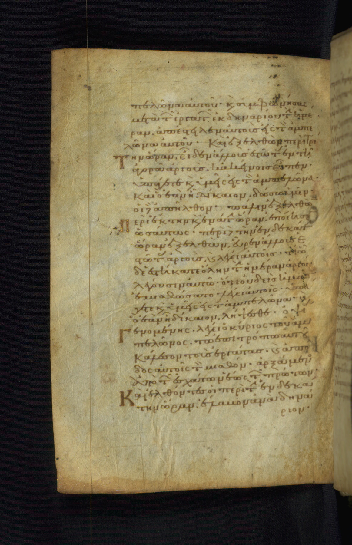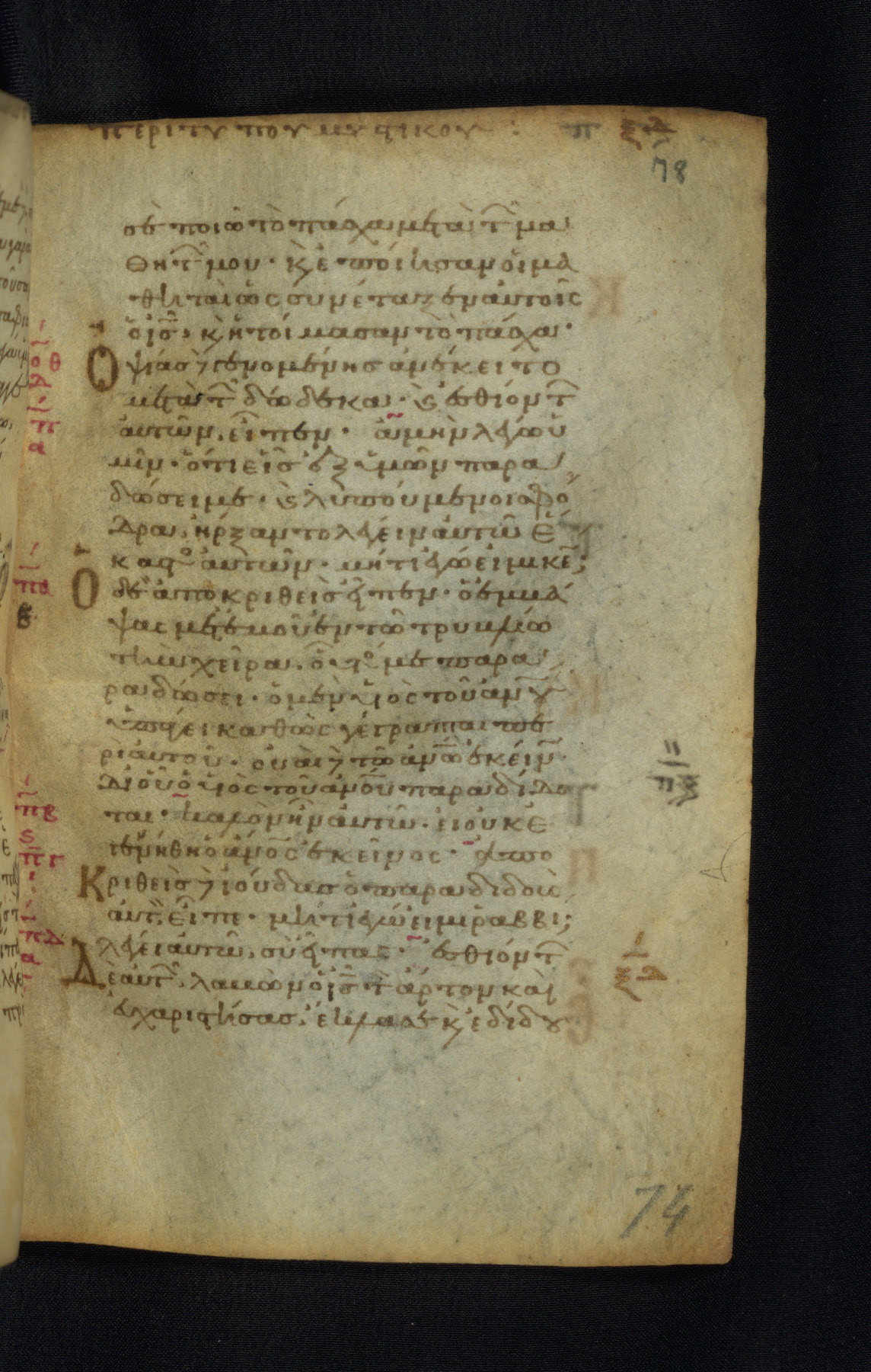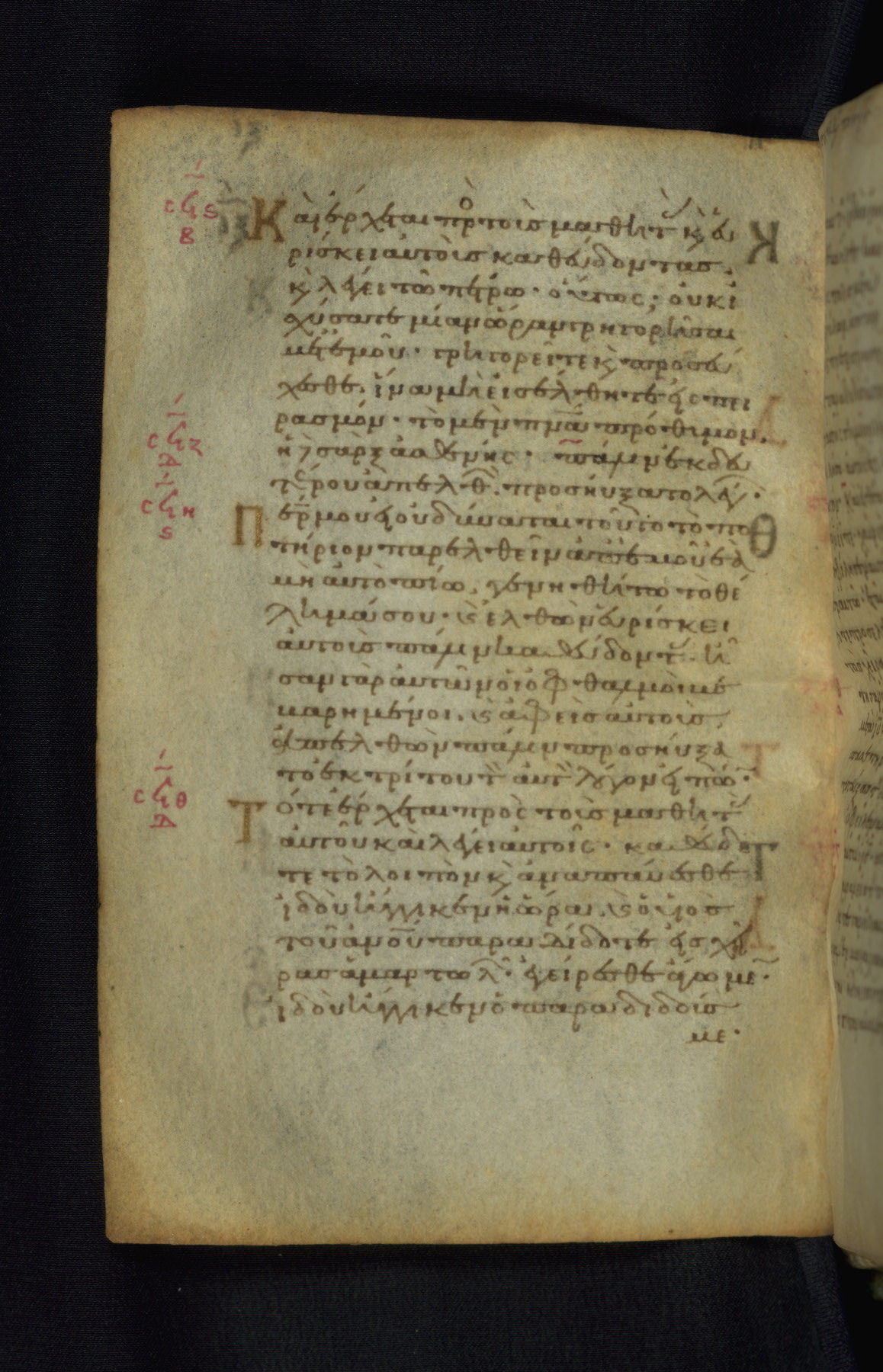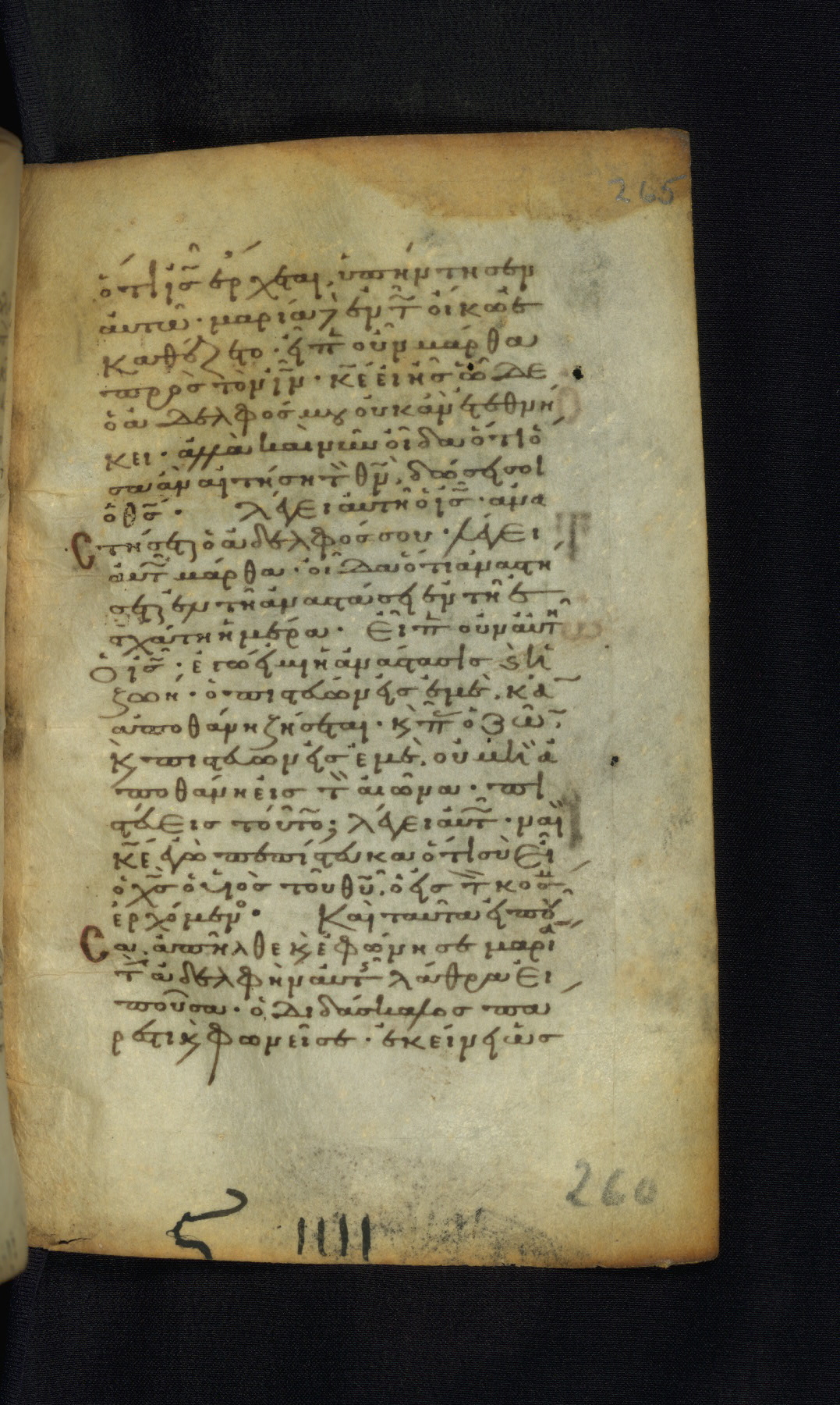 This Gospel book was likely created in the capital of the Byzantine Empire, Constantinople, in the eleventh century. The manuscript is remarkable on account of its exceptionally small size, as well as the high quality of its script and miniatures. Its extensive image cycle includes six full-page miniatures, four half-page miniatures, four historiated initials, and marginalia.
